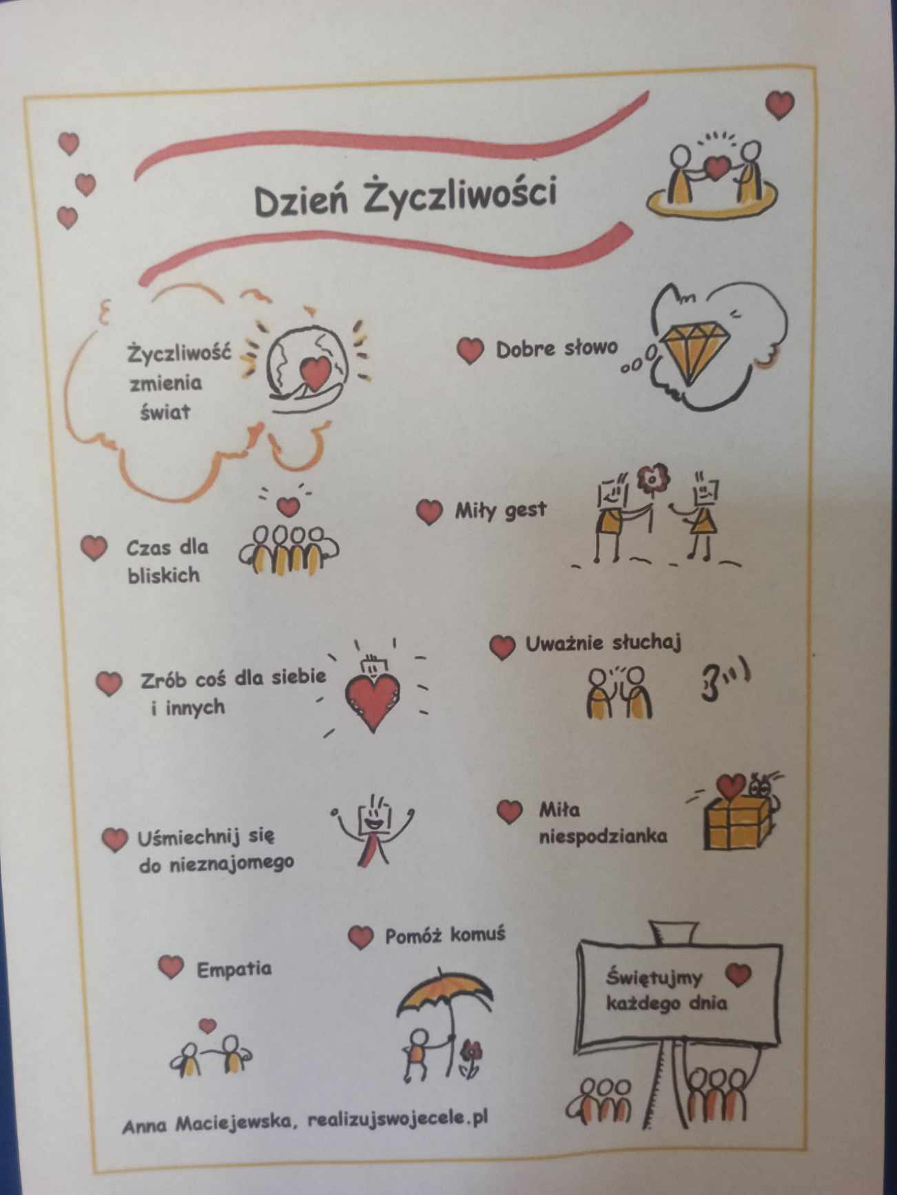 21 listopada to szczególna okazja, by zastanowić się czy jesteśmy wobec siebie życzliwi, bo dziś na całym świecie świętowany jest Dzień Życzliwości i Pozdrowień oraz dobrych uczynków i pozytywnych emocji. Nasze przedszkolaki także świętowały z tej okazji. Wymieniły swoje pomysły na bycie życzliwym, obejrzały krótki filmik o życzliwości i chętnie wzięły udział we wszystkich aktywności ach zaproponowanych przez nauczyciela