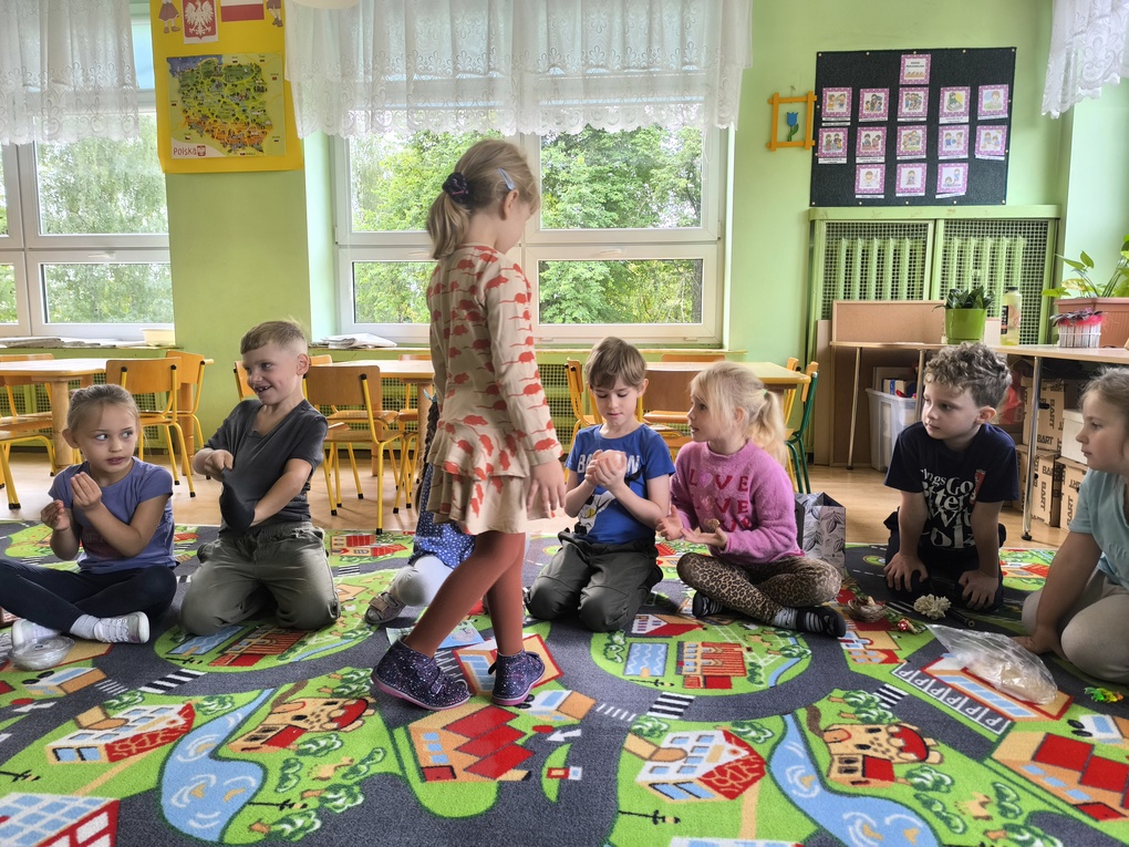 3.11 odwiedziła nas mama Wojtka i przygotowała dla dzieci ścieżkę sensoryczną. Na koniec był słodki poczęstunek.