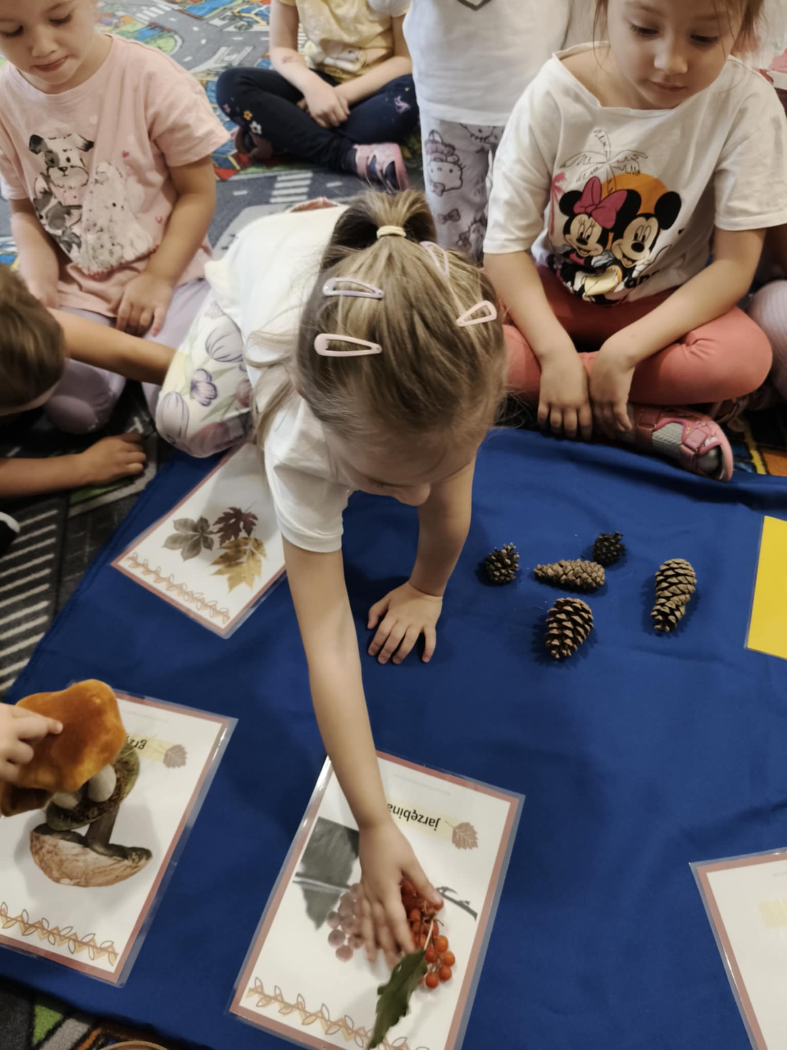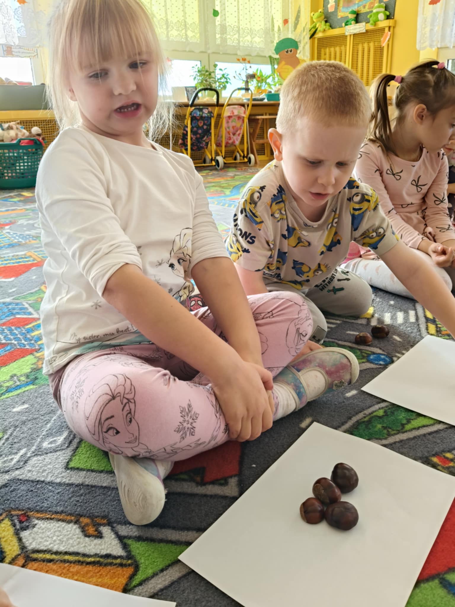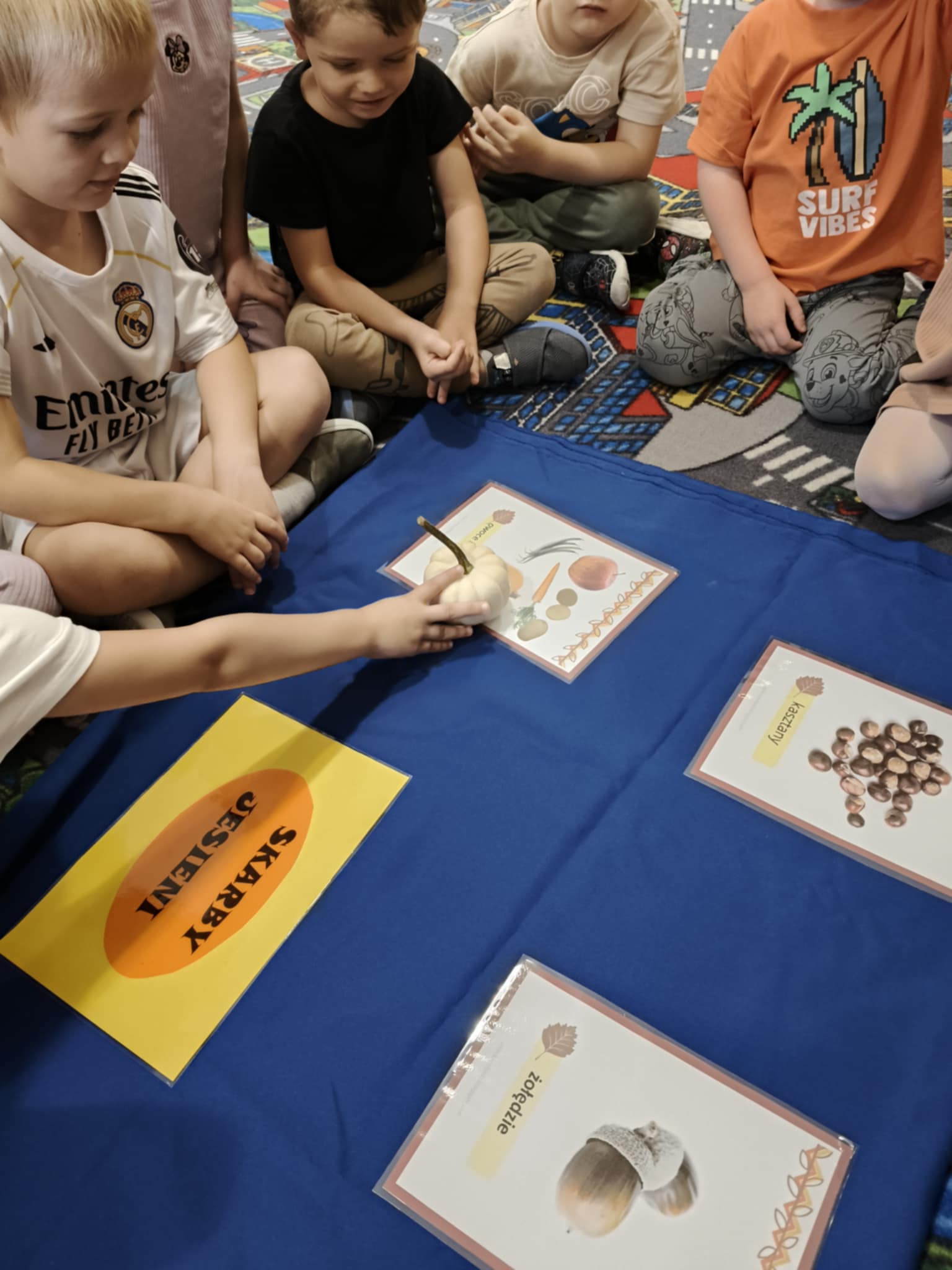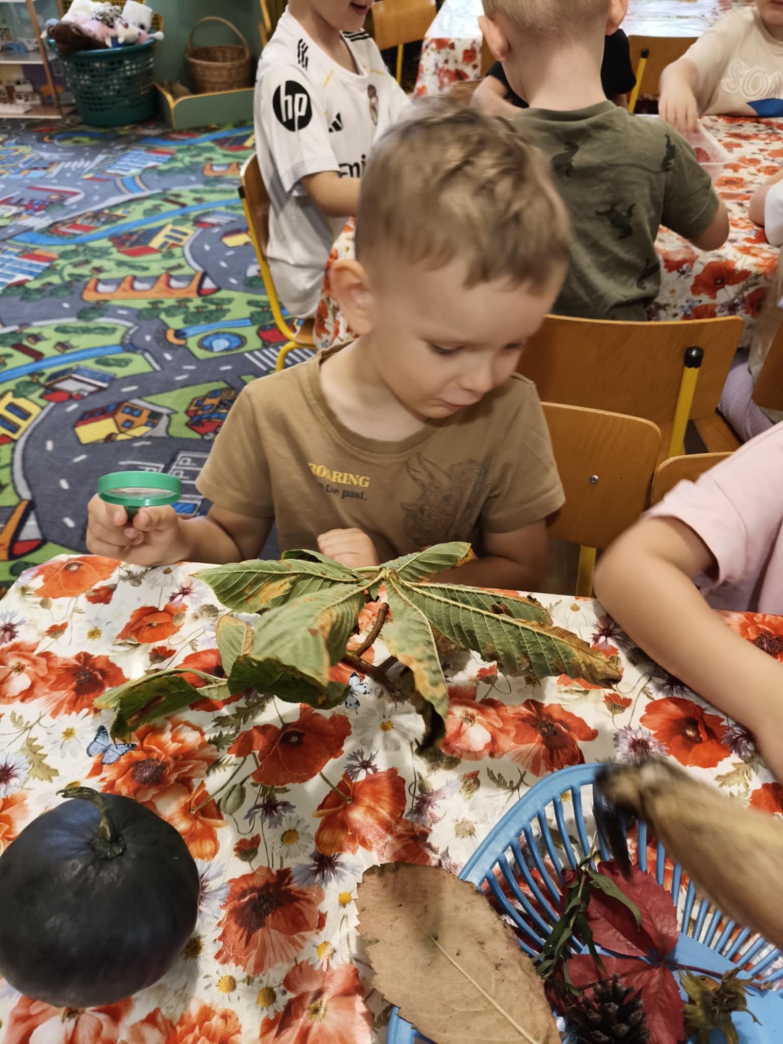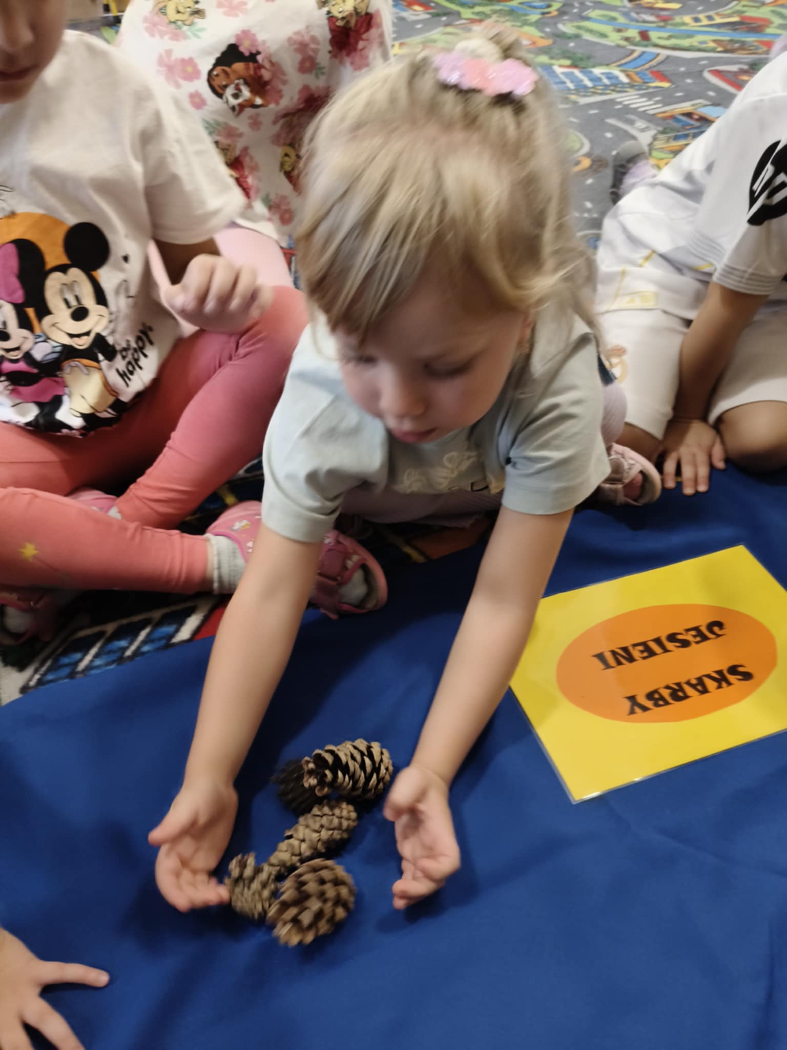 Poznajemy jesienne dary poprzez zabawy badawcze – dotykamy, wąchamy, oglądamy i odkrywamy, co kryje jesień! 🌰🍁