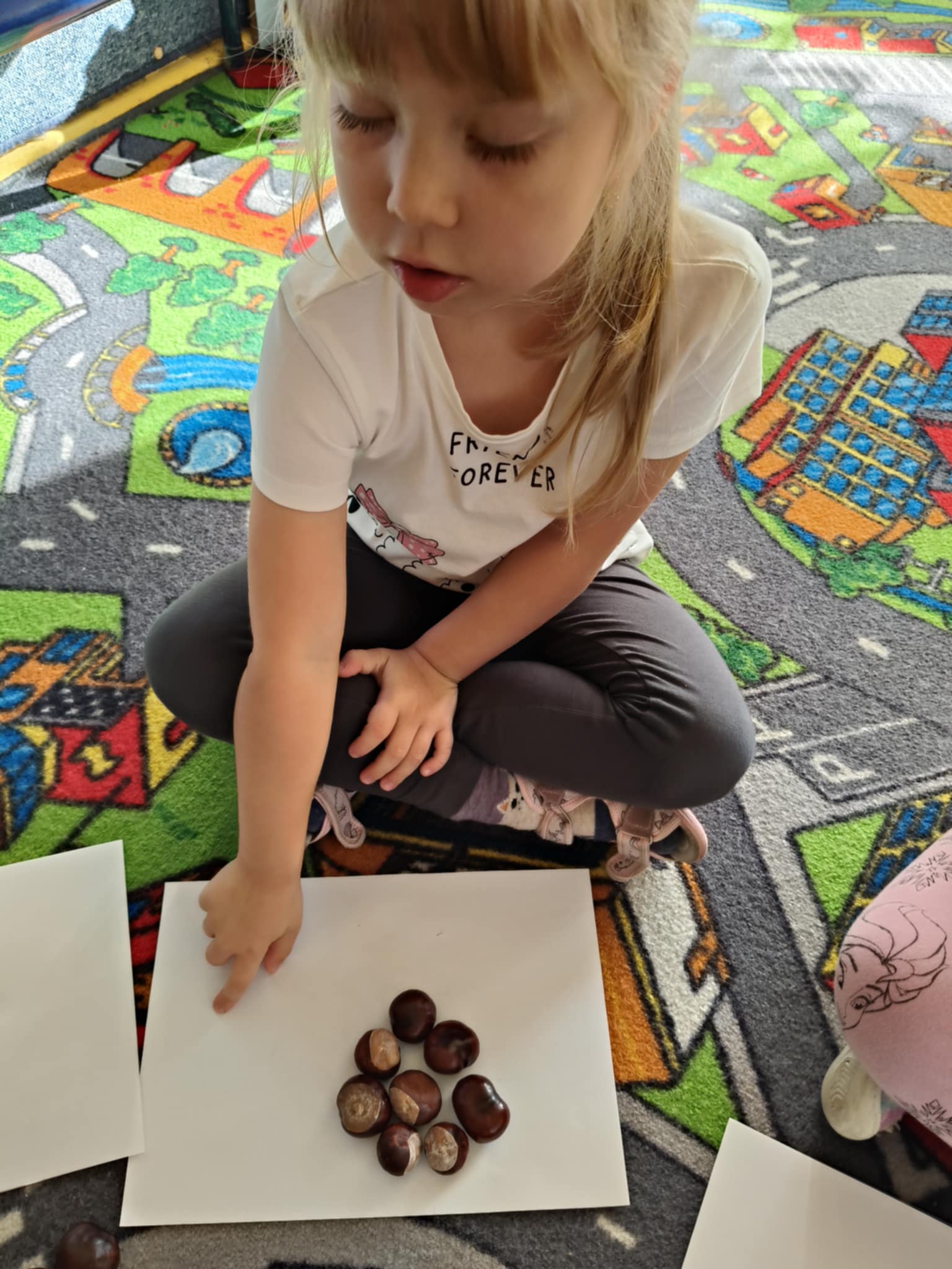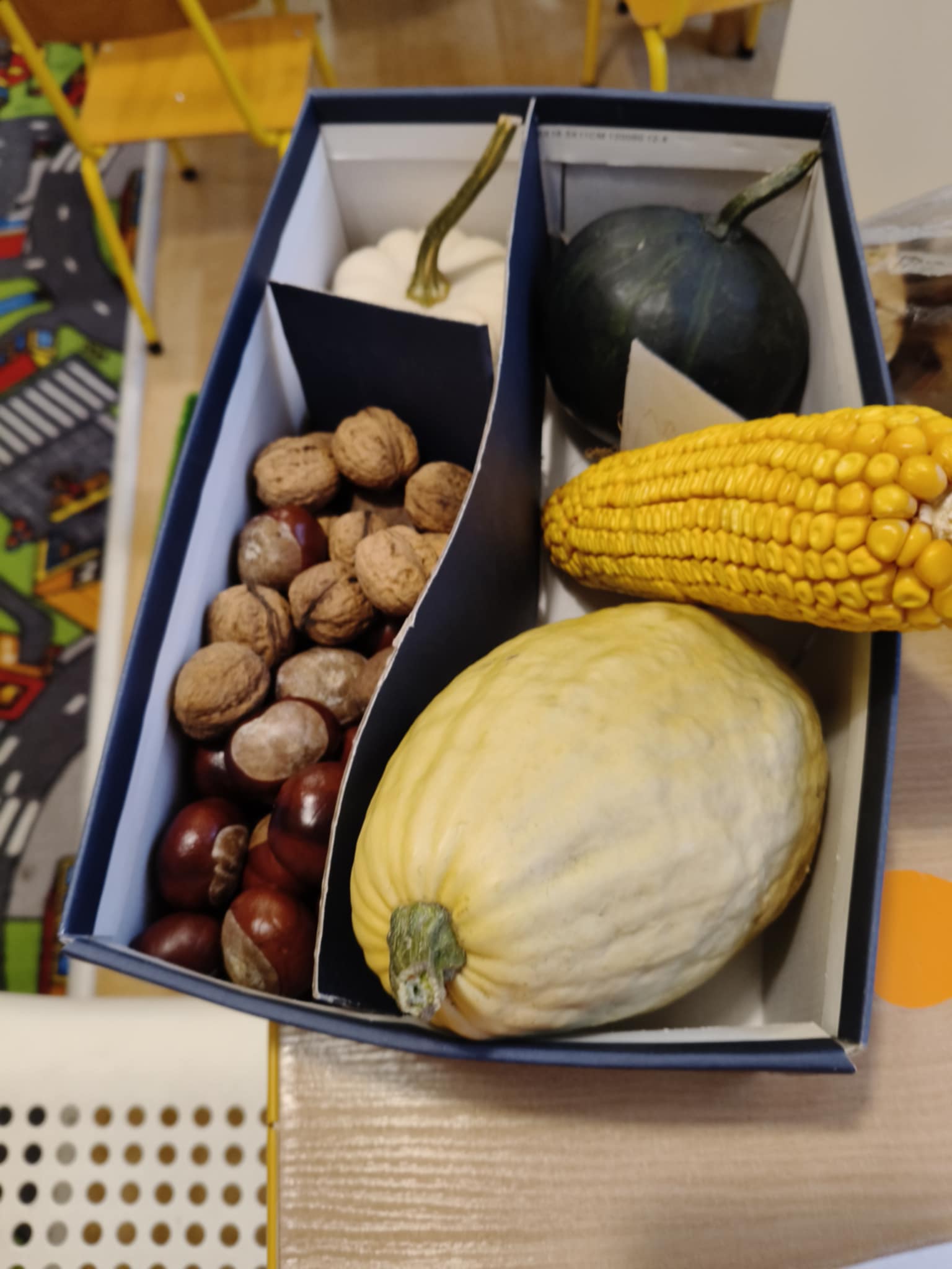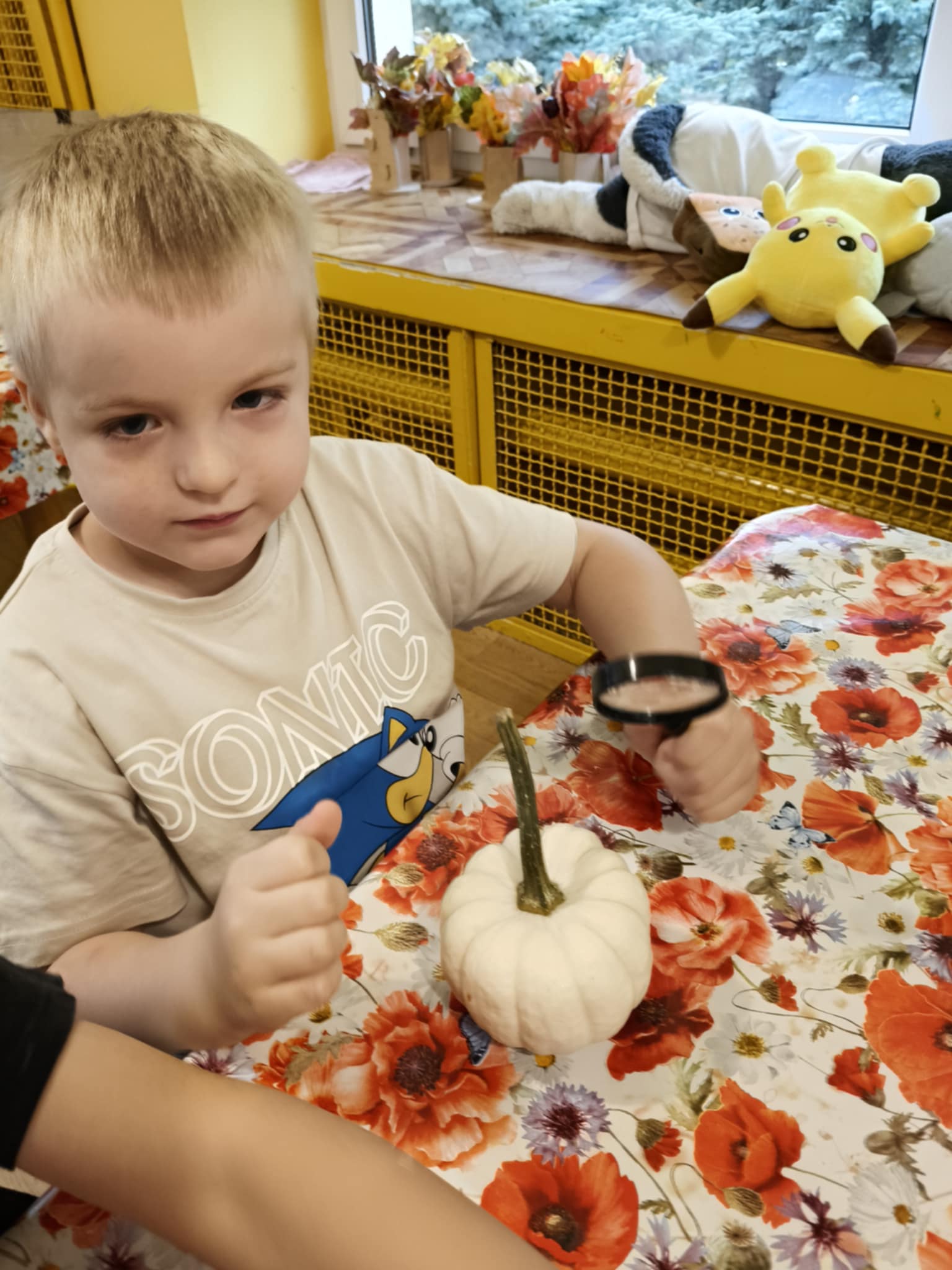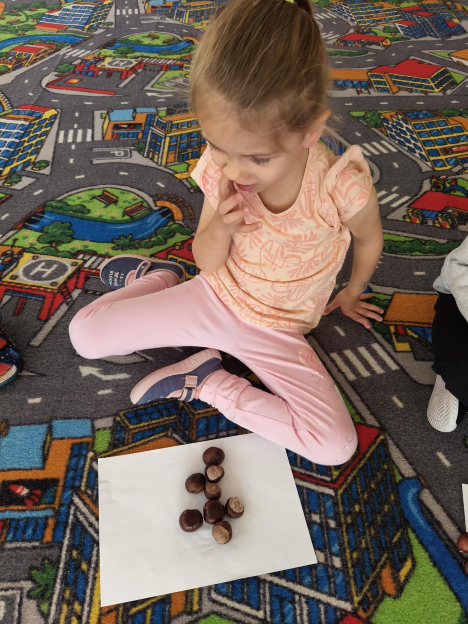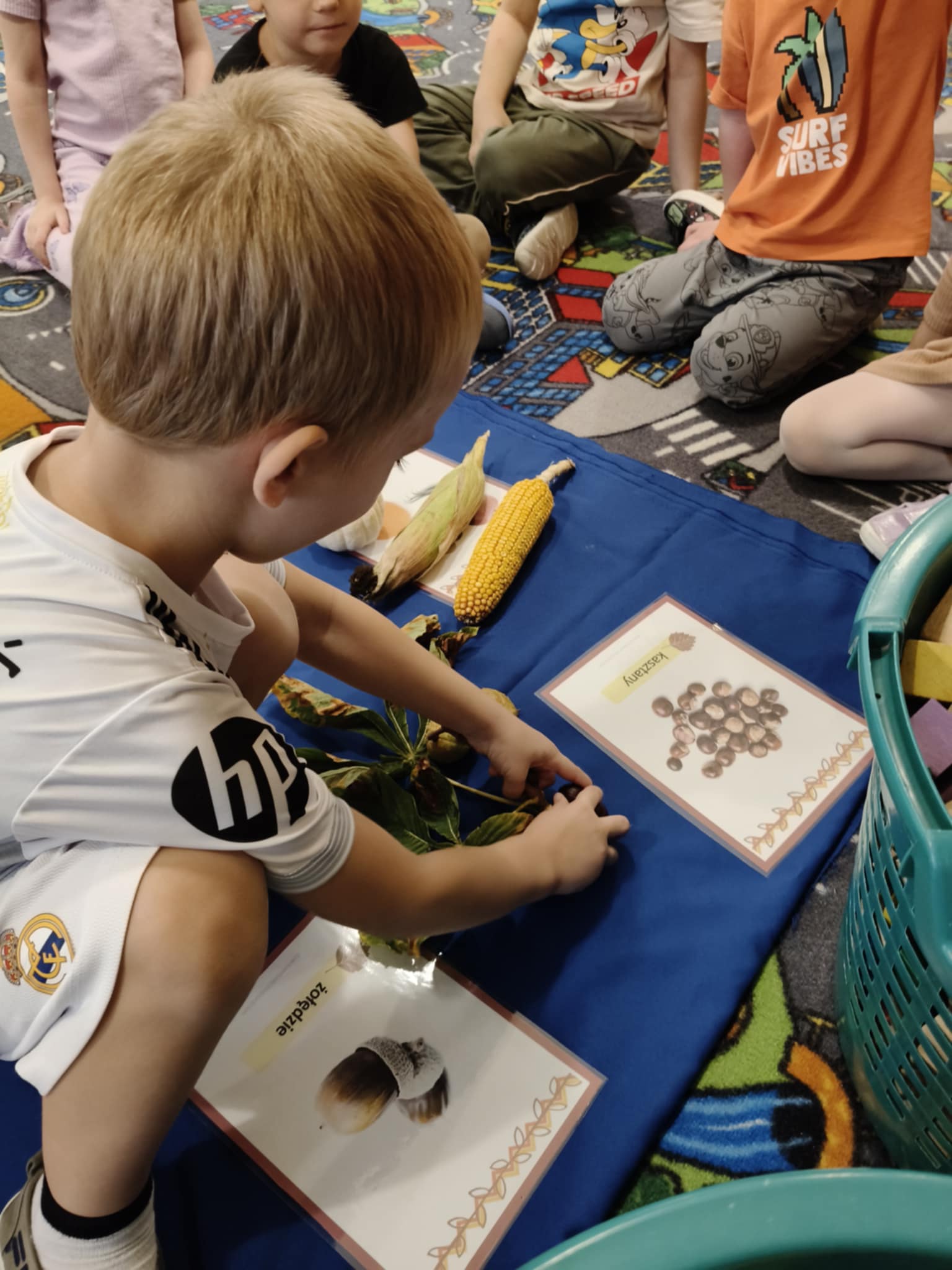 Poznajemy jesienne dary poprzez zabawy badawcze – dotykamy, wąchamy, oglądamy i odkrywamy, co kryje jesień! 🌰🍁