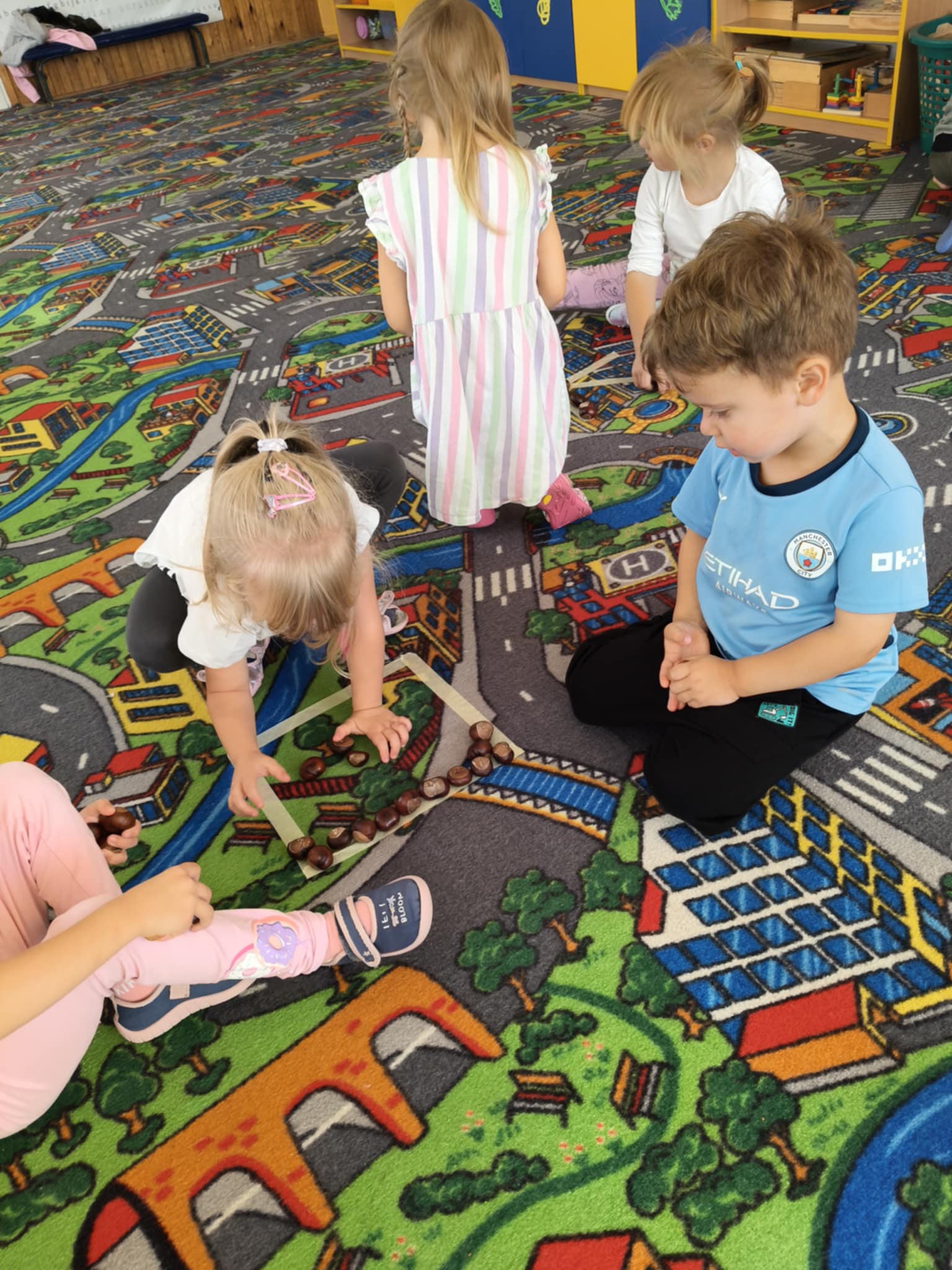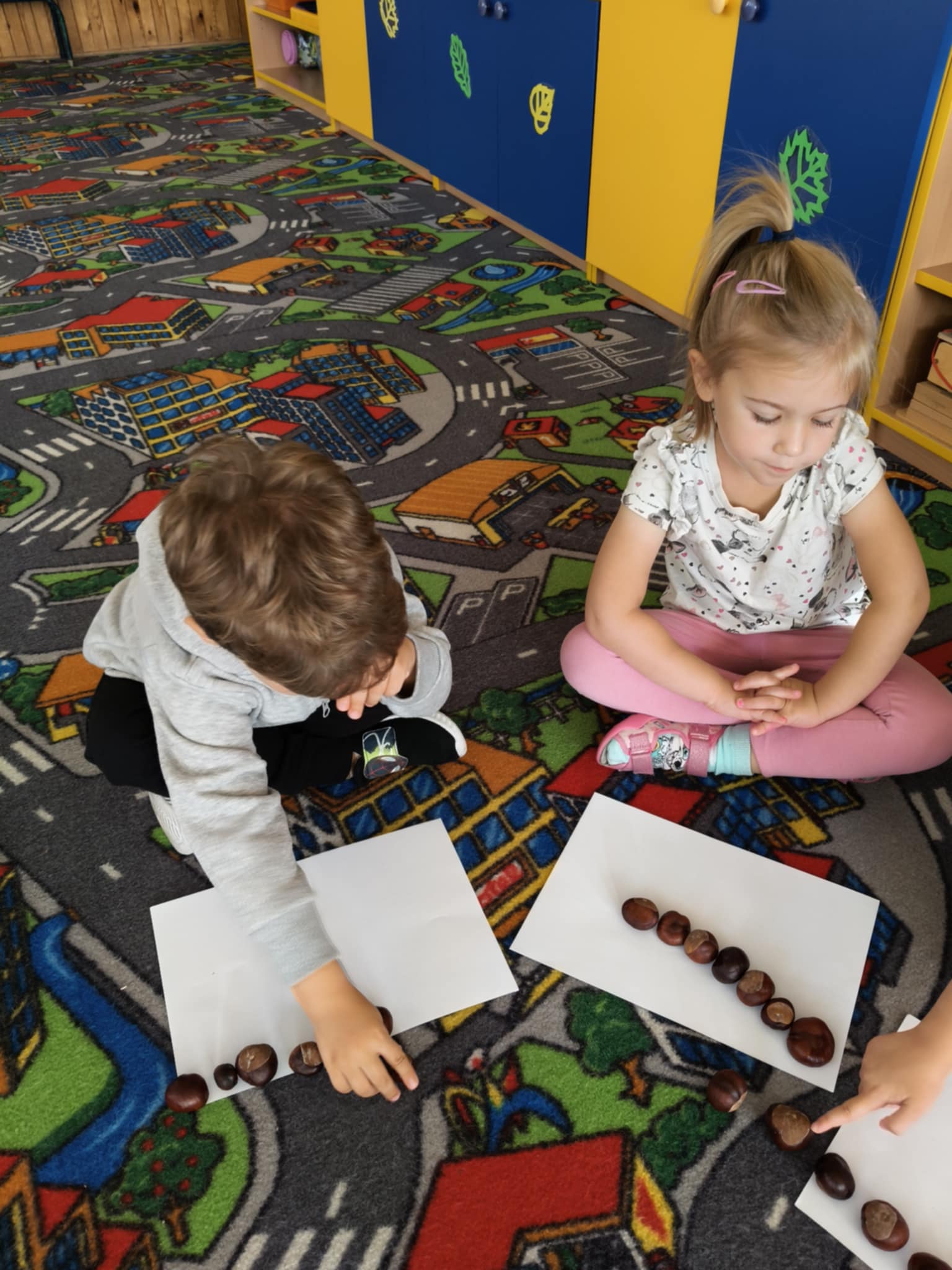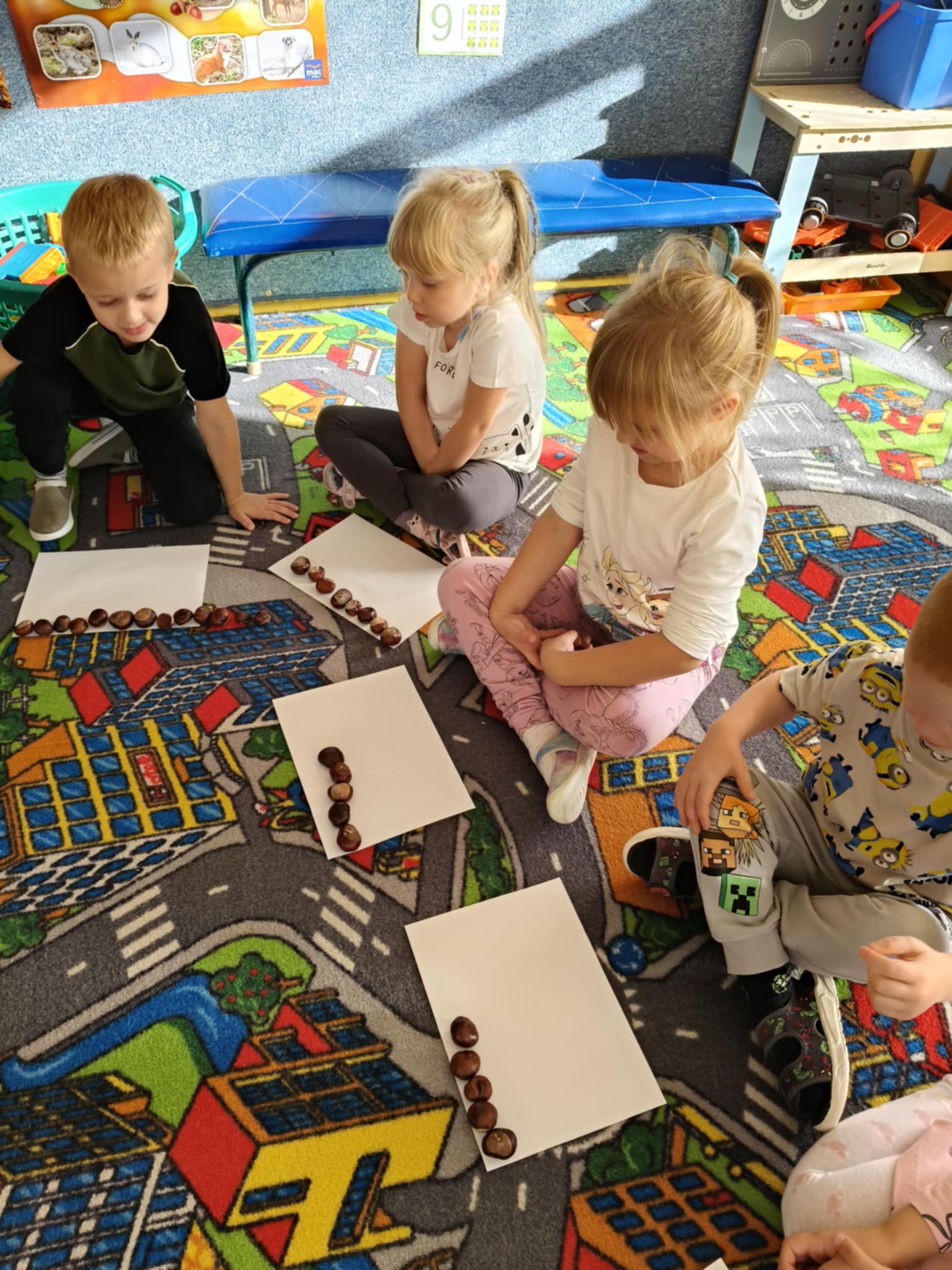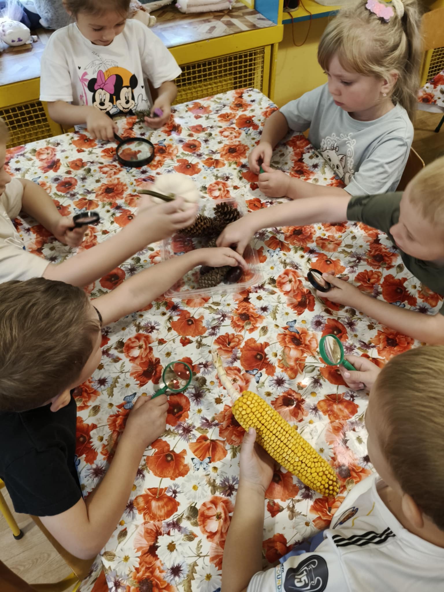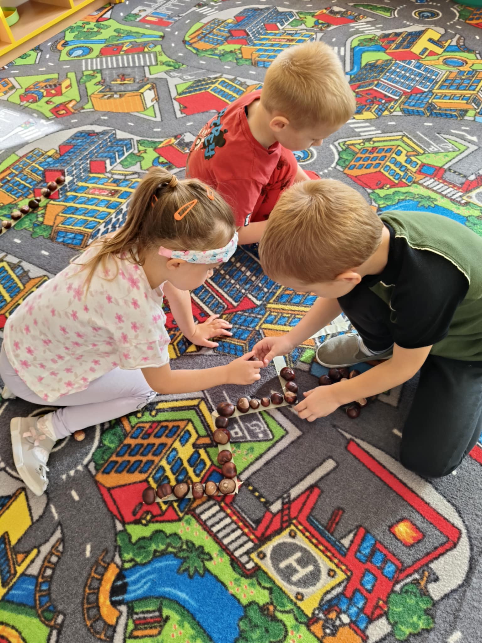 Poznajemy jesienne dary poprzez zabawy badawcze – dotykamy, wąchamy, oglądamy i odkrywamy, co kryje jesień! 🌰🍁