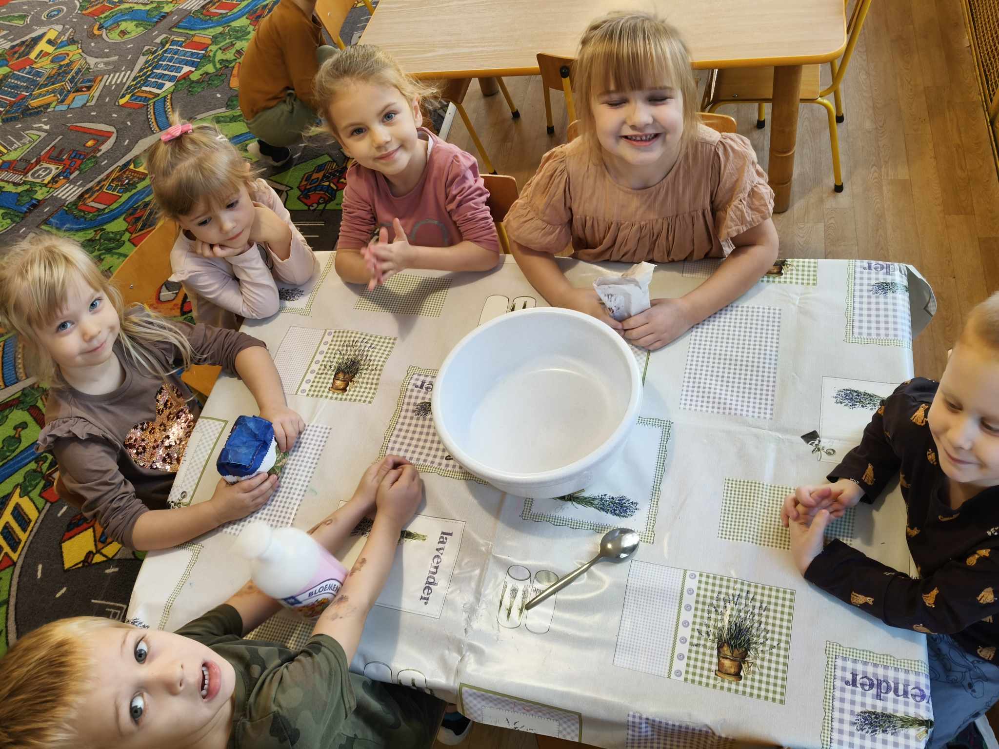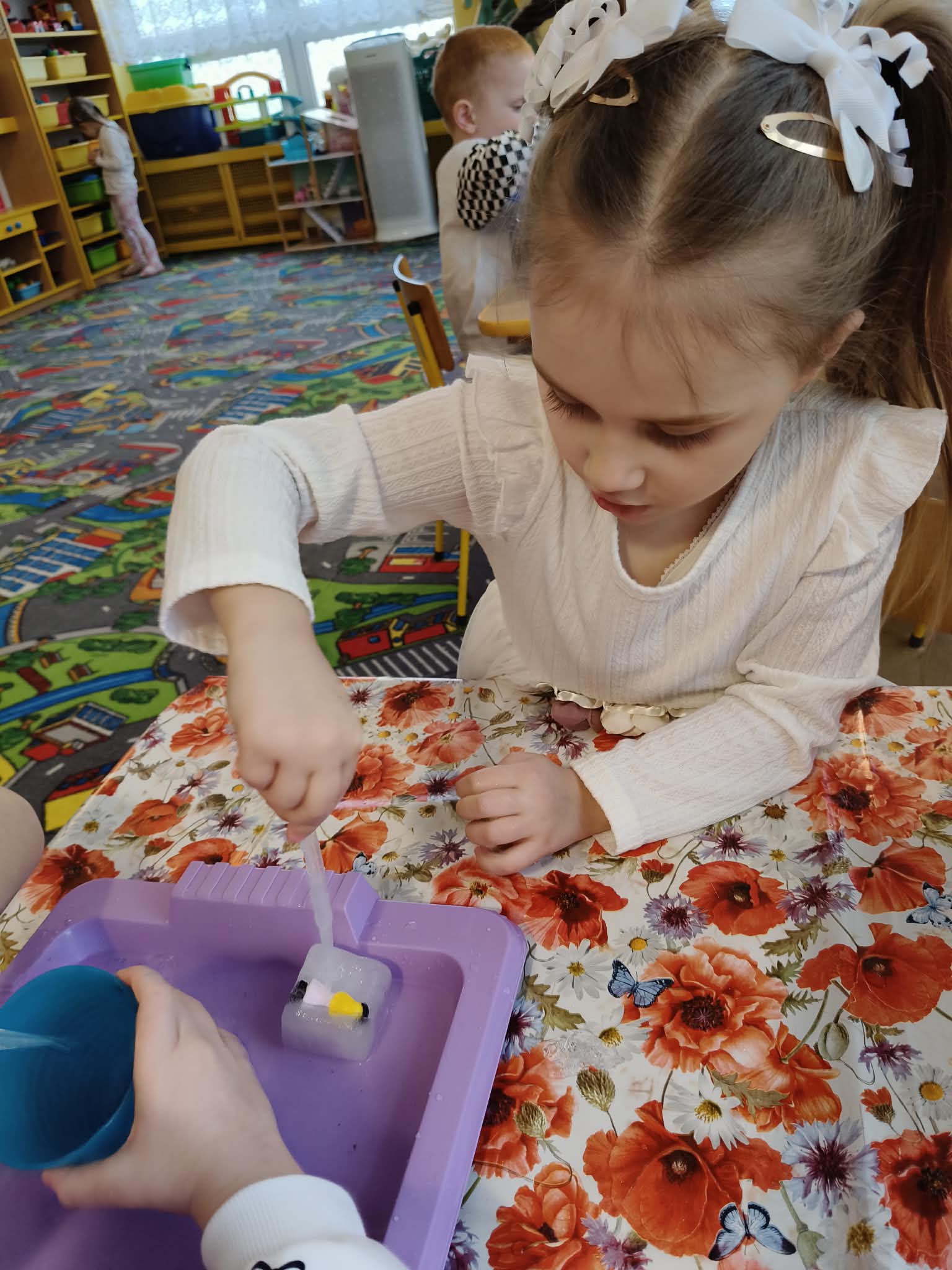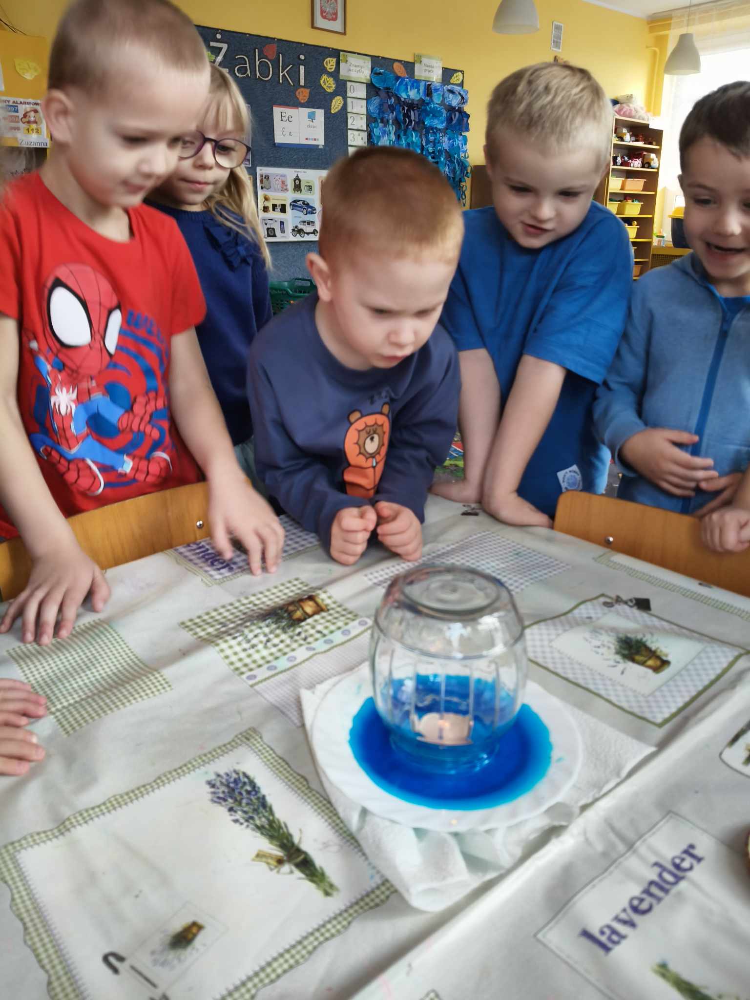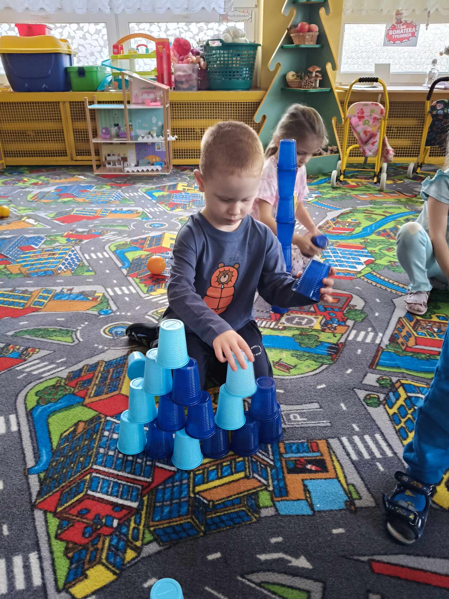 W grupie żabek odbył się Dzień Niebieski 💙. Dzieci bawiły się niebieskimi kubeczkami, szukały niebieskich przedmiotów i wyławiały z wody koraliki. Na koniec wykonaliśmy kilka eksperymentów i czekamy na stworzenie się niebieskich kryształków soli.