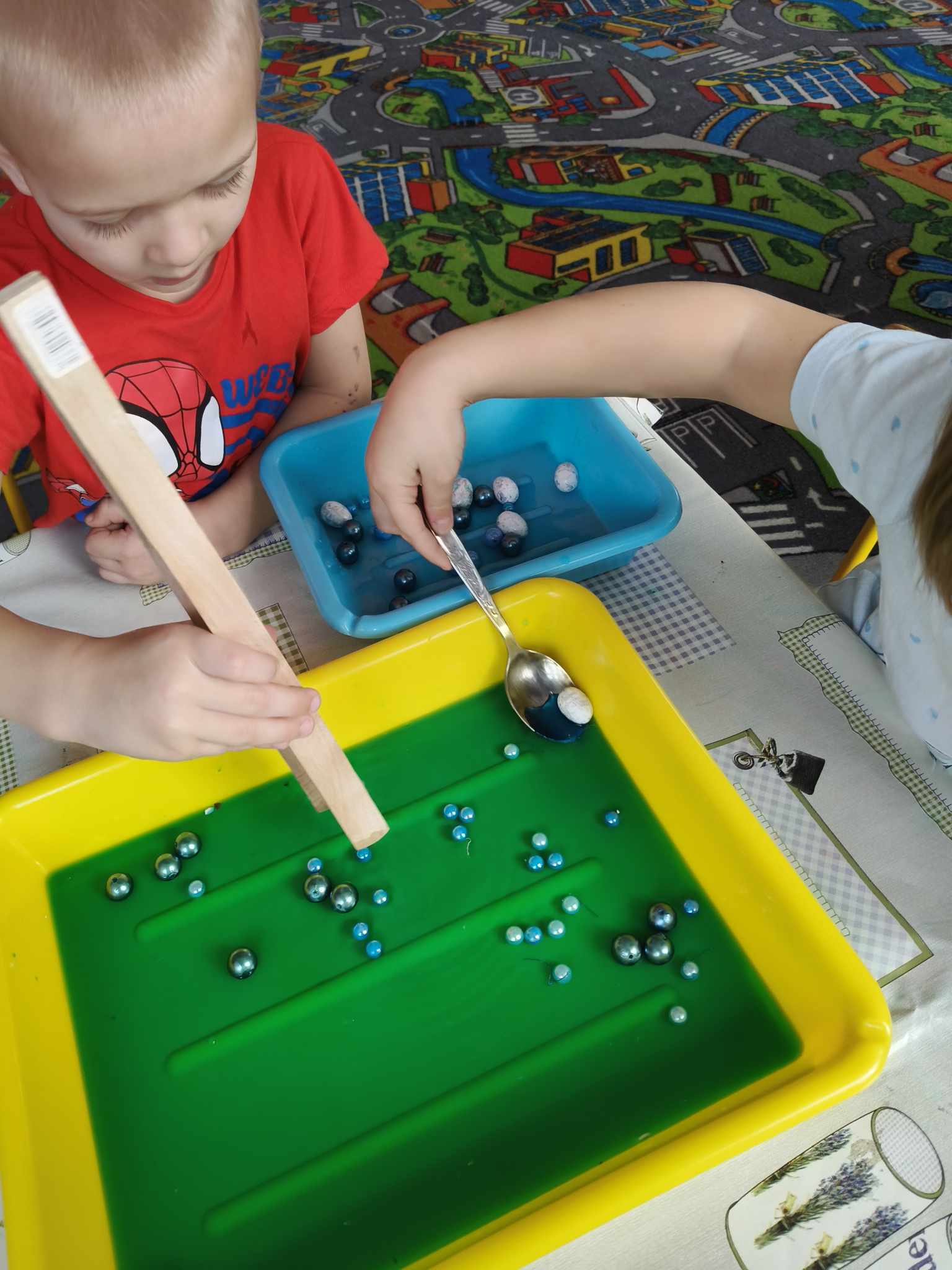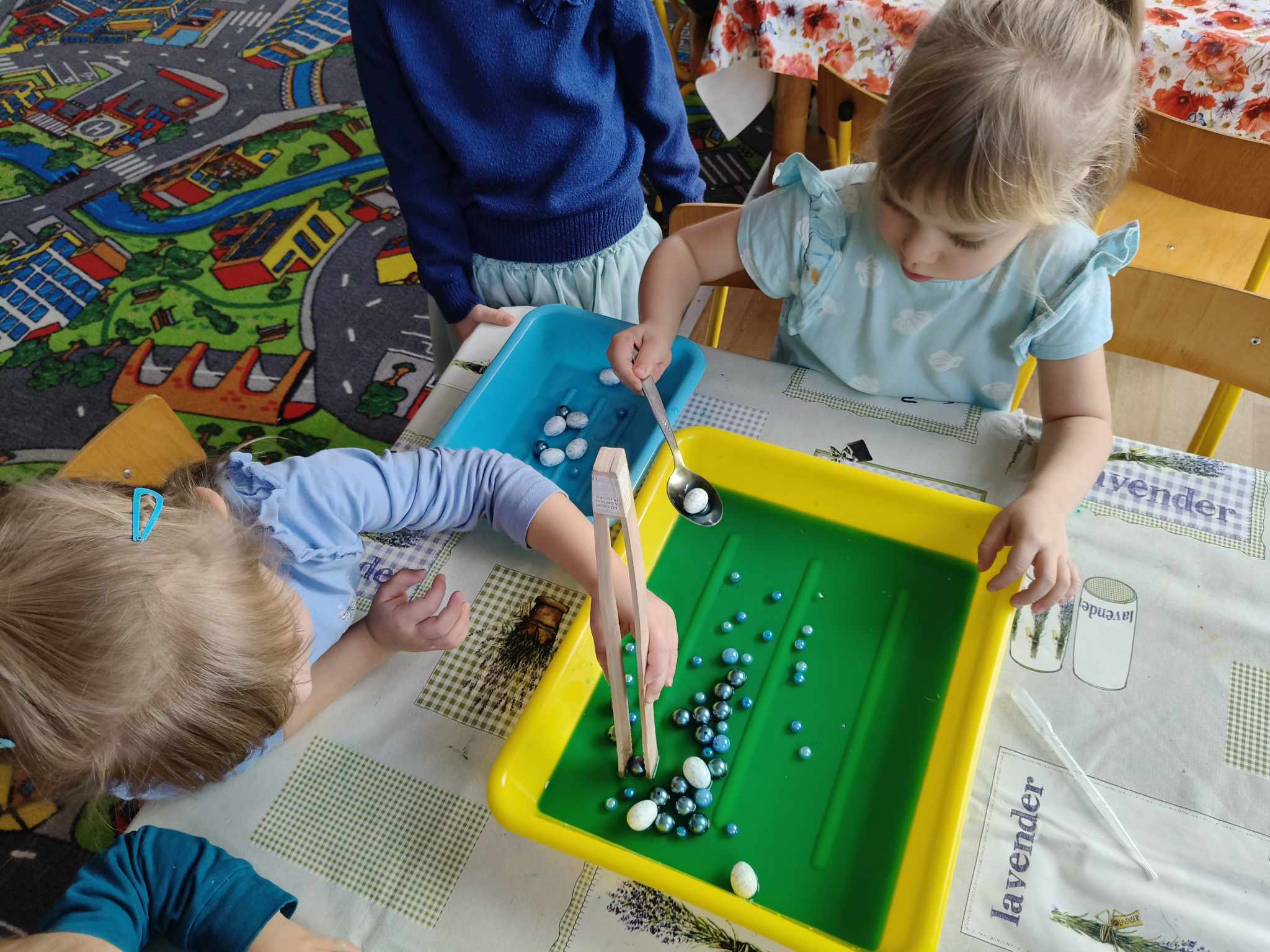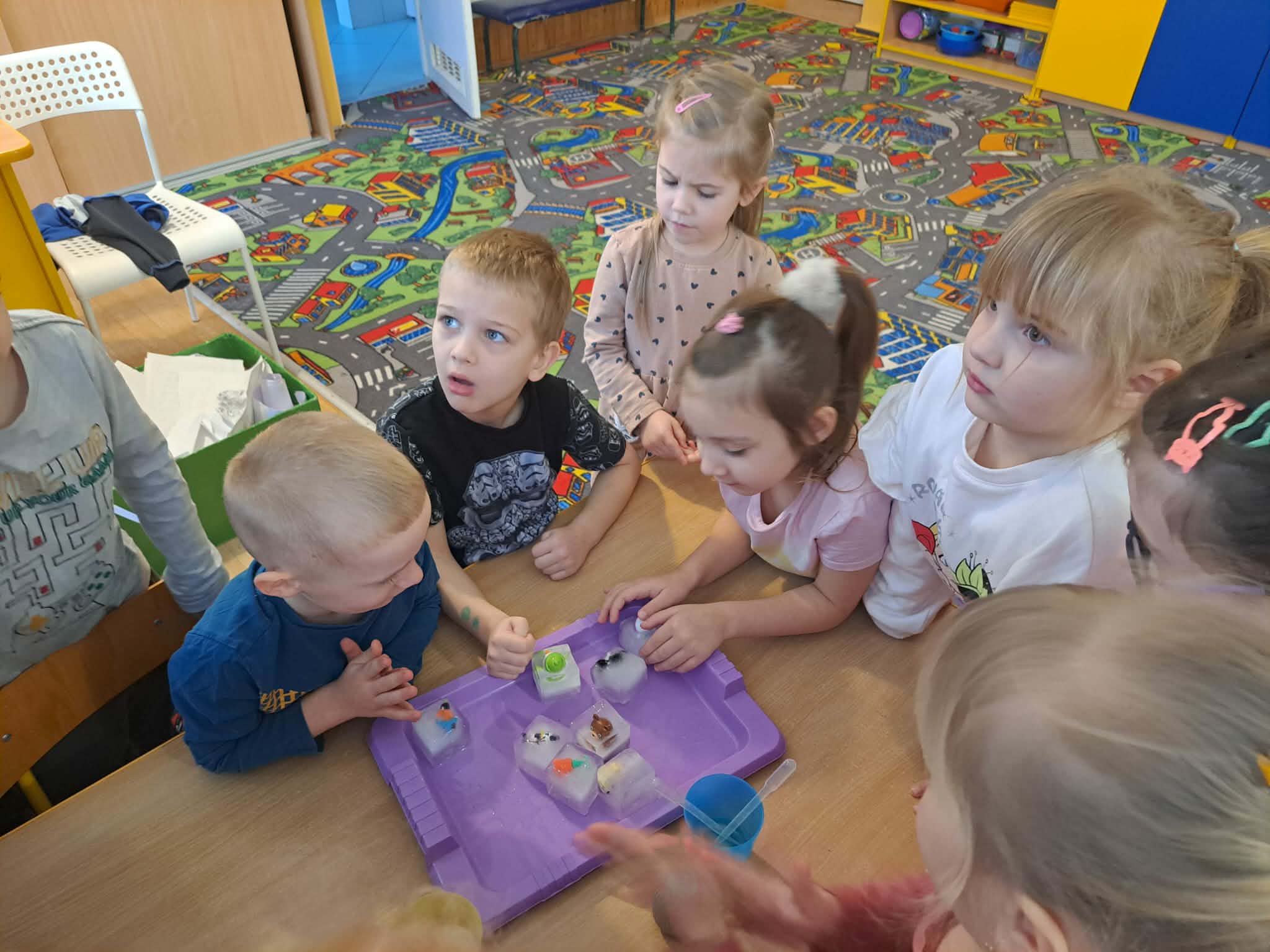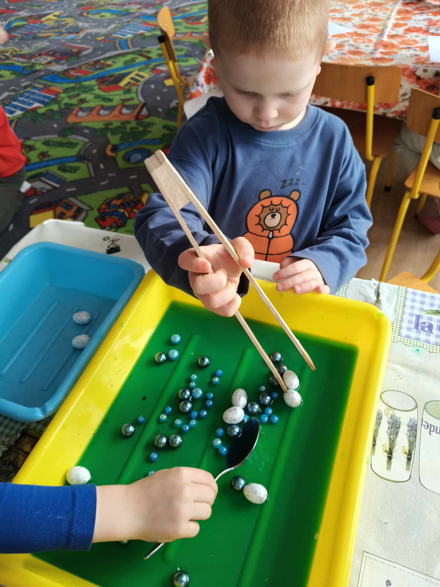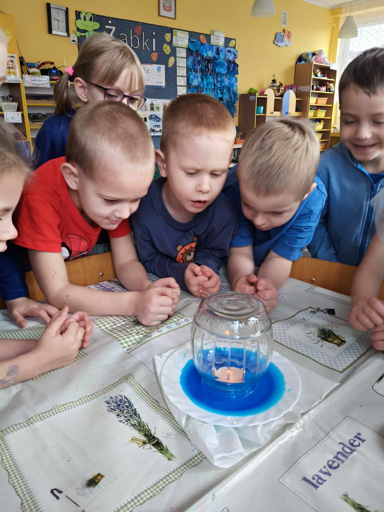 W grupie żabek odbył się Dzień Niebieski 💙. Dzieci bawiły się niebieskimi kubeczkami, szukały niebieskich przedmiotów i wyławiały z wody koraliki. Na koniec wykonaliśmy kilka eksperymentów i czekamy na stworzenie się niebieskich kryształków soli.