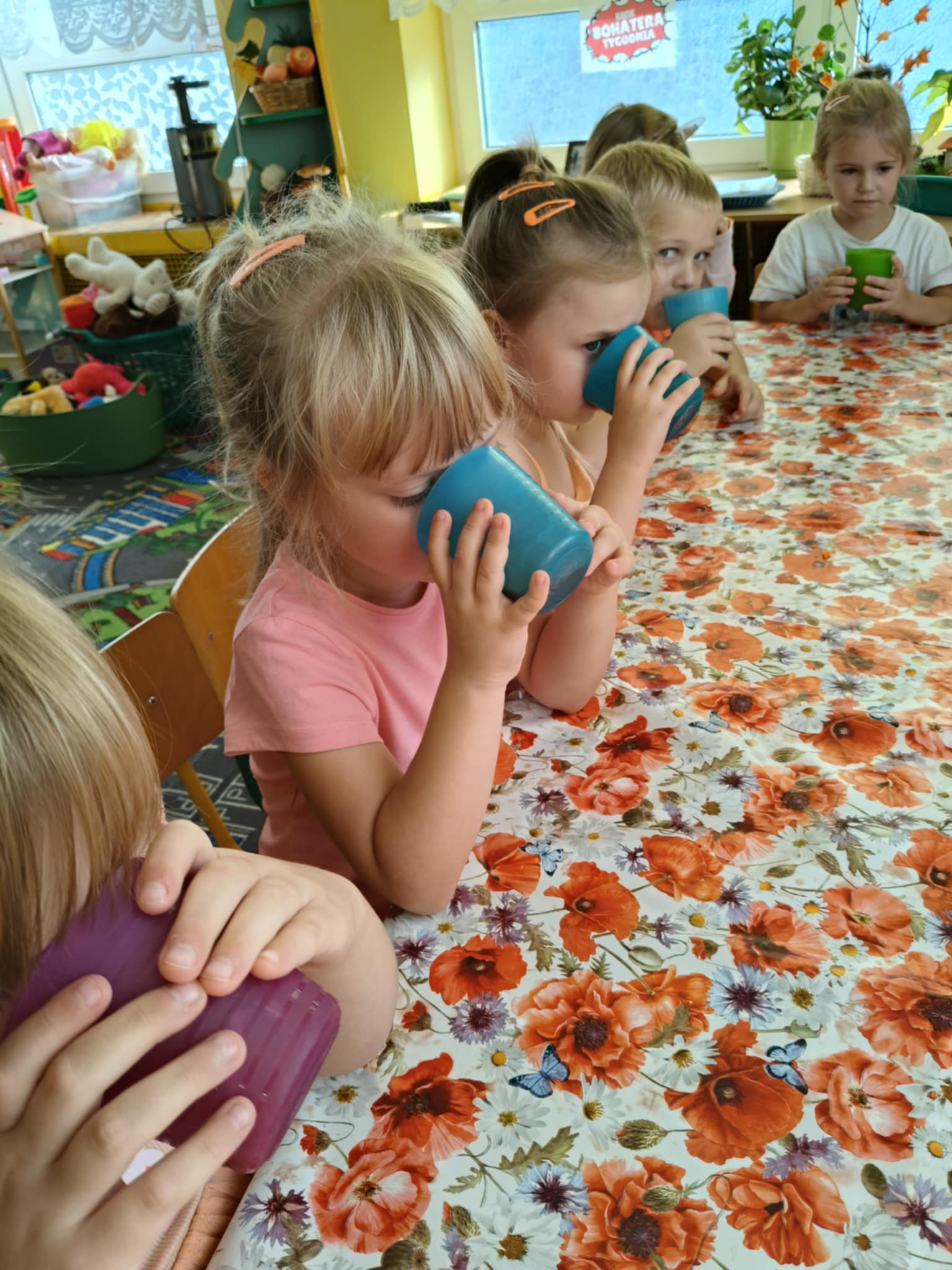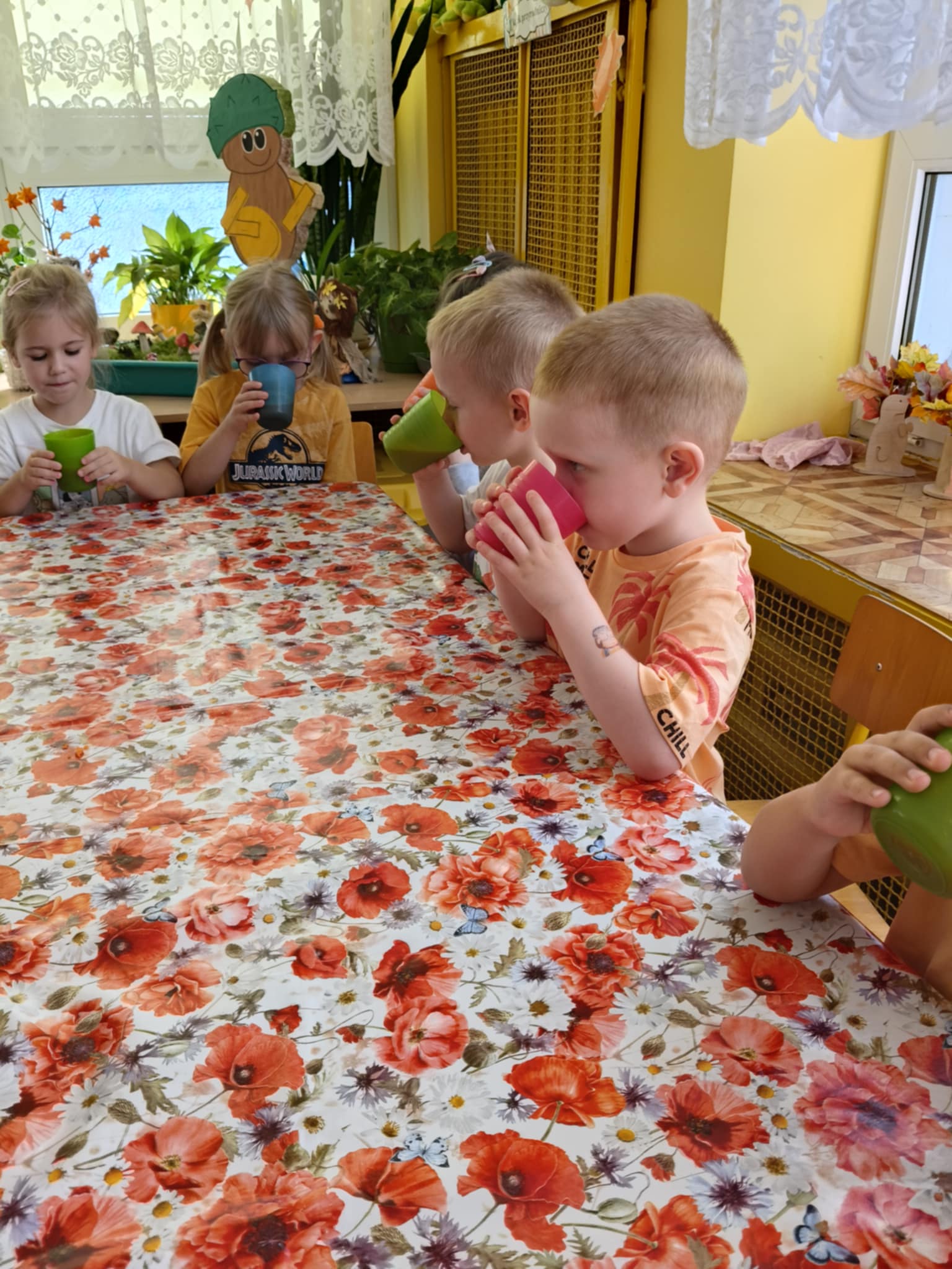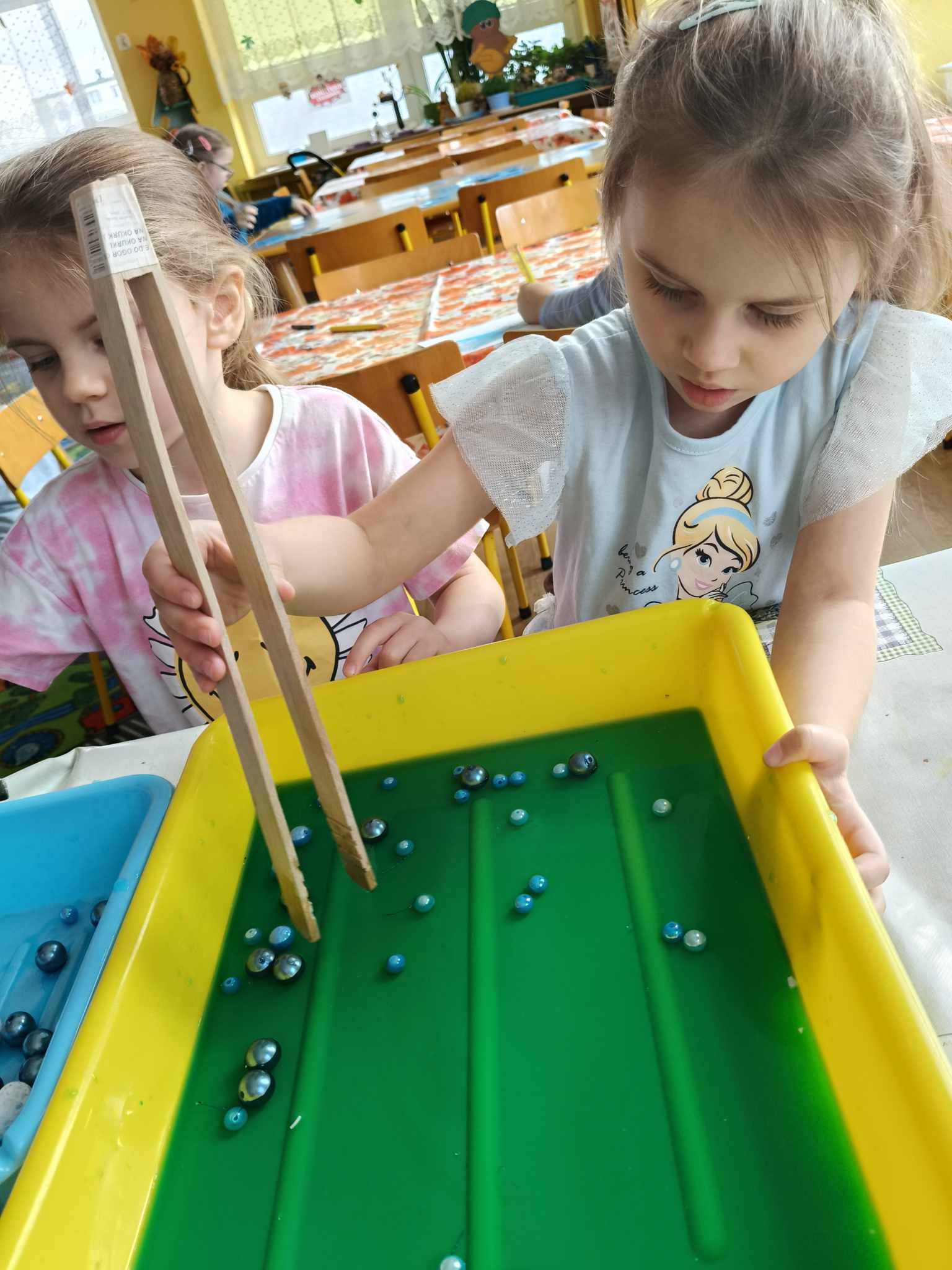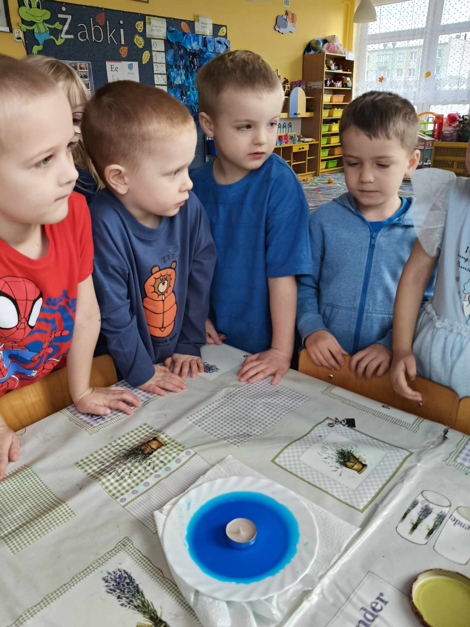 W grupie żabek odbył się Dzień Niebieski 💙. Dzieci bawiły się niebieskimi kubeczkami, szukały niebieskich przedmiotów i wyławiały z wody koraliki. Na koniec wykonaliśmy kilka eksperymentów i czekamy na stworzenie się niebieskich kryształków soli.