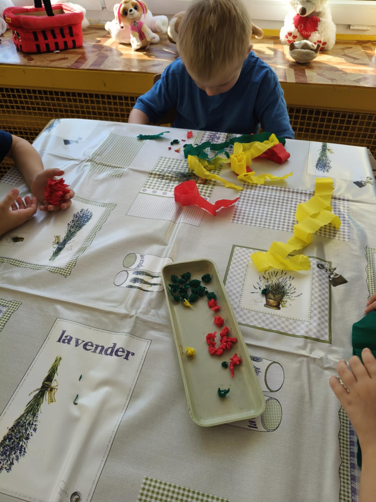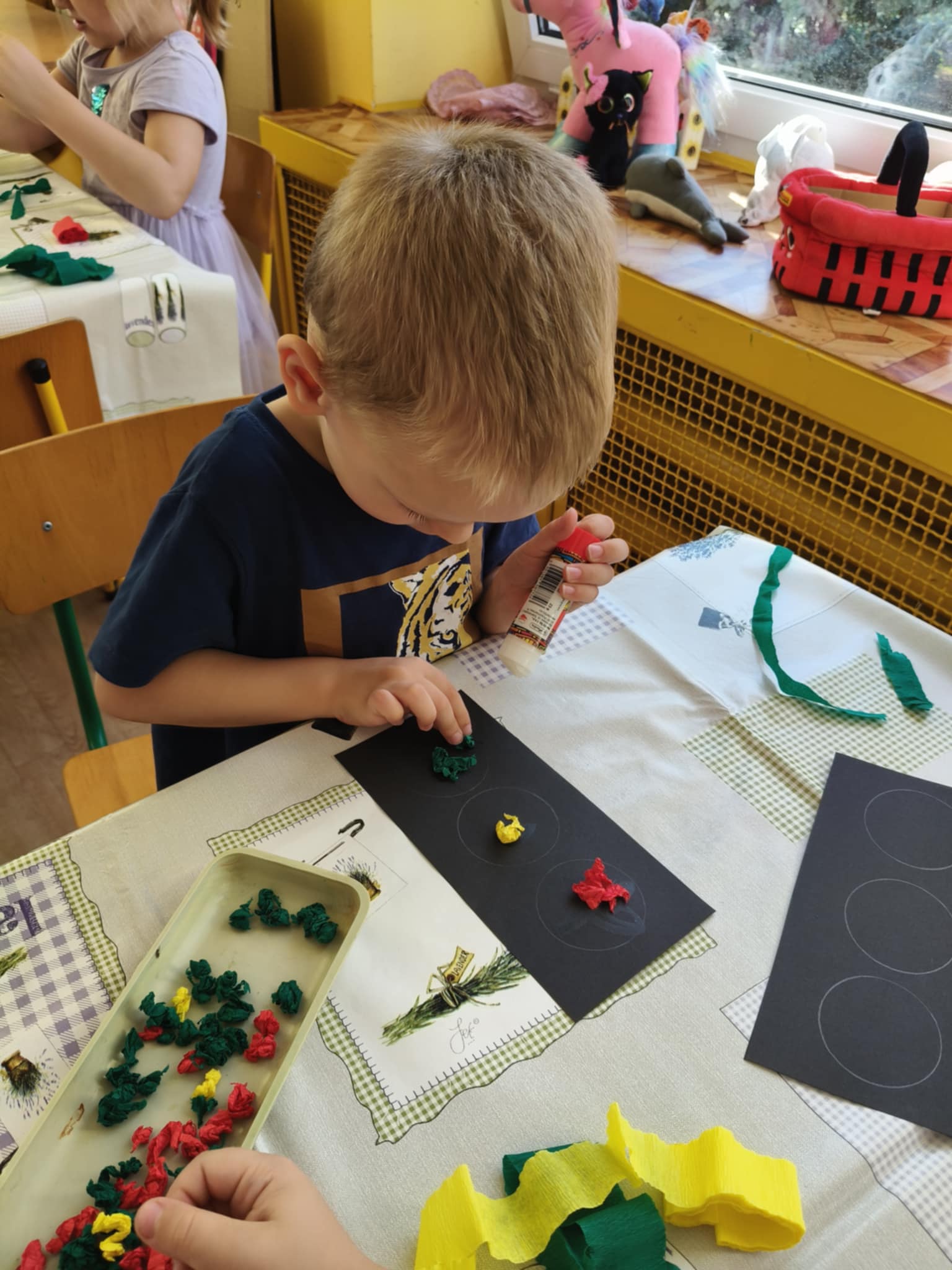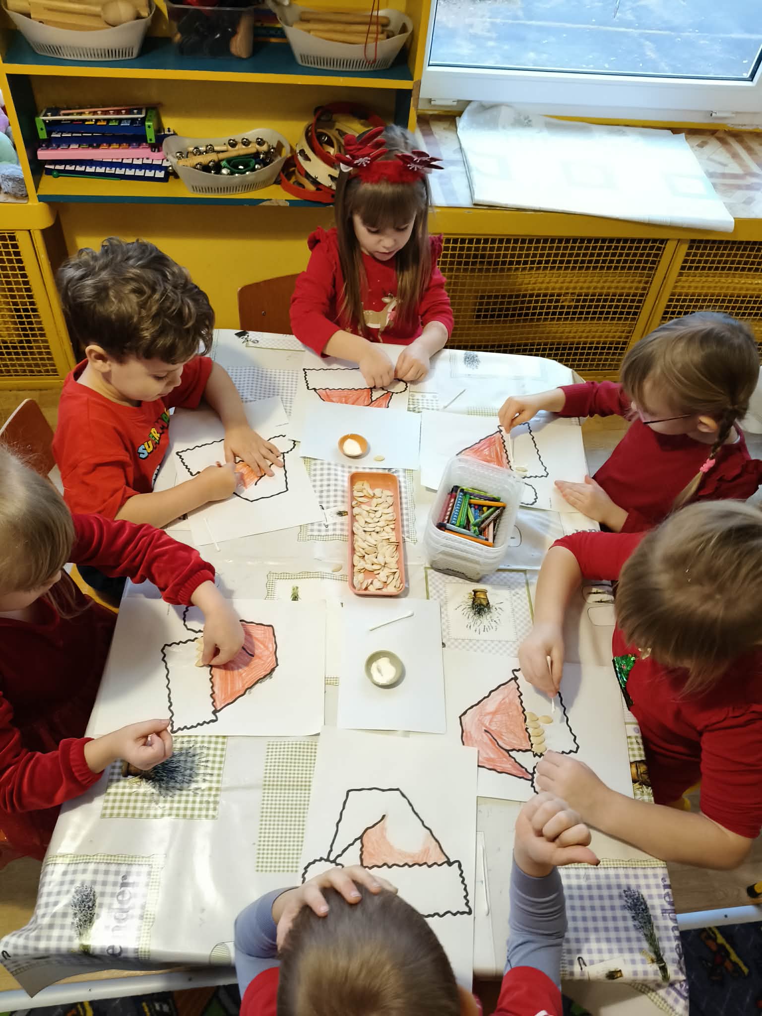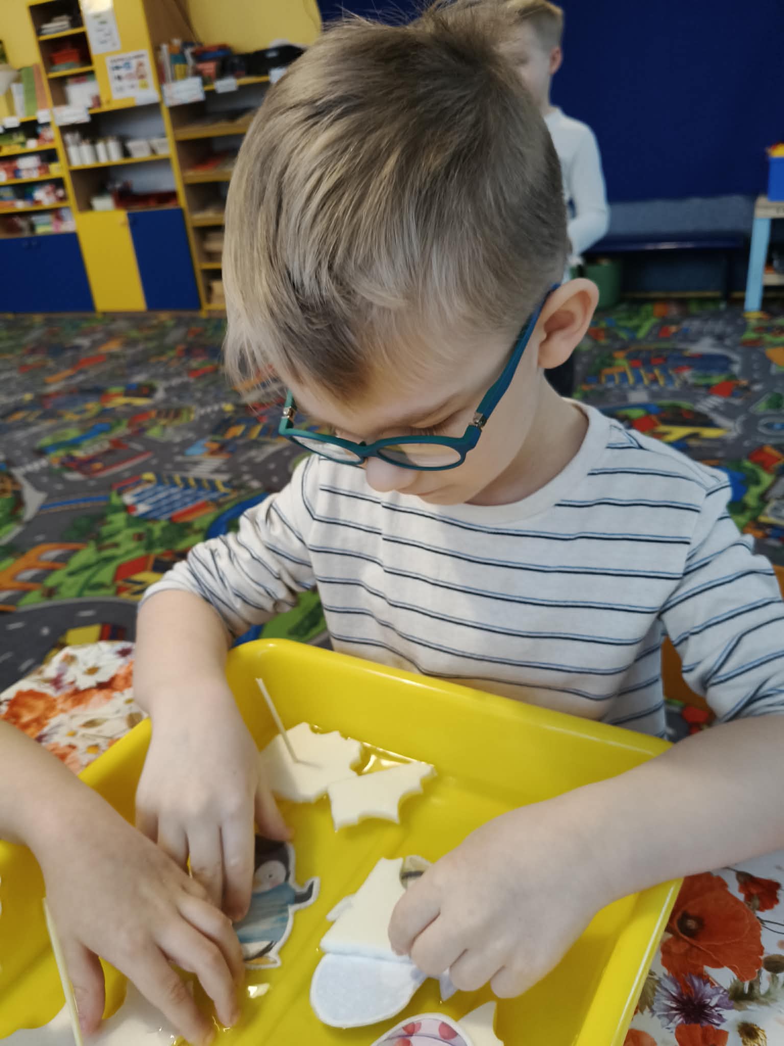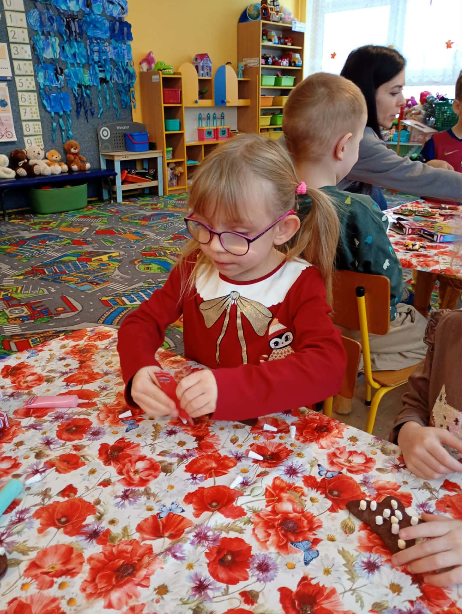 Dzieci poprzez zabawę poznawały jego odcienie i faktury, tworząc przy tym radosną, świąteczną atmosferę ✨