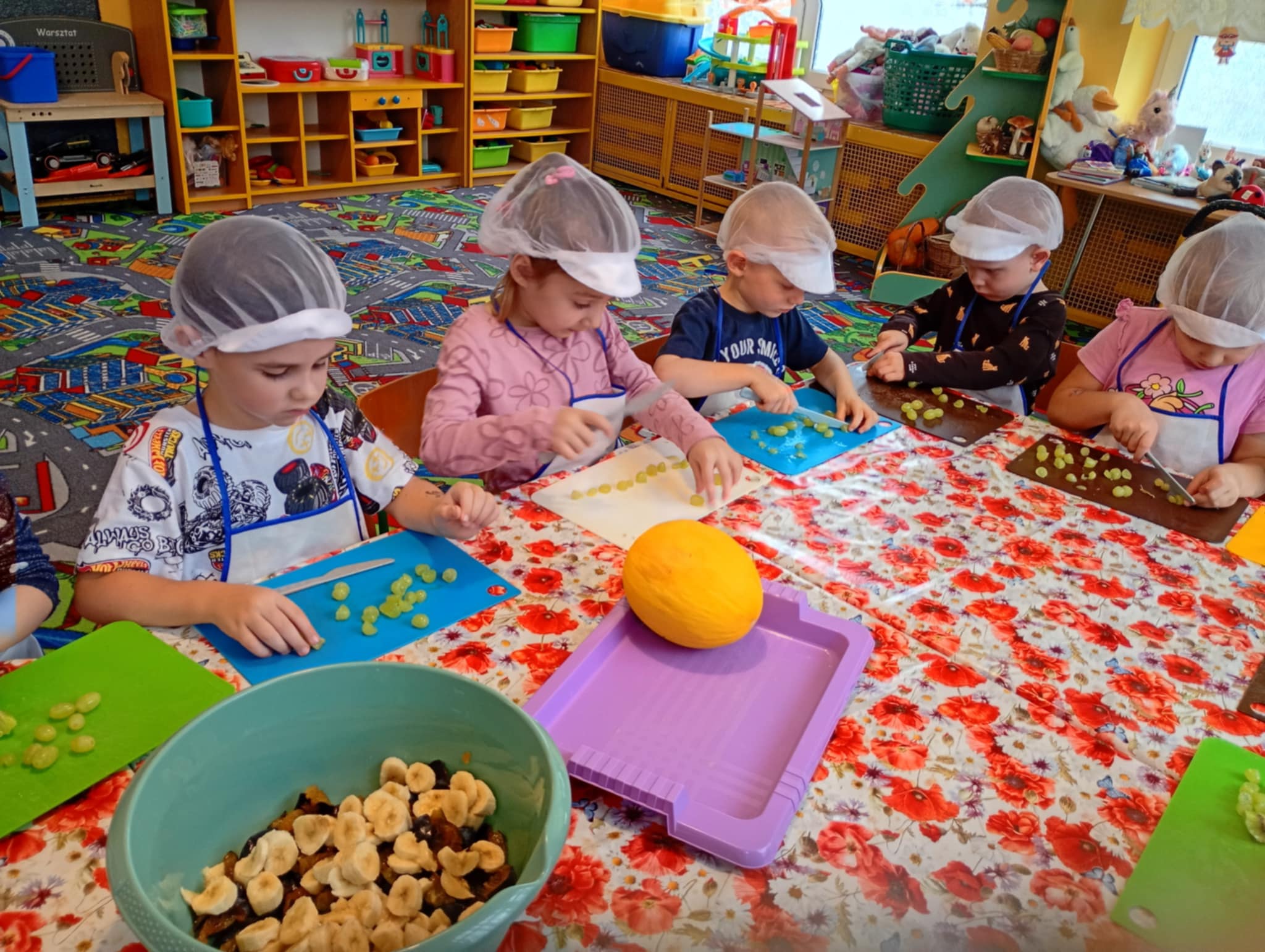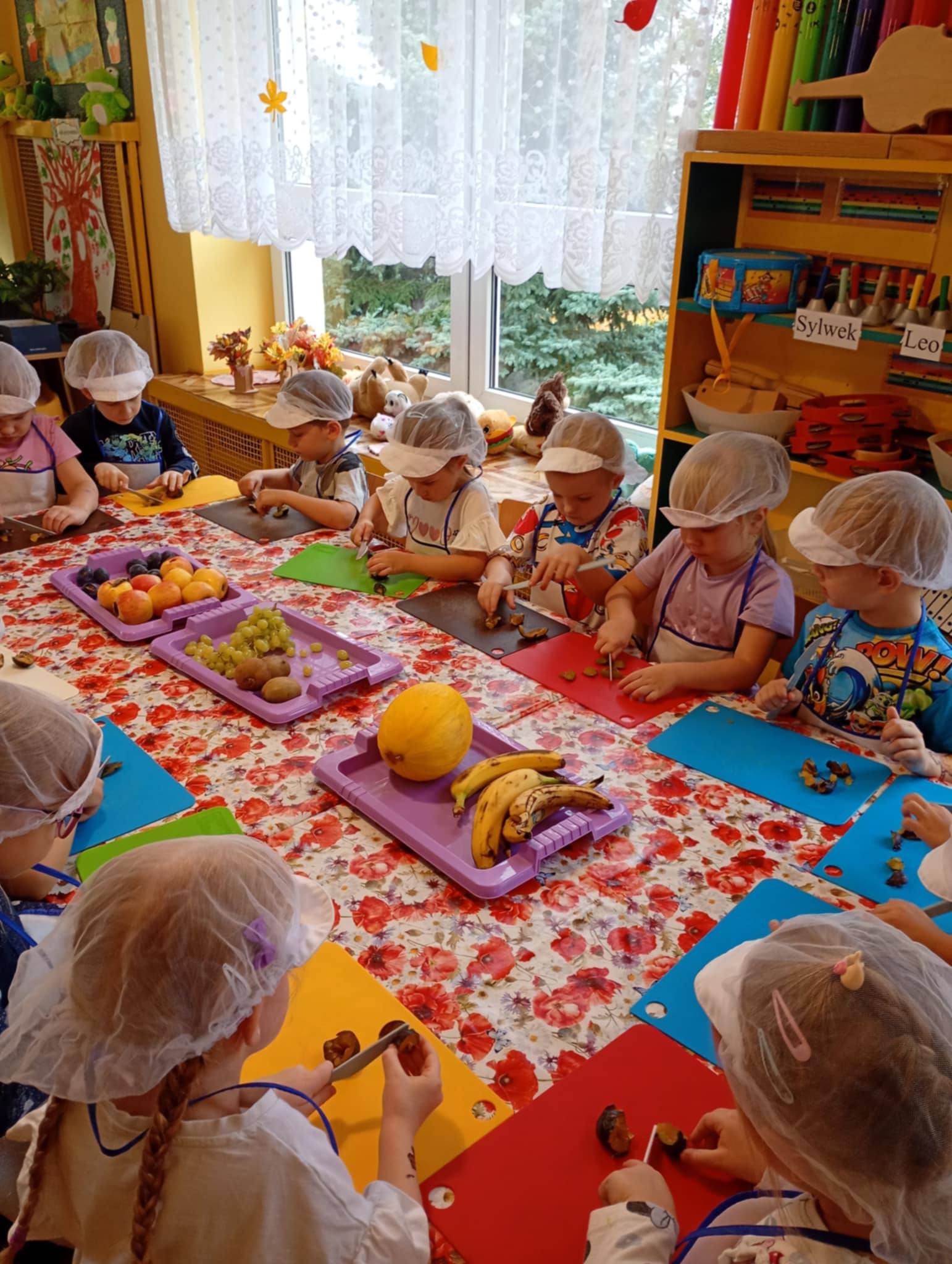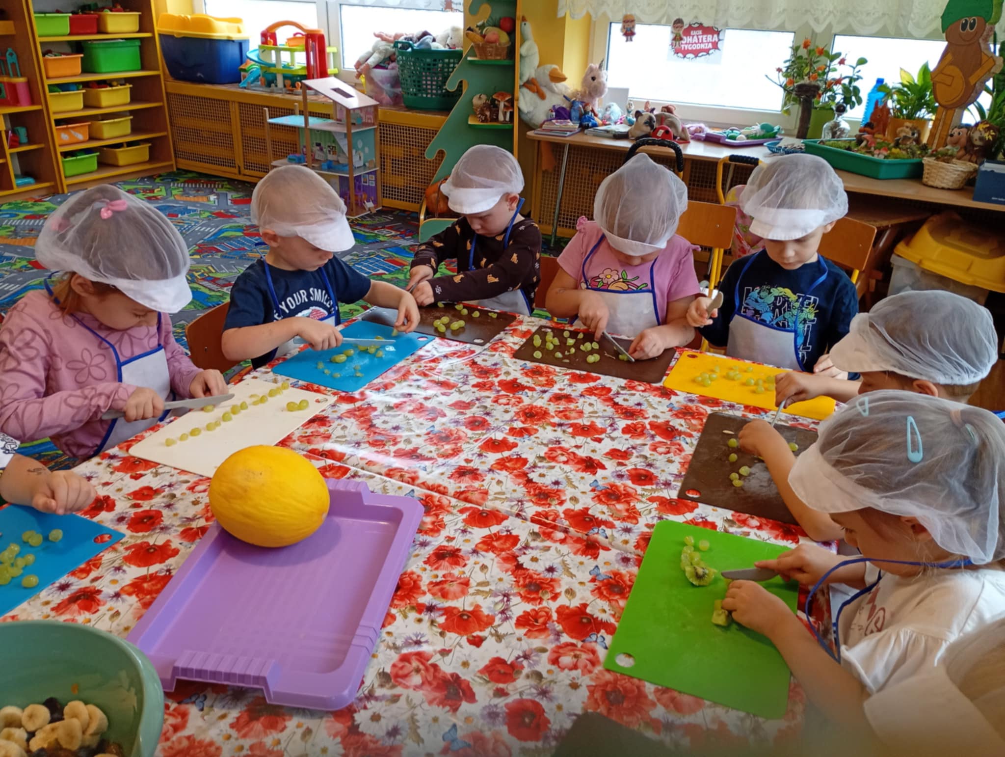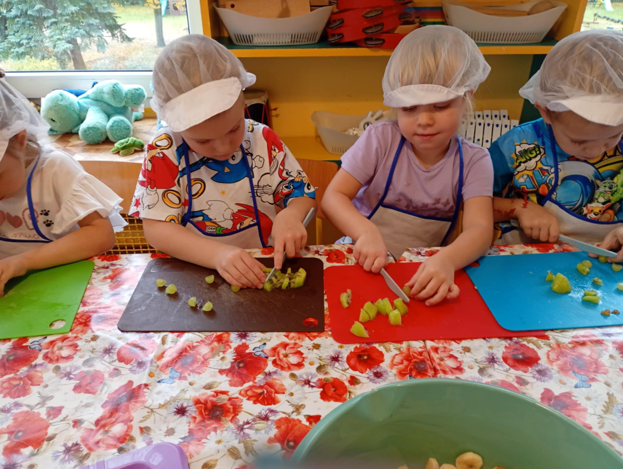 Żabki przyrządziły sałatkę owocową w ramach projektu Małe Kuchcikowo