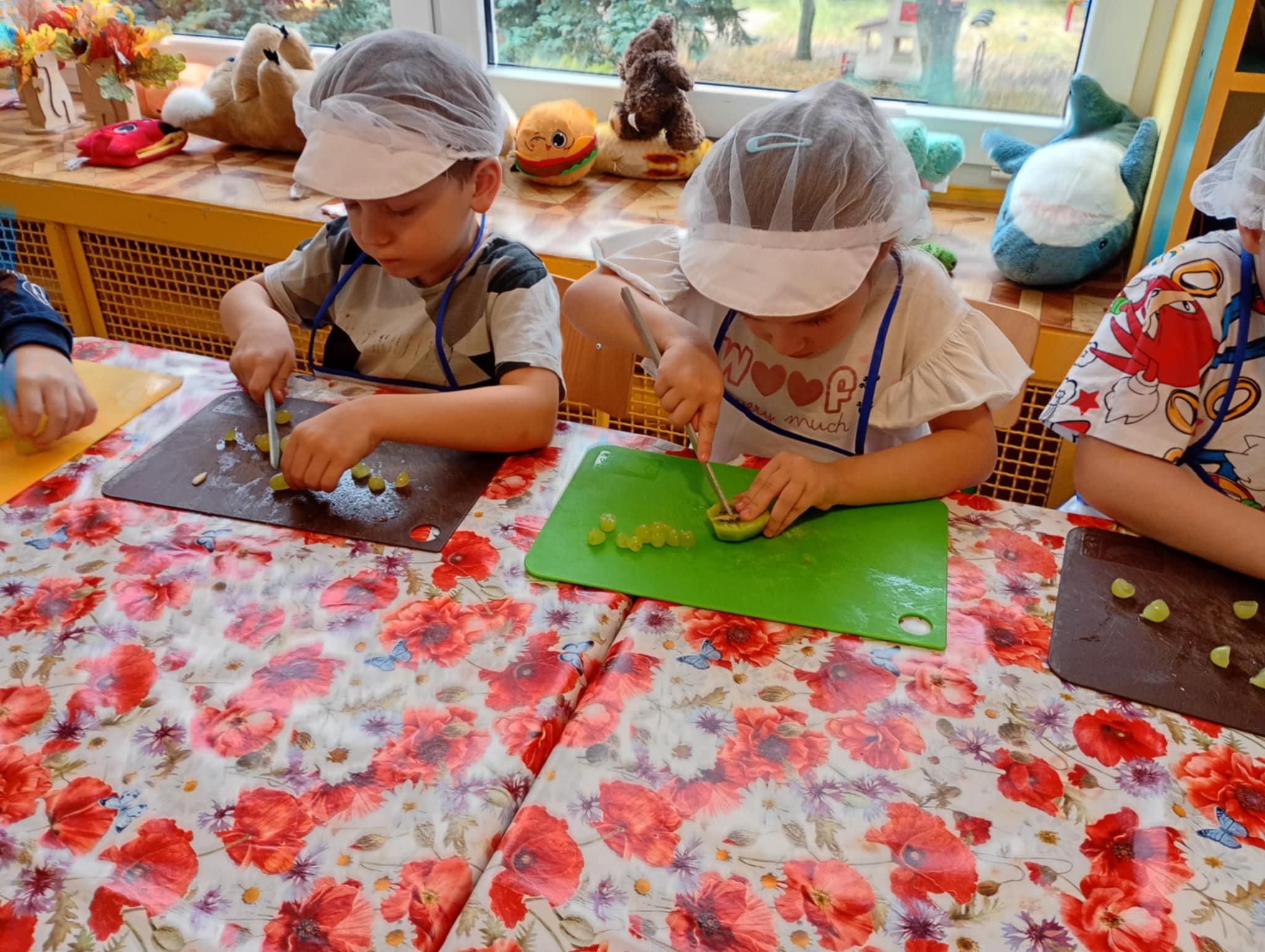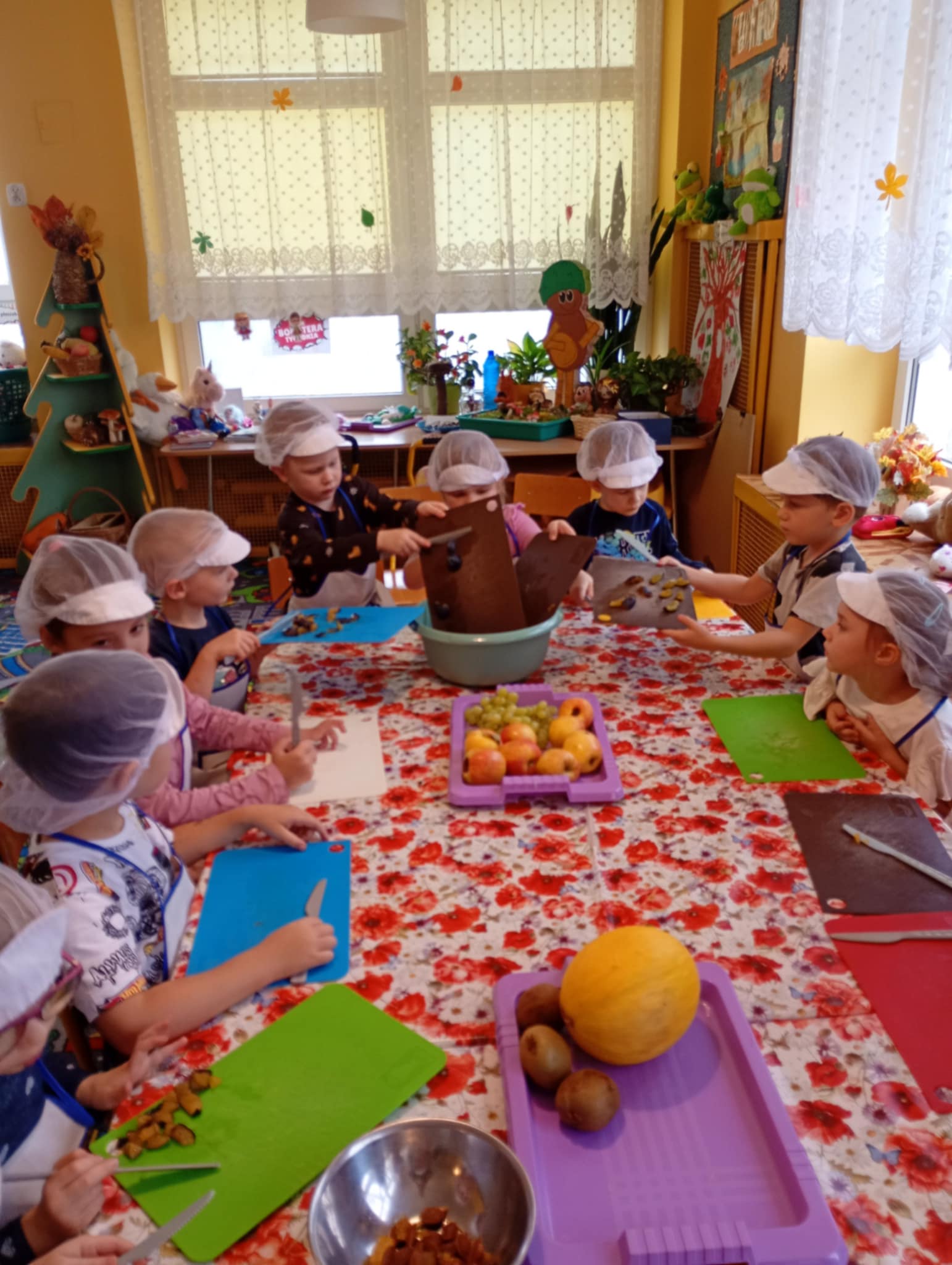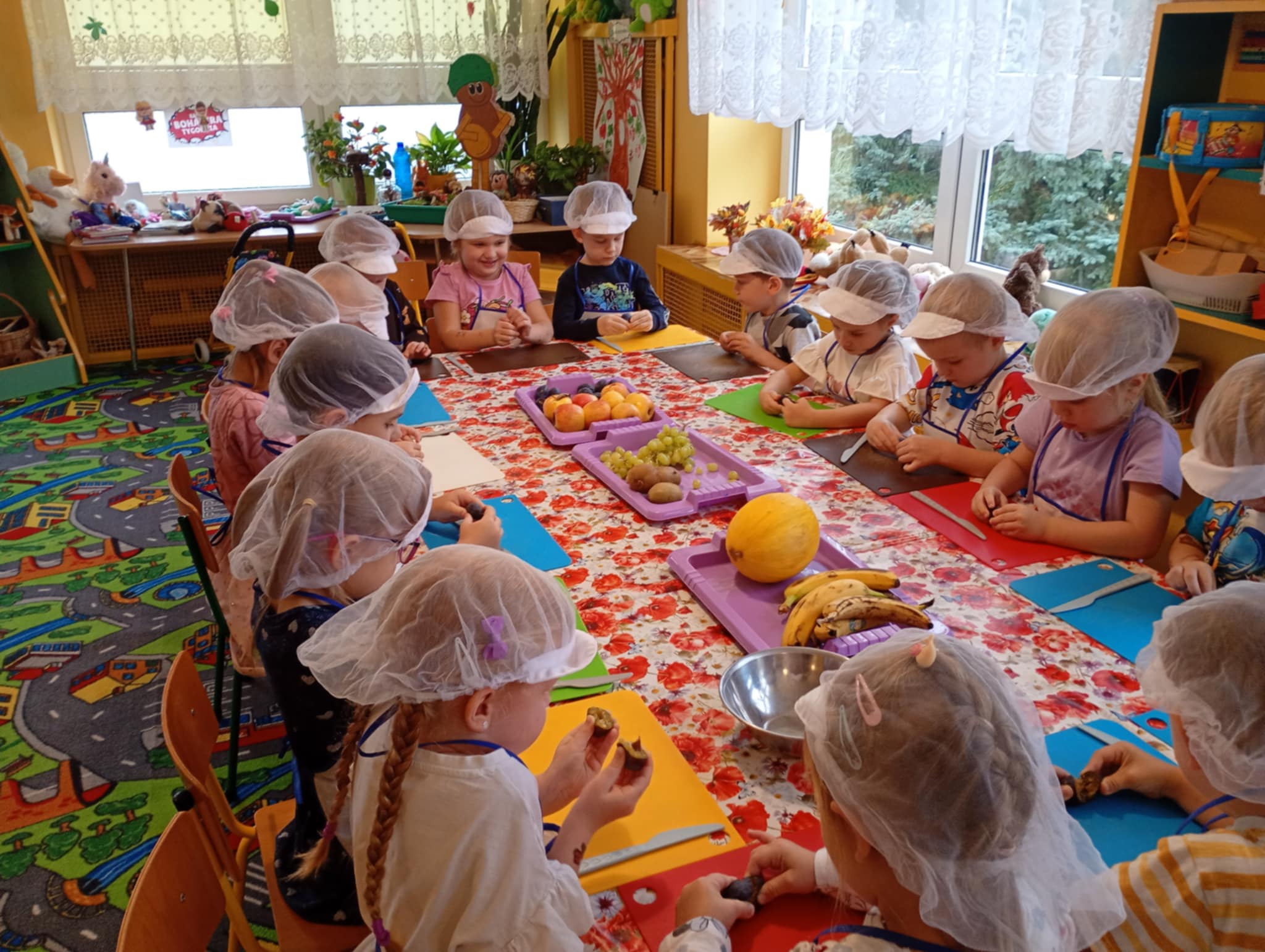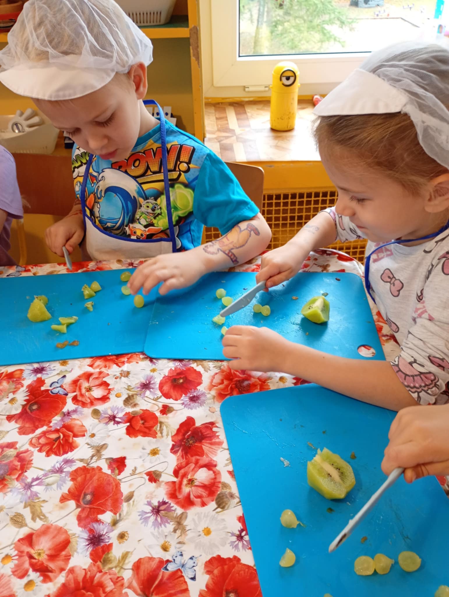 Żabki przyrządziły sałatkę owocową w ramach projektu Małe Kuchcikowo