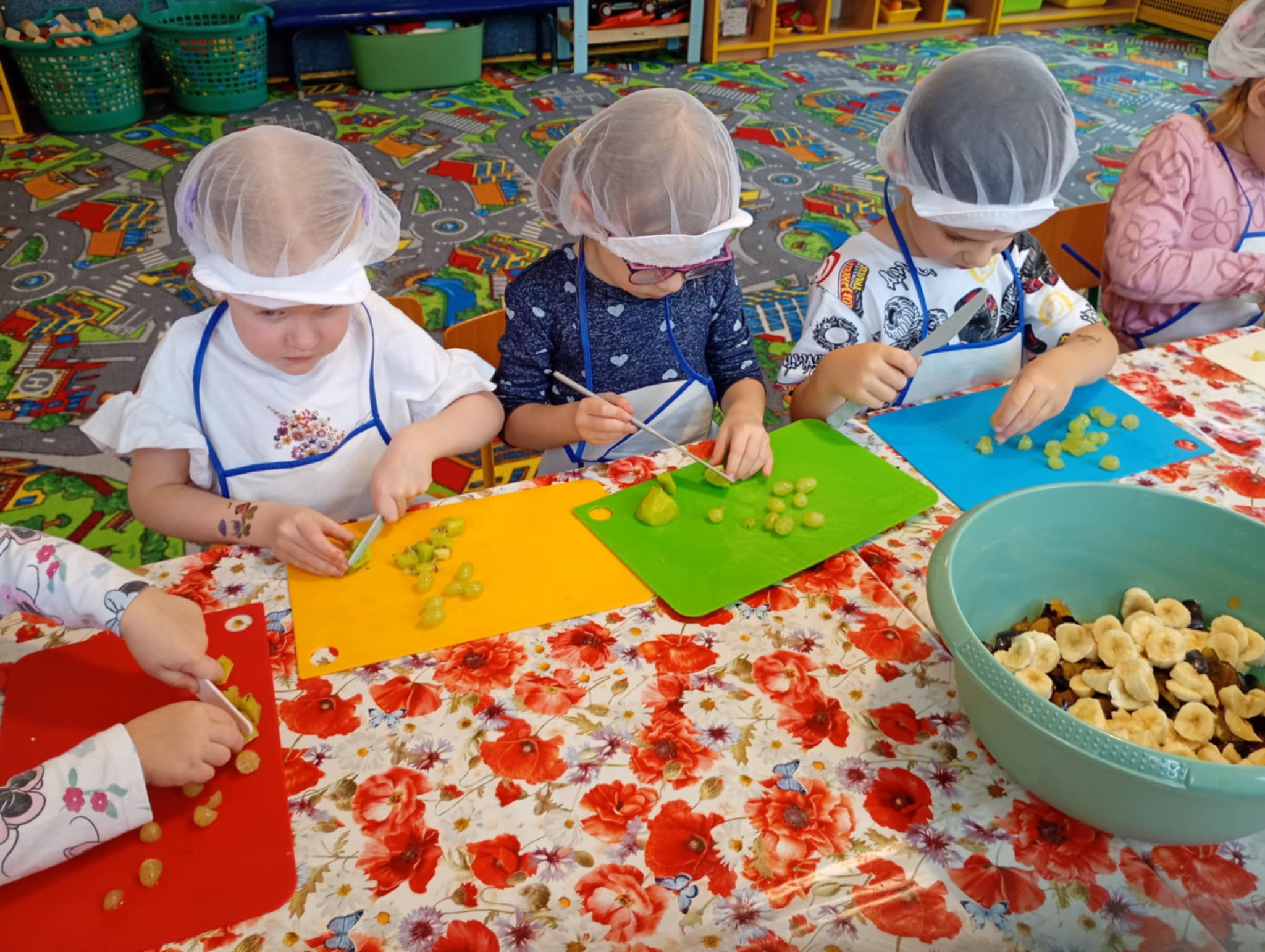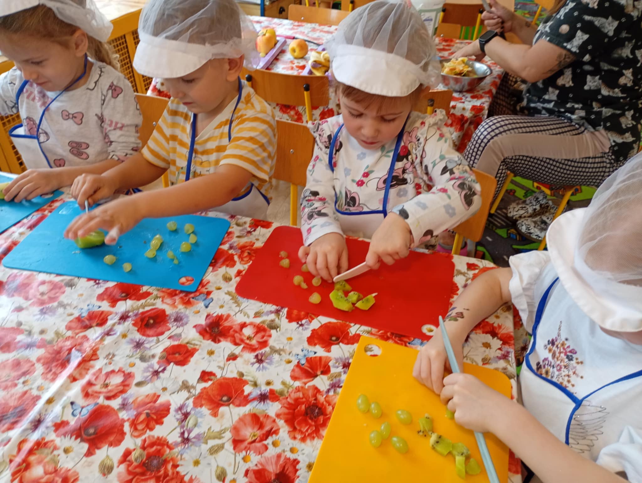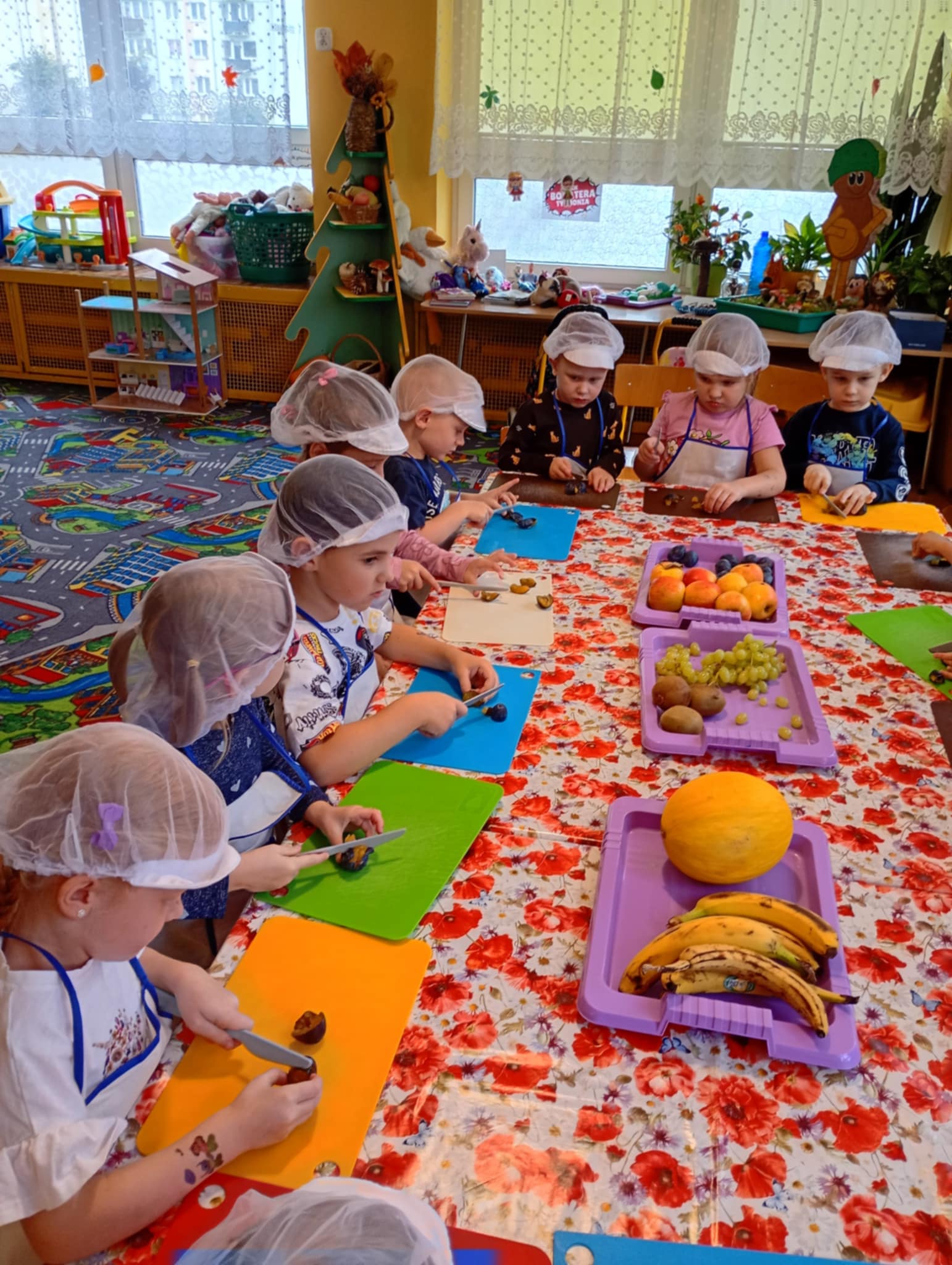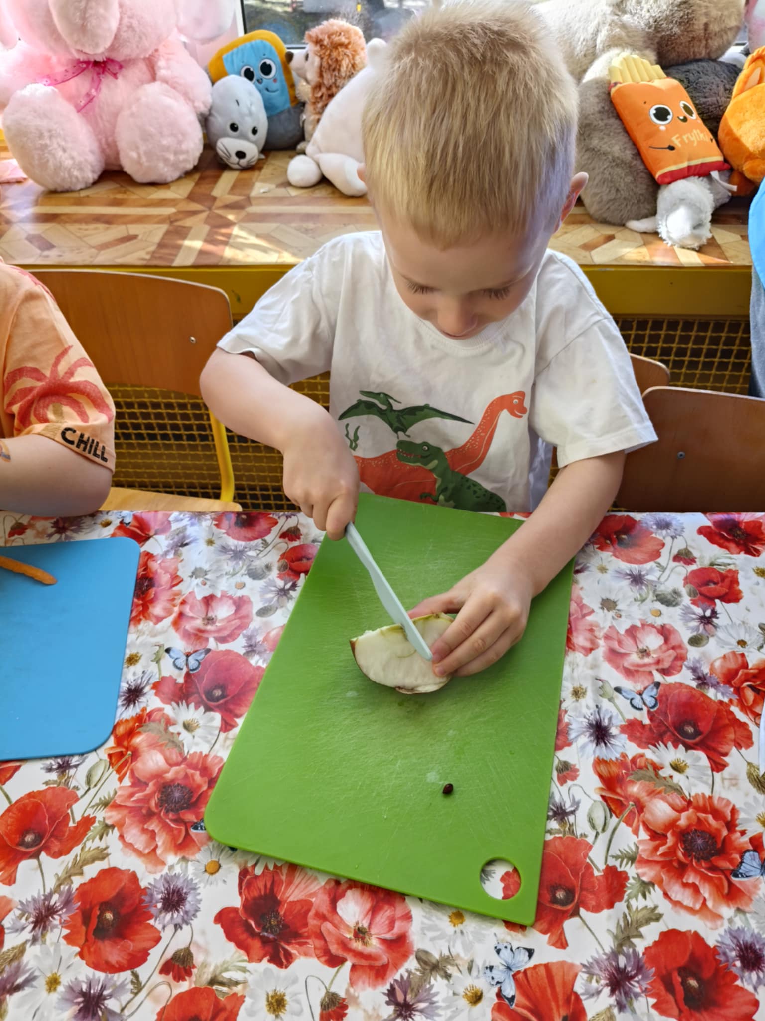 Żabki przyrządziły sałatkę owocową w ramach projektu Małe Kuchcikowo