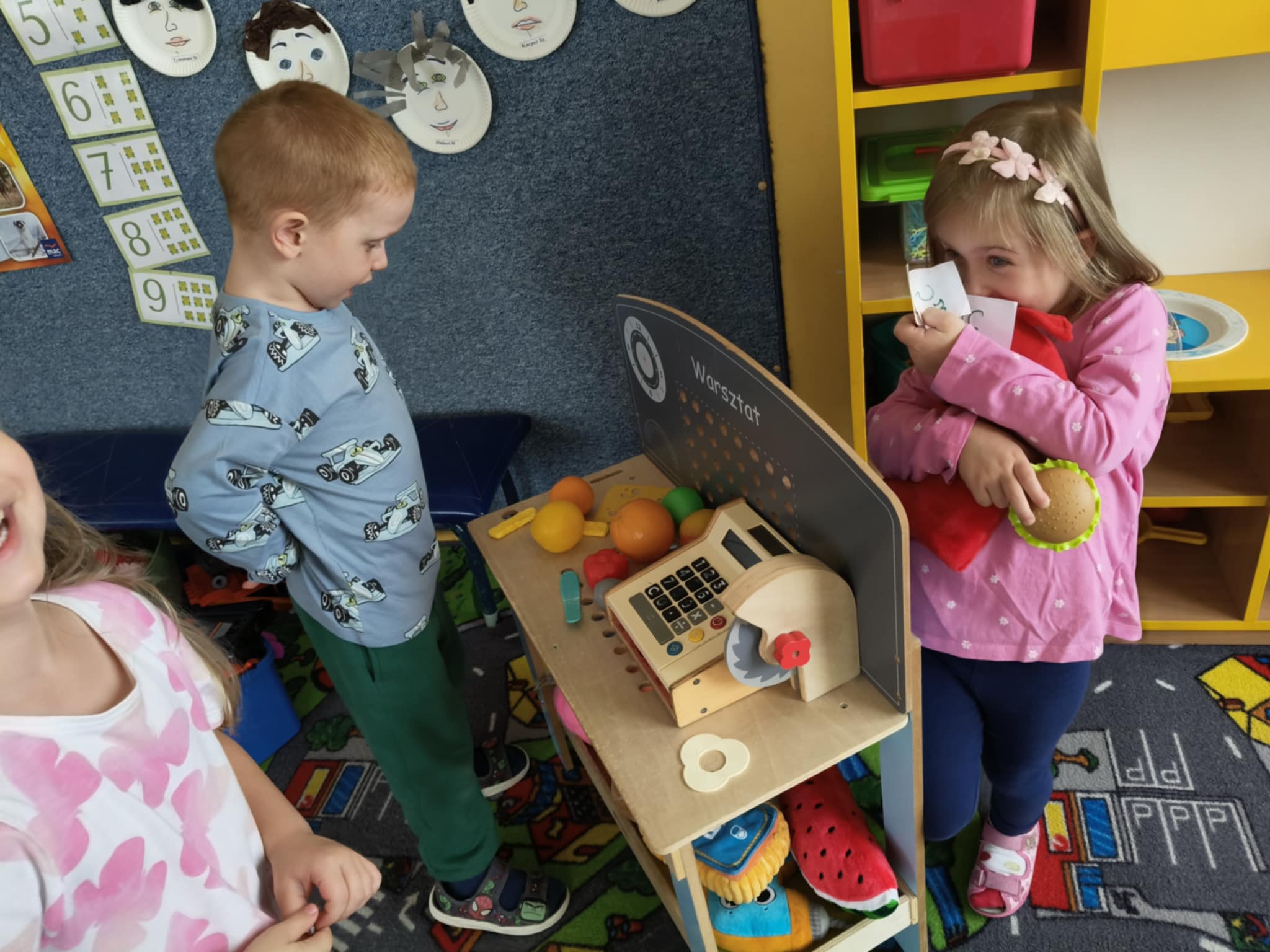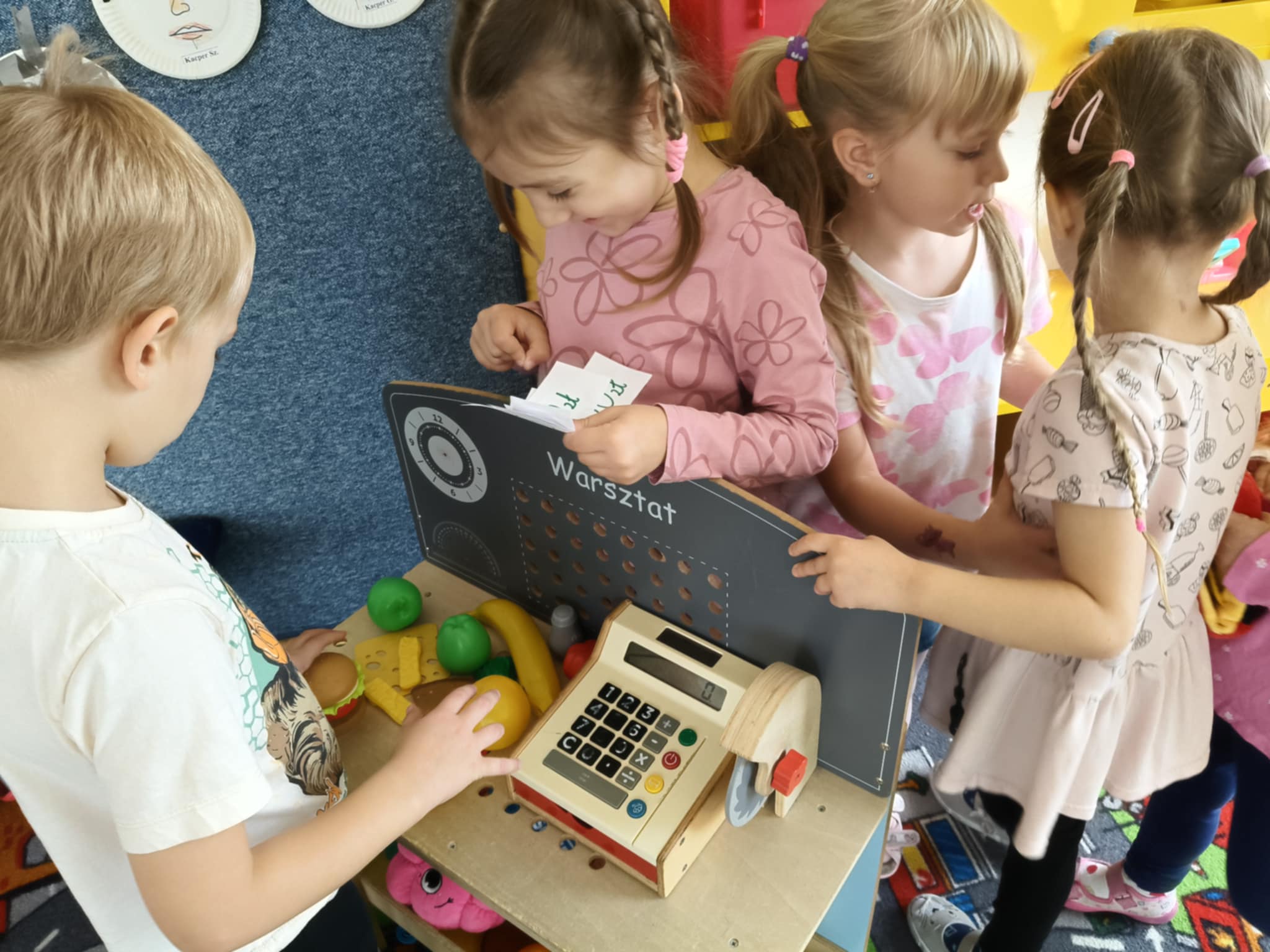 Dzieci wcieliły się również w sprzedawców i kupujących i zasady zabawy w sklep.