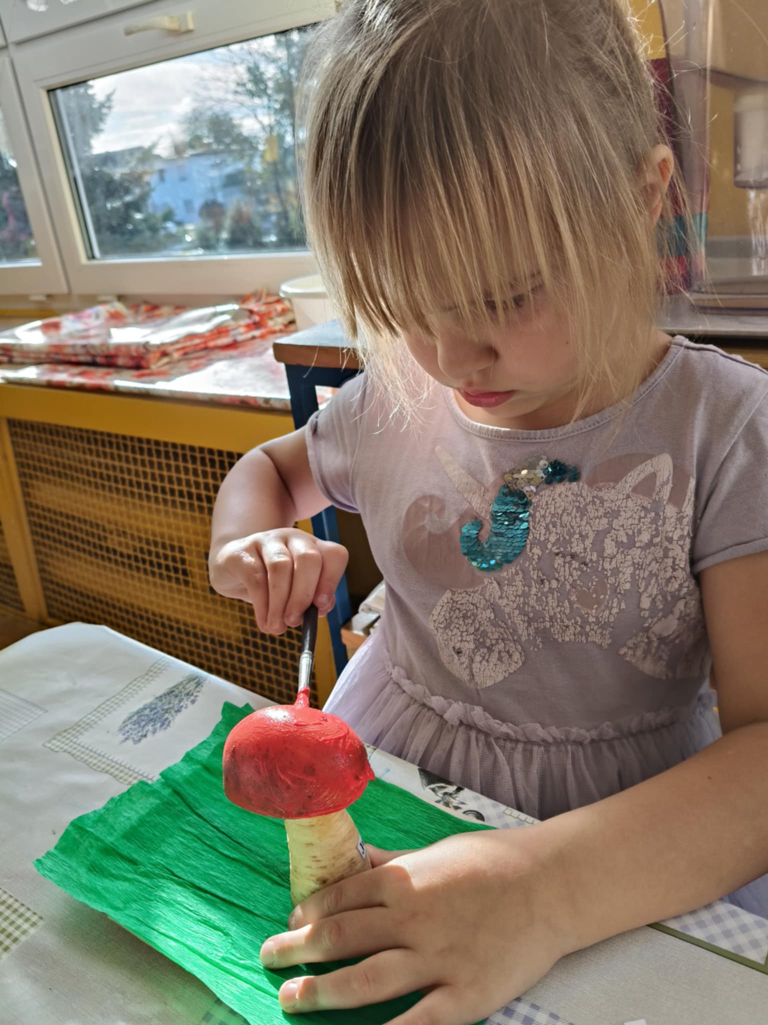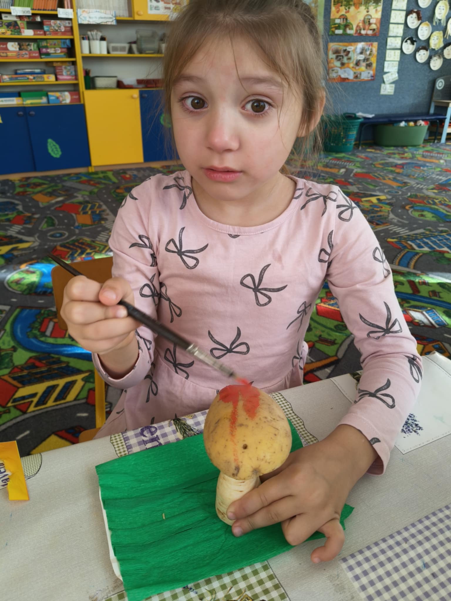 Podczas zajęć plastyczno-technicznych dzieci tworzyły jesienne grzybki z warzyw 🍄