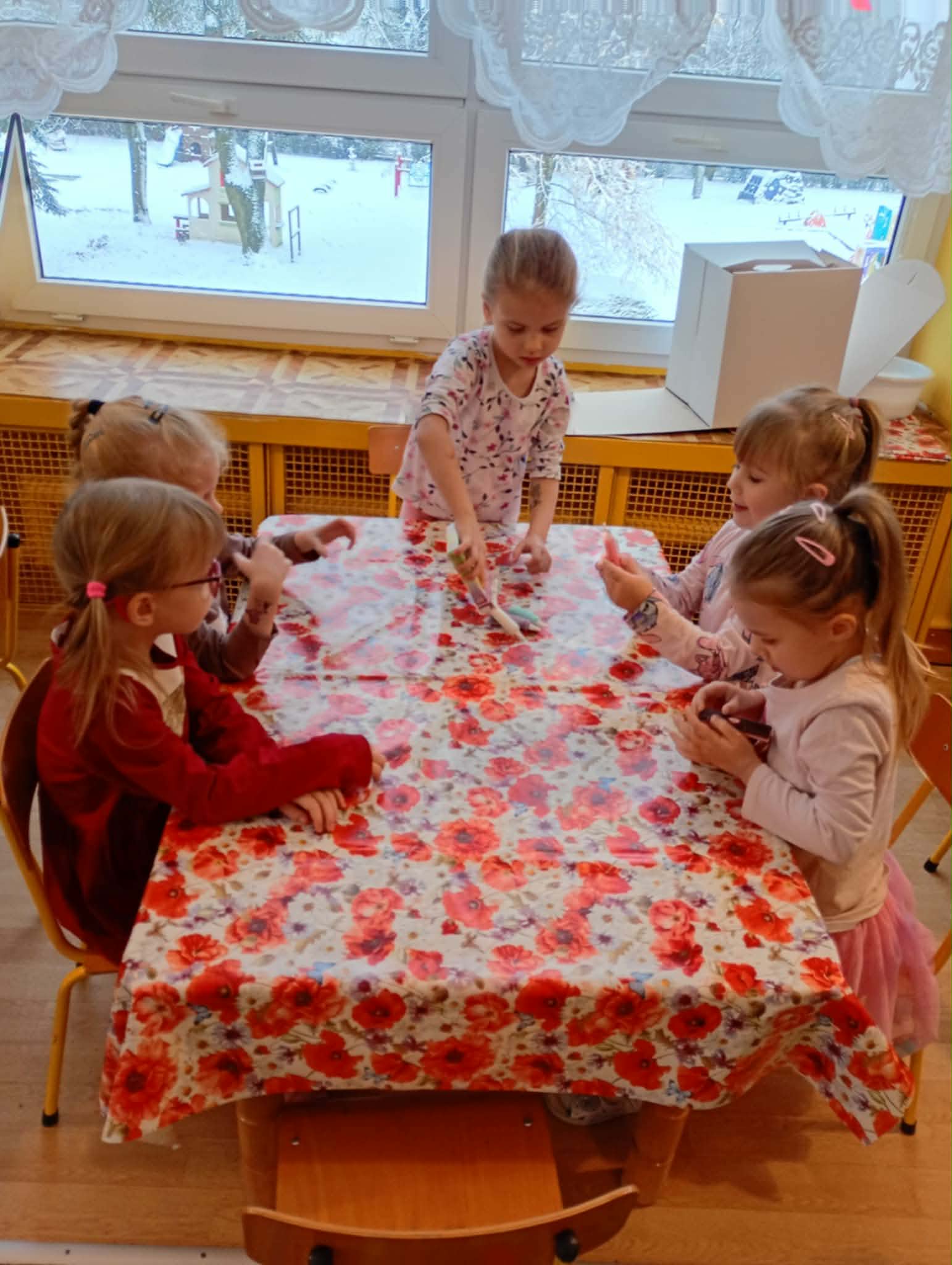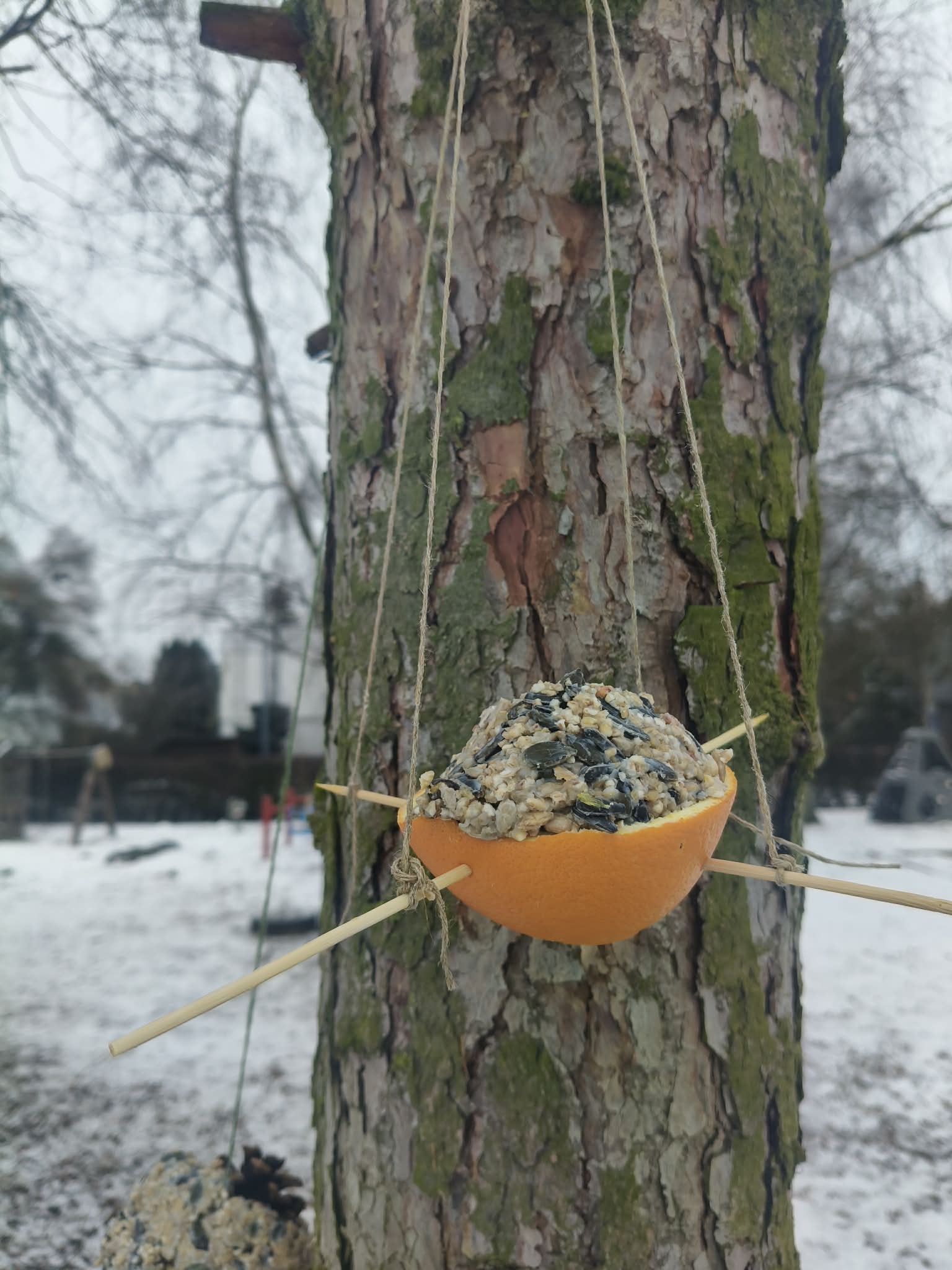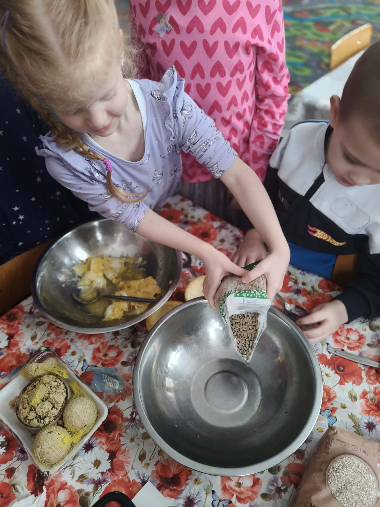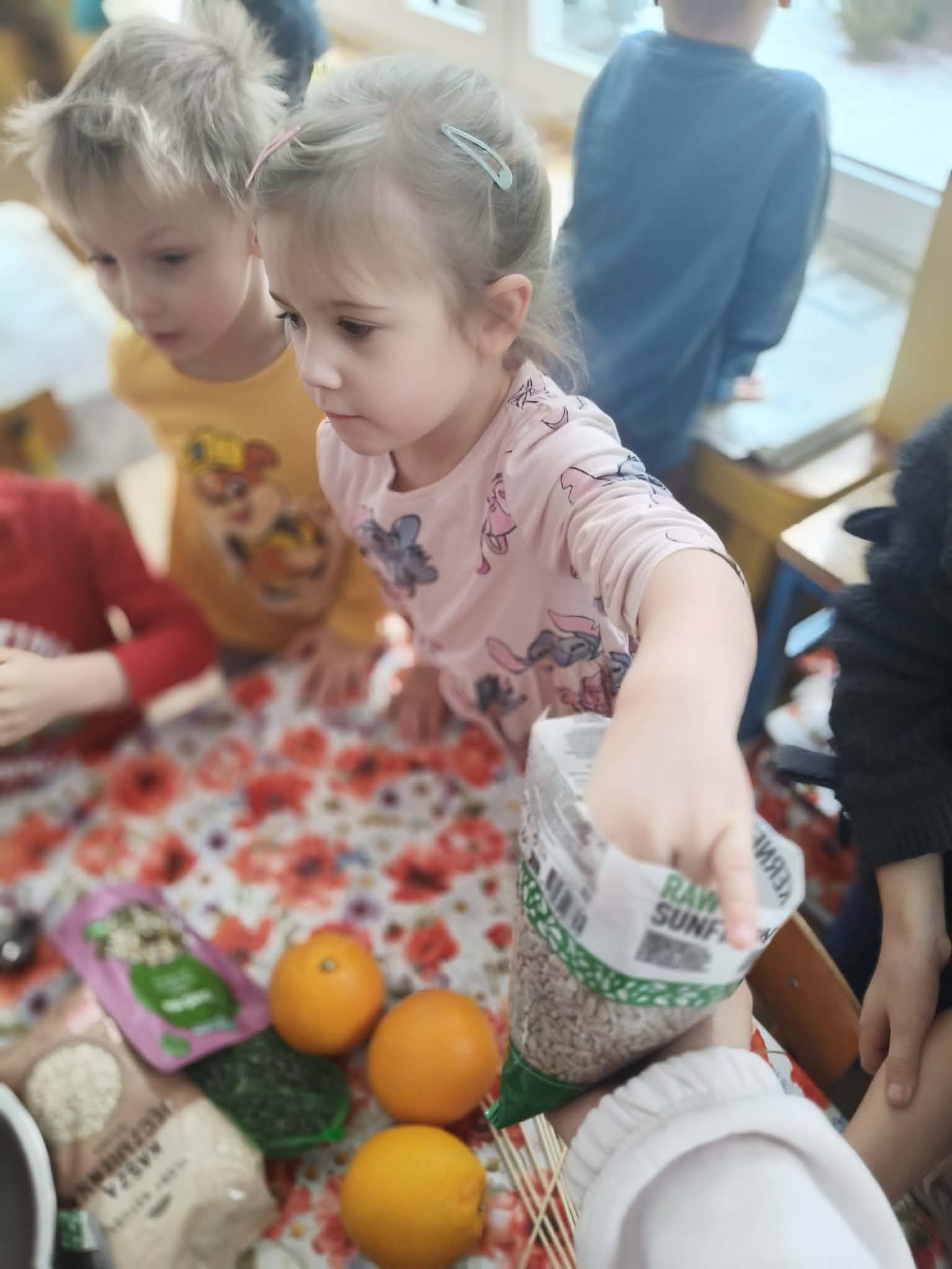Rozmawialiśmy o tym, jak dokarmiać ptaki zimą i jak o nie dbać. Dzieci poznały zasady bezpiecznego dokarmiania oraz wykonały własne jedzenie dla ptaków.