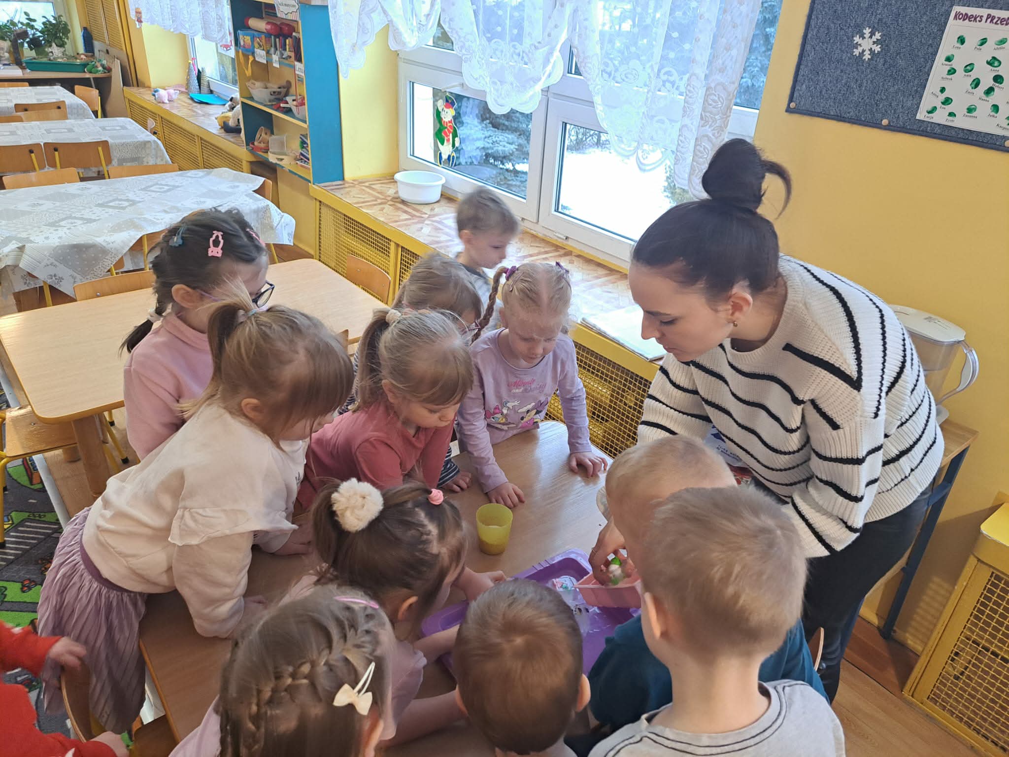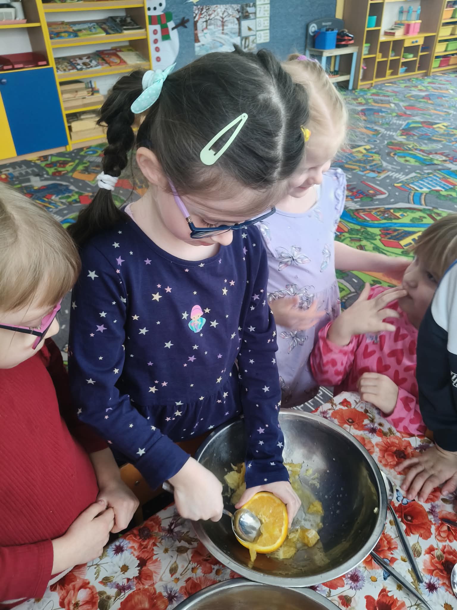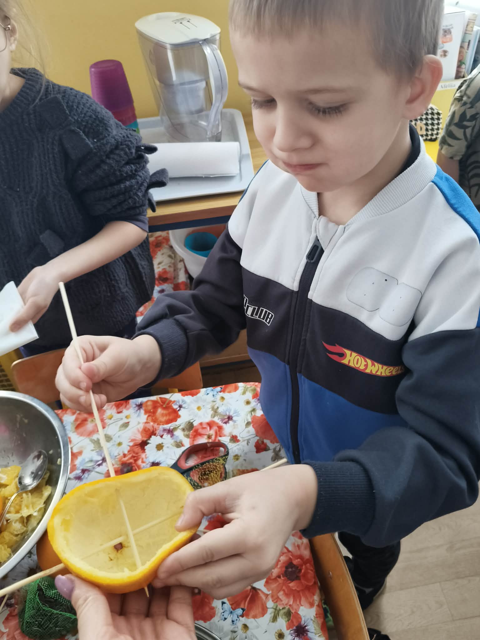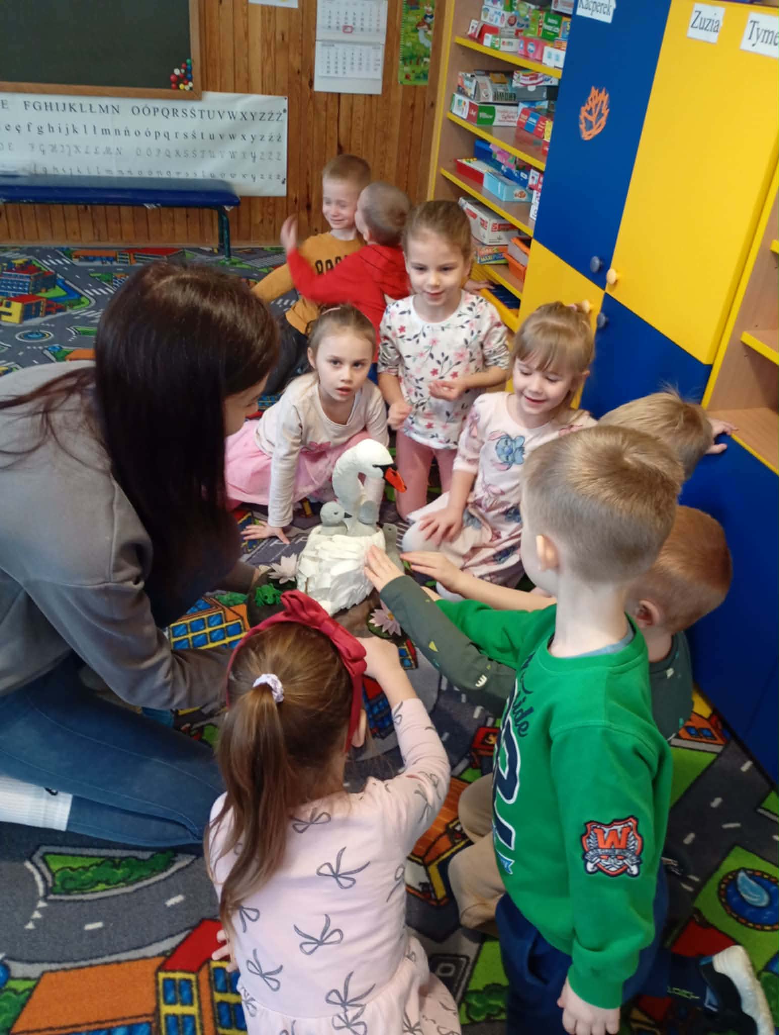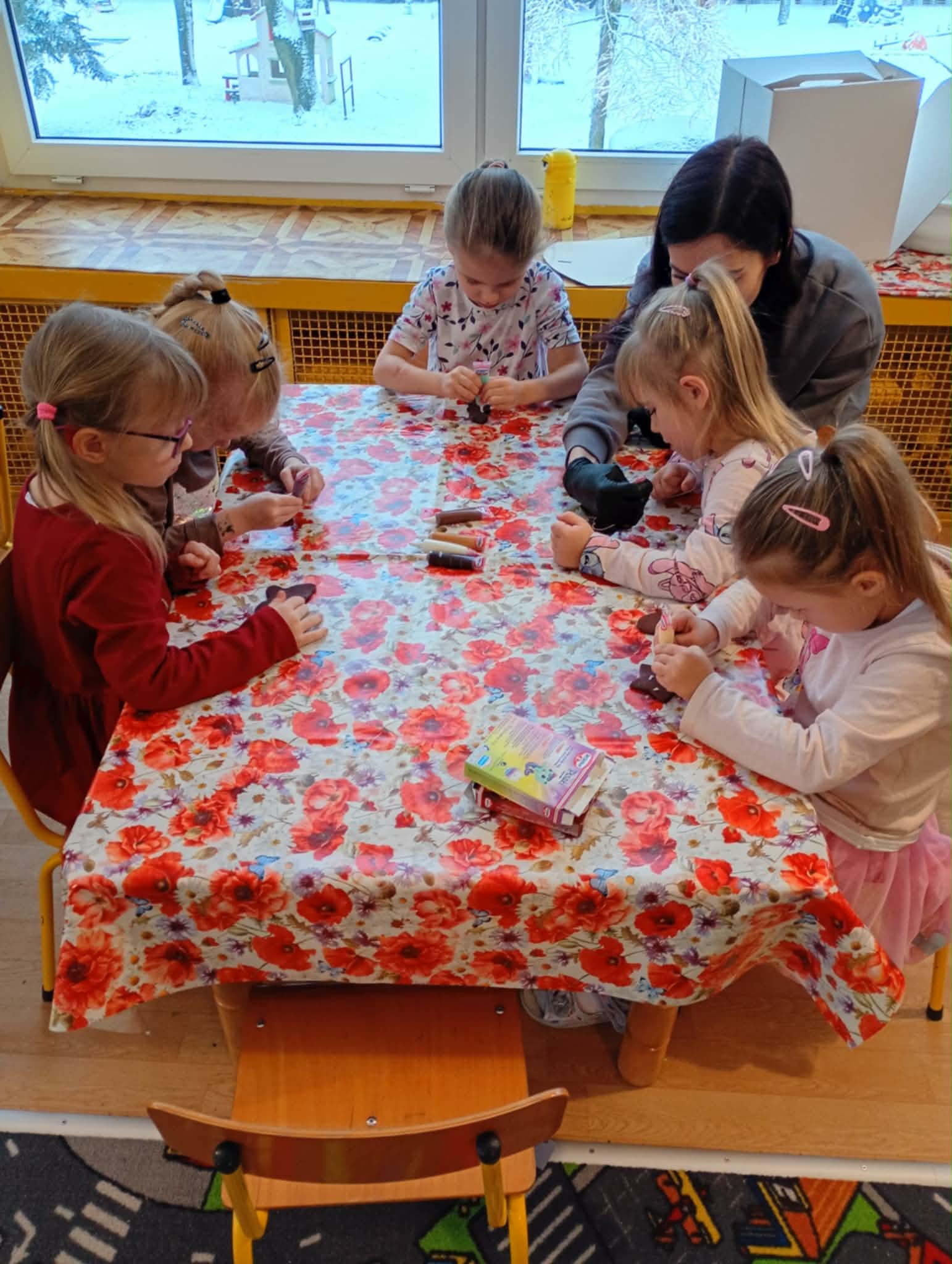 Rozmawialiśmy o tym, jak dokarmiać ptaki zimą i jak o nie dbać. Dzieci poznały zasady bezpiecznego dokarmiania oraz wykonały własne jedzenie dla ptaków.