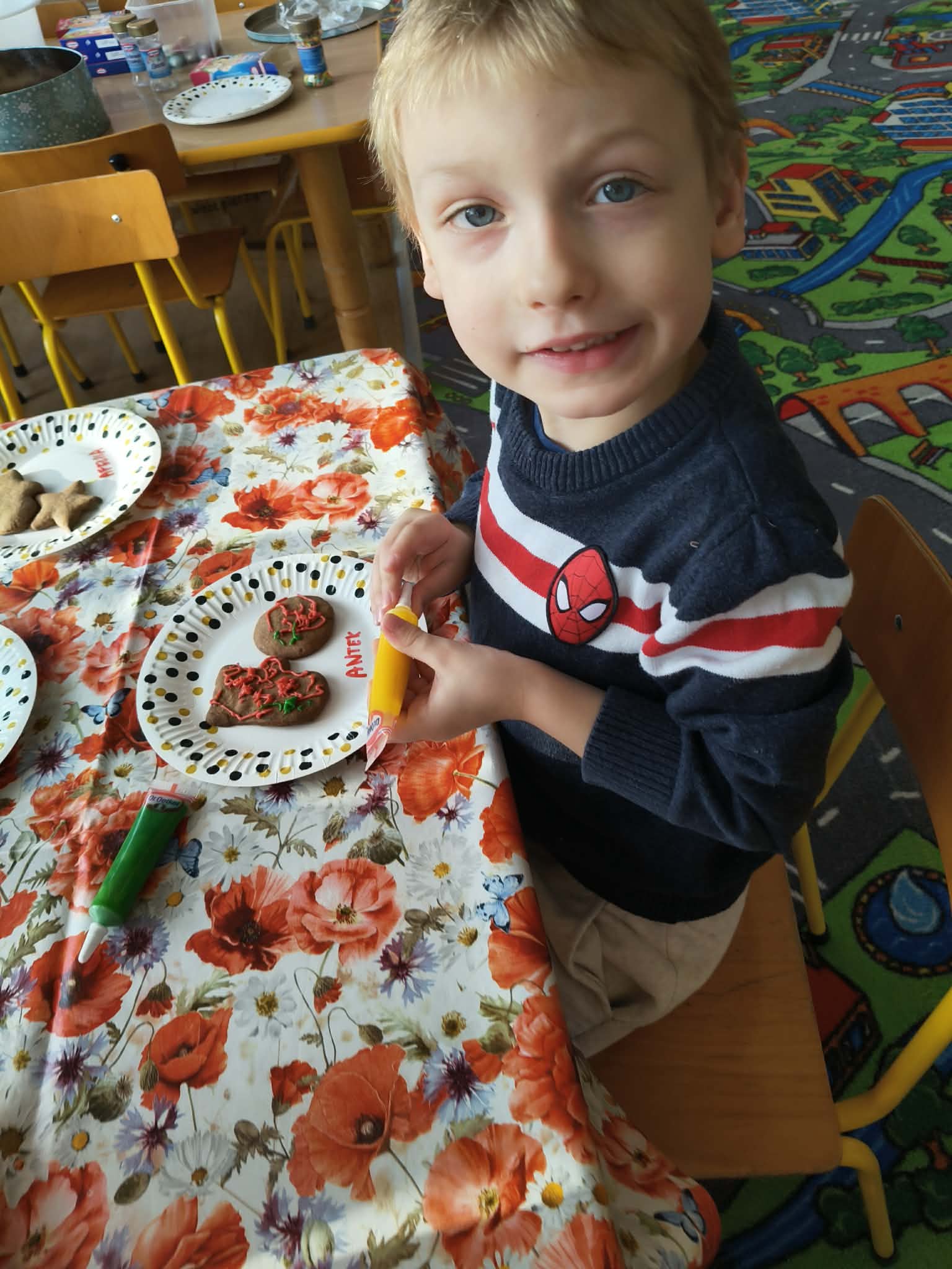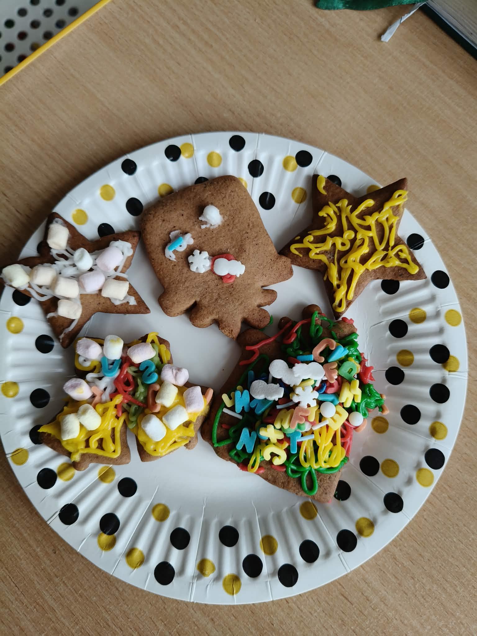 Odwiedziła nas babcia Huberta. Najpierw wysłuchaliśmy książki o przygotowywaniu pierniczków, a następnie dzieci dekorowały świąteczne wypieki przygotowane przez Huberta 🎄🍪