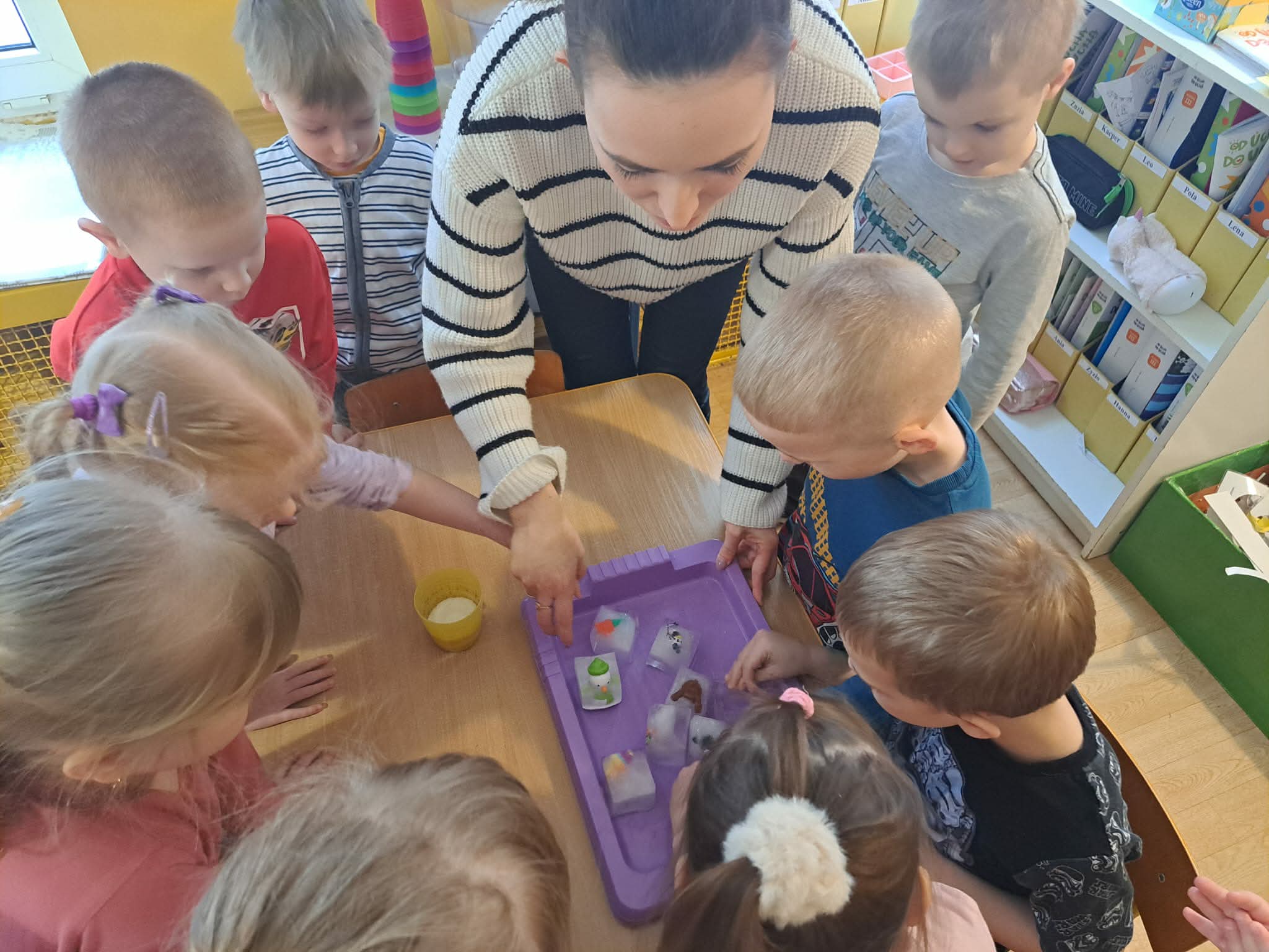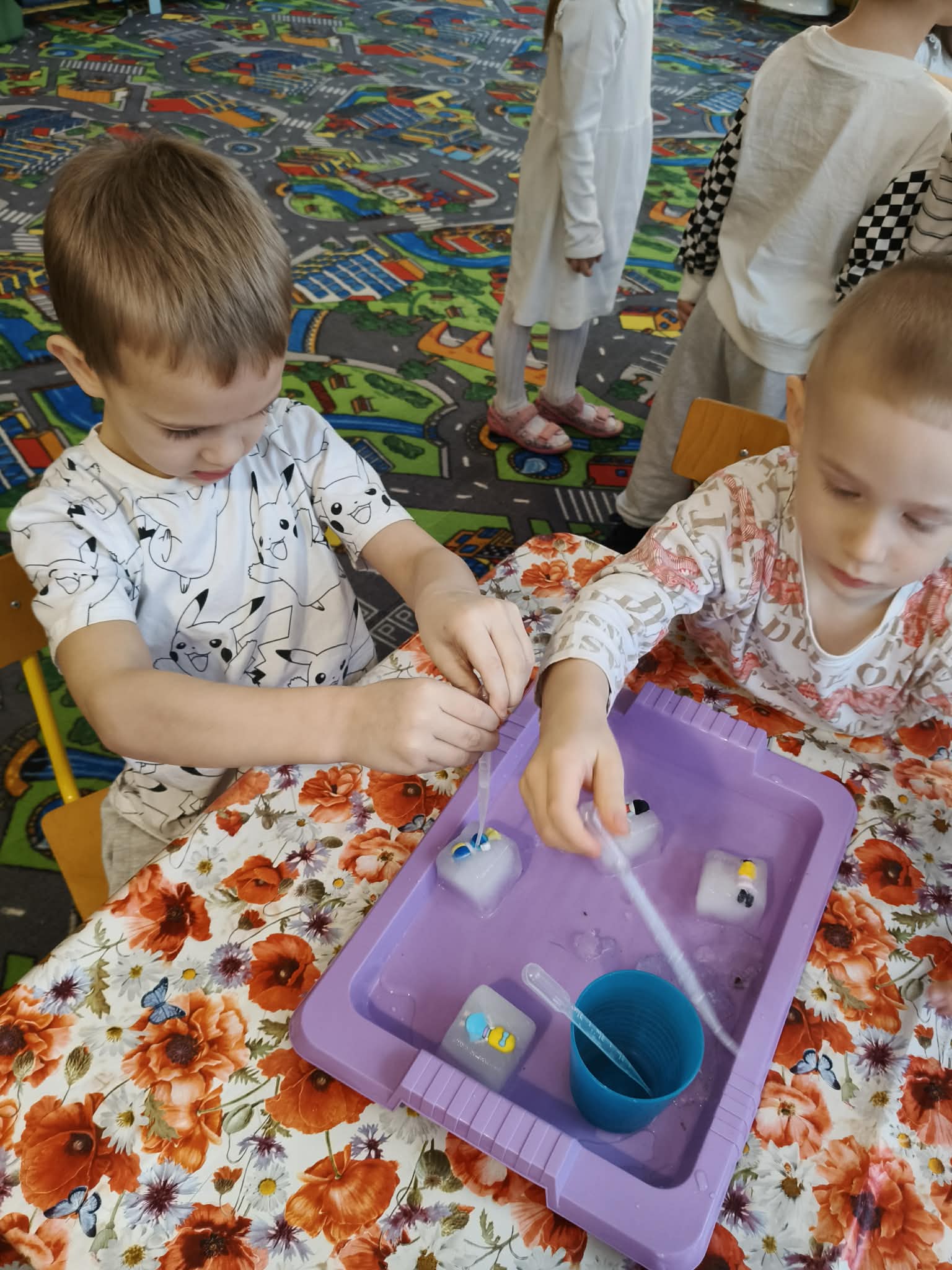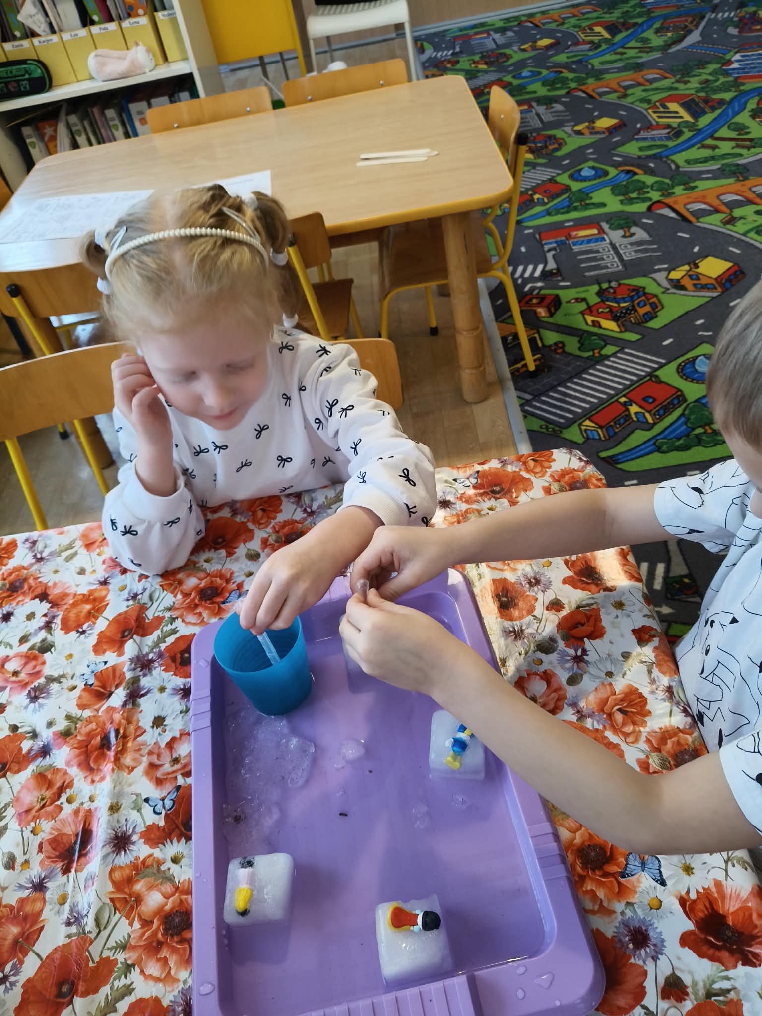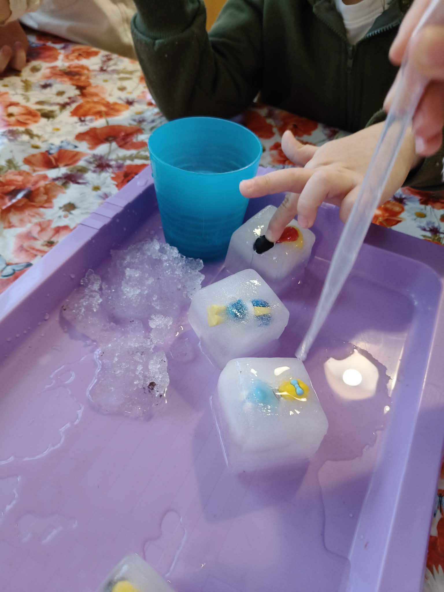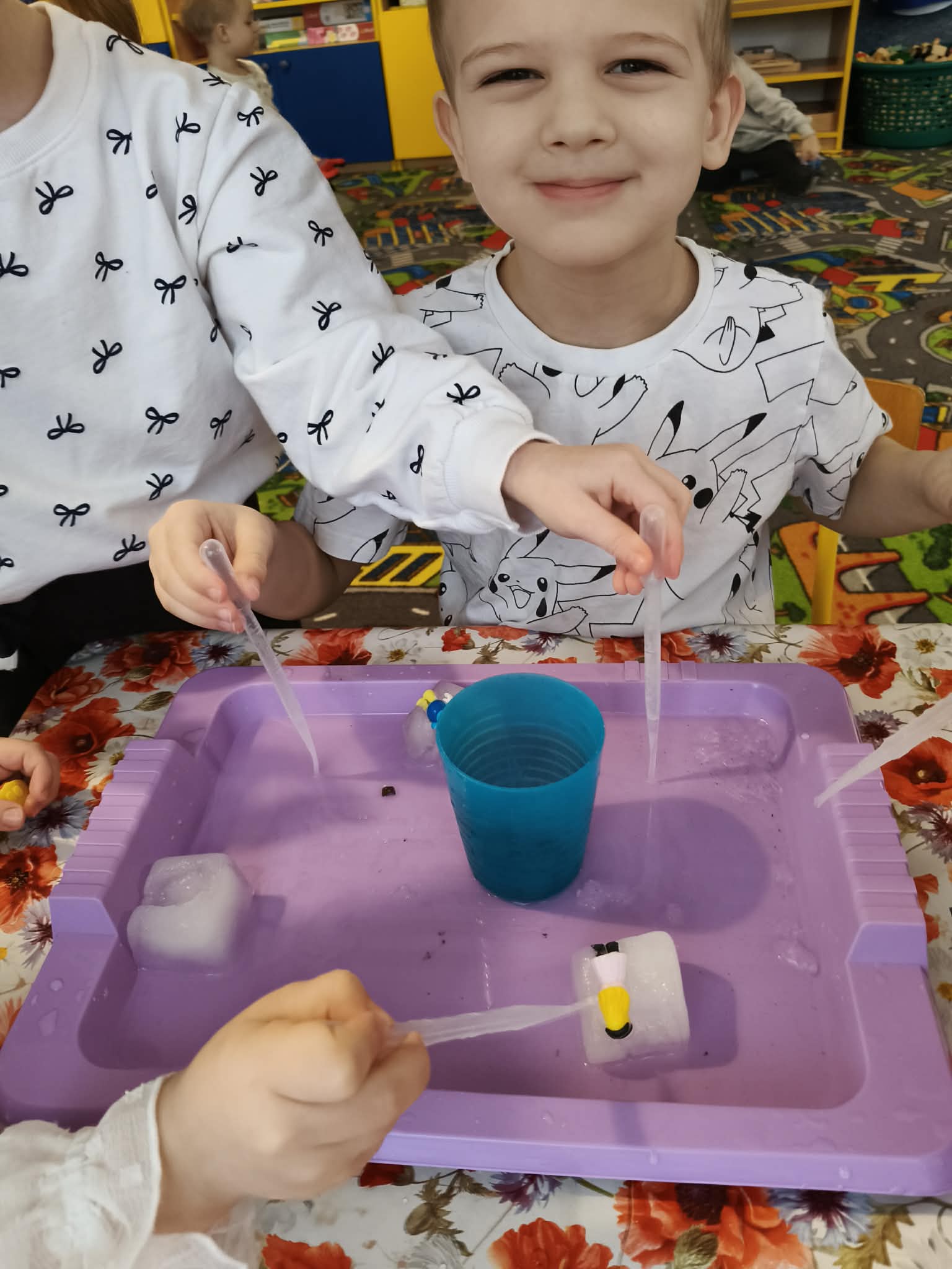 Były zabawy z lodem i ryżem, pisanie literek na kaszy oraz ćwiczenia oddechowe z pingwinkami. Nie zabrakło też innych sensorycznych aktywności i świetnej zabawy 😊❄️