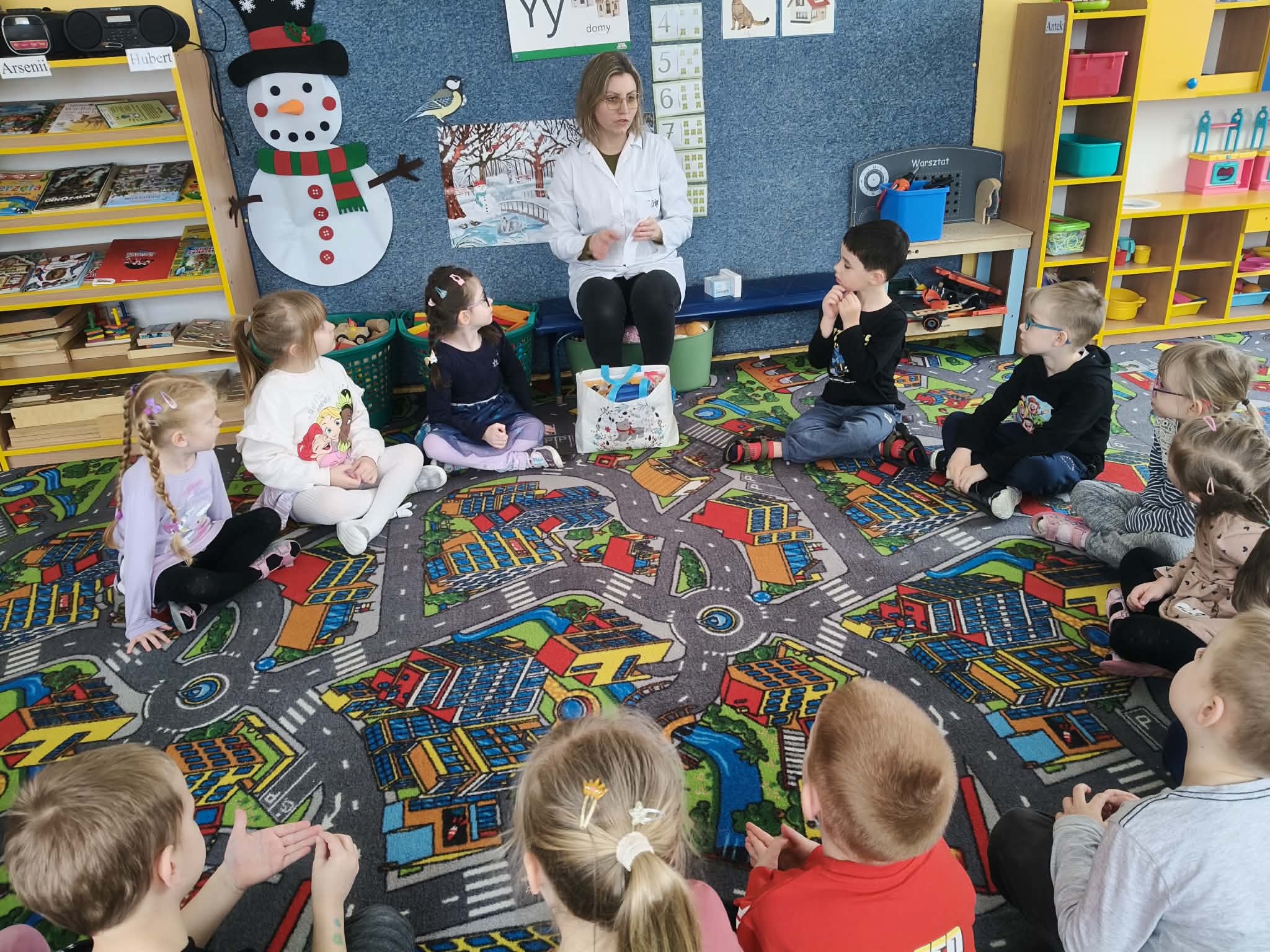 Ania chętnie się dzieliła i z odwagą prezentowała swoje gry. Odwiedziła nas także mama Ani, która opowiedziała o swojej pracy farmaceutki. 😊 Dziękujemy.