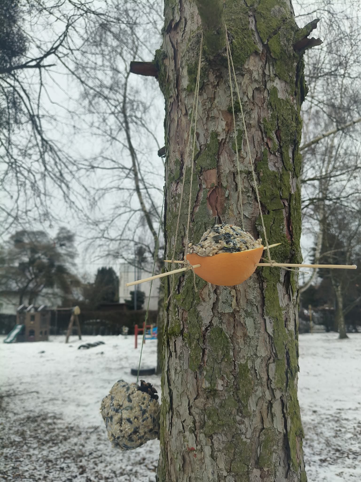 Połączyliśmy przyjemne z pożytecznym ❄️🐾 Zawieszanie karmy dla zwierząt i radosne zabawy na śniegu.