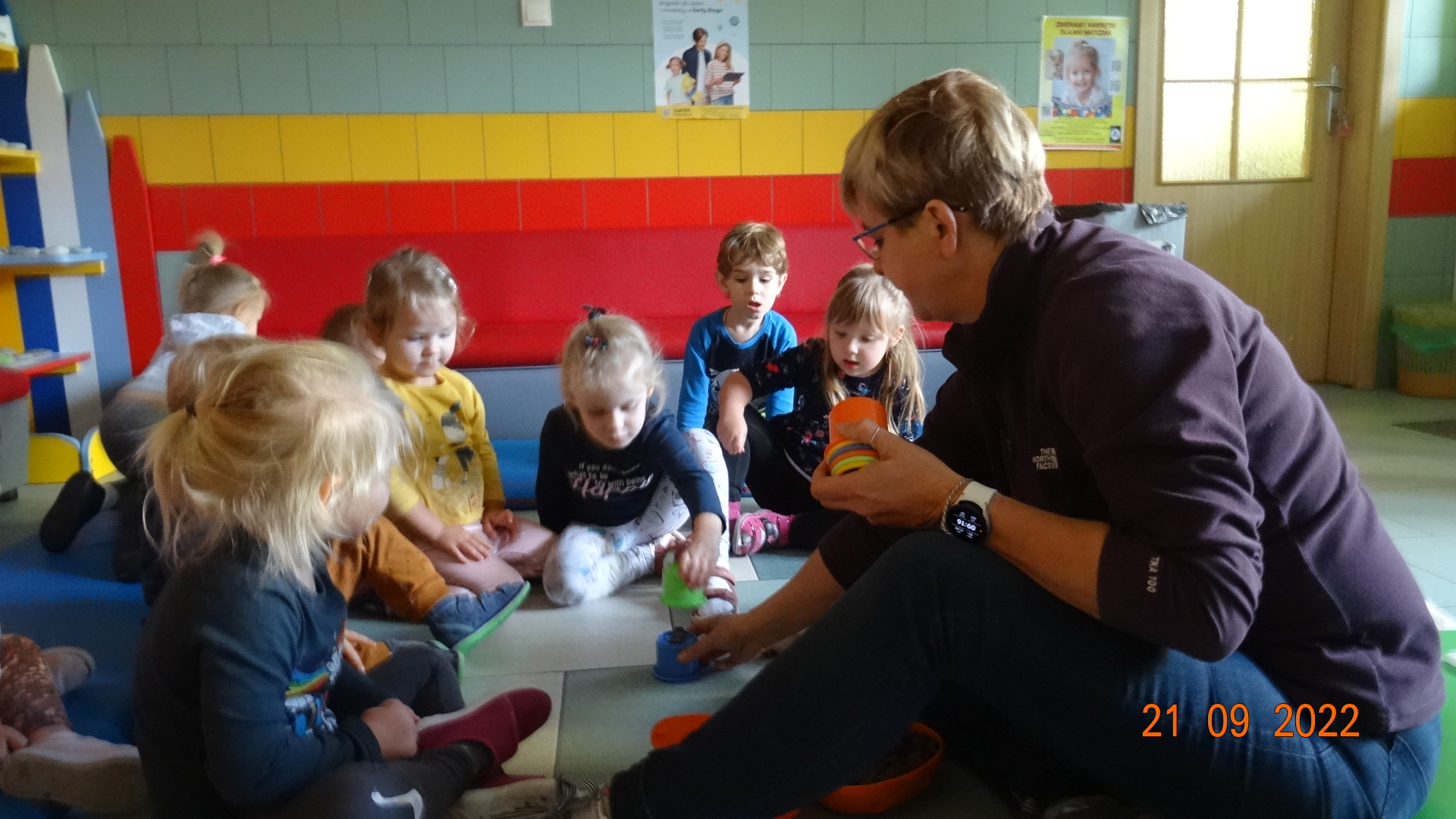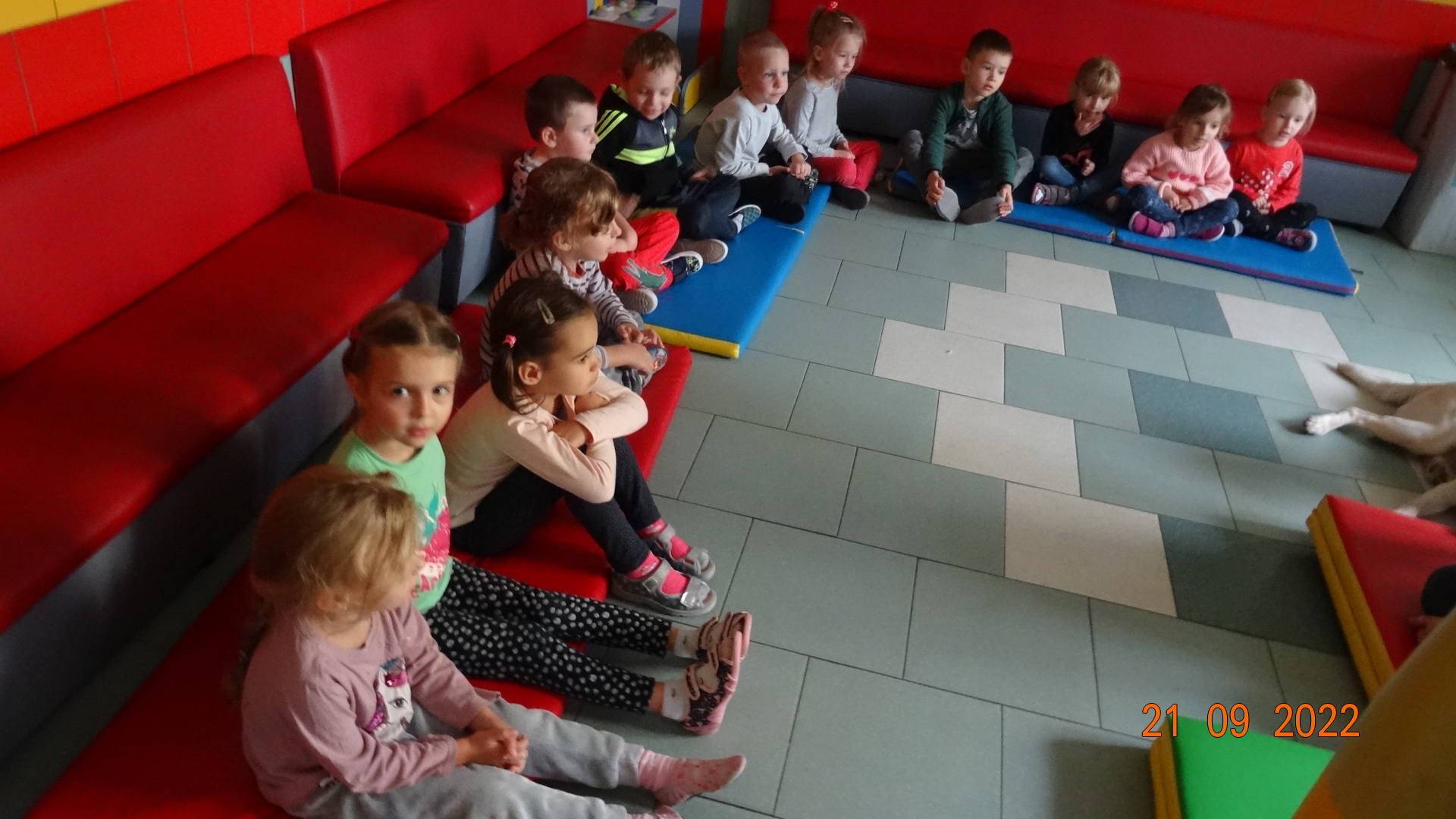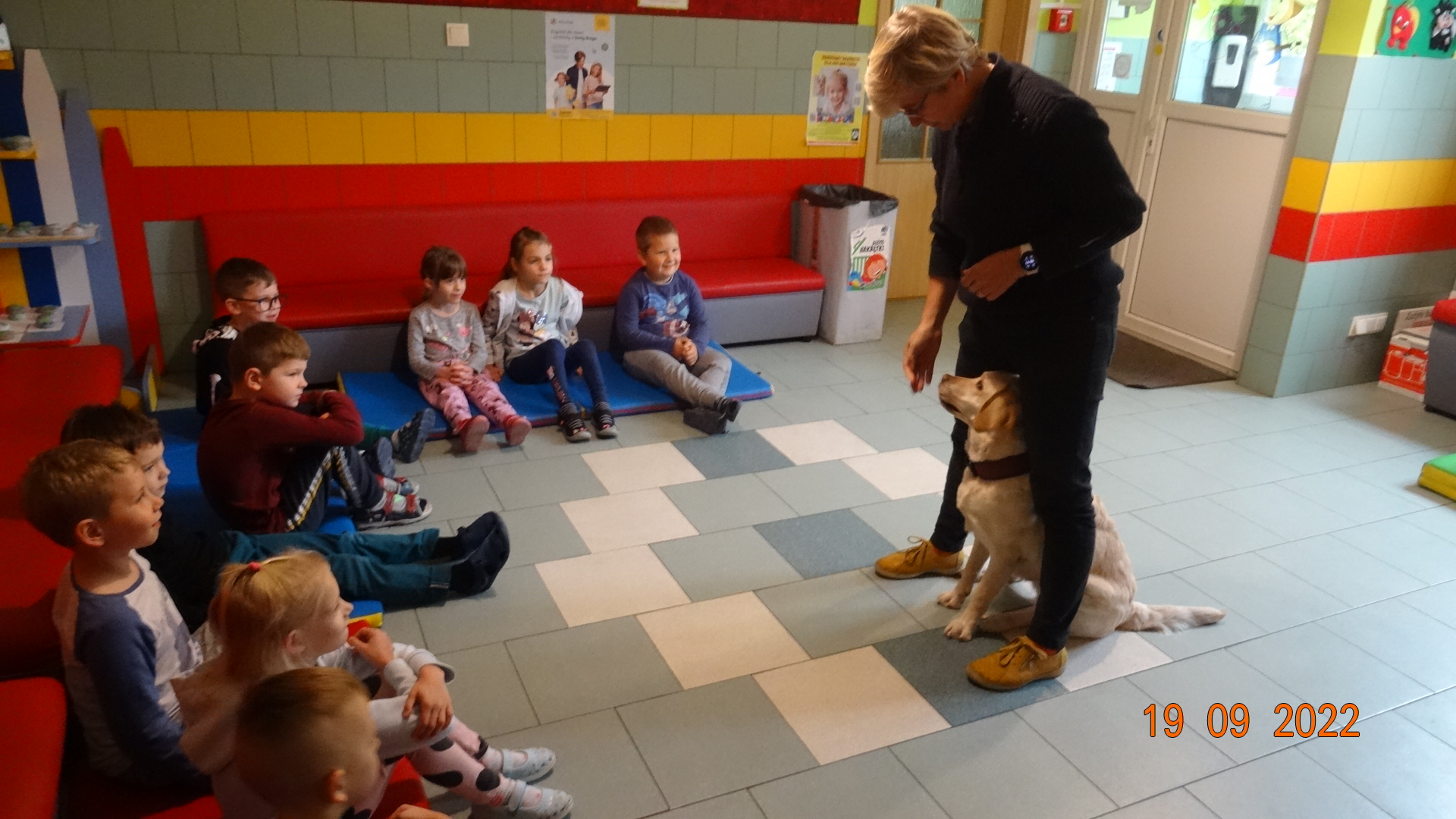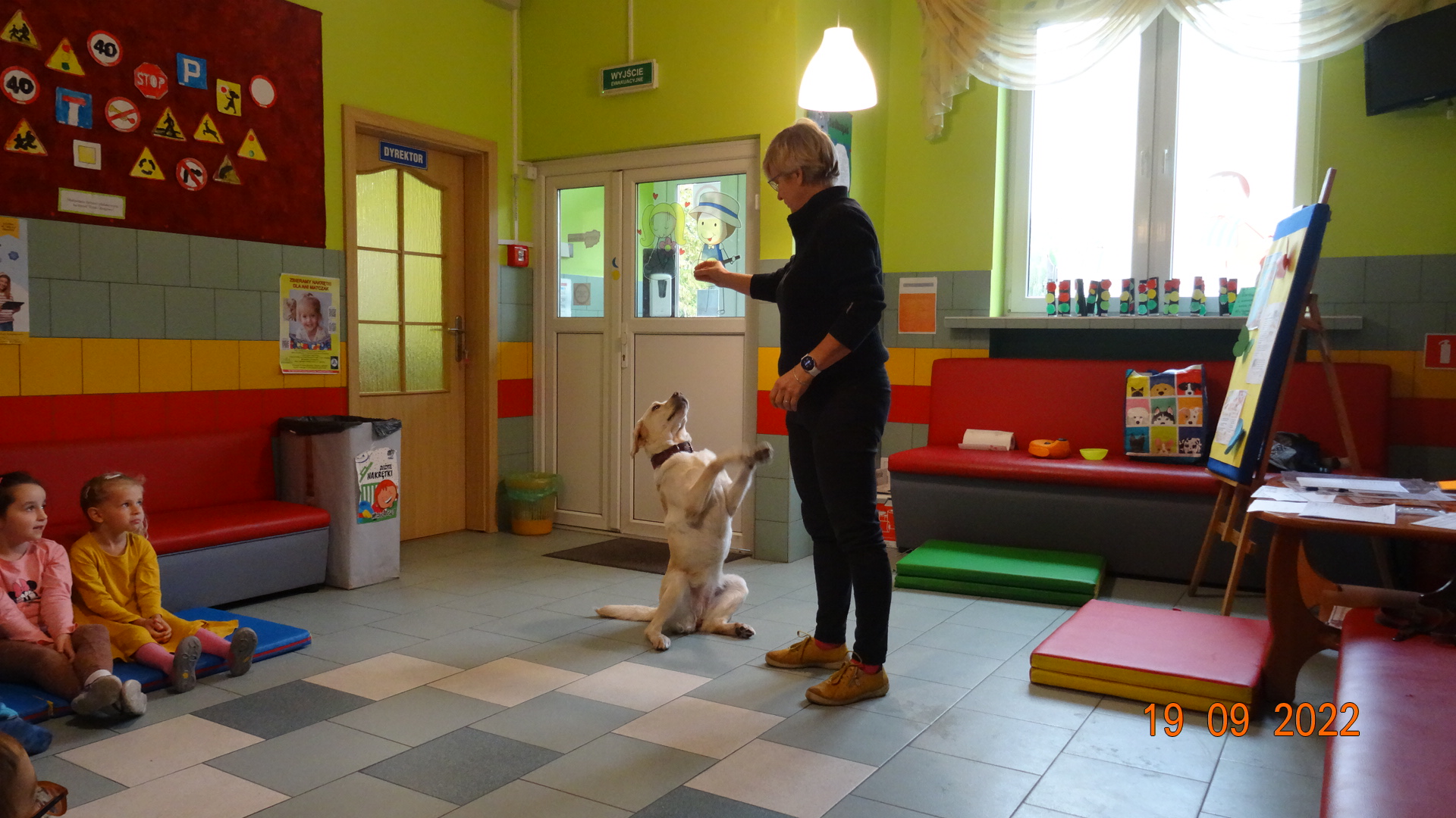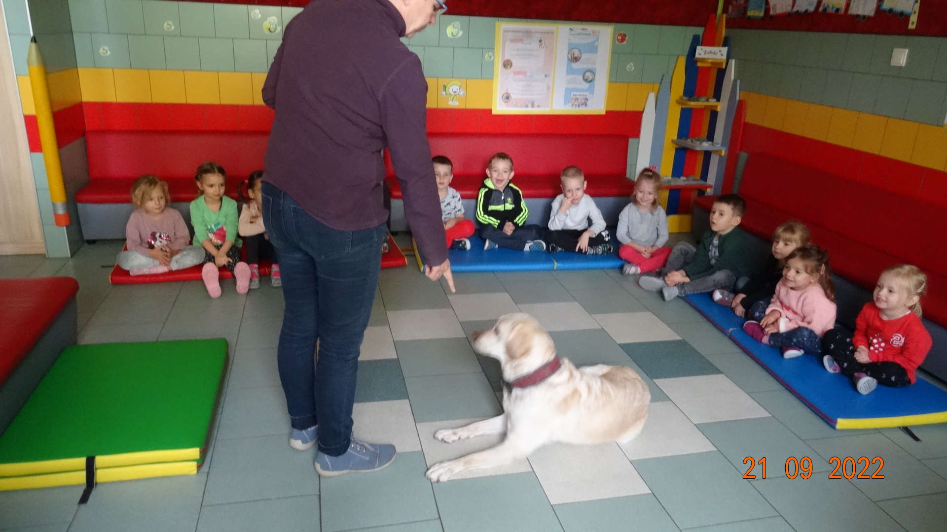 We wrześniu w przedszkolu miały miejsce pierwsze zajęcia z kynoterapii. W czasie spotkania dzieci nauczyły się prawidłowego kontaktu z psem, poznały jego potrzeby i wzmacniały empatię względem zwierząt. Poza tym takie spotkanie z psem to świetna okazja do relaksacji i wyciszenia, a także motywacja do działań w zakresie usprawniania funkcji motorycznych.