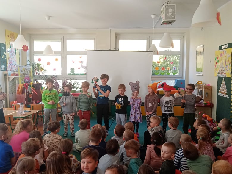 W dniu 28 marca w naszym przedszkolu świętowaliśmy Międzynarodowy Dzień Teatru. W ramach jego obchodów obejrzeliśmy film pokazujący historię powstania teatru oraz jego współczesne rodzaje. Poznaliśmy różne rodzaje lalek teatralnych, a chętne dzieci wcieliły się w role aktorów lalkowych. Jak prawdziwi aktorzy mogliśmy też poćwiczyć swoją dykcję, ruch sceniczny oraz umiejętność wyrażania emocji. Wzięliśmy też udział w zabawach pantomimicznych. Na zakończenie odbyliśmy wirtualny spacer po teatrze i za jego kulisami.