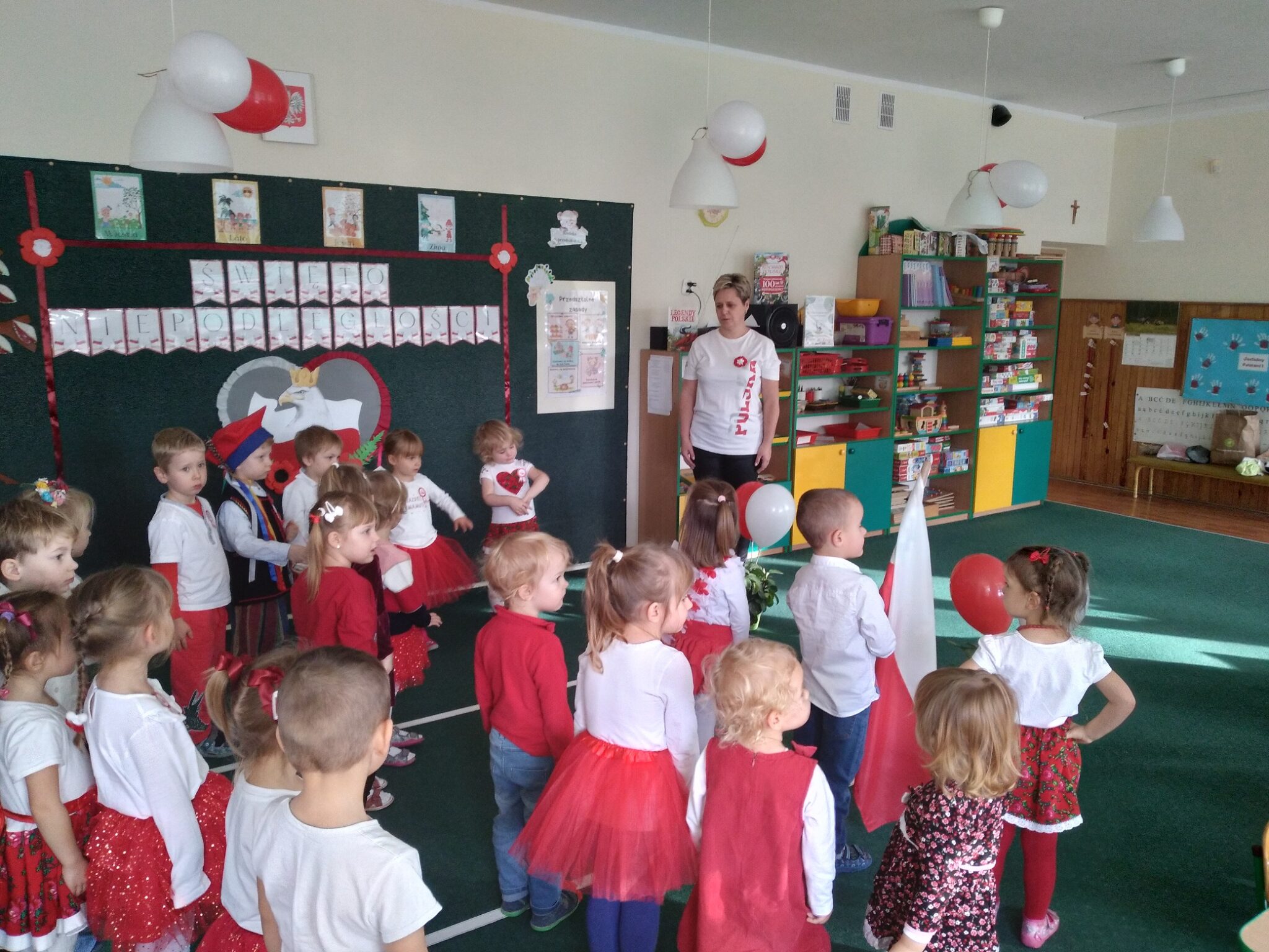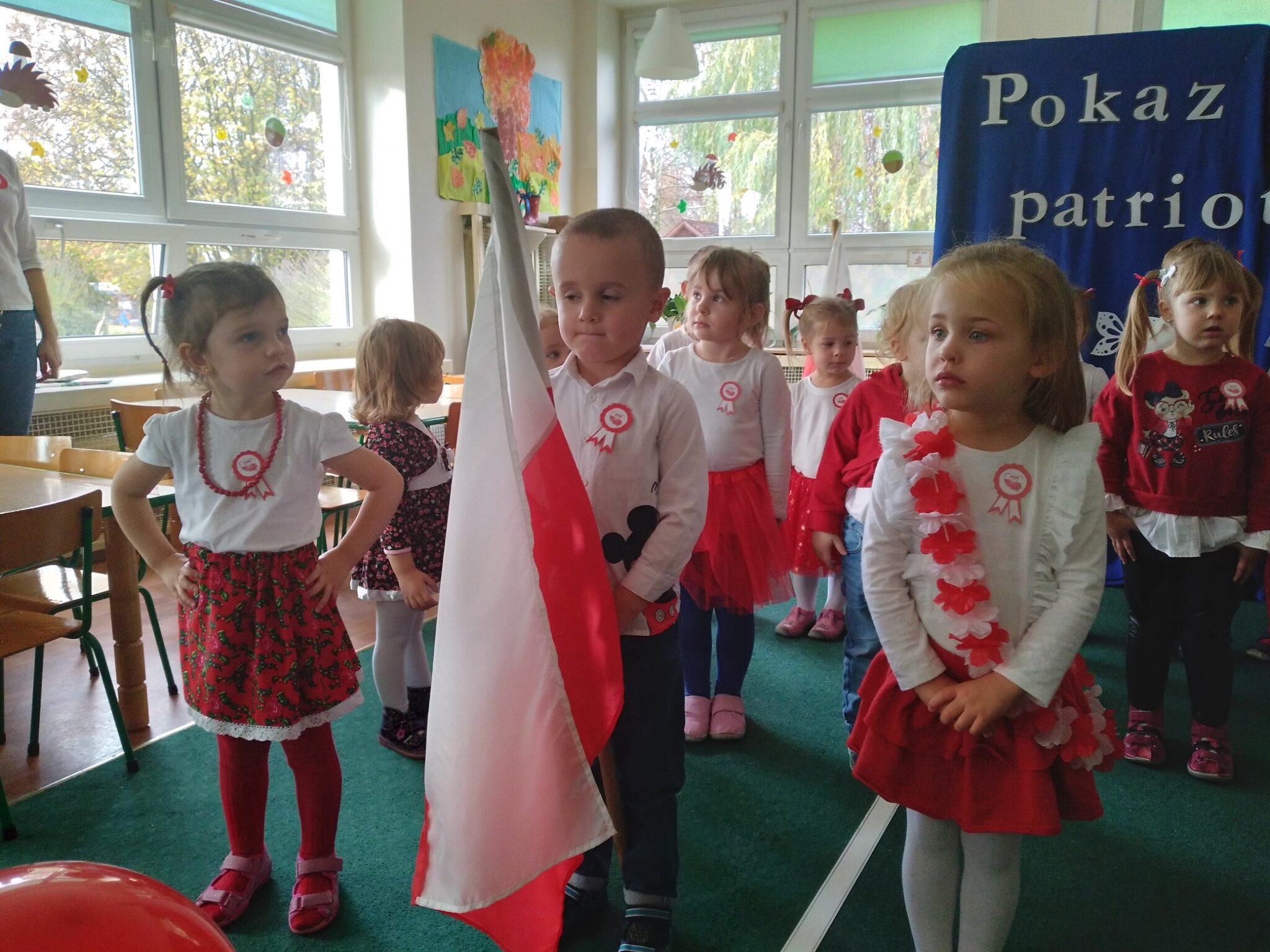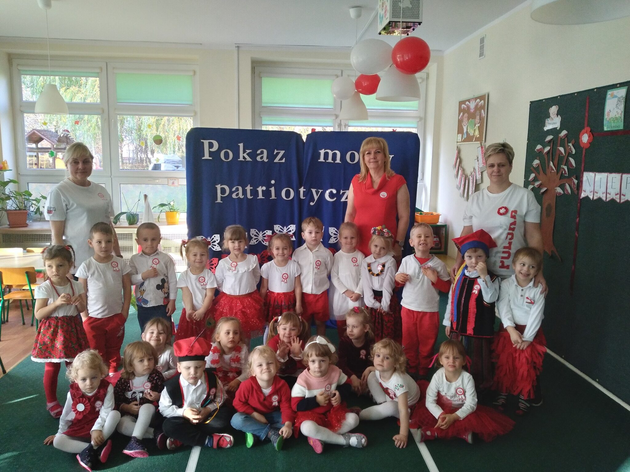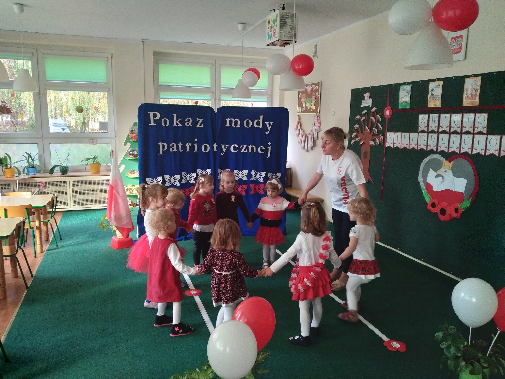 10 listopada w grupie Biedronek i Misiów odbył się „Pokaz Mody Patriotycznej” połączony z  inscenizacją wierszy. Uroczystość obchodów Święta Niepodległości rozpoczęła się od wspólnego wysłuchania Hymnu i recytacji wiersza Cz. Janczarskiego pt. „Barwy ojczyste”. Następnie dzieci z grupy Biedronek wraz z paniami zatańczyły do ludowej piosenki „Poszło dziewczę po ziele”, a dzieci z grupy Misiów Poloneza.