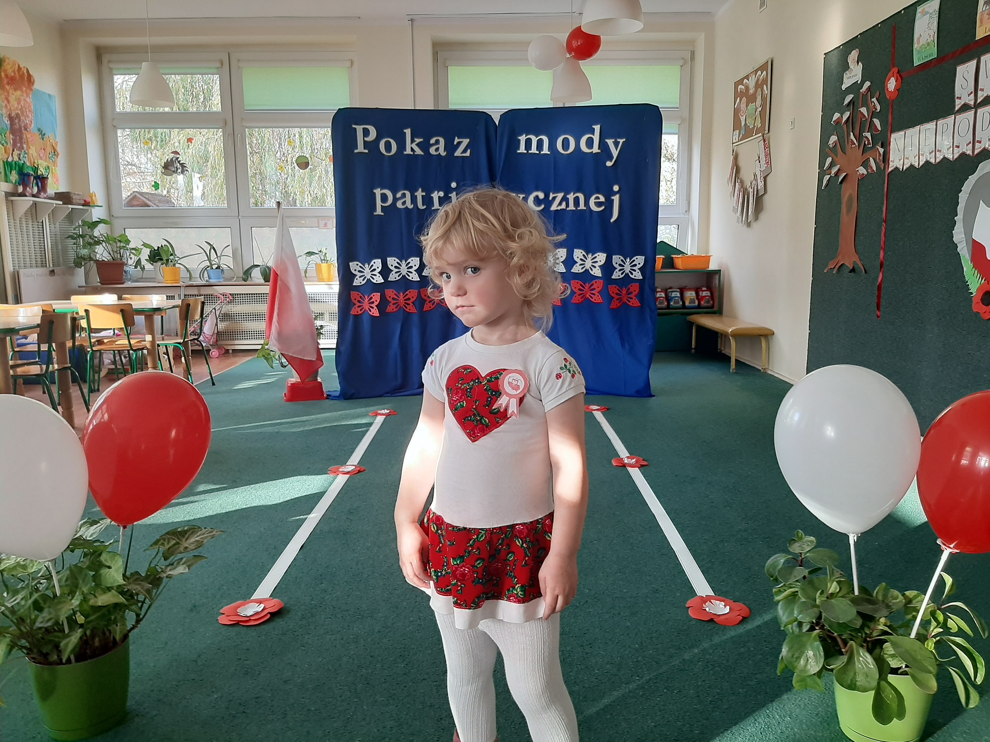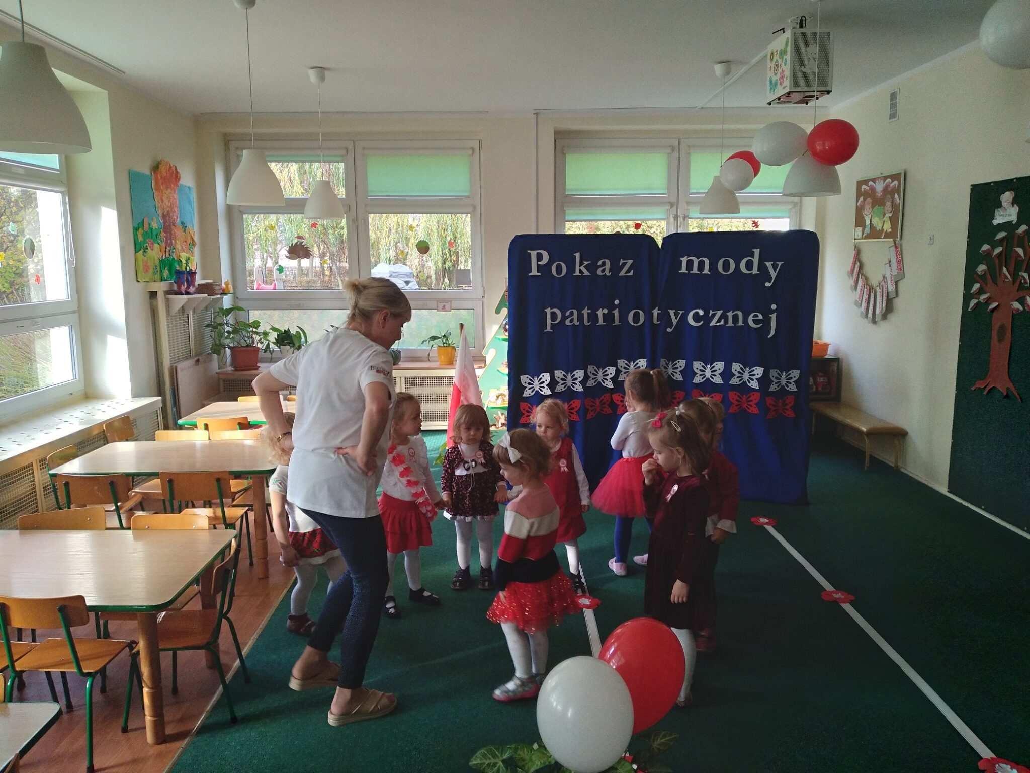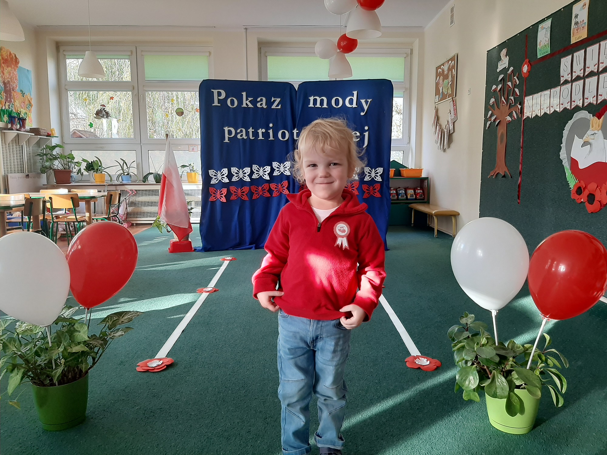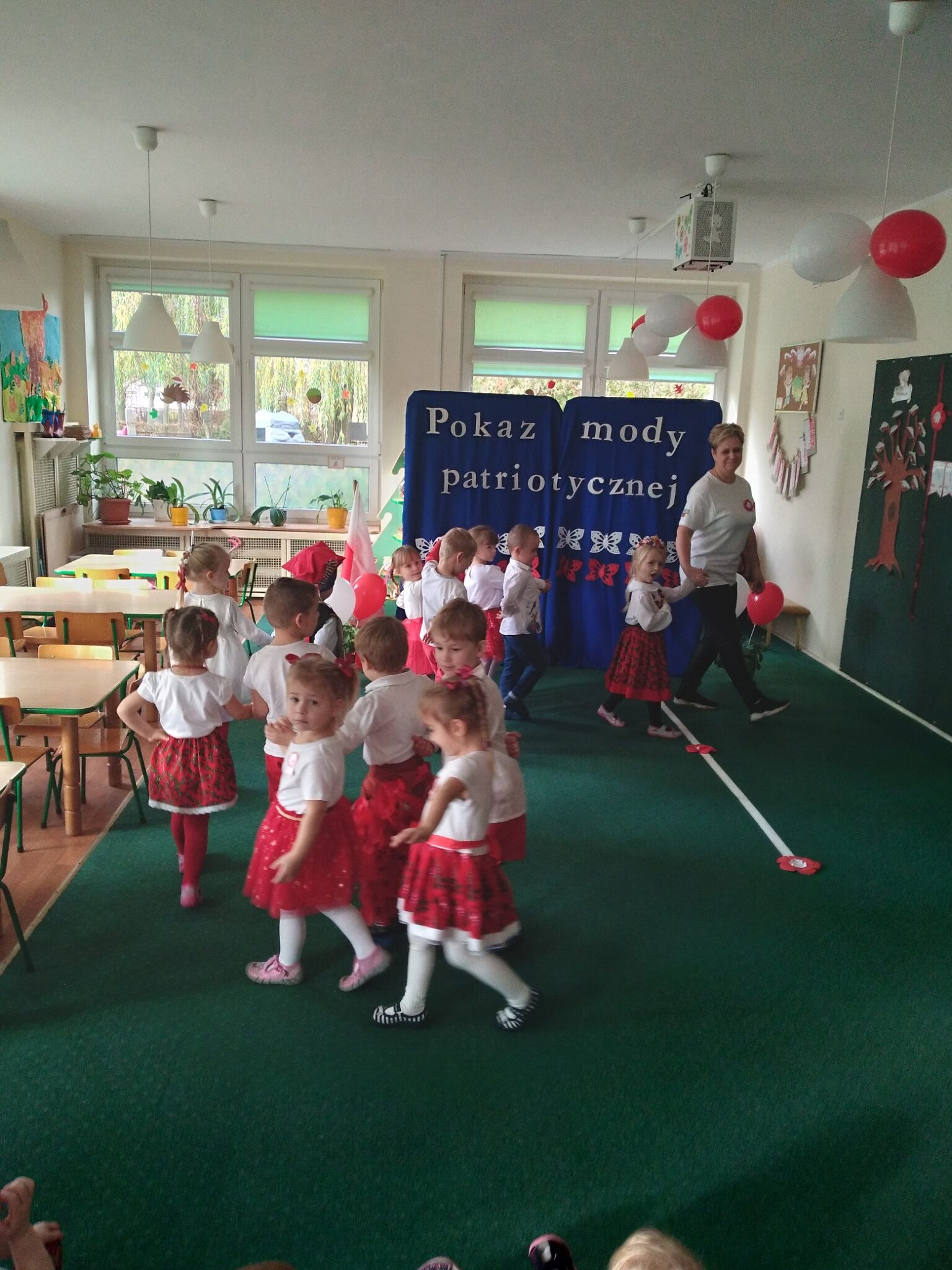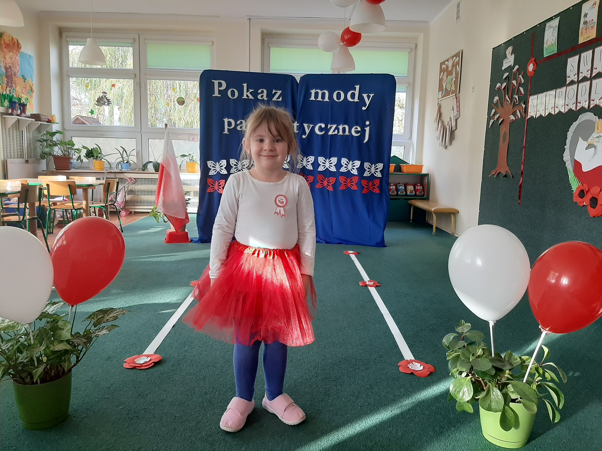 Punktem kulminacyjnym obchodów był pokaz strojów patriotycznych. W ten dzień przedszkolna sala zamieniła się w wybieg, a przedszkolaki w modelki i modeli, którzy przy dźwiękach muzyki, prezentowali swe piękne stroje. Wśród strojów dominowały stroje ludowe i w barwach narodowych.