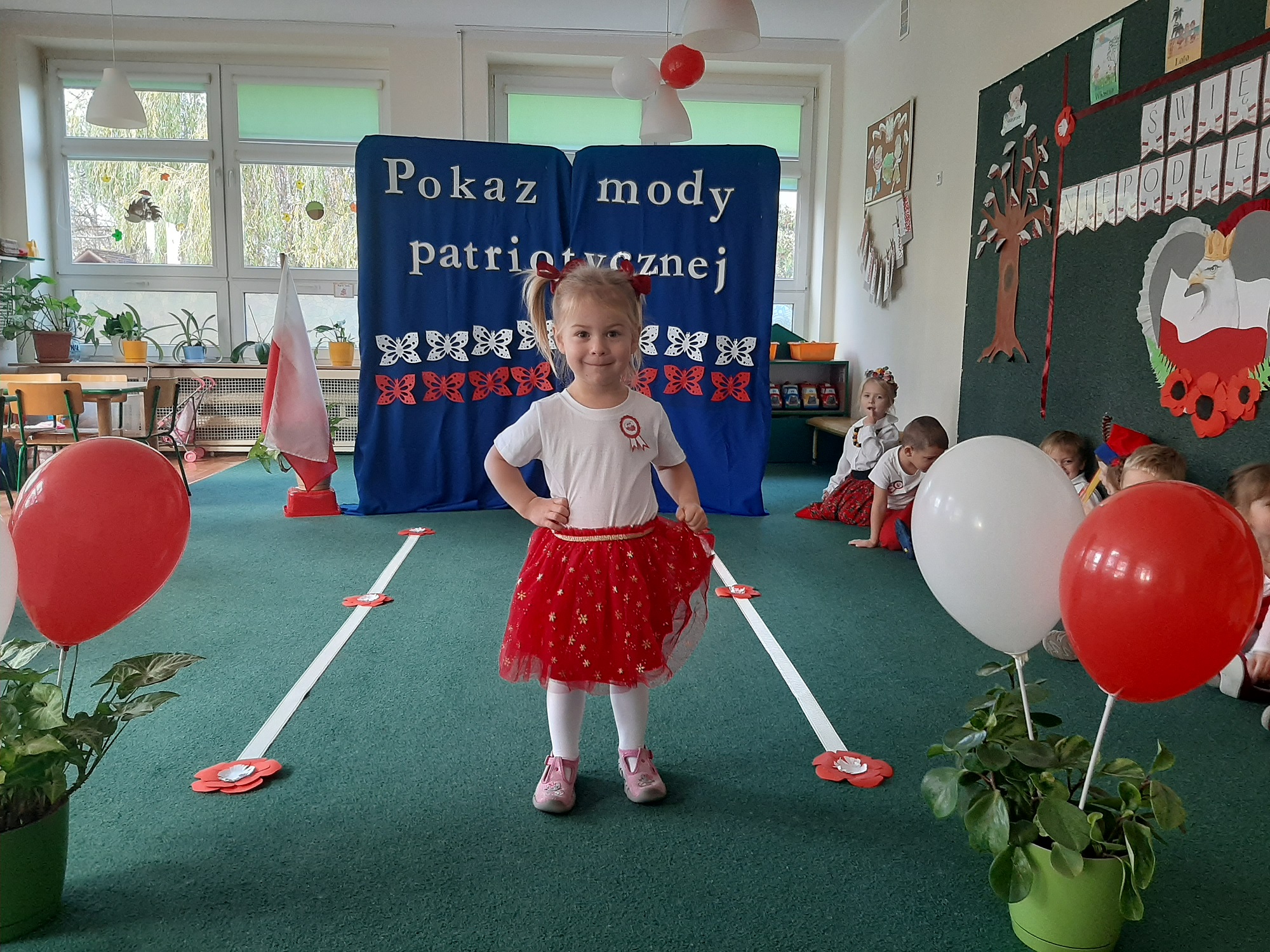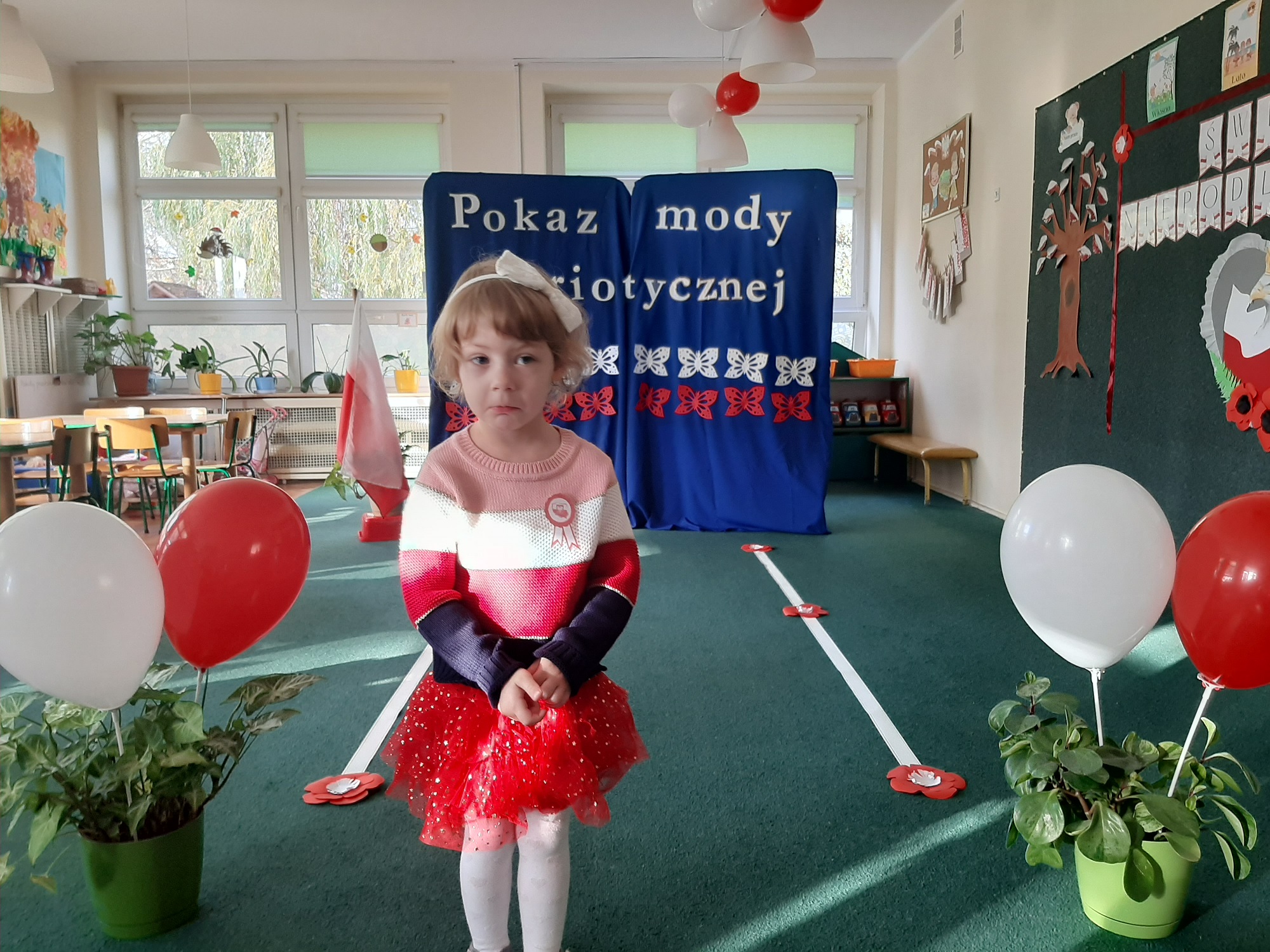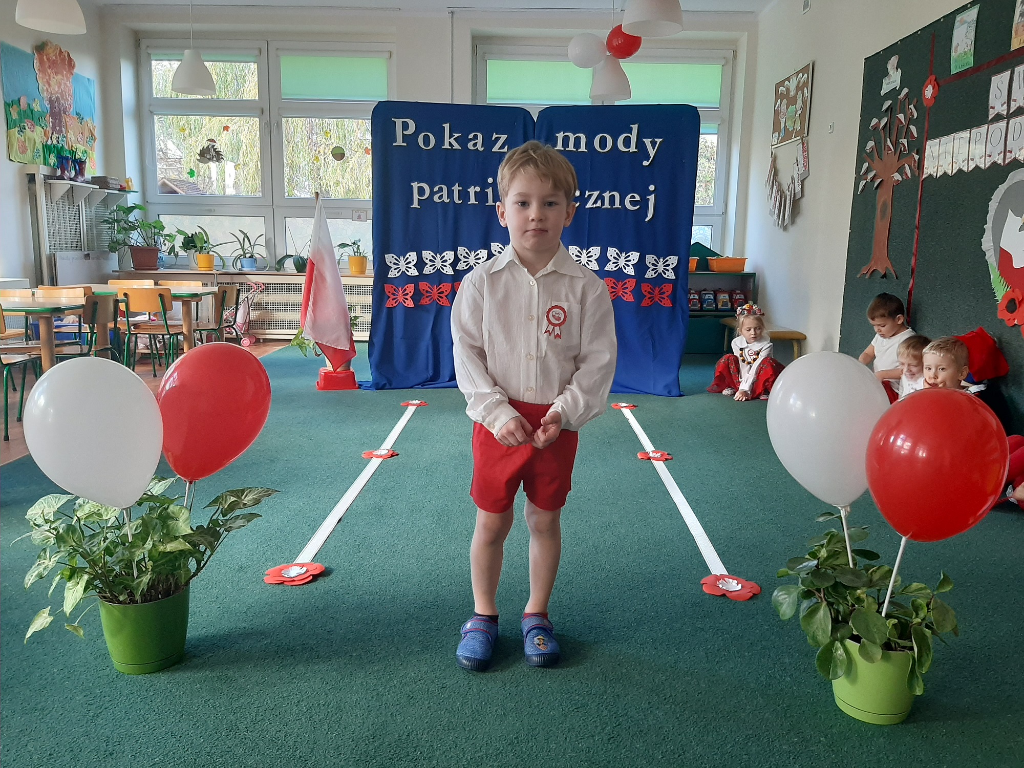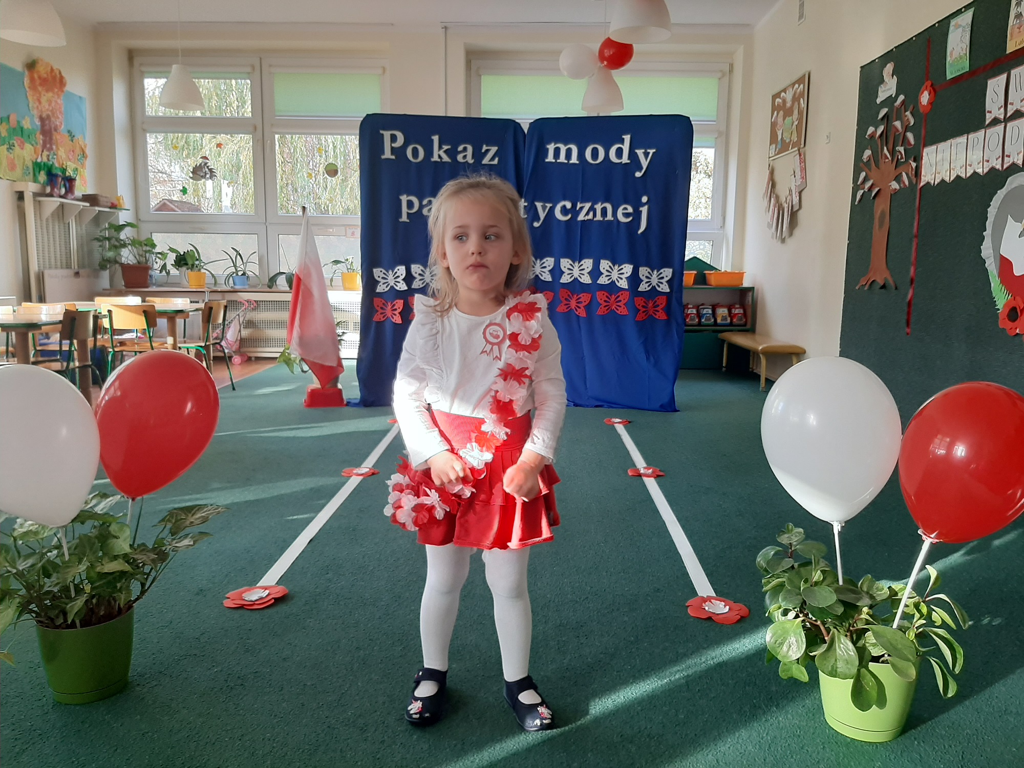Punktem kulminacyjnym obchodów był pokaz strojów patriotycznych. W ten dzień przedszkolna sala zamieniła się w wybieg, a przedszkolaki w modelki i modeli, którzy przy dźwiękach muzyki, prezentowali swe piękne stroje. Wśród strojów dominowały stroje ludowe i w barwach narodowych.
