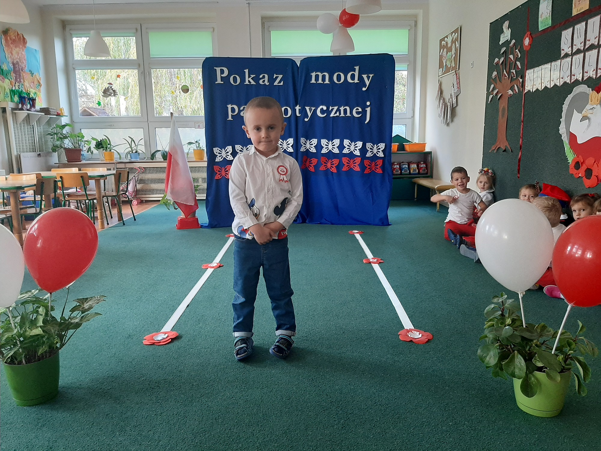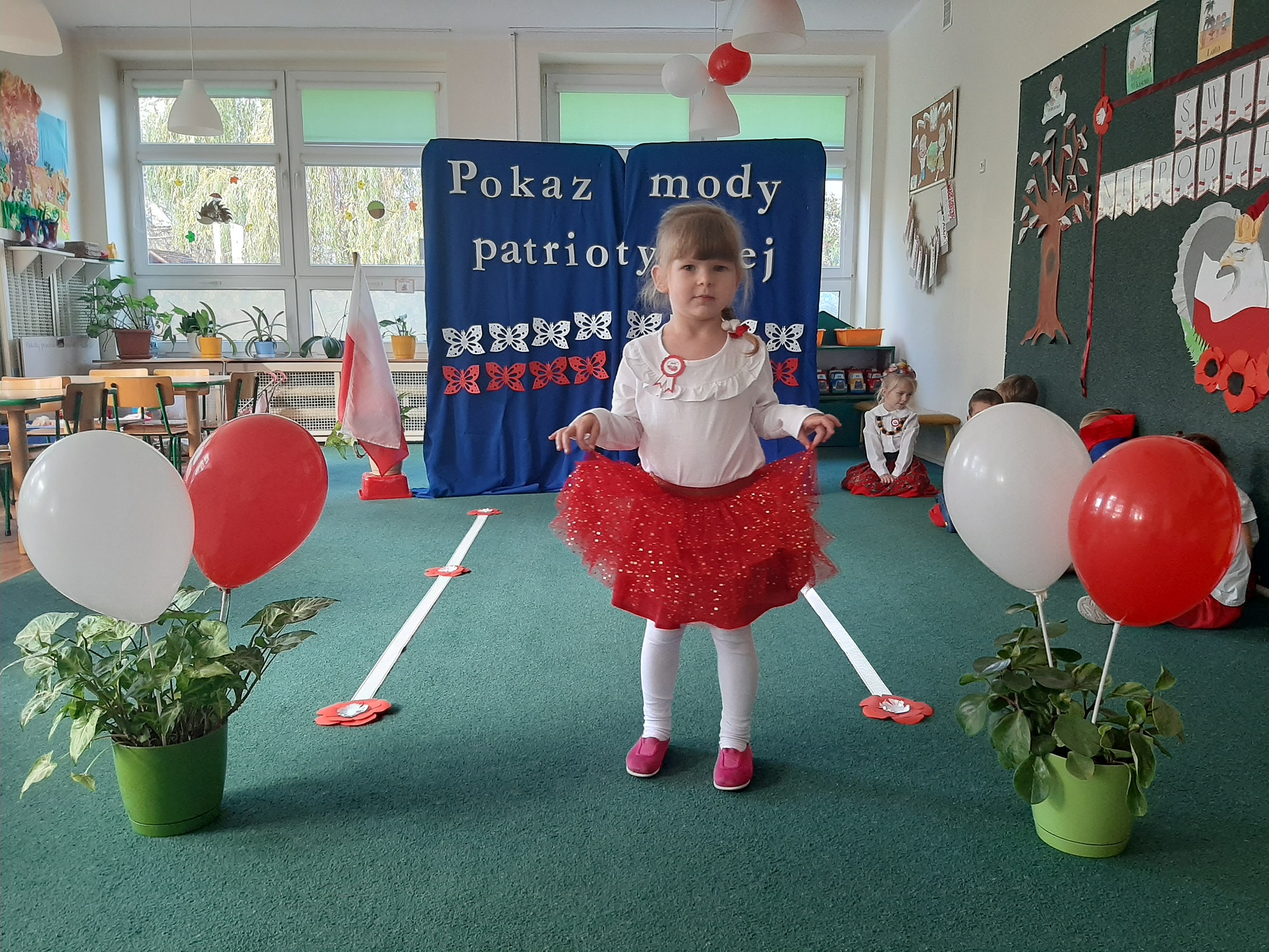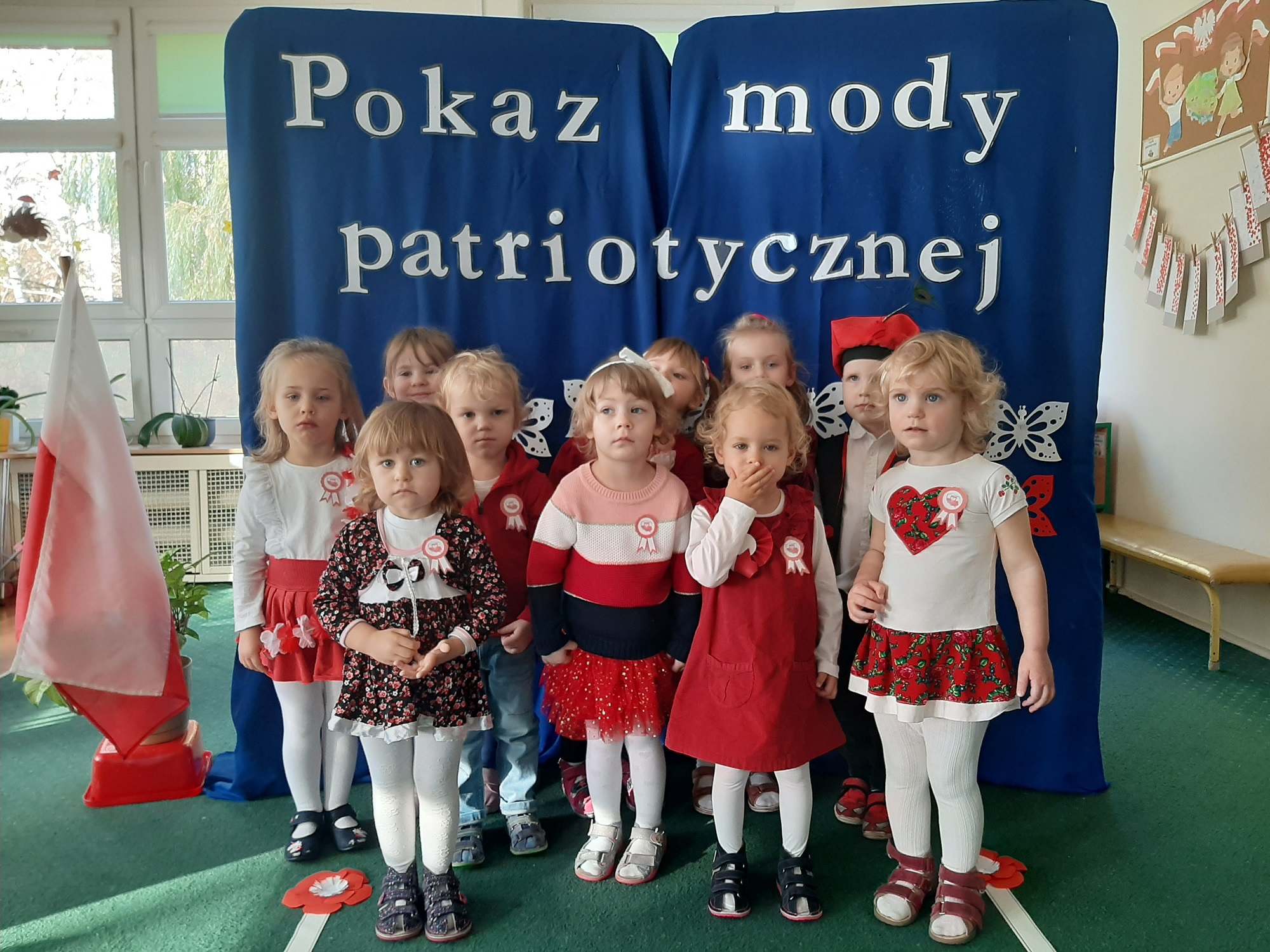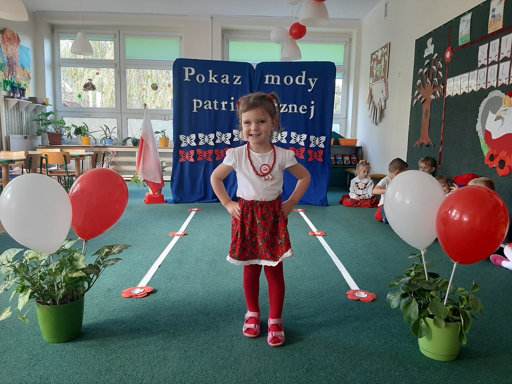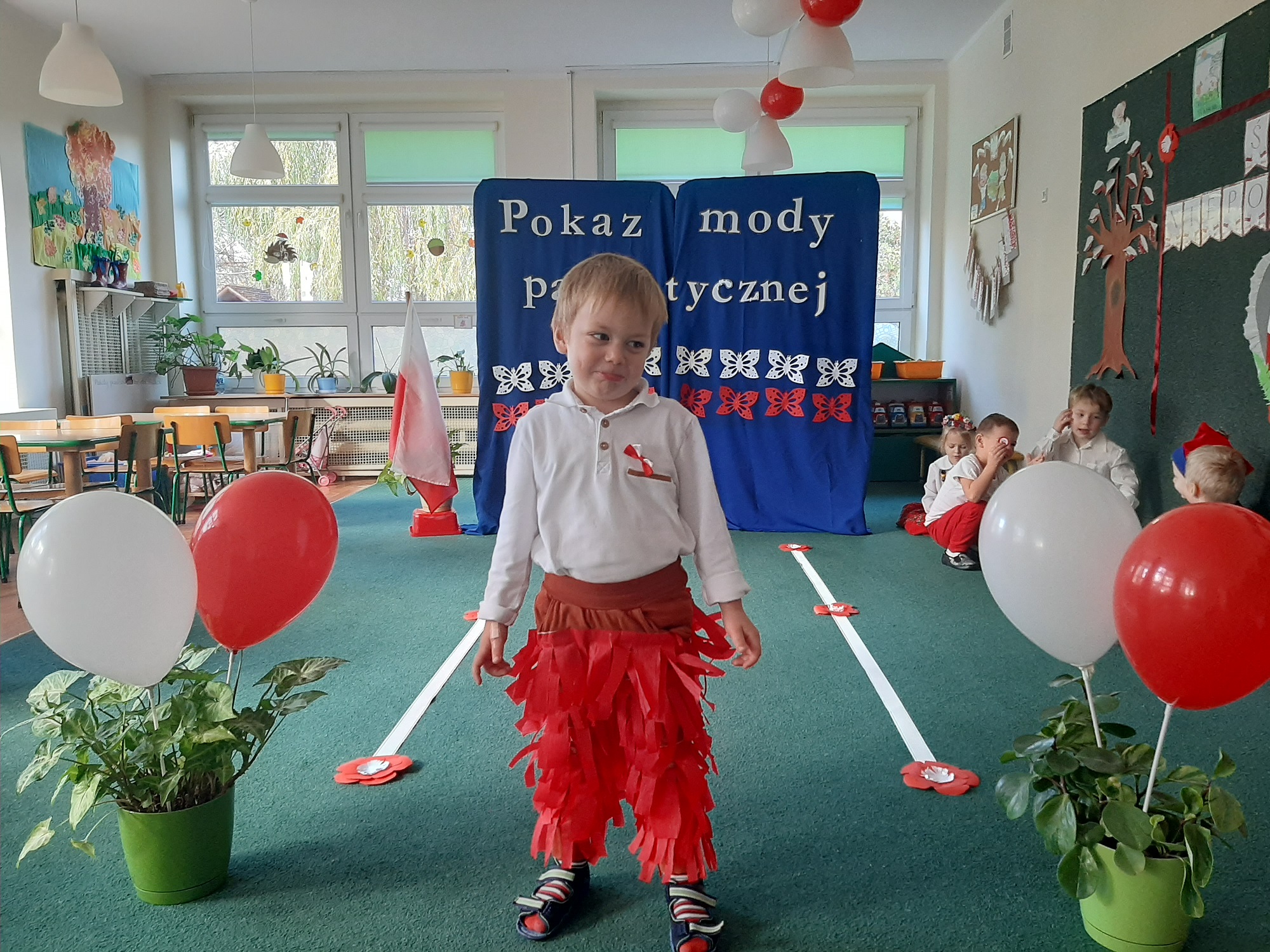 Punktem kulminacyjnym obchodów był pokaz strojów patriotycznych. W ten dzień przedszkolna sala zamieniła się w wybieg, a przedszkolaki w modelki i modeli, którzy przy dźwiękach muzyki, prezentowali swe piękne stroje. Wśród strojów dominowały stroje ludowe i w barwach narodowych.