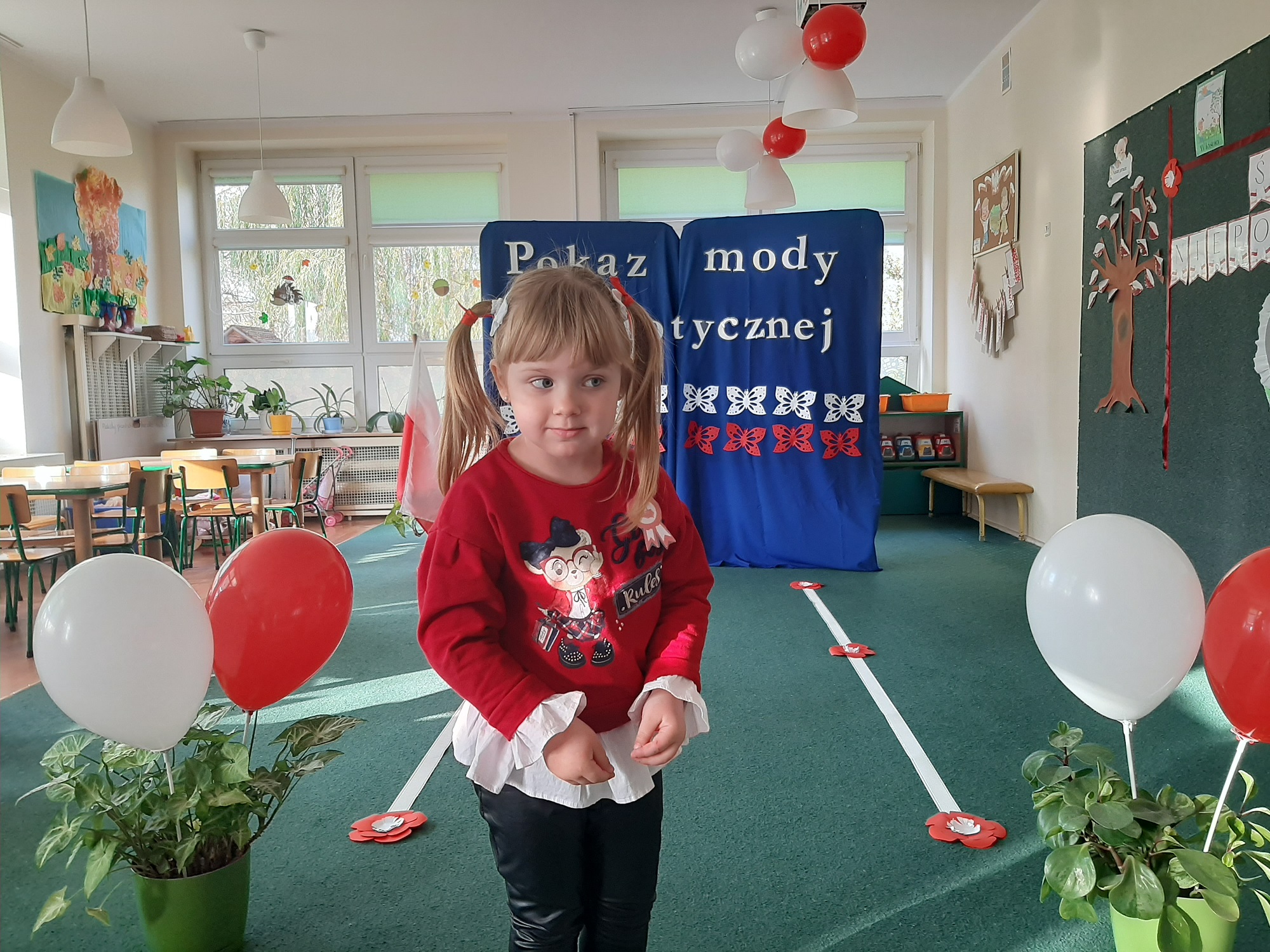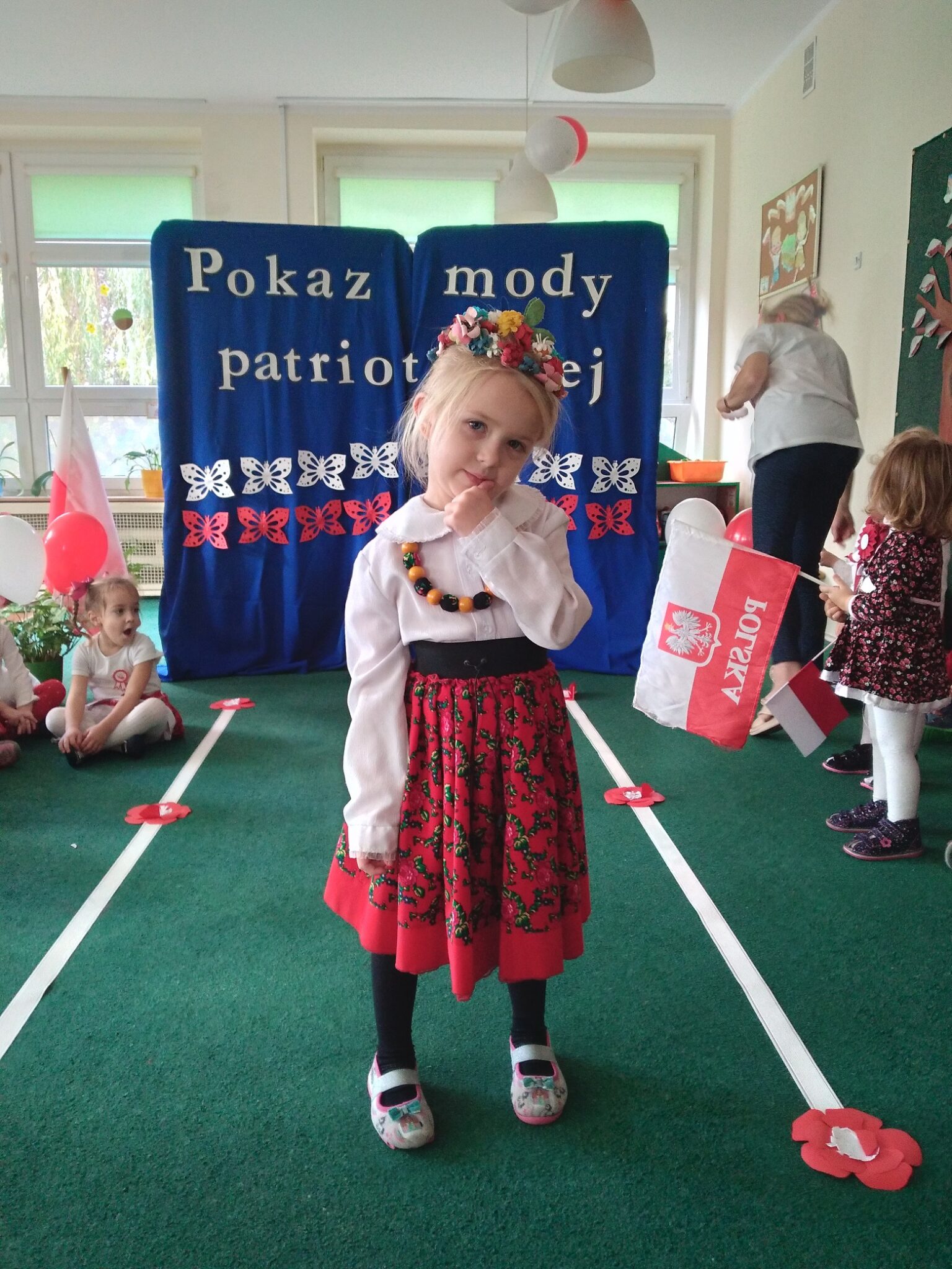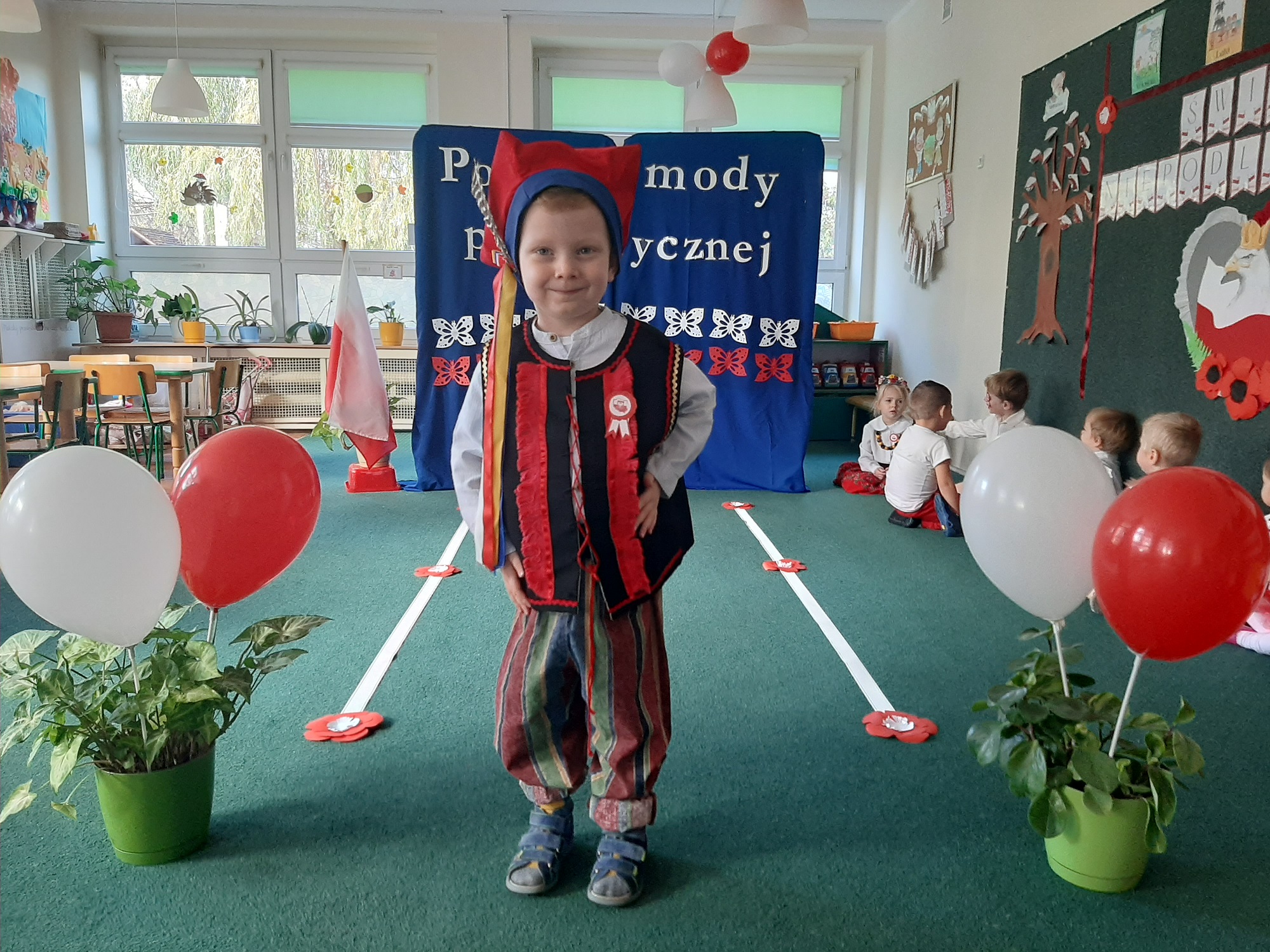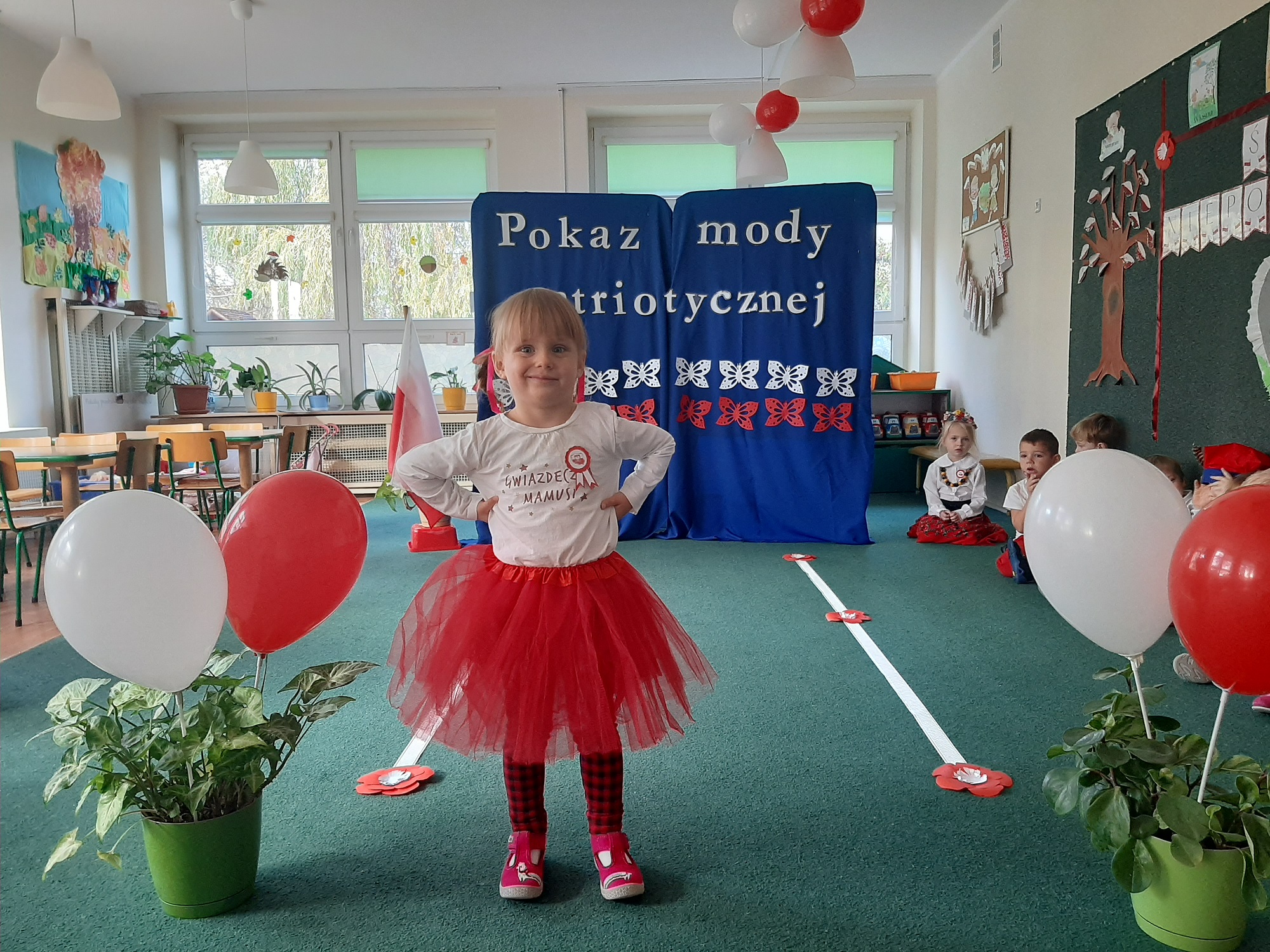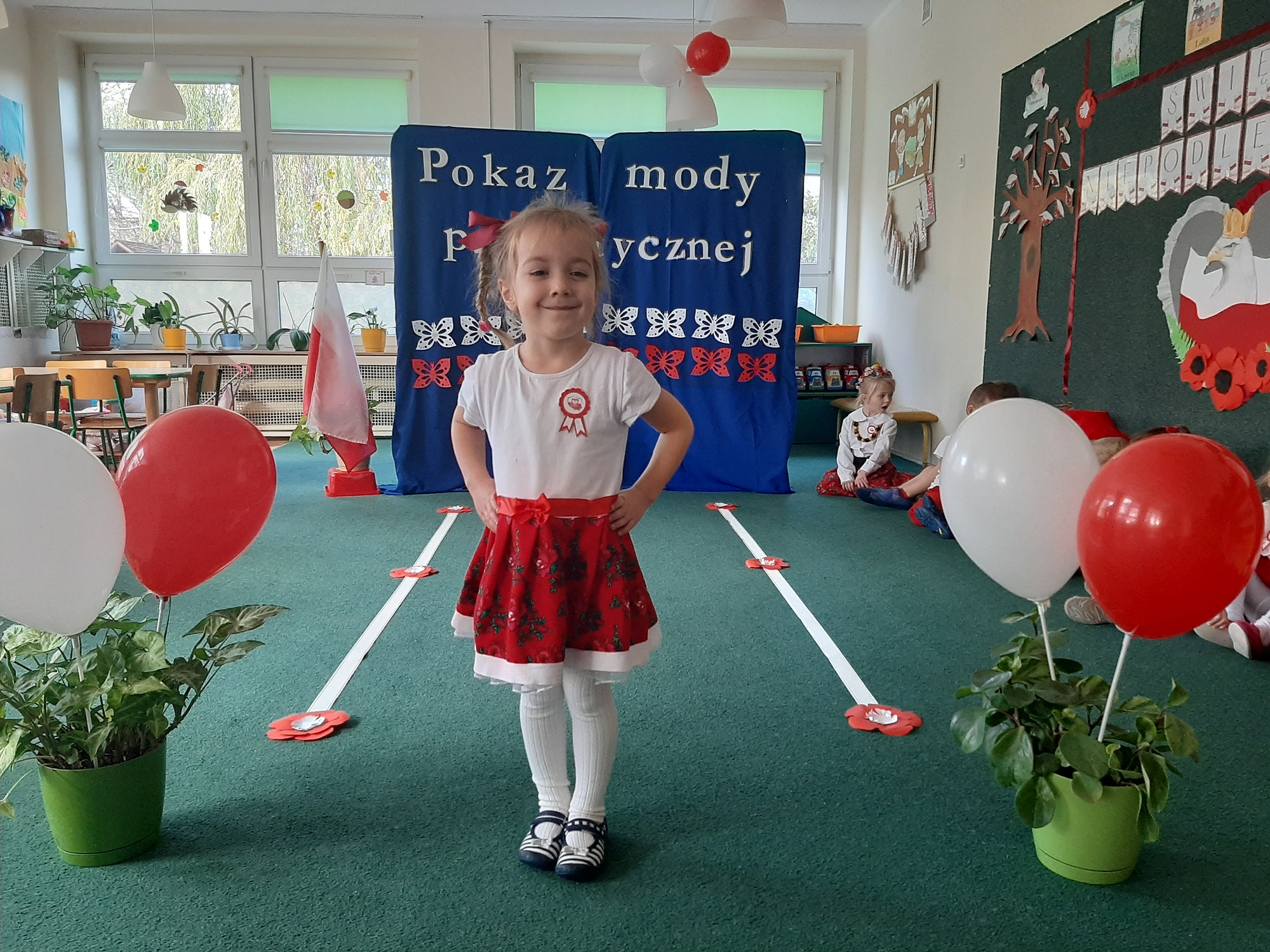 Punktem kulminacyjnym obchodów był pokaz strojów patriotycznych. W ten dzień przedszkolna sala zamieniła się w wybieg, a przedszkolaki w modelki i modeli, którzy przy dźwiękach muzyki, prezentowali swe piękne stroje. Wśród strojów dominowały stroje ludowe i w barwach narodowych.