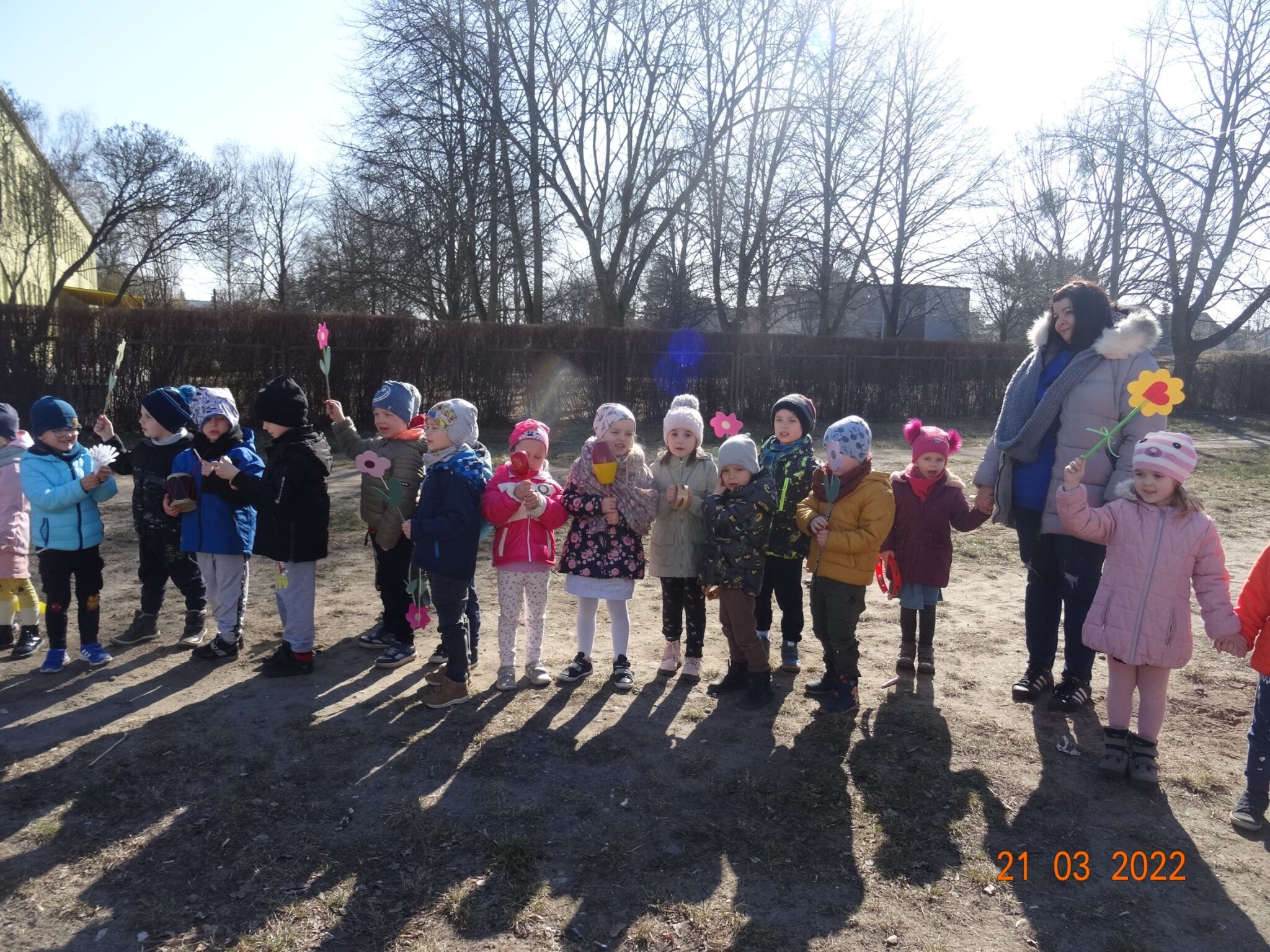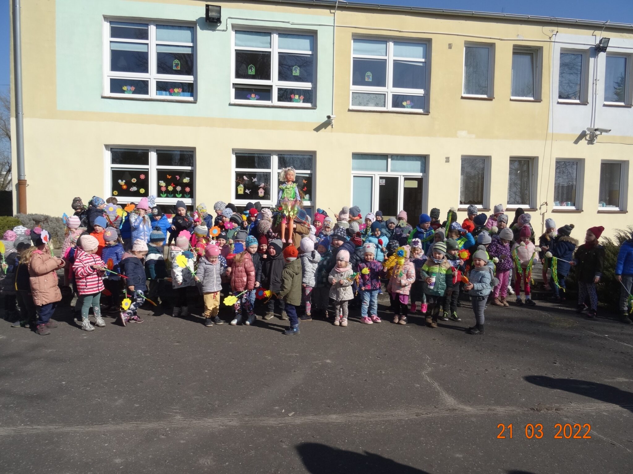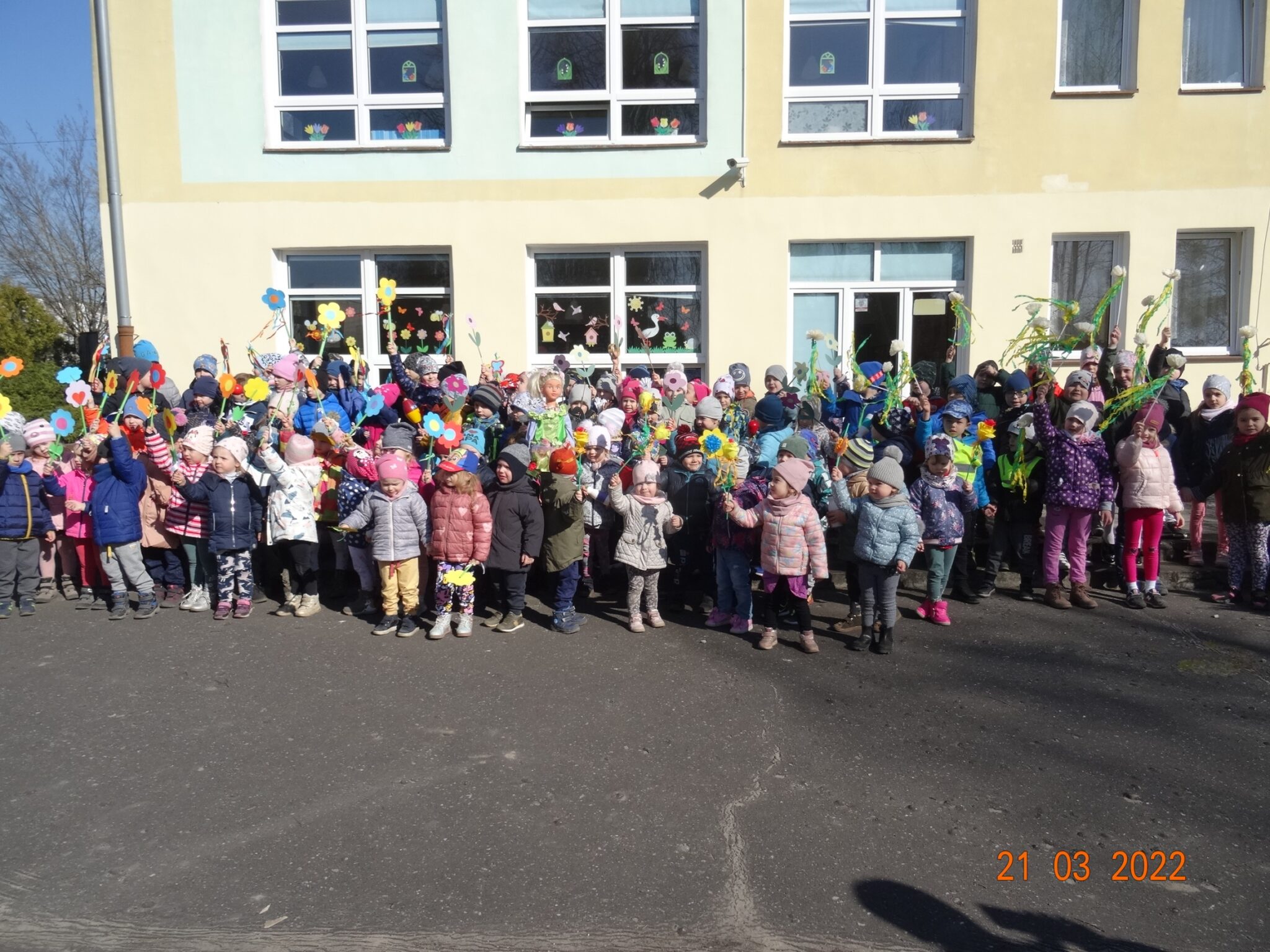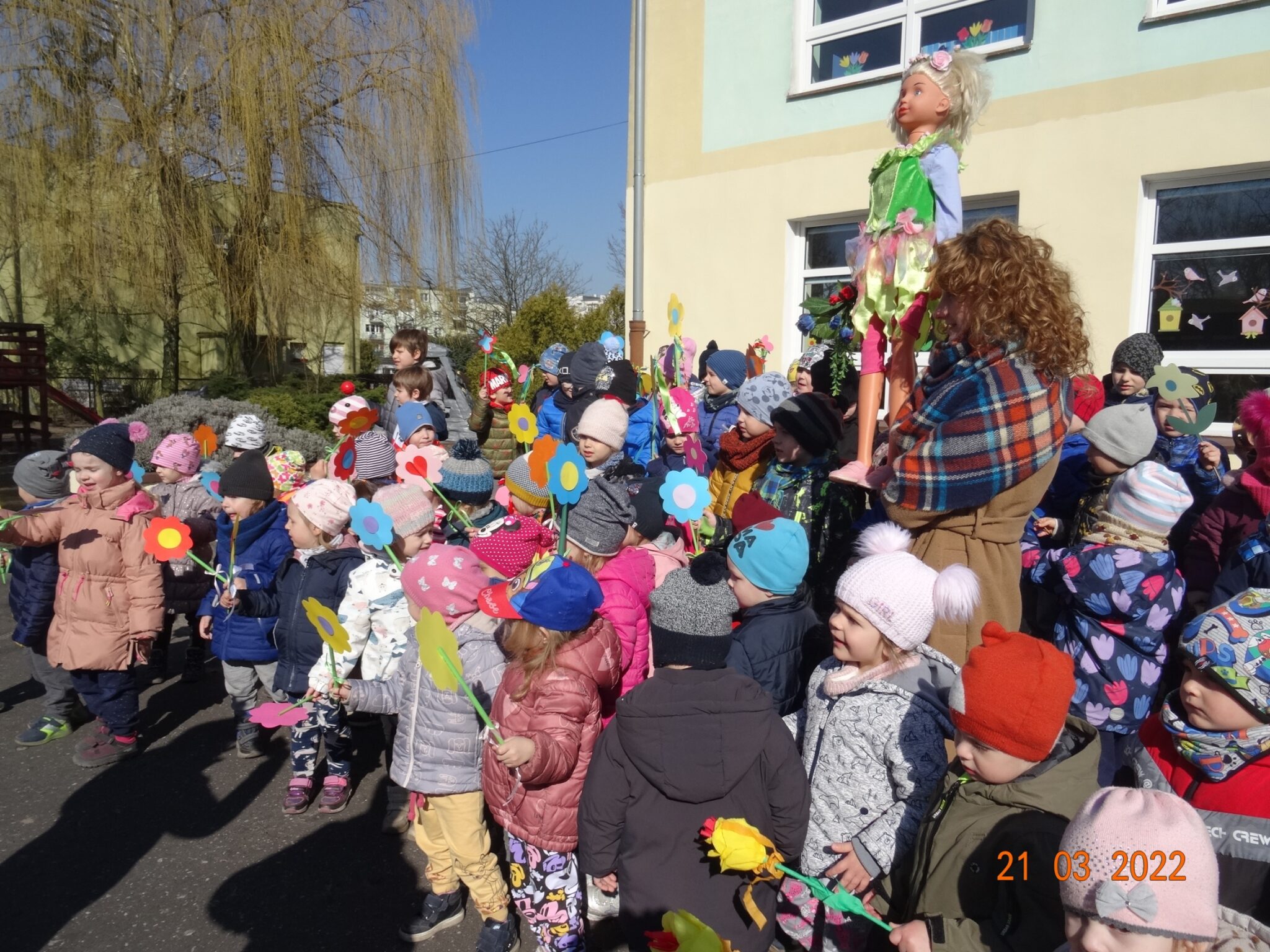 21 marca dzieci z naszego przedszkola świętowały powitanie wiosny. Jest to doskonała okazja do zapoznania się z tradycją żegnania zimy i powitania nowej pory roku. Przygotowania do tego dnia trwały już od tygodnia. Dzieci poprzez udział w różnych zabawach rozwijały zainteresowania o otaczającym środowisku przyrodniczym i zachodzącymi w nim zmianami. Śpiewały piosenki, rozwiązywały zagadki, słuchały opowiadań o nadejściu wiosny, a podczas spacerów szukały oznak nowej pory roku.