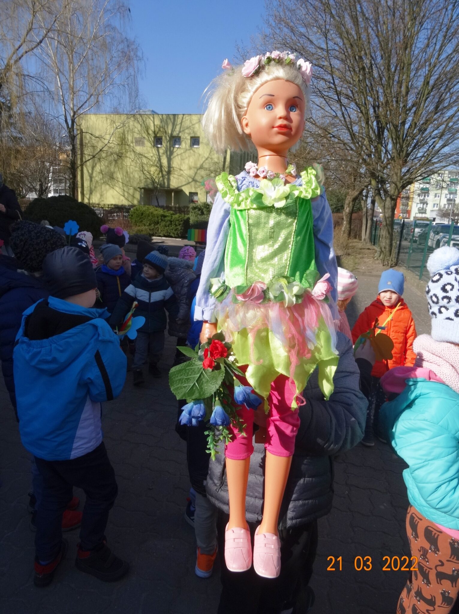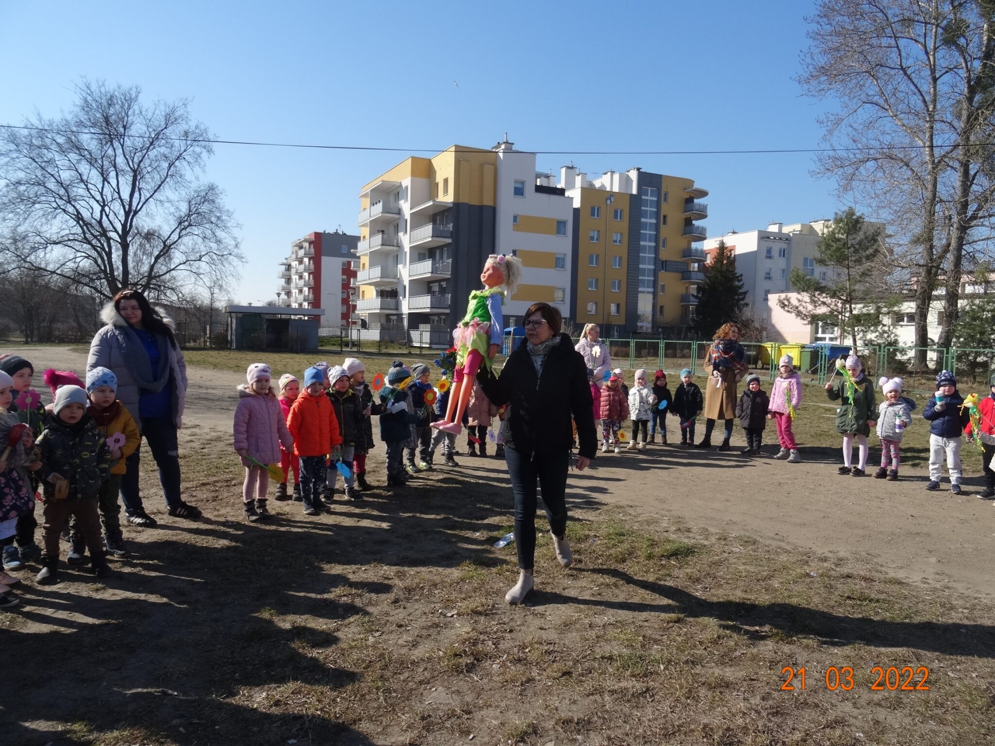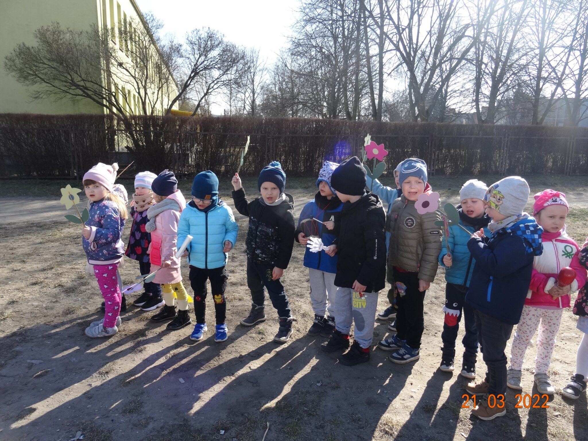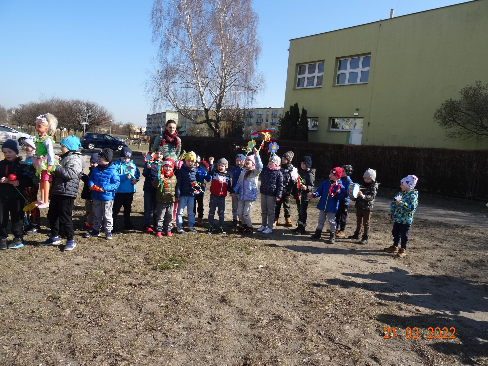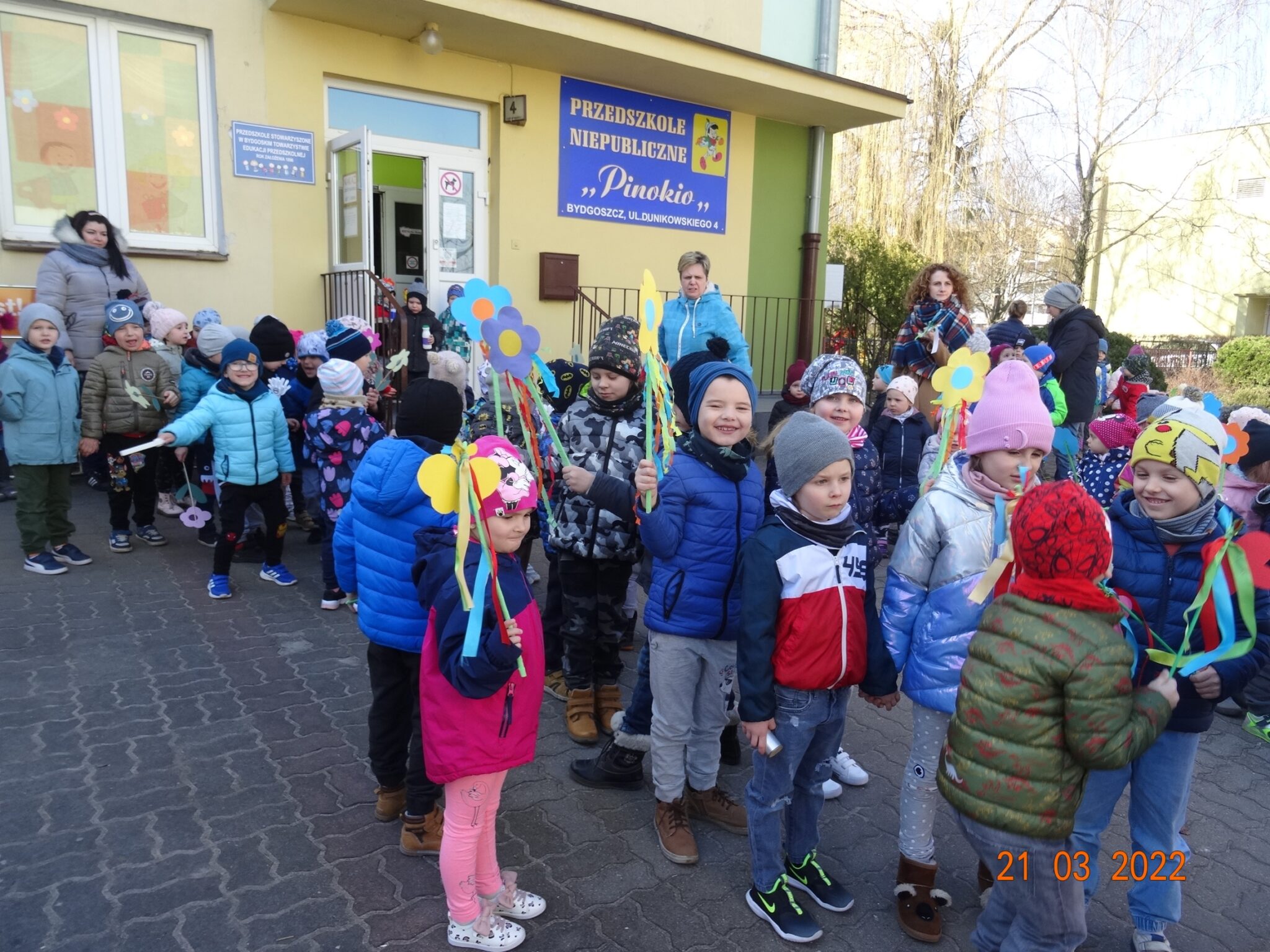 21 marca dzieci z naszego przedszkola świętowały powitanie wiosny. Jest to doskonała okazja do zapoznania się z tradycją żegnania zimy i powitania nowej pory roku. Przygotowania do tego dnia trwały już od tygodnia. Dzieci poprzez udział w różnych zabawach rozwijały zainteresowania o otaczającym środowisku przyrodniczym i zachodzącymi w nim zmianami. Śpiewały piosenki, rozwiązywały zagadki, słuchały opowiadań o nadejściu wiosny, a podczas spacerów szukały oznak nowej pory roku.