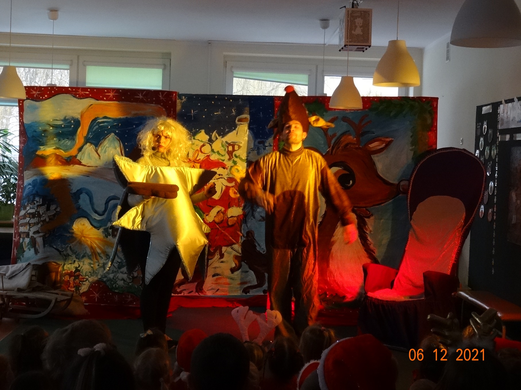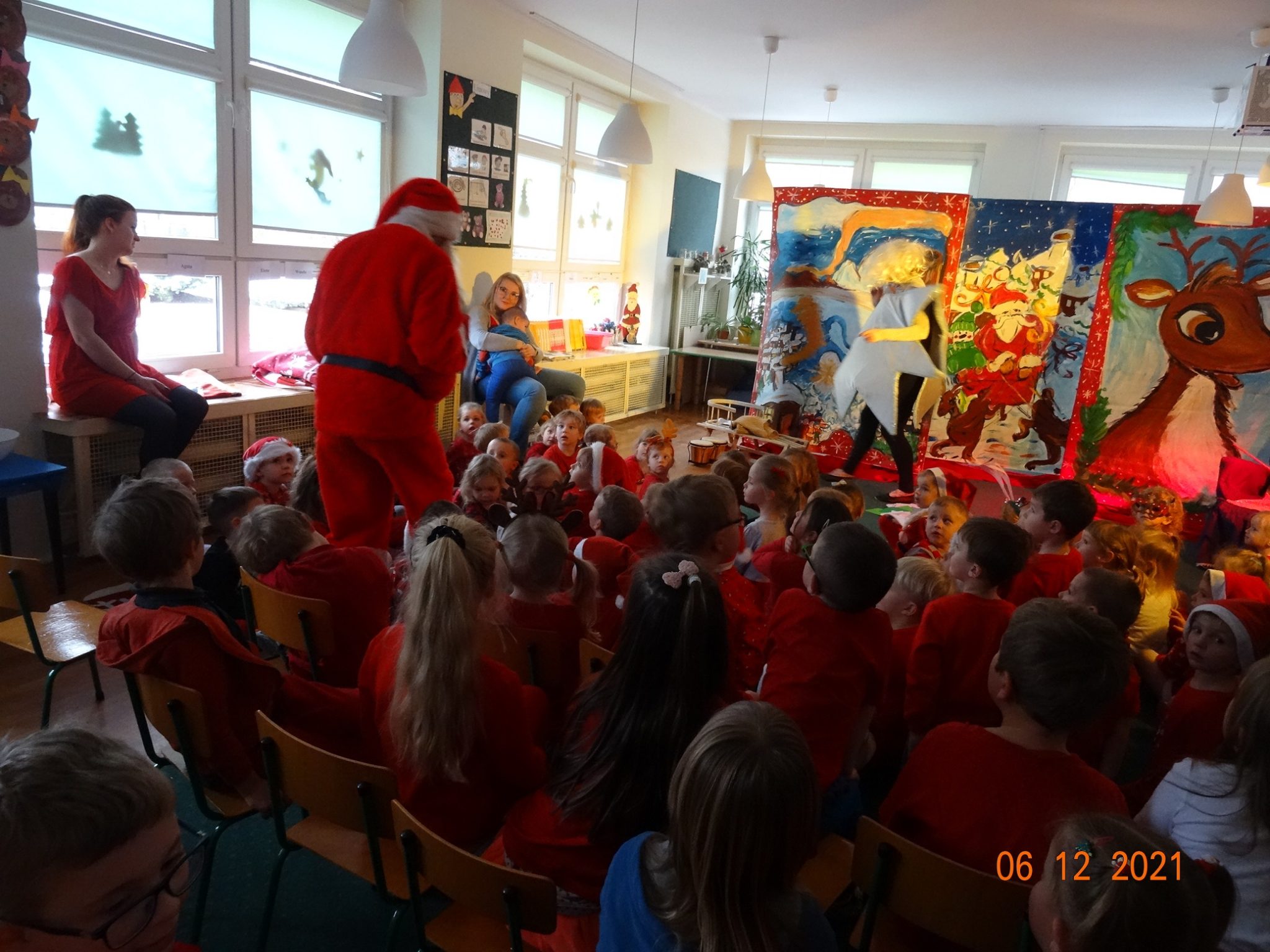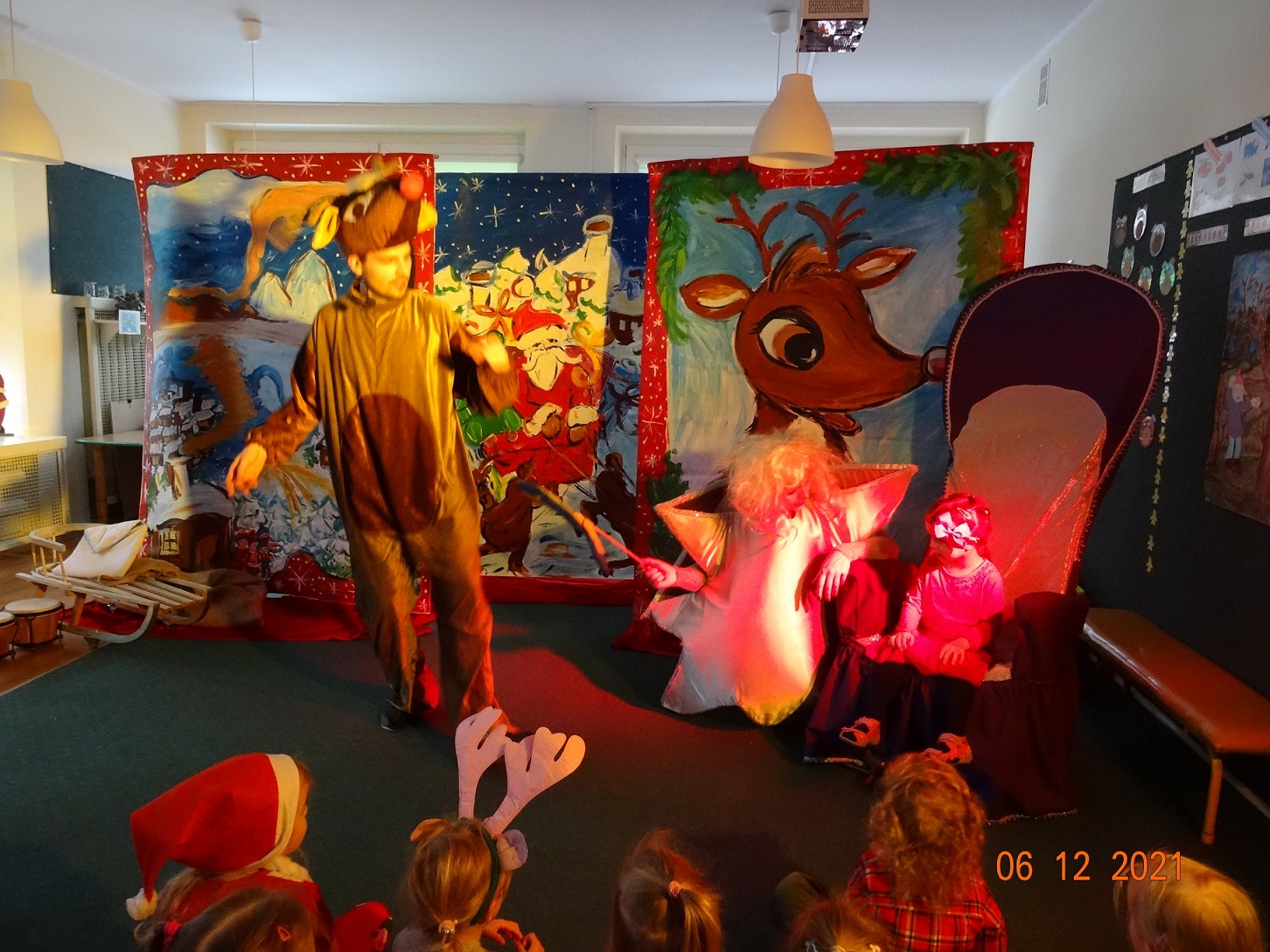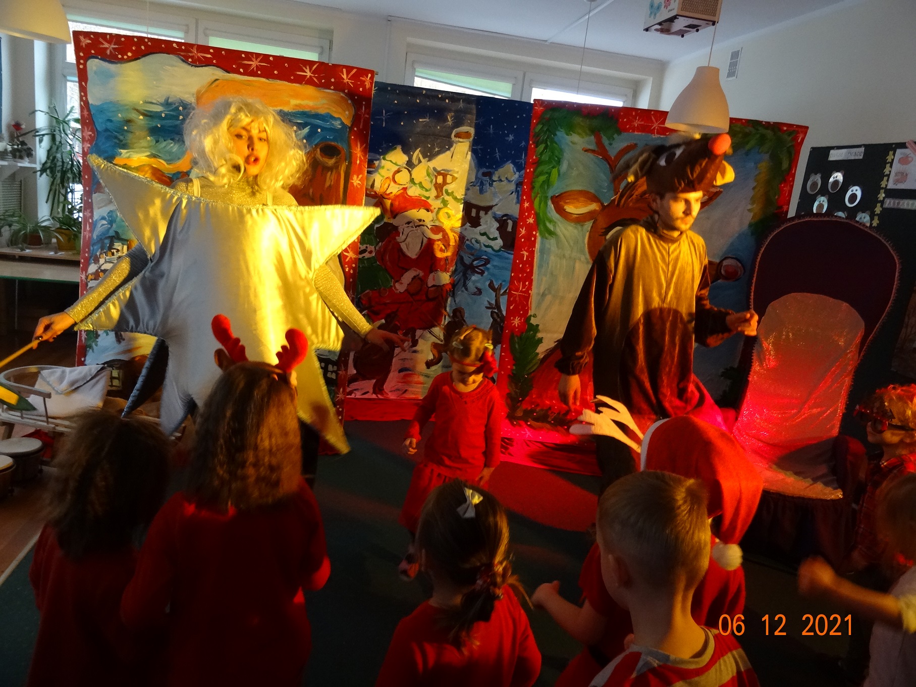 06 grudnia w dzieci przedszkolu odwiedzili aktorzy grupy teatralnej Magmowcy z przedstawieniem „Era Renifera”. Świąteczna Gwiazdka dostała od swojego Szefa bardzo trudne zadanie – na kilka dni przed Bożym Narodzeniem musiała znaleźć kandydata do zaprzęgu św. Mikołaja. Niestety zanim renifer otrzymał miejsce w zaprzęgu musiał wykazać się różnymi umiejętnościami, które wspólnie z dziećmi oceniała Gwiazdka. Na szczęście udało się reniferowi pozytywnie zdać egzamin i wspólnie z Mikołajem mogli odwiedzić dzieci w przedszkolu i obdarować prezentami.