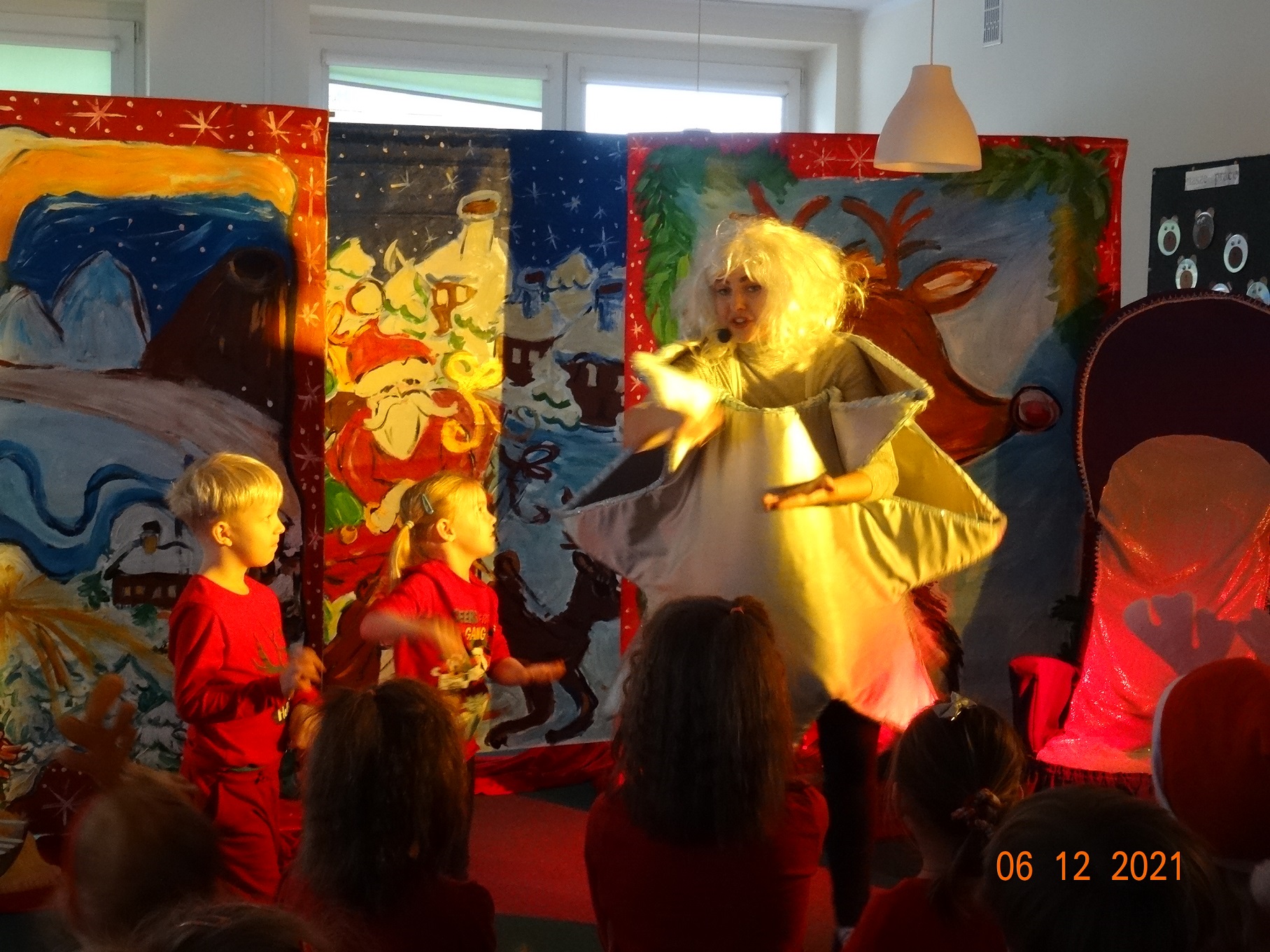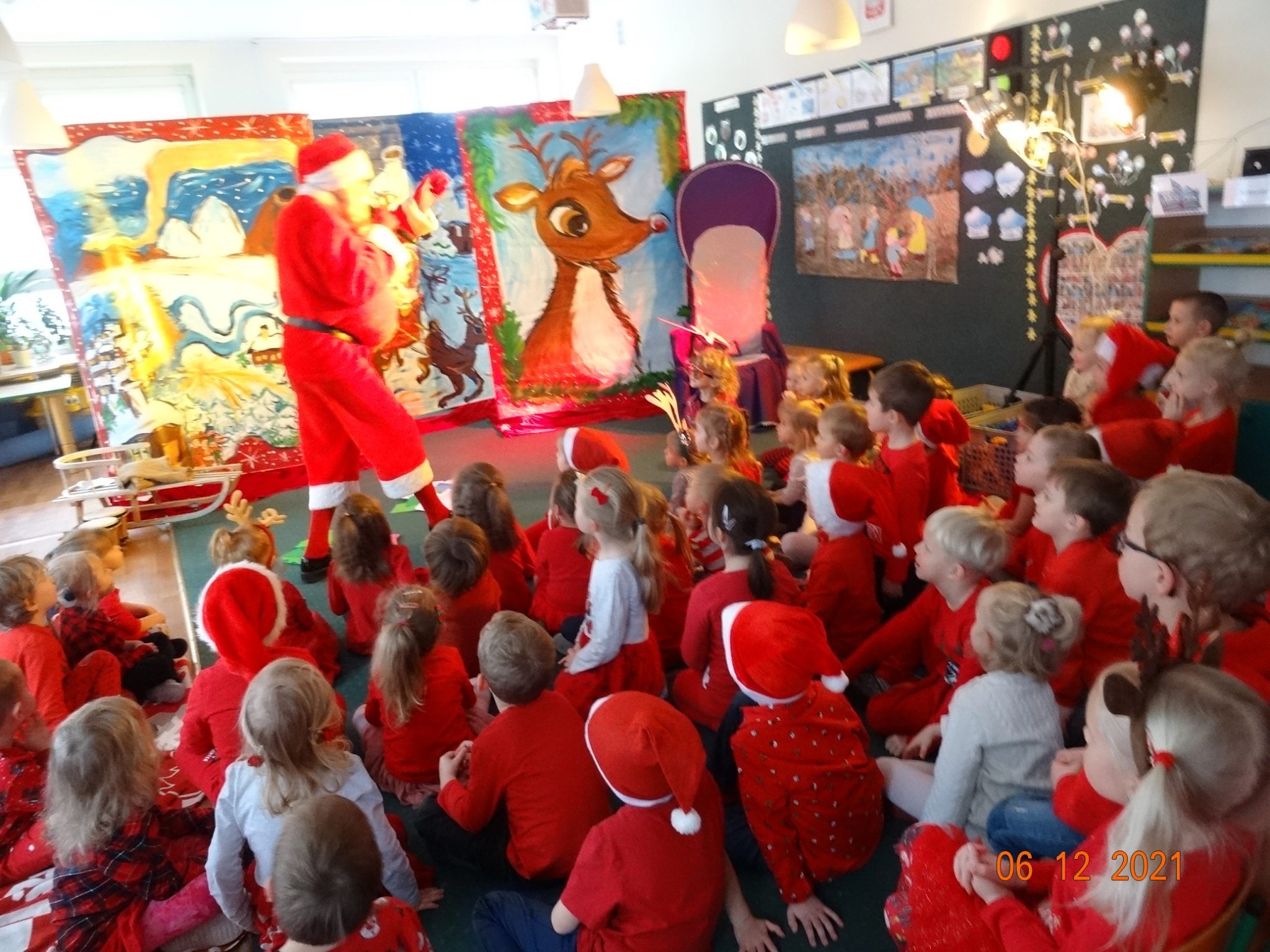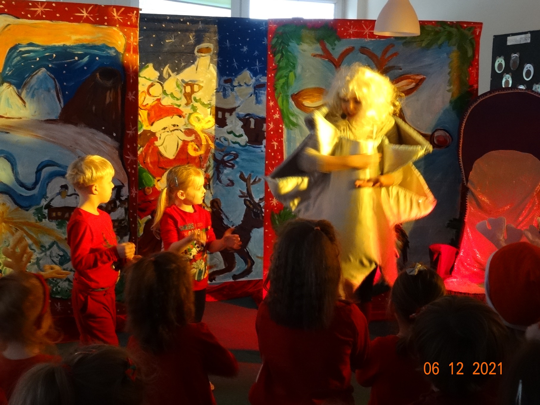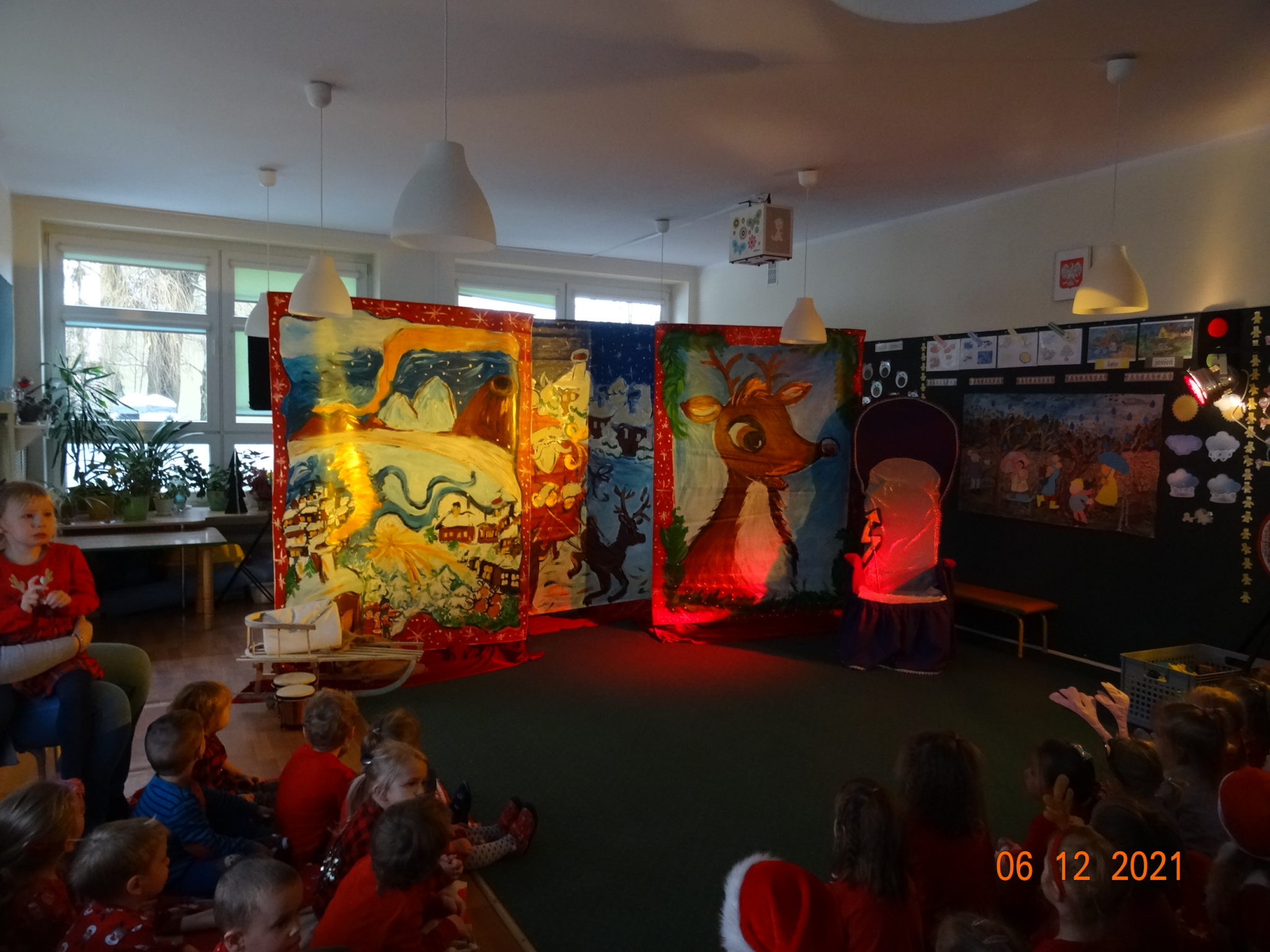 06 grudnia w dzieci przedszkolu odwiedzili aktorzy grupy teatralnej Magmowcy z przedstawieniem „Era Renifera”. Świąteczna Gwiazdka dostała od swojego Szefa bardzo trudne zadanie – na kilka dni przed Bożym Narodzeniem musiała znaleźć kandydata do zaprzęgu św. Mikołaja. Niestety zanim renifer otrzymał miejsce w zaprzęgu musiał wykazać się różnymi umiejętnościami, które wspólnie z dziećmi oceniała Gwiazdka. Na szczęście udało się reniferowi pozytywnie zdać egzamin i wspólnie z Mikołajem mogli odwiedzić dzieci w przedszkolu i obdarować prezentami.