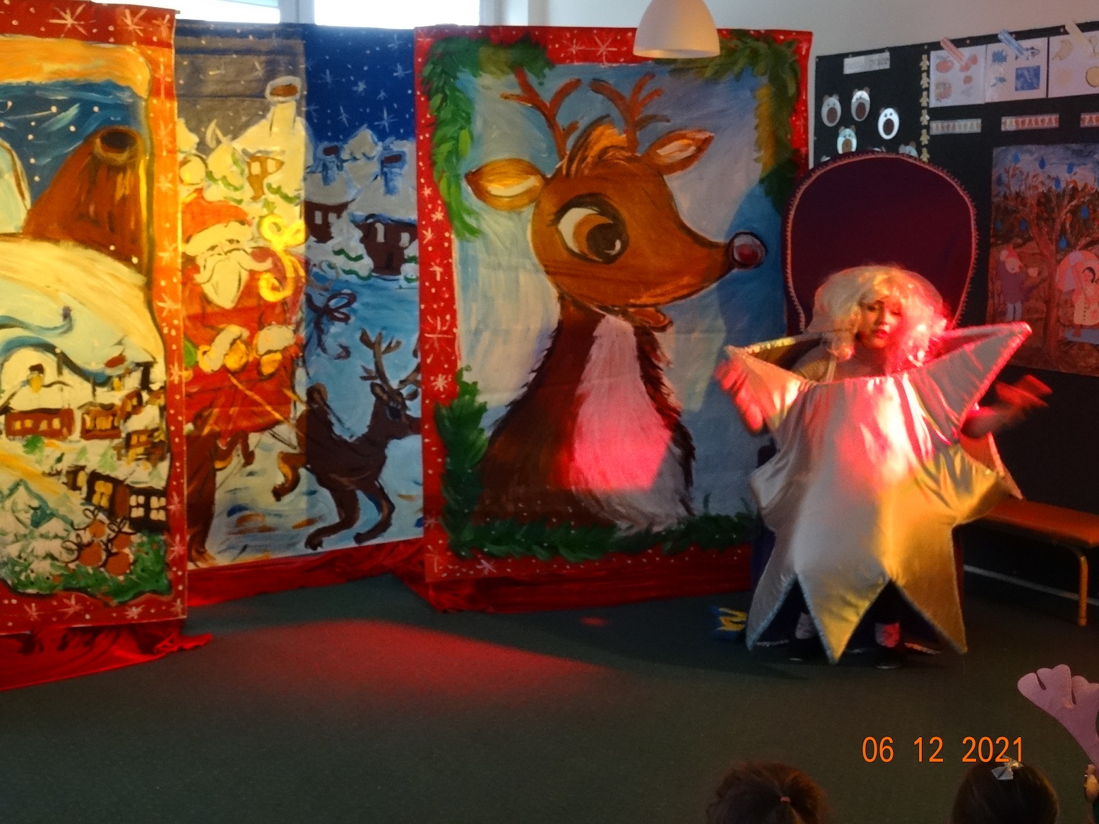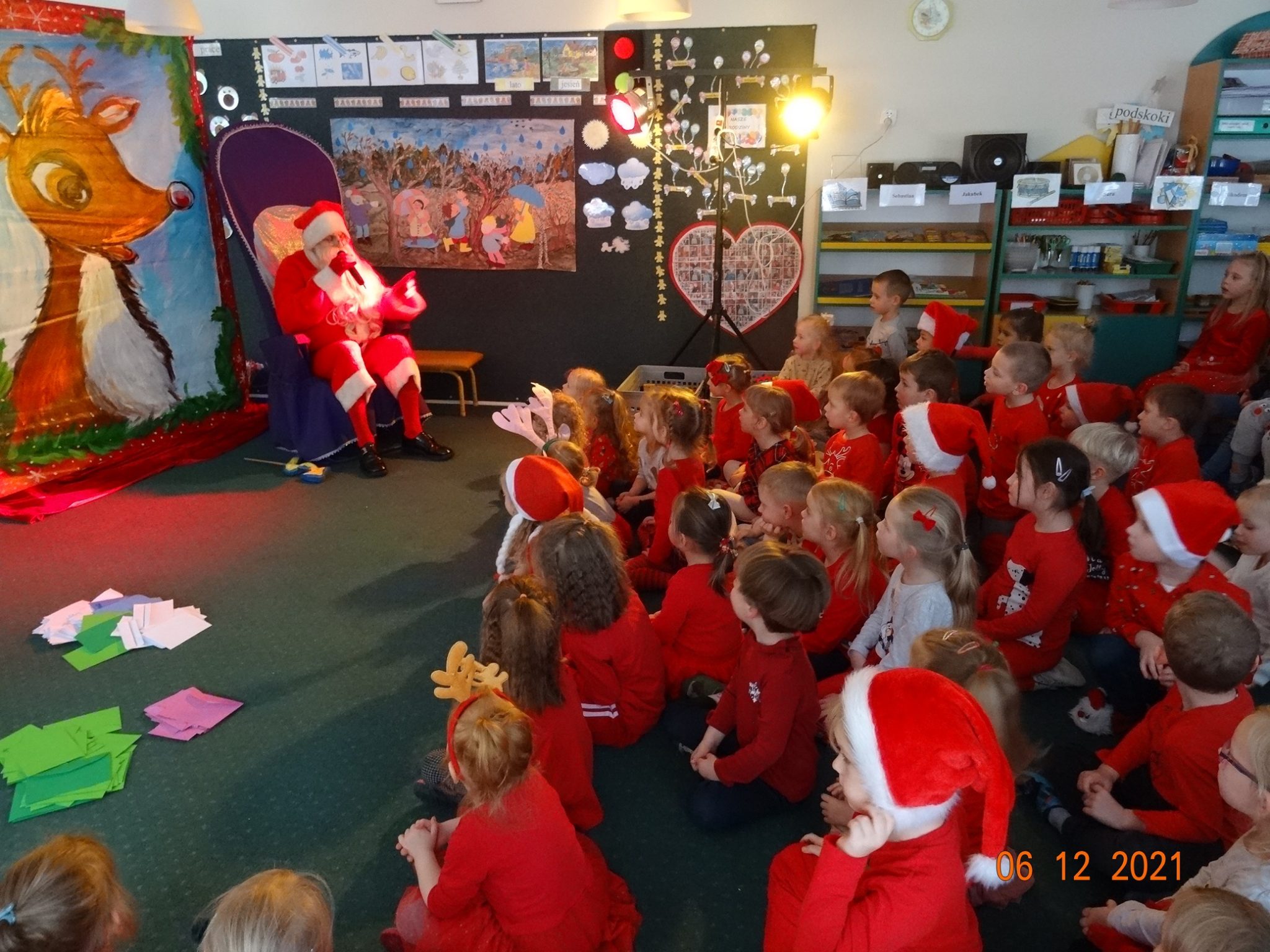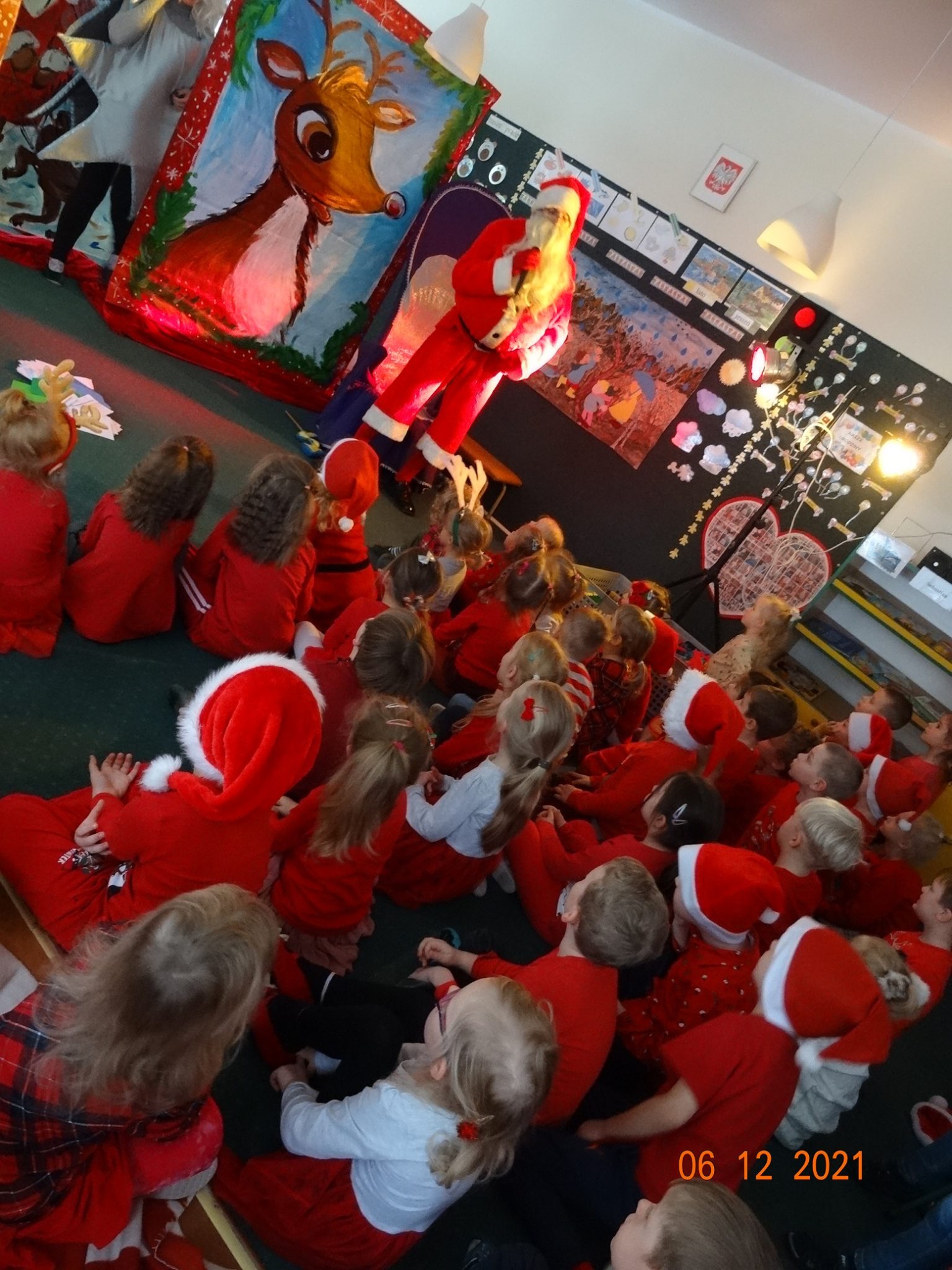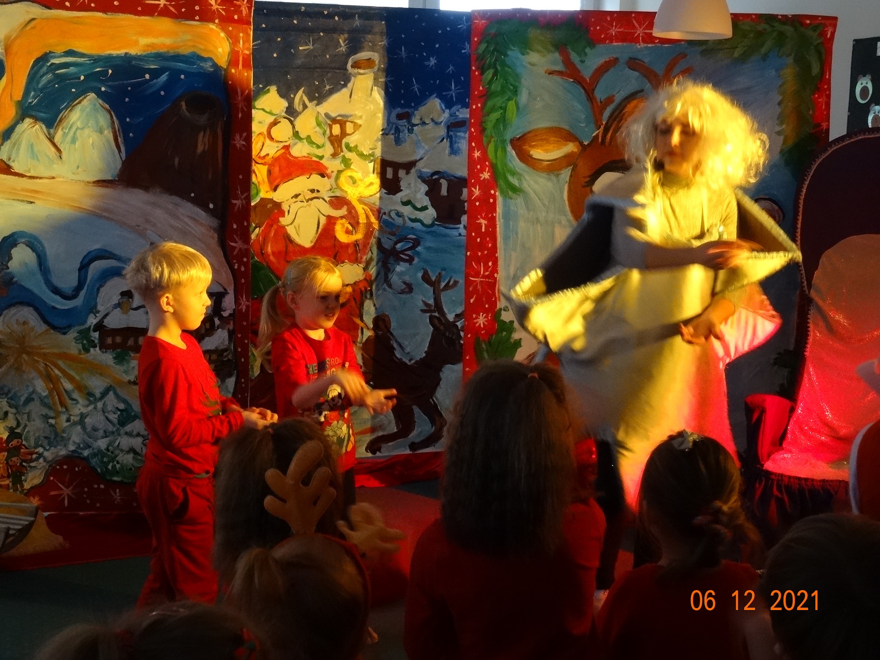 06 grudnia w dzieci przedszkolu odwiedzili aktorzy grupy teatralnej Magmowcy z przedstawieniem „Era Renifera”. Świąteczna Gwiazdka dostała od swojego Szefa bardzo trudne zadanie – na kilka dni przed Bożym Narodzeniem musiała znaleźć kandydata do zaprzęgu św. Mikołaja. Niestety zanim renifer otrzymał miejsce w zaprzęgu musiał wykazać się różnymi umiejętnościami, które wspólnie z dziećmi oceniała Gwiazdka. Na szczęście udało się reniferowi pozytywnie zdać egzamin i wspólnie z Mikołajem mogli odwiedzić dzieci w przedszkolu i obdarować prezentami.