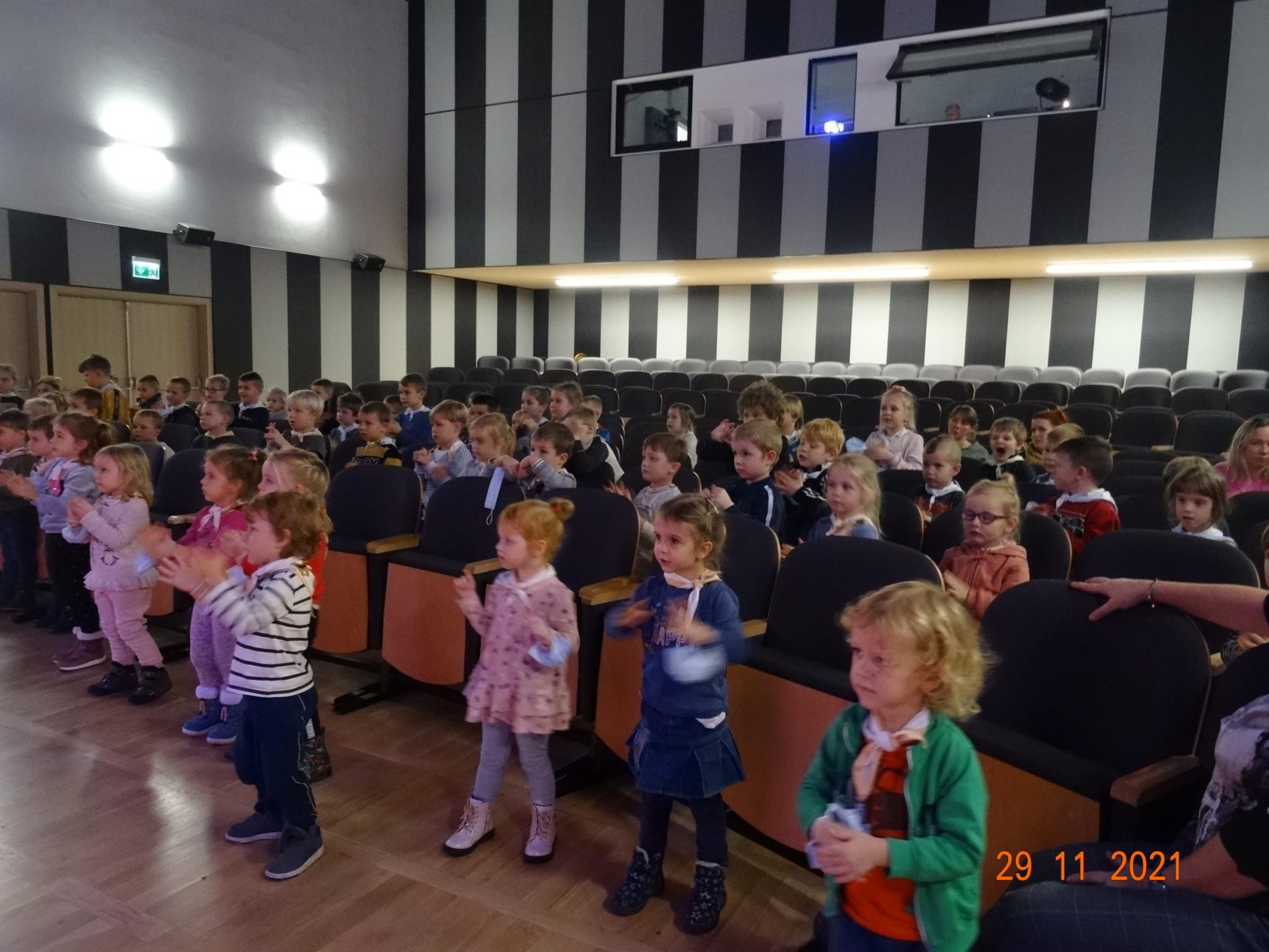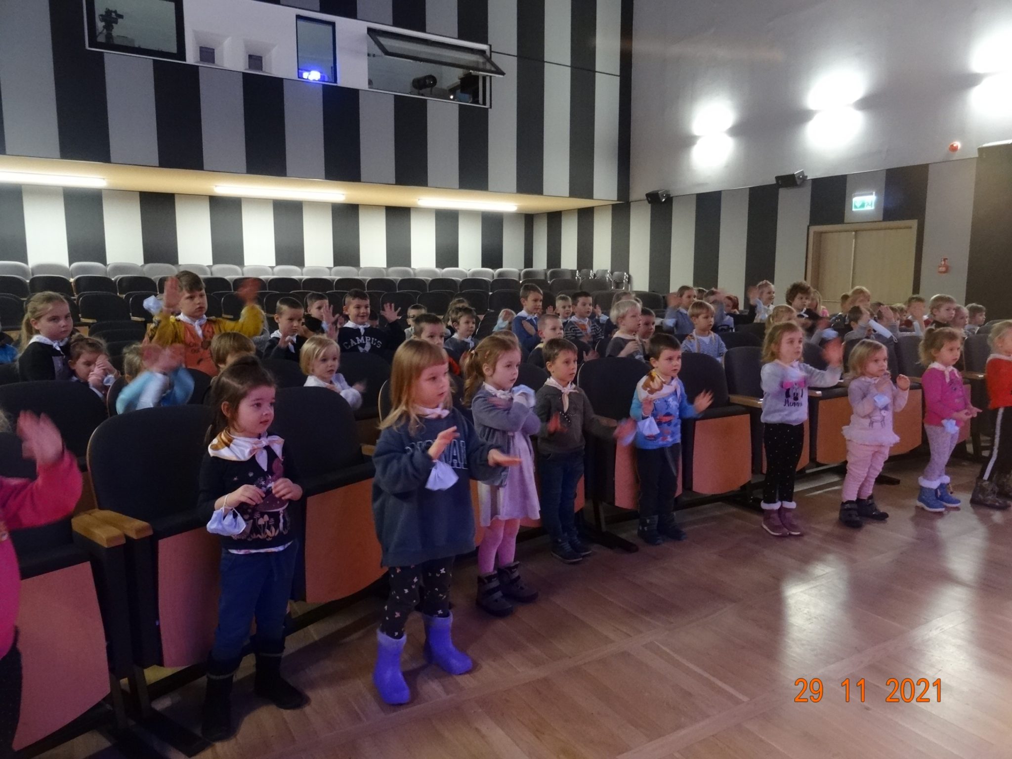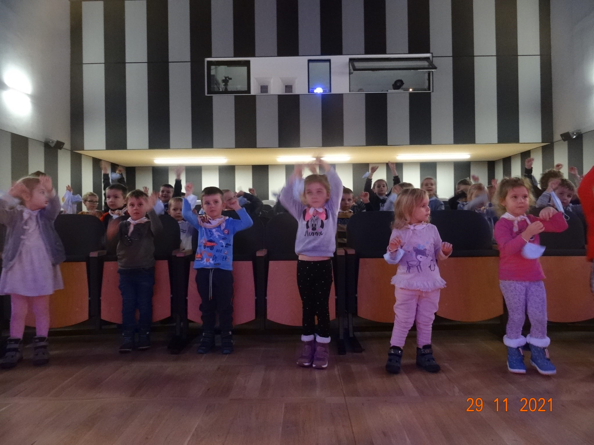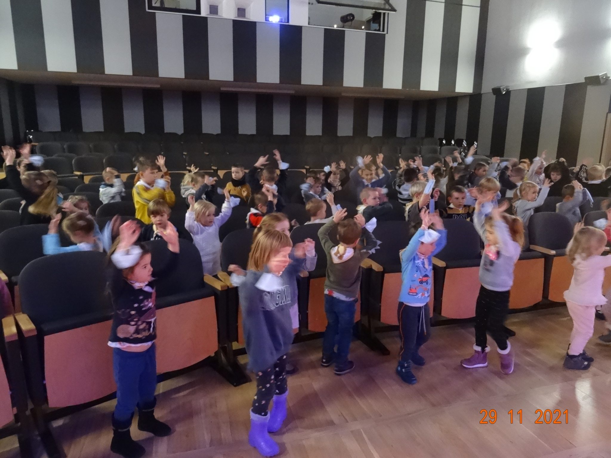 29 listopada dzieci z gr. Misiów, Pszczółek, Zajączków i Żabek wzięły udział w wycieczce do Pałacu Młodzieży na pokaz filmów rysunkowych w ramach projektu „Zabawowy Klub Malucha Zygzak”. Dzieci obejrzały 3 filmy: „Reksio i jesień”, „Tola” z serii przygód „Bolek i Lolek” oraz „Podwórko”, którego głównym bohaterem był Miś Kołaczek. Każda z projekcji połączona była z rozmową nt. obejrzanych na ekranie treści. Dzieci z pomocą animatorów miały również okazję wziąć udział we wspólnych zabawach rytmiczno-ruchowych przy muzyce. Z pewnością był to bardzo ciekawy dzień.