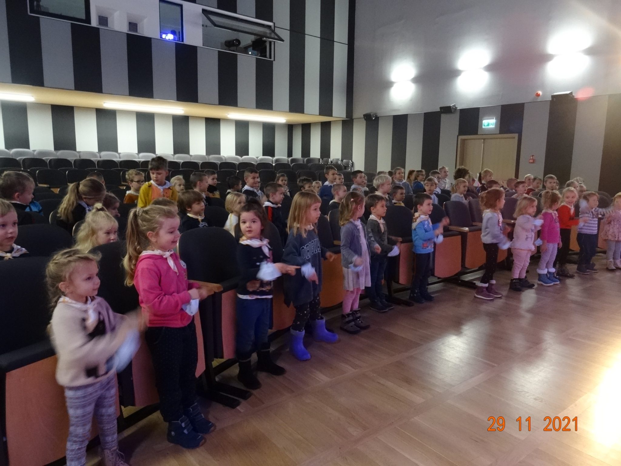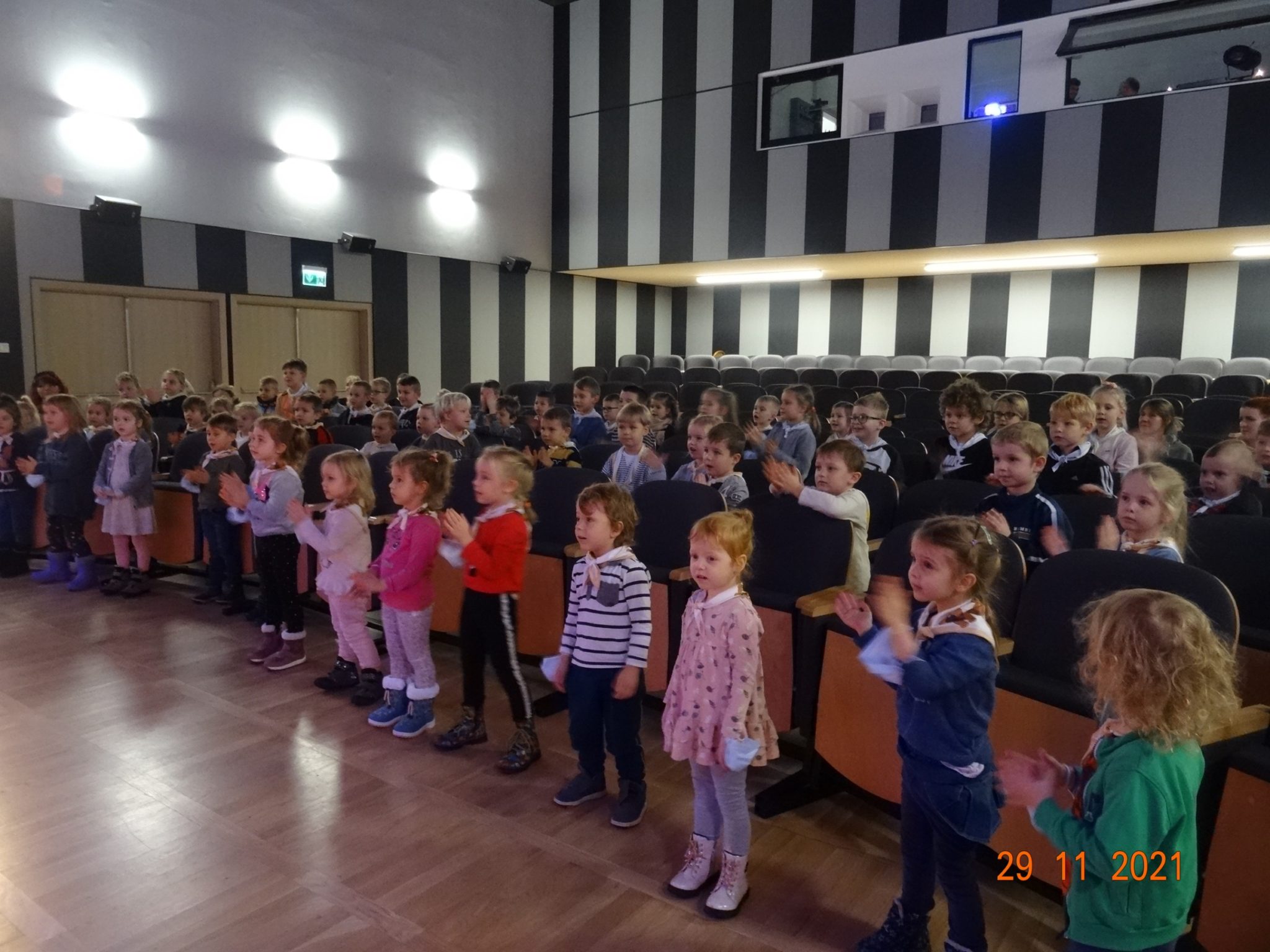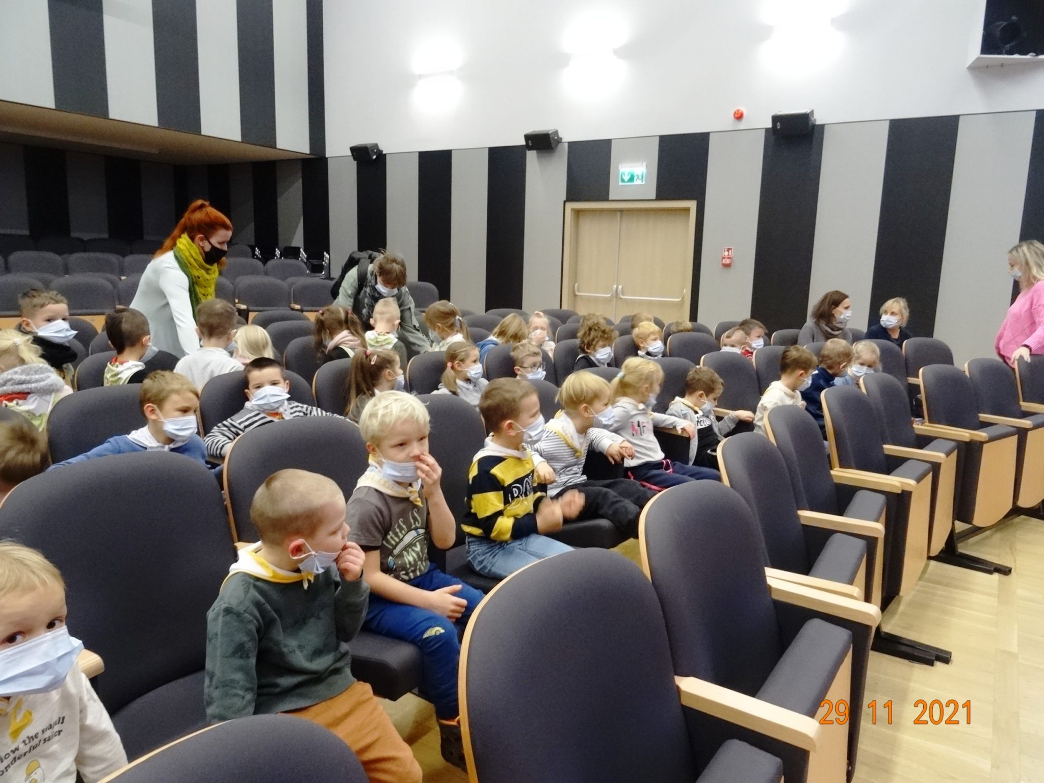 29 listopada dzieci z gr. Misiów, Pszczółek, Zajączków i Żabek wzięły udział w wycieczce do Pałacu Młodzieży na pokaz filmów rysunkowych w ramach projektu „Zabawowy Klub Malucha Zygzak”. Dzieci obejrzały 3 filmy: „Reksio i jesień”, „Tola” z serii przygód „Bolek i Lolek” oraz „Podwórko”, którego głównym bohaterem był Miś Kołaczek. Każda z projekcji połączona była z rozmową nt. obejrzanych na ekranie treści. Dzieci z pomocą animatorów miały również okazję wziąć udział we wspólnych zabawach rytmiczno-ruchowych przy muzyce. Z pewnością był to bardzo ciekawy dzień.