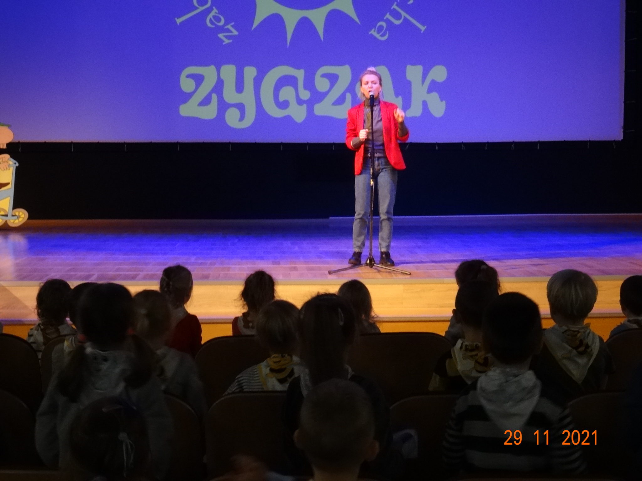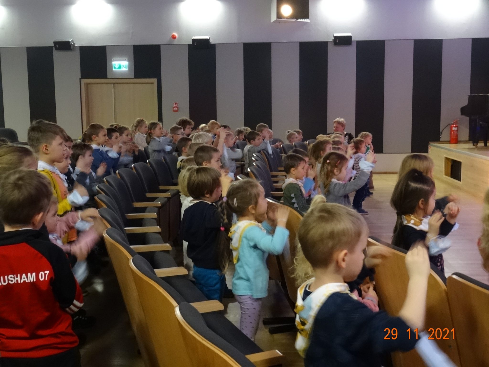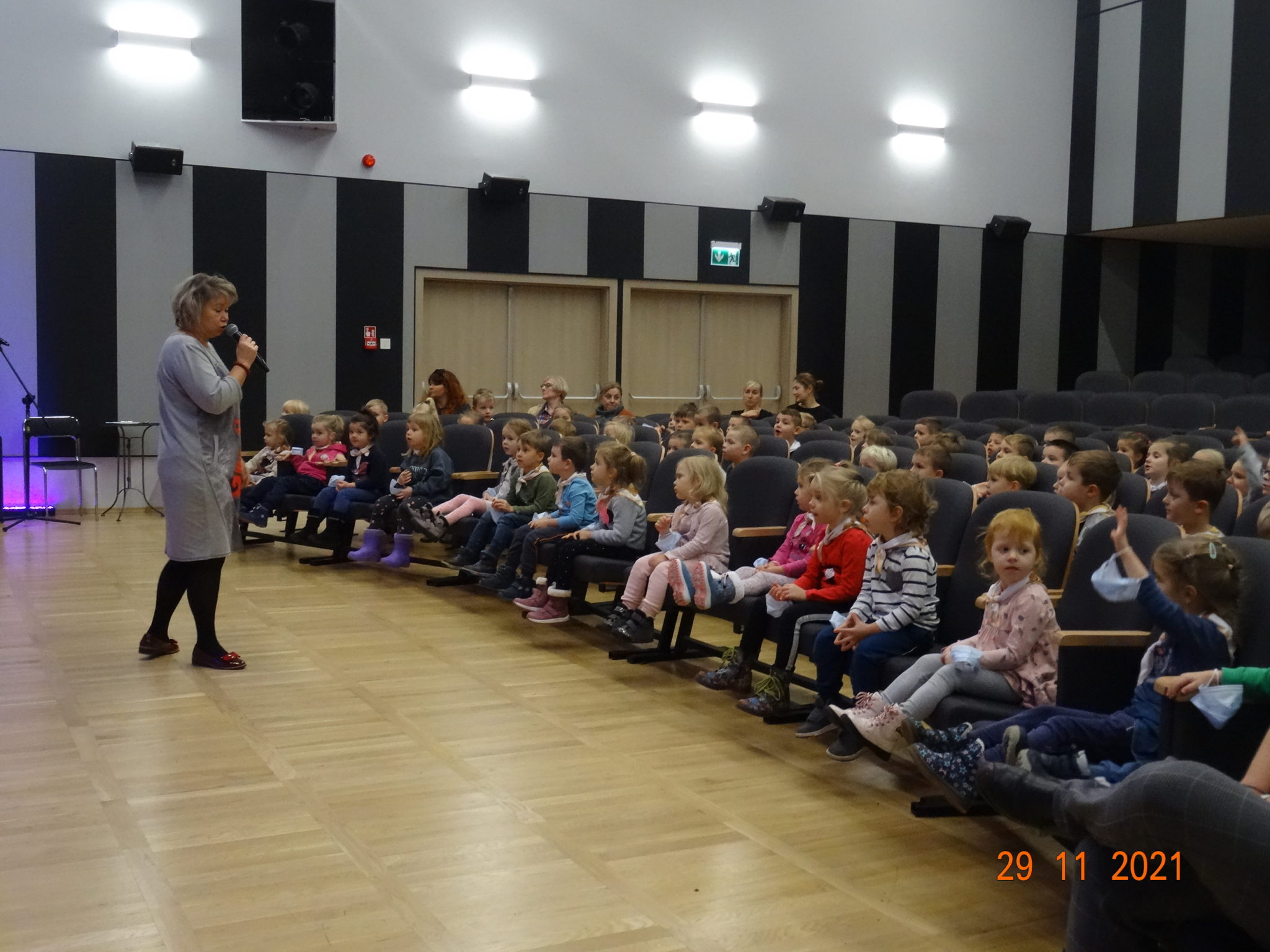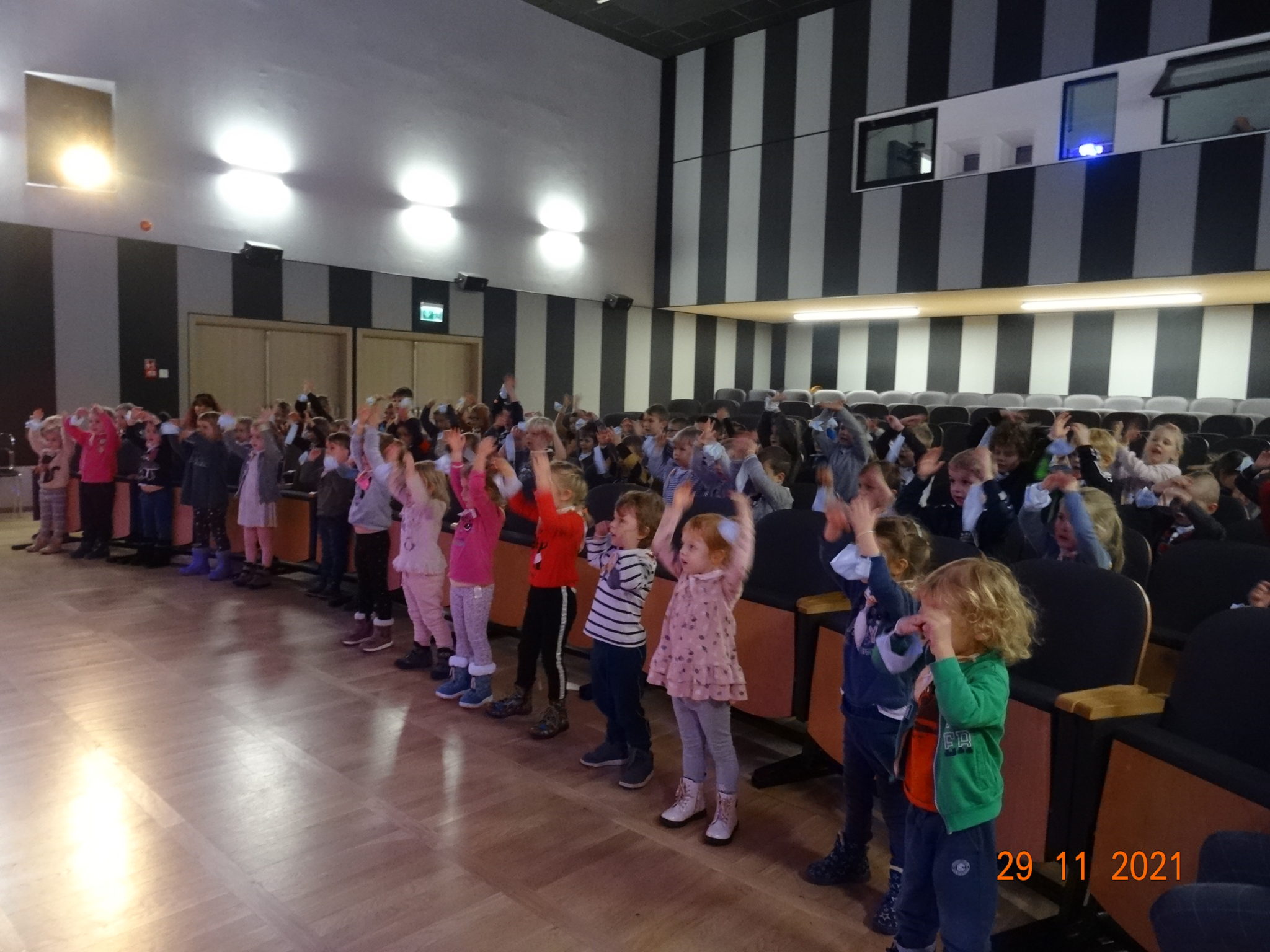 29 listopada dzieci z gr. Misiów, Pszczółek, Zajączków i Żabek wzięły udział w wycieczce do Pałacu Młodzieży na pokaz filmów rysunkowych w ramach projektu „Zabawowy Klub Malucha Zygzak”. Dzieci obejrzały 3 filmy: „Reksio i jesień”, „Tola” z serii przygód „Bolek i Lolek” oraz „Podwórko”, którego głównym bohaterem był Miś Kołaczek. Każda z projekcji połączona była z rozmową nt. obejrzanych na ekranie treści. Dzieci z pomocą animatorów miały również okazję wziąć udział we wspólnych zabawach rytmiczno-ruchowych przy muzyce. Z pewnością był to bardzo ciekawy dzień.