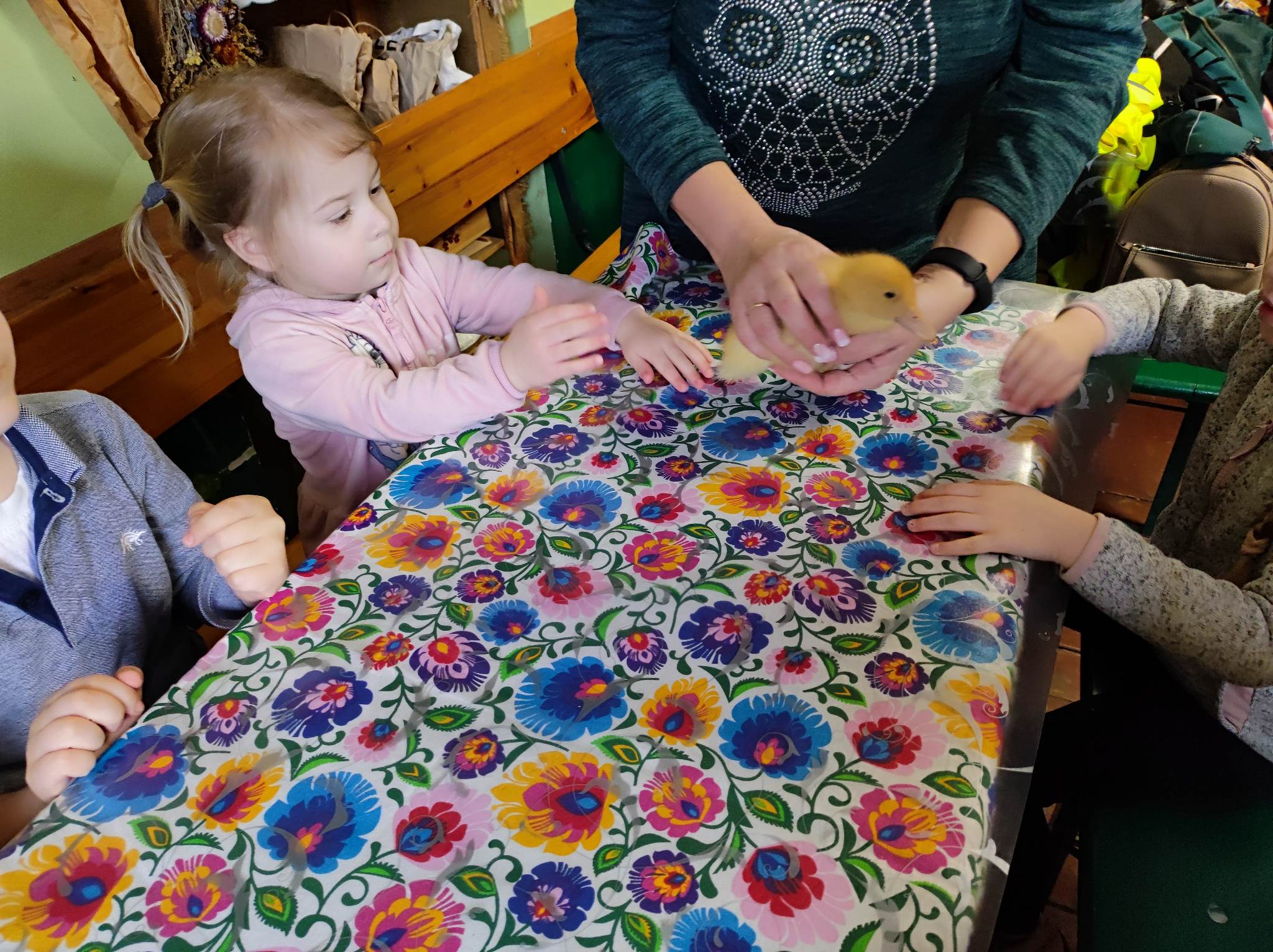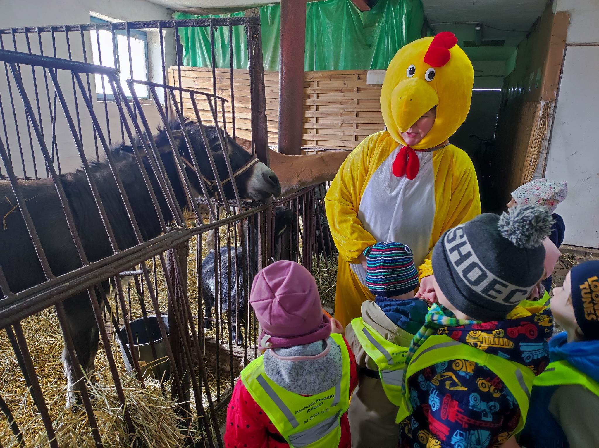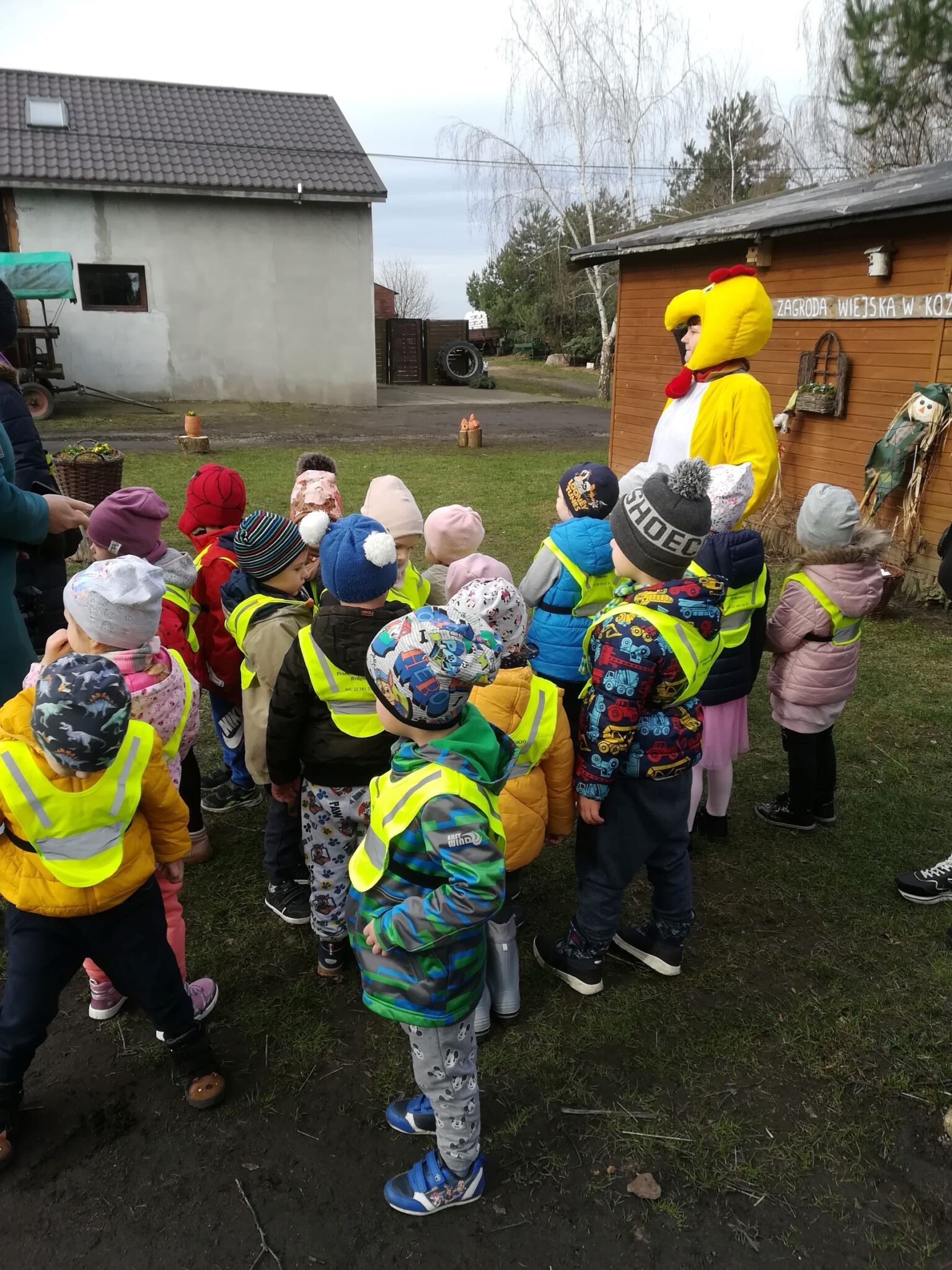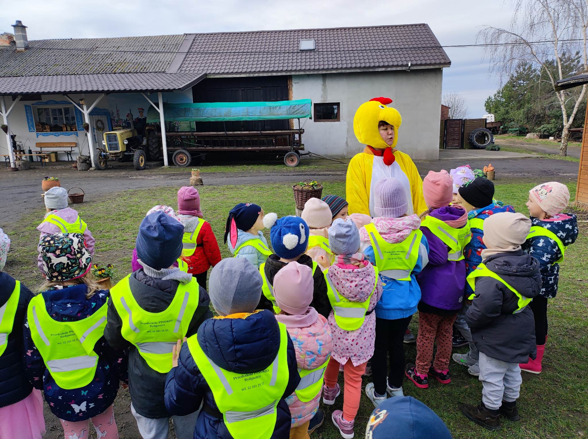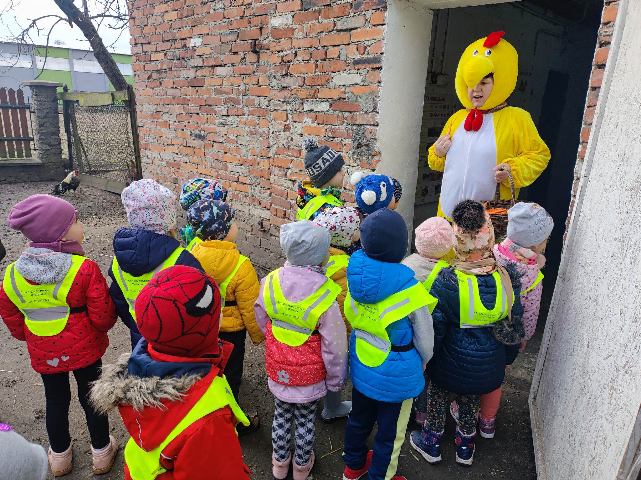 23 marca dzieci z grupy Misiów i Pszczółek wybrały się do Edukacyjnej Zagrody Wiejskiej w Kozielcu. Zostały przywitane przez Wesołego Kurczaka wspólnym tańcem. Na gości czekało zadanie – szukanie ukrytych w zagrodzie jajek, wszyscy świetnie sobie z tym poradzili. Dzieci miały okazję dotknąć i nakarmić wiejskie zwierzęta. Udały się również na strych, gdzie mogły zobaczyć stare przybory codziennego użytku. Pszczółki i Misie poznały cykl rozwojowy kurcząt, a także zaobserwowały różnicę jaj poszczególnych ptaków w zagrodzie. Na koniec dzieci wykonały wielkanocne palmy, co sprawiło im wiele radości.