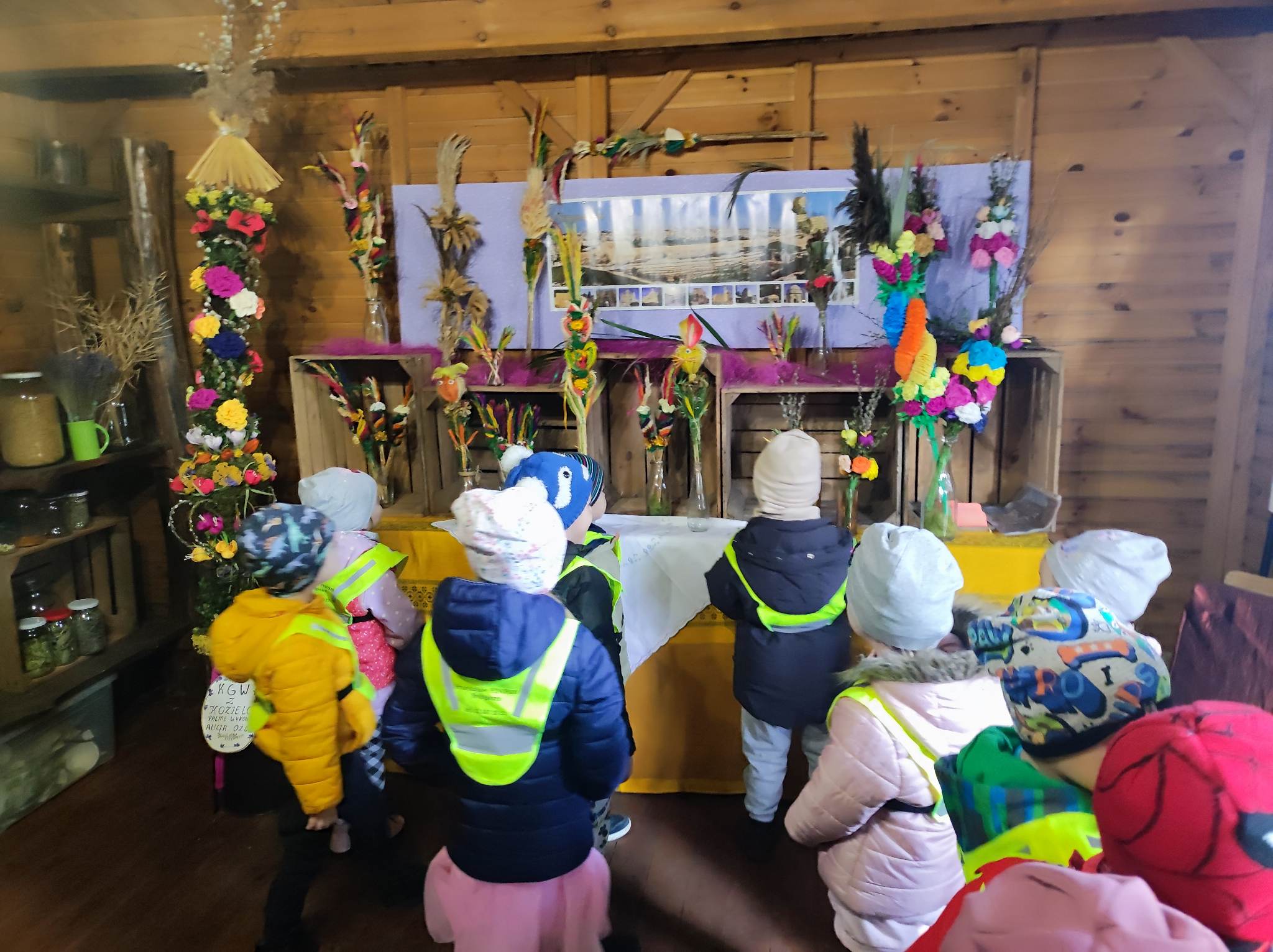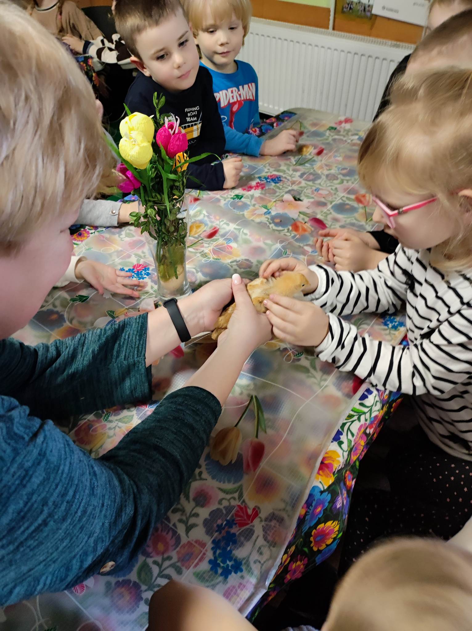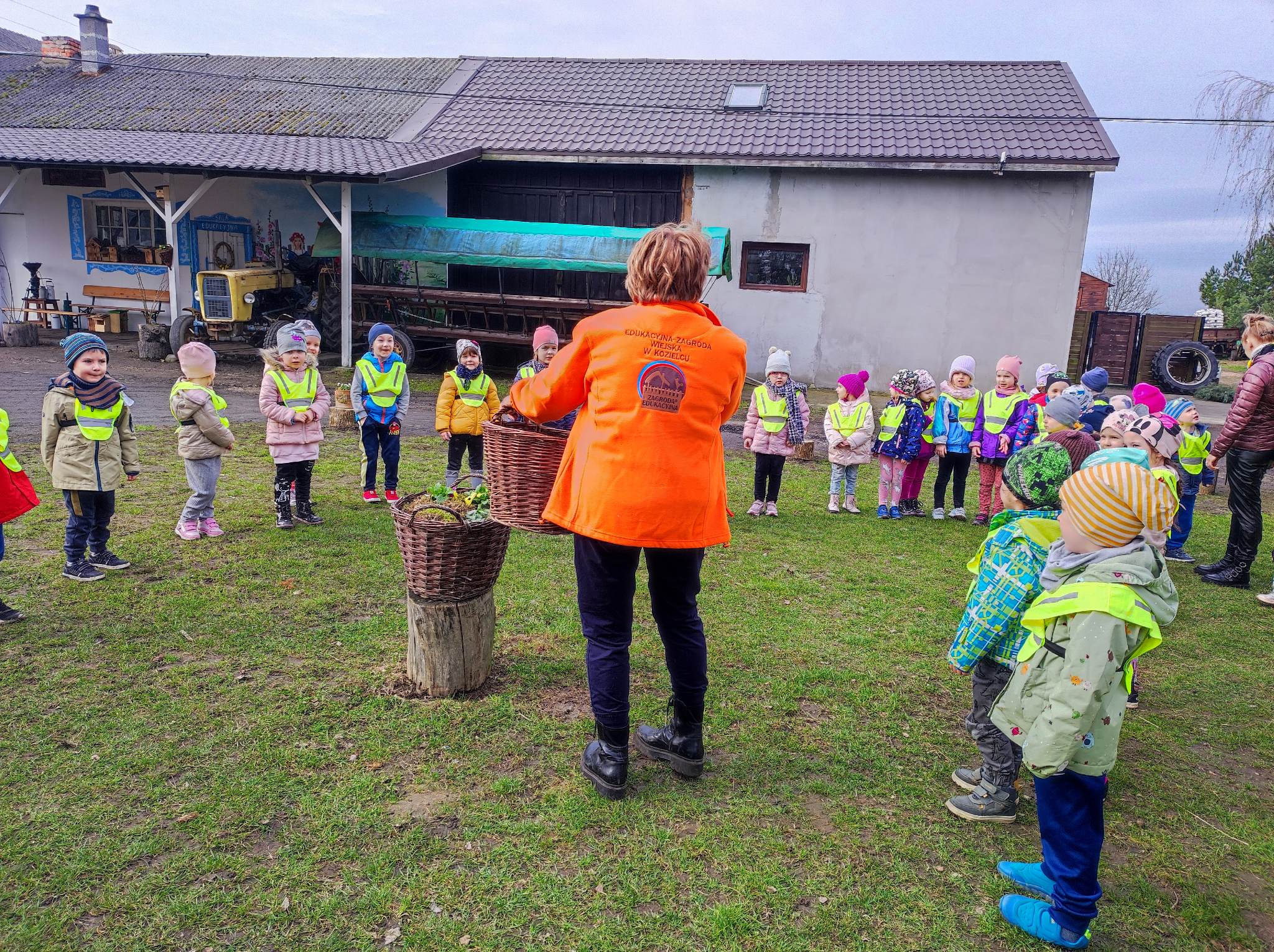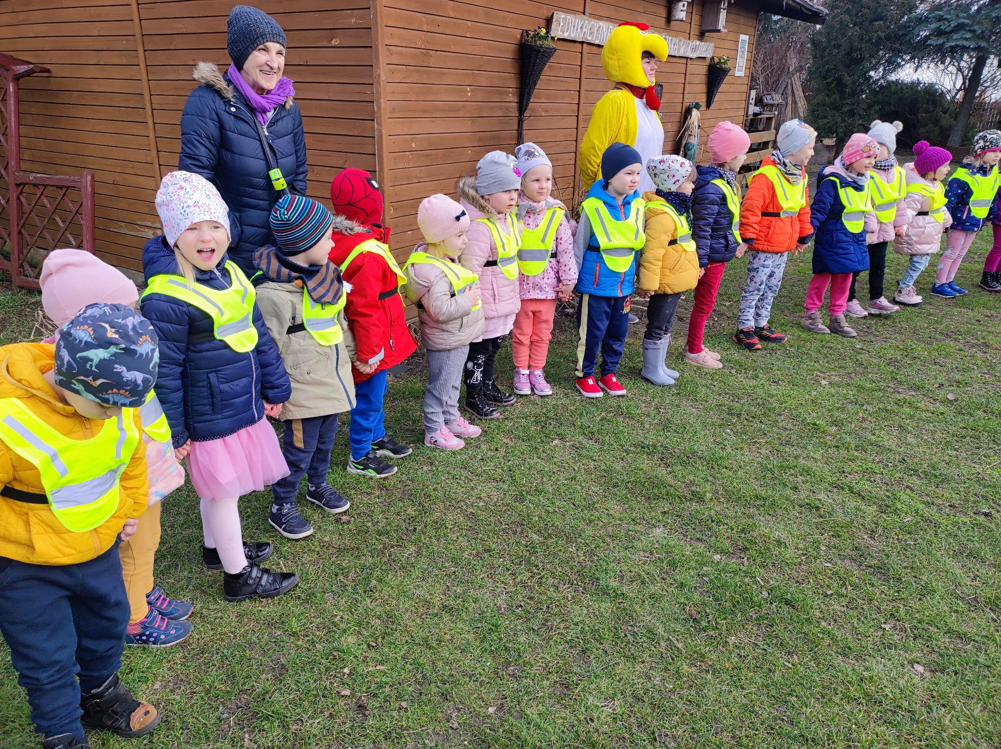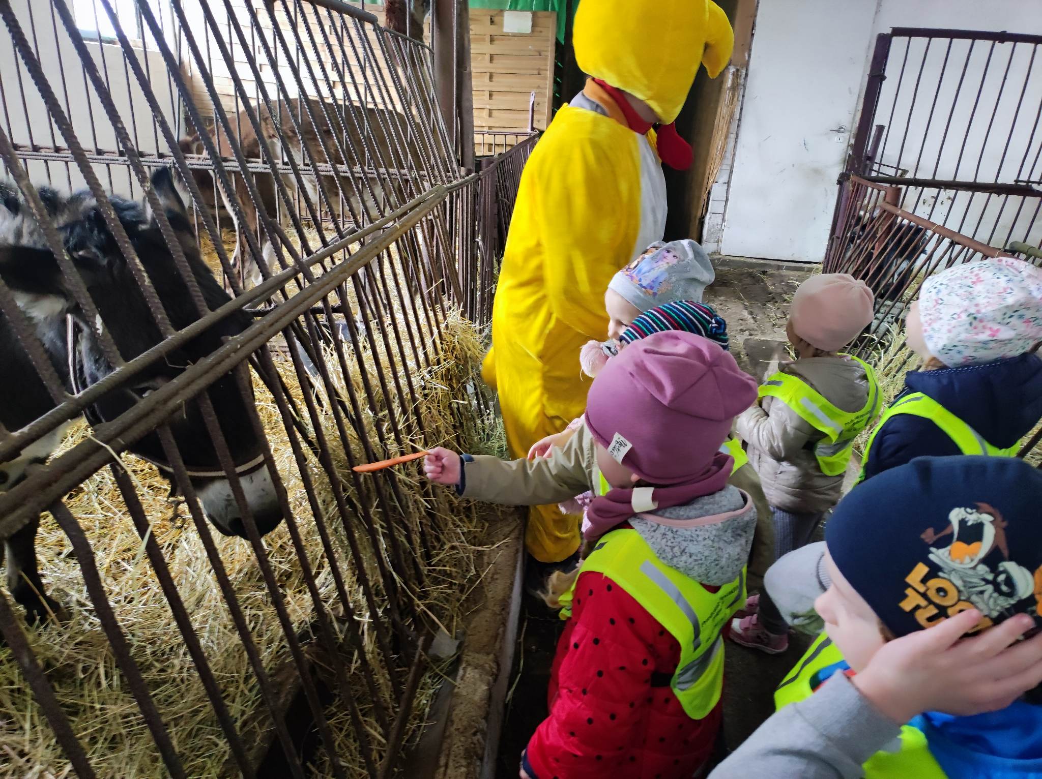 23 marca dzieci z grupy Misiów i Pszczółek wybrały się do Edukacyjnej Zagrody Wiejskiej w Kozielcu. Zostały przywitane przez Wesołego Kurczaka wspólnym tańcem. Na gości czekało zadanie – szukanie ukrytych w zagrodzie jajek, wszyscy świetnie sobie z tym poradzili. Dzieci miały okazję dotknąć i nakarmić wiejskie zwierzęta. Udały się również na strych, gdzie mogły zobaczyć stare przybory codziennego użytku. Pszczółki i Misie poznały cykl rozwojowy kurcząt, a także zaobserwowały różnicę jaj poszczególnych ptaków w zagrodzie. Na koniec dzieci wykonały wielkanocne palmy, co sprawiło im wiele radości.