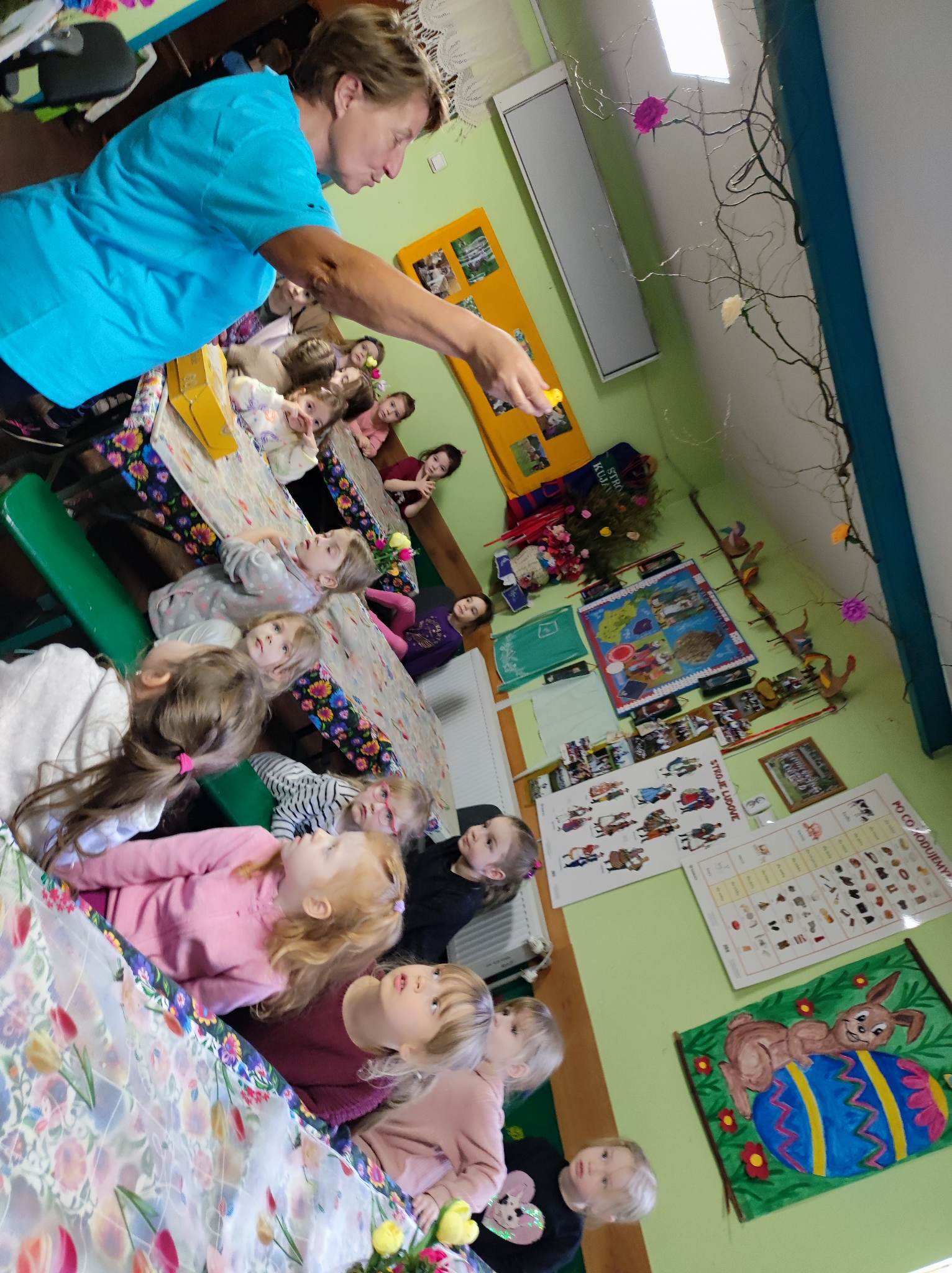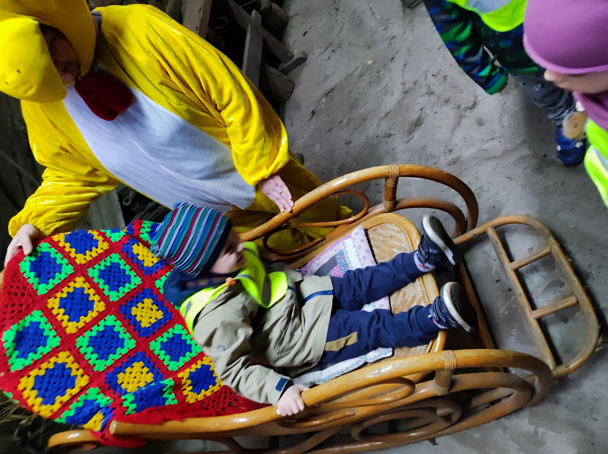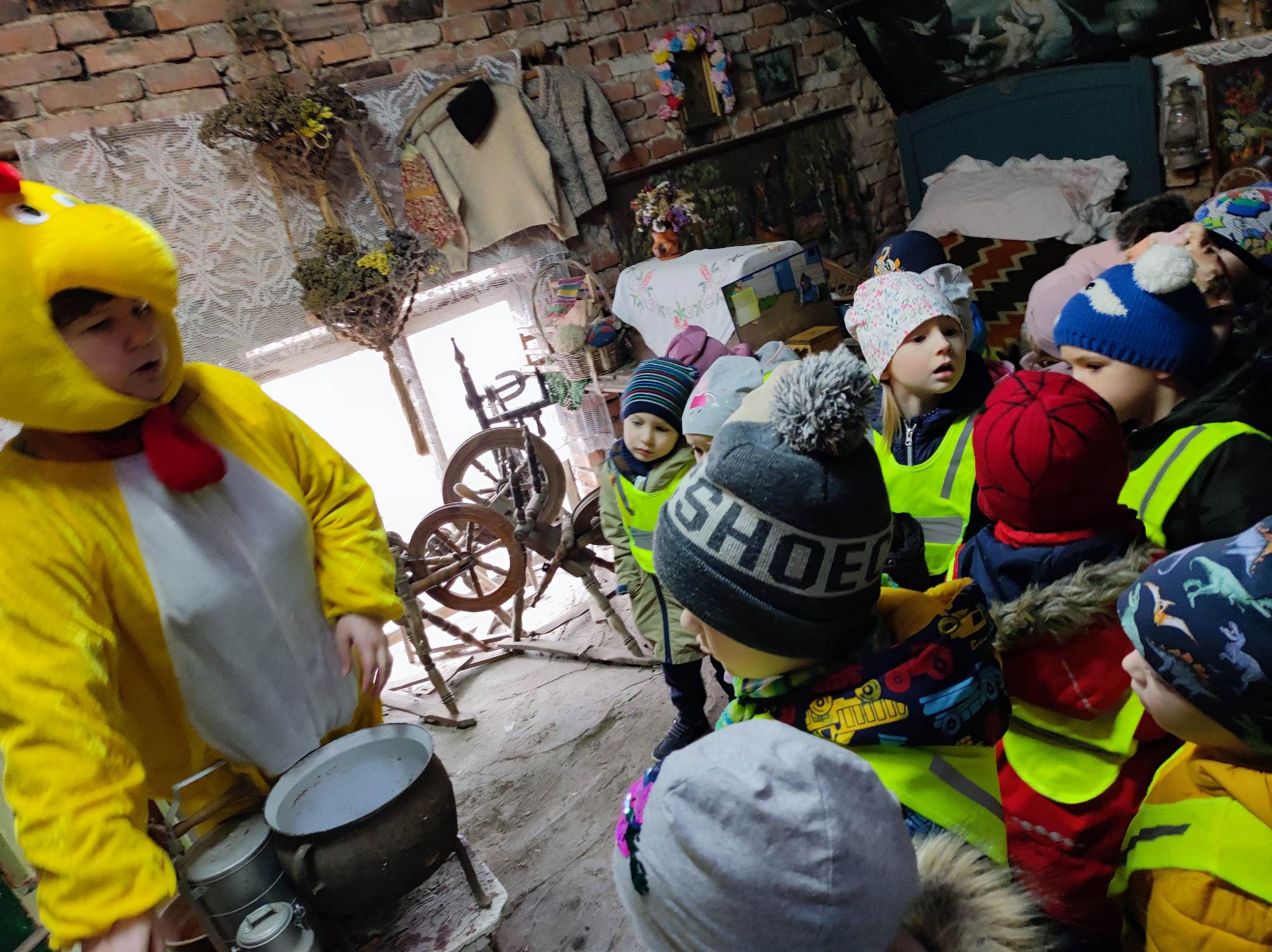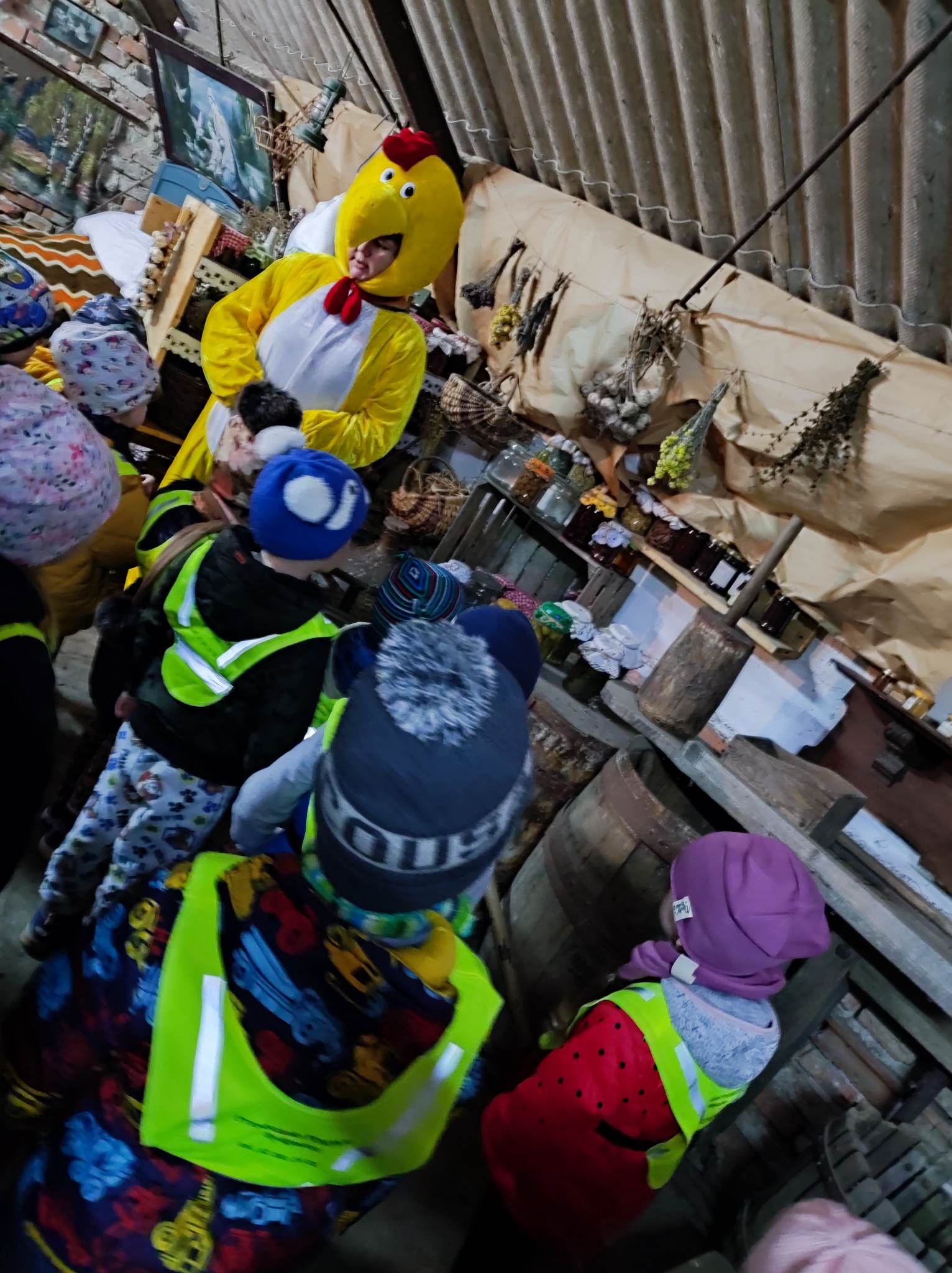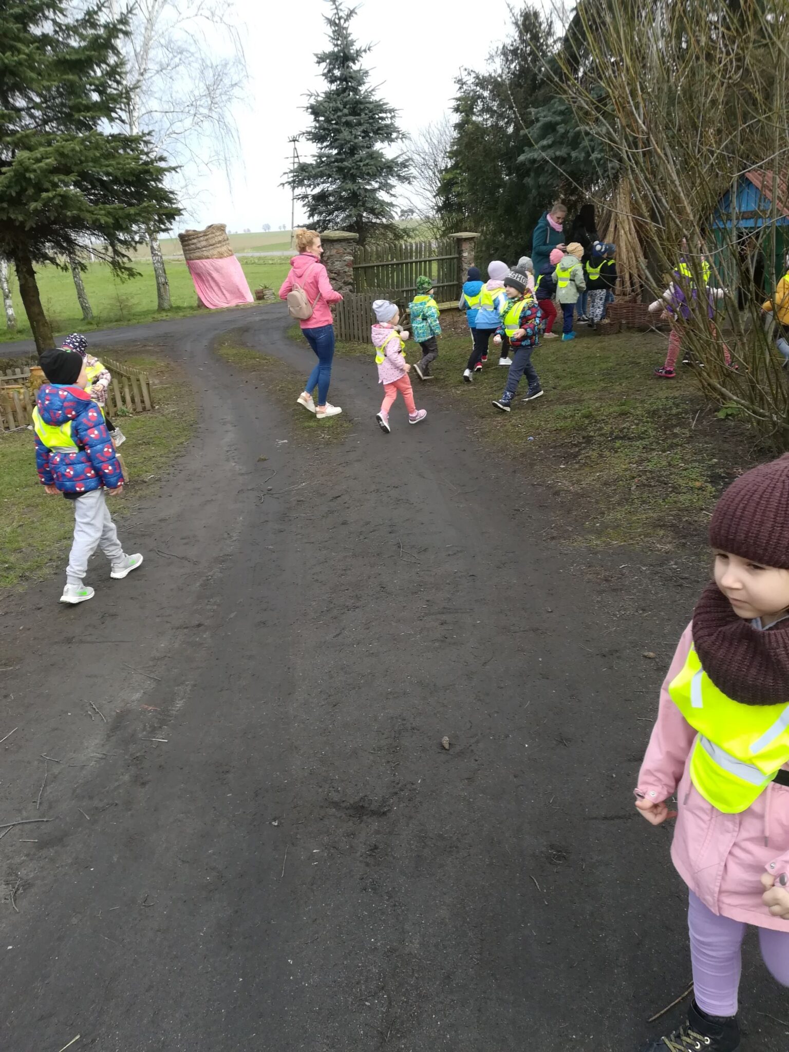 23 marca dzieci z grupy Misiów i Pszczółek wybrały się do Edukacyjnej Zagrody Wiejskiej w Kozielcu. Zostały przywitane przez Wesołego Kurczaka wspólnym tańcem. Na gości czekało zadanie – szukanie ukrytych w zagrodzie jajek, wszyscy świetnie sobie z tym poradzili. Dzieci miały okazję dotknąć i nakarmić wiejskie zwierzęta. Udały się również na strych, gdzie mogły zobaczyć stare przybory codziennego użytku. Pszczółki i Misie poznały cykl rozwojowy kurcząt, a także zaobserwowały różnicę jaj poszczególnych ptaków w zagrodzie. Na koniec dzieci wykonały wielkanocne palmy, co sprawiło im wiele radości.