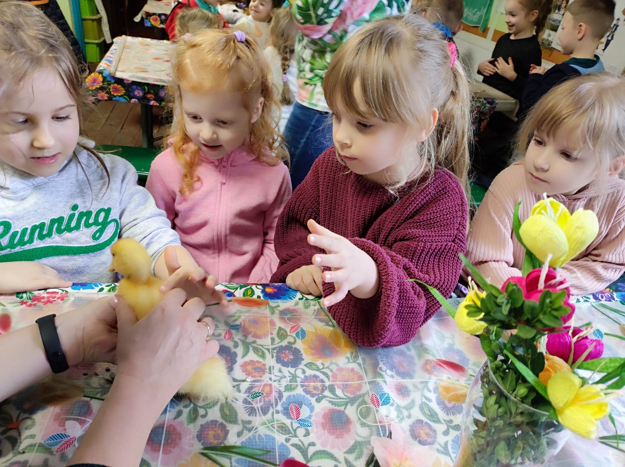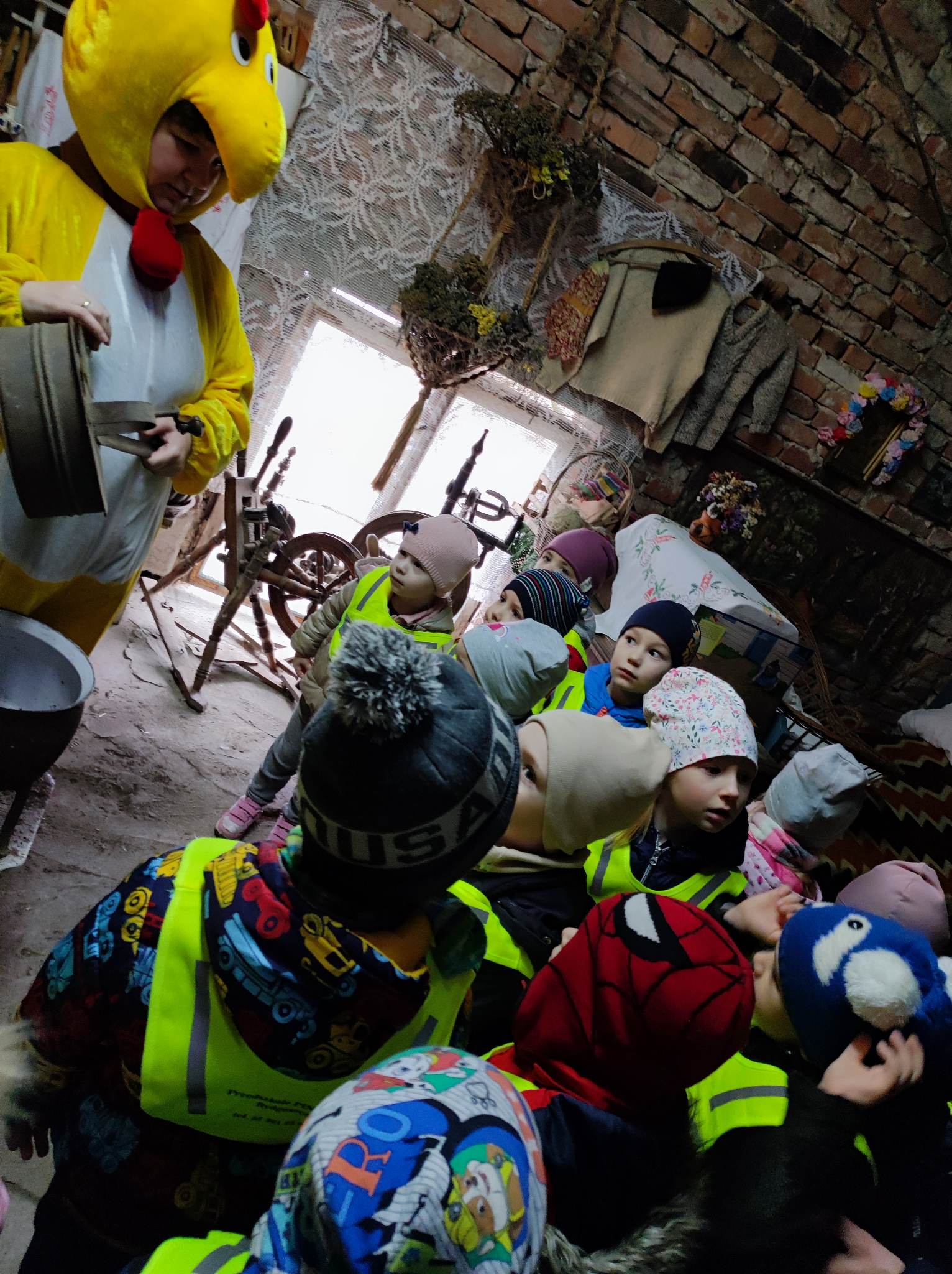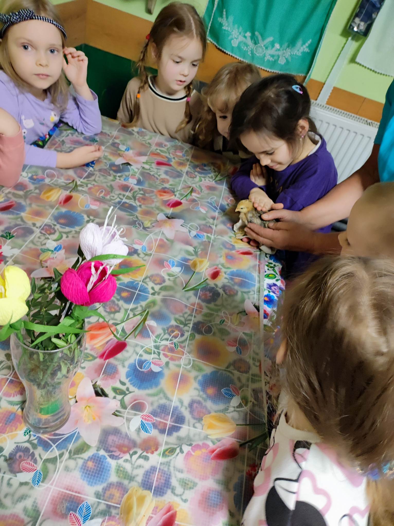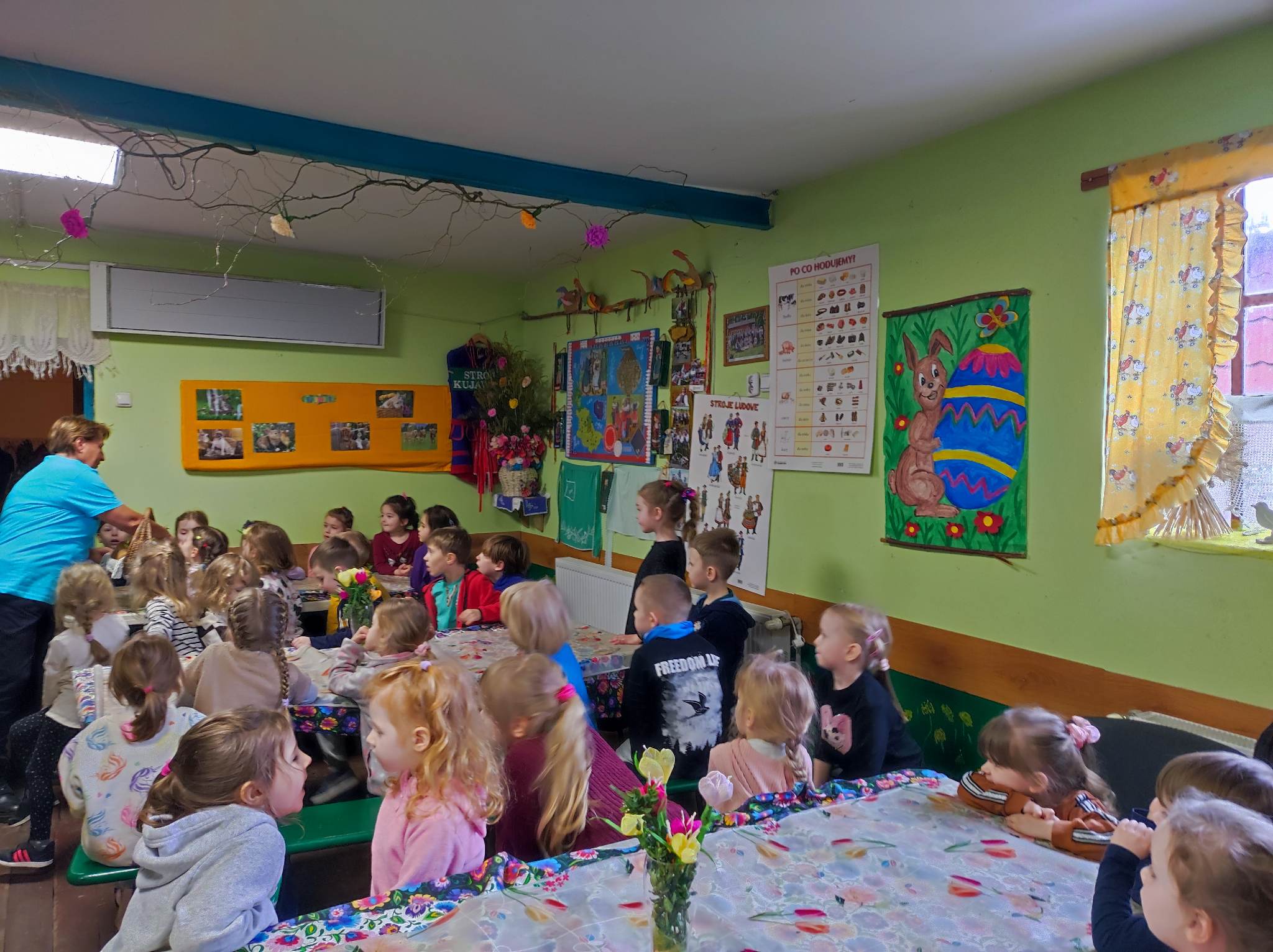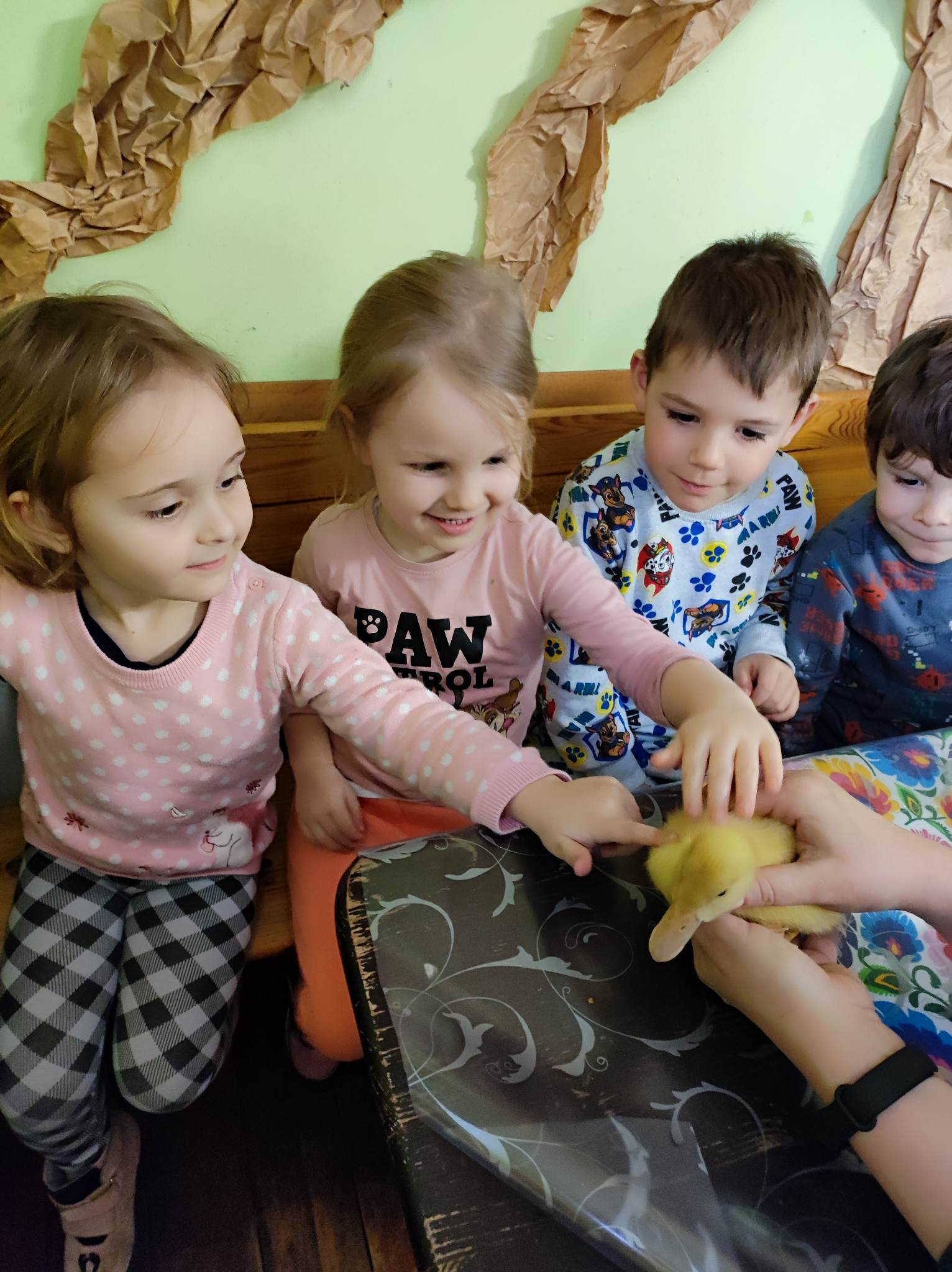 23 marca dzieci z grupy Misiów i Pszczółek wybrały się do Edukacyjnej Zagrody Wiejskiej w Kozielcu. Zostały przywitane przez Wesołego Kurczaka wspólnym tańcem. Na gości czekało zadanie – szukanie ukrytych w zagrodzie jajek, wszyscy świetnie sobie z tym poradzili. Dzieci miały okazję dotknąć i nakarmić wiejskie zwierzęta. Udały się również na strych, gdzie mogły zobaczyć stare przybory codziennego użytku. Pszczółki i Misie poznały cykl rozwojowy kurcząt, a także zaobserwowały różnicę jaj poszczególnych ptaków w zagrodzie. Na koniec dzieci wykonały wielkanocne palmy, co sprawiło im wiele radości.