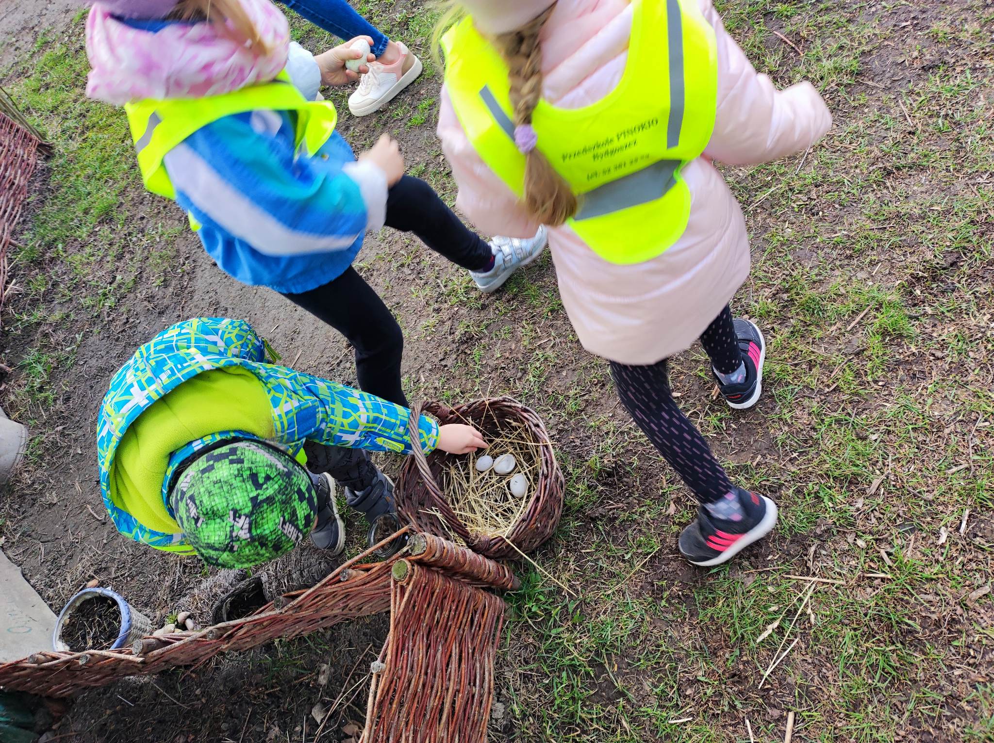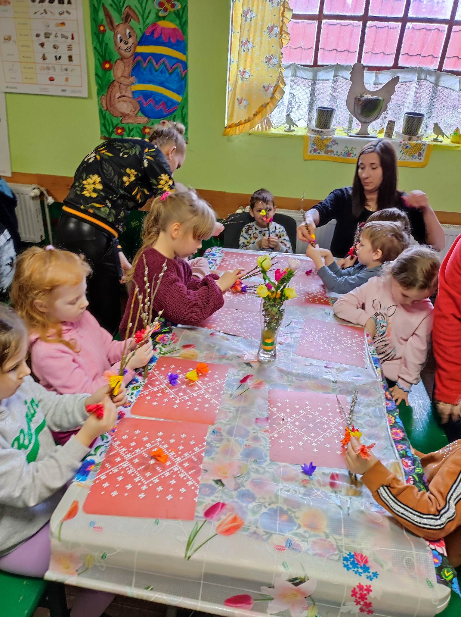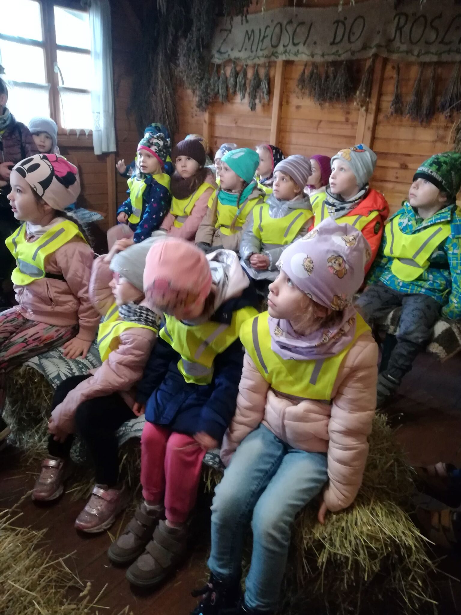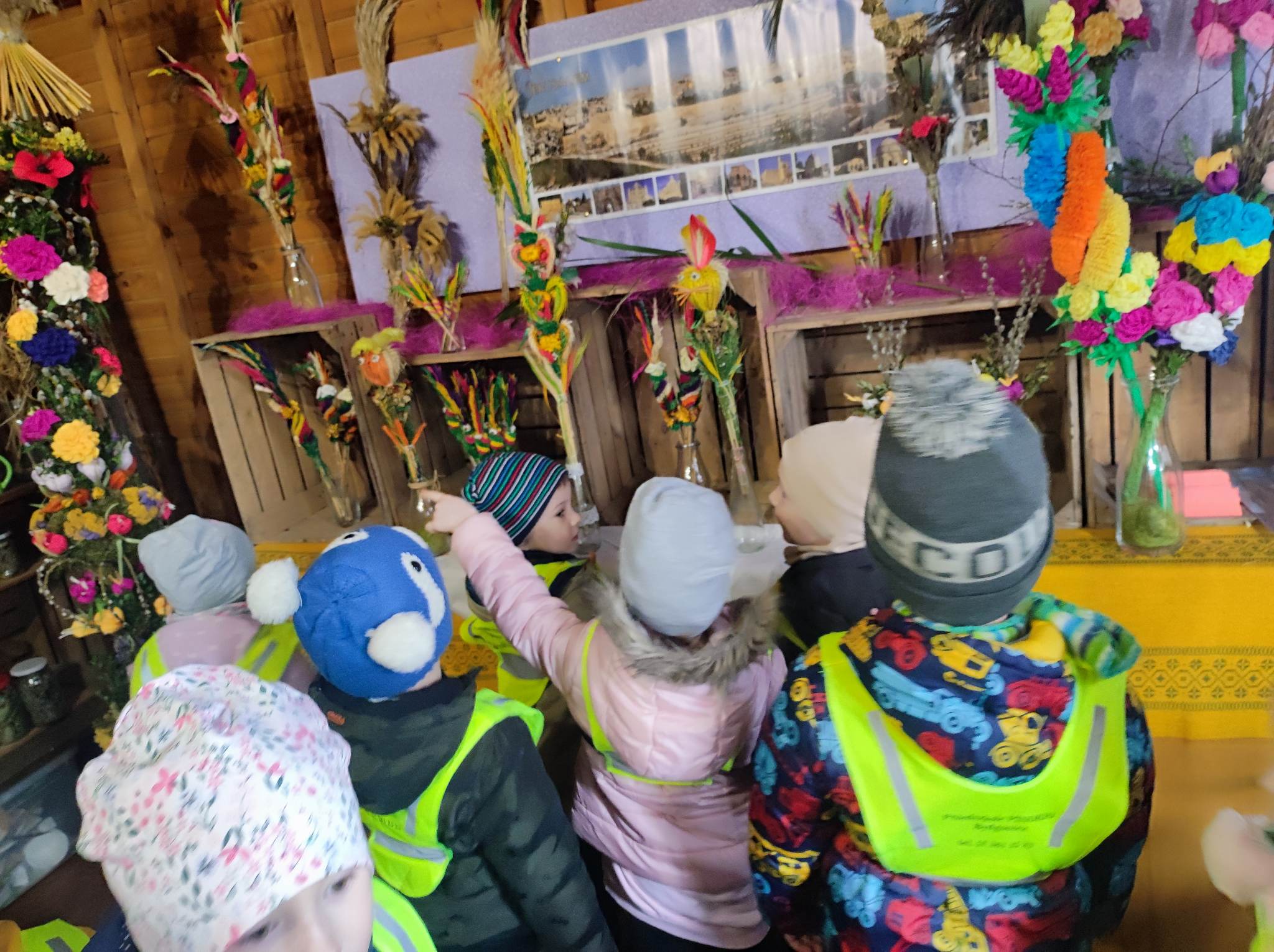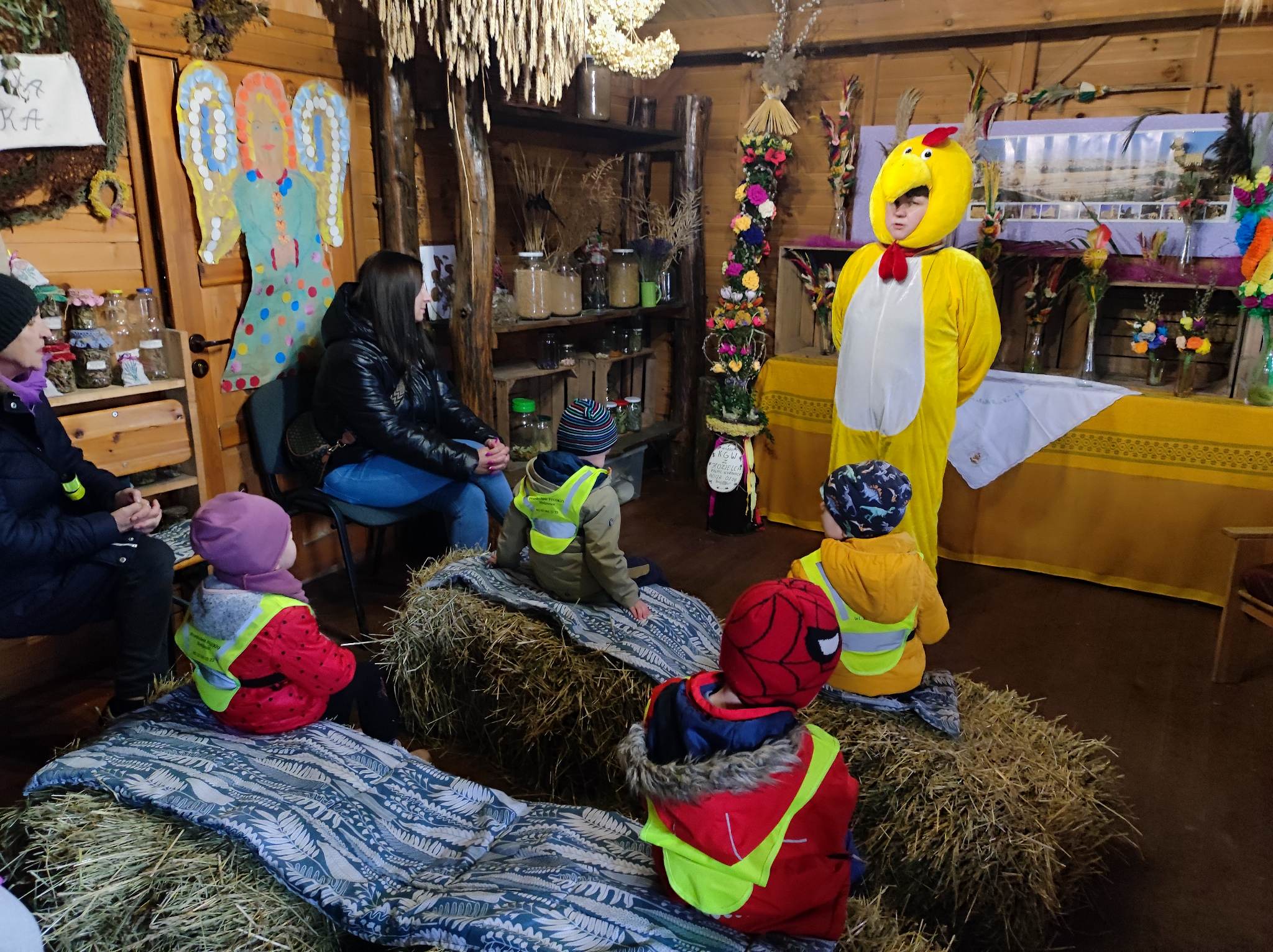 23 marca dzieci z grupy Misiów i Pszczółek wybrały się do Edukacyjnej Zagrody Wiejskiej w Kozielcu. Zostały przywitane przez Wesołego Kurczaka wspólnym tańcem. Na gości czekało zadanie – szukanie ukrytych w zagrodzie jajek, wszyscy świetnie sobie z tym poradzili. Dzieci miały okazję dotknąć i nakarmić wiejskie zwierzęta. Udały się również na strych, gdzie mogły zobaczyć stare przybory codziennego użytku. Pszczółki i Misie poznały cykl rozwojowy kurcząt, a także zaobserwowały różnicę jaj poszczególnych ptaków w zagrodzie. Na koniec dzieci wykonały wielkanocne palmy, co sprawiło im wiele radości.