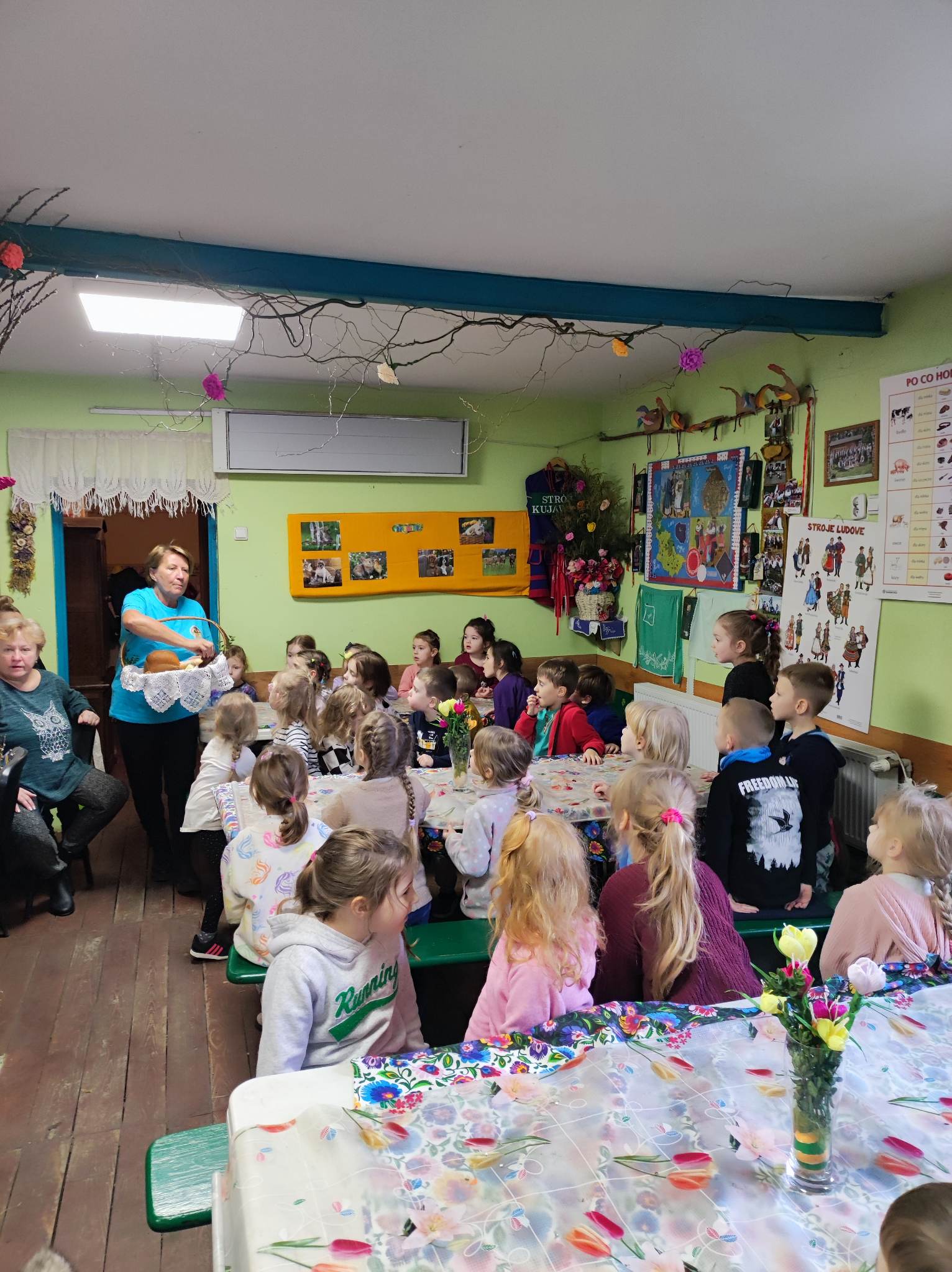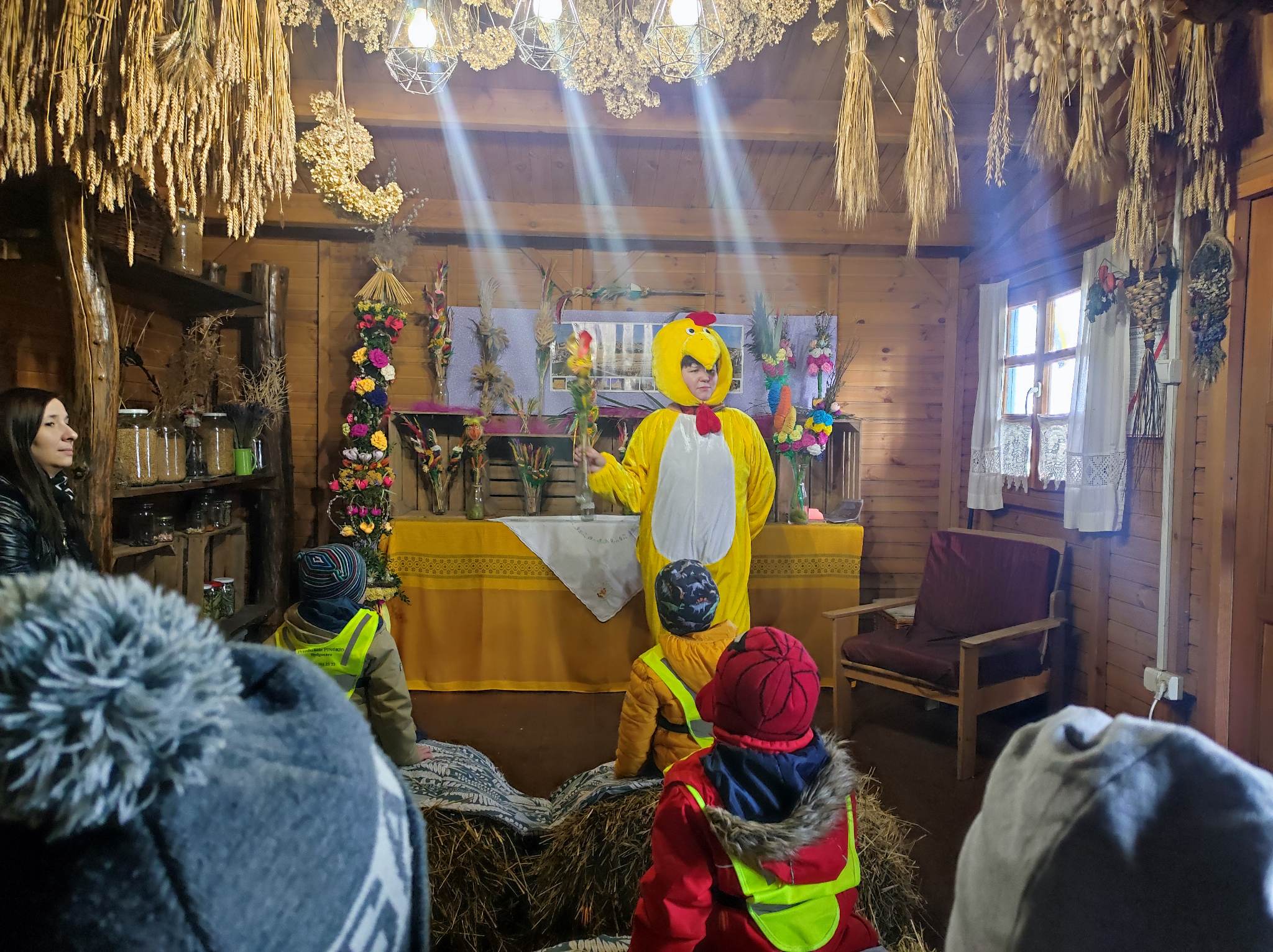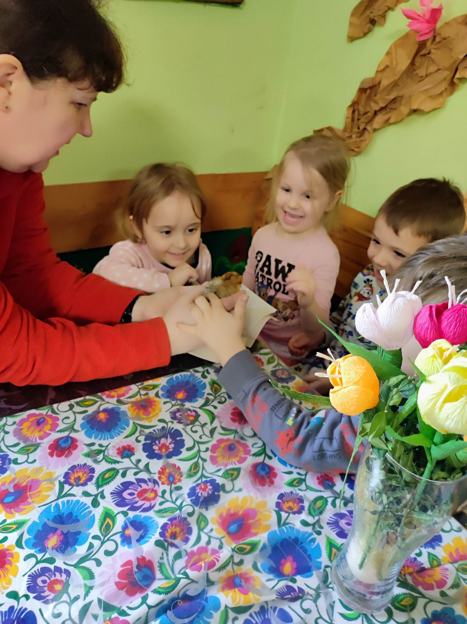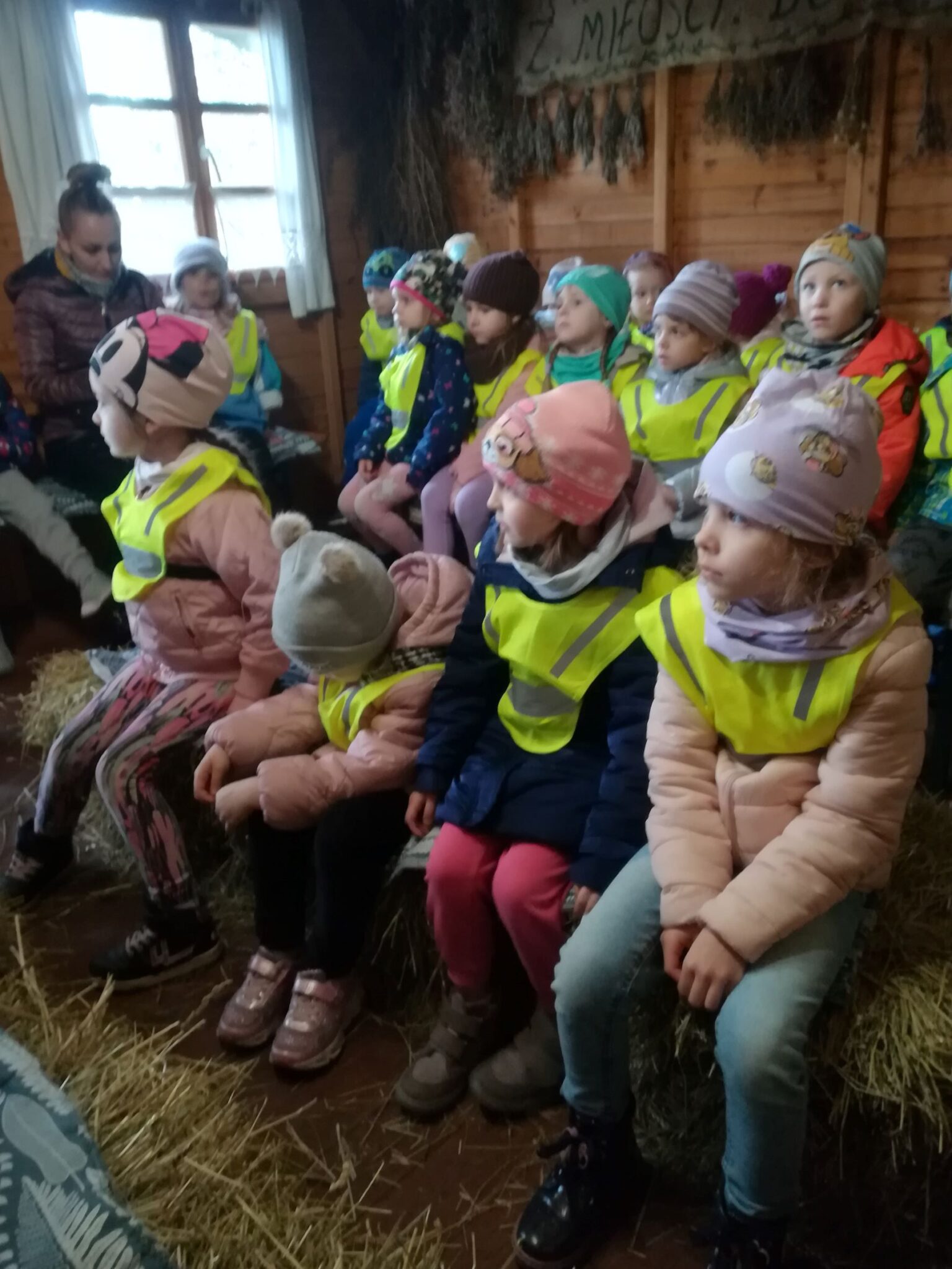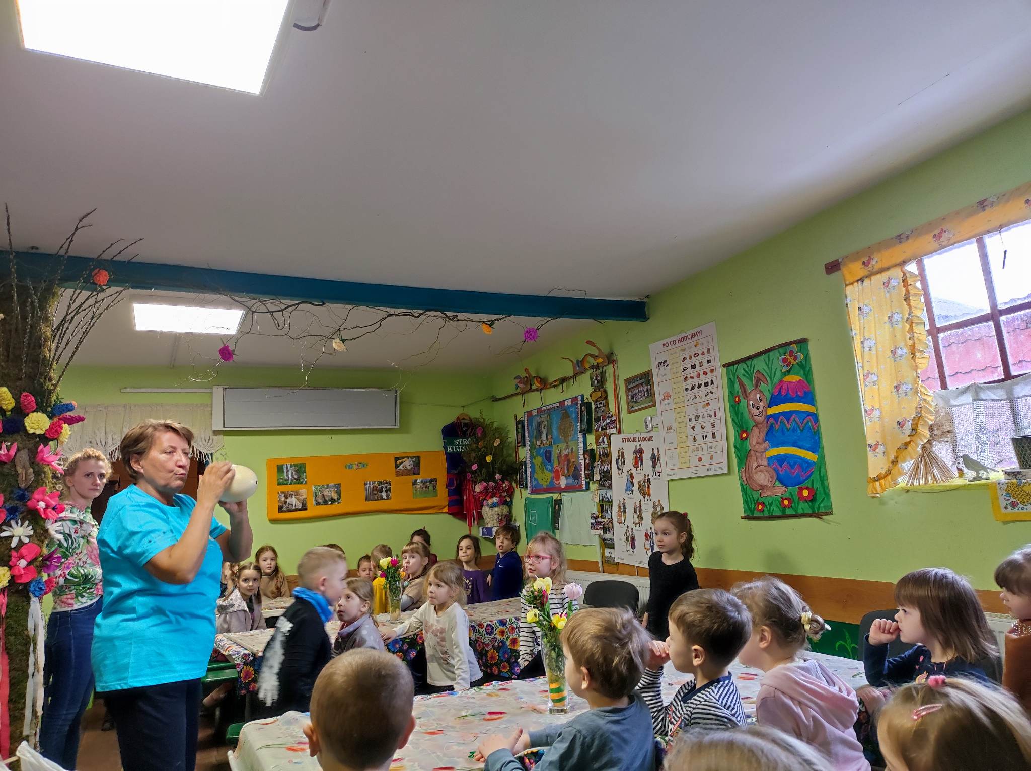 23 marca dzieci z grupy Misiów i Pszczółek wybrały się do Edukacyjnej Zagrody Wiejskiej w Kozielcu. Zostały przywitane przez Wesołego Kurczaka wspólnym tańcem. Na gości czekało zadanie – szukanie ukrytych w zagrodzie jajek, wszyscy świetnie sobie z tym poradzili. Dzieci miały okazję dotknąć i nakarmić wiejskie zwierzęta. Udały się również na strych, gdzie mogły zobaczyć stare przybory codziennego użytku. Pszczółki i Misie poznały cykl rozwojowy kurcząt, a także zaobserwowały różnicę jaj poszczególnych ptaków w zagrodzie. Na koniec dzieci wykonały wielkanocne palmy, co sprawiło im wiele radości.