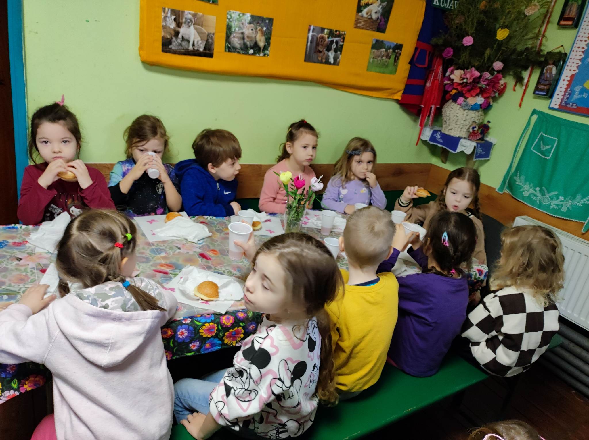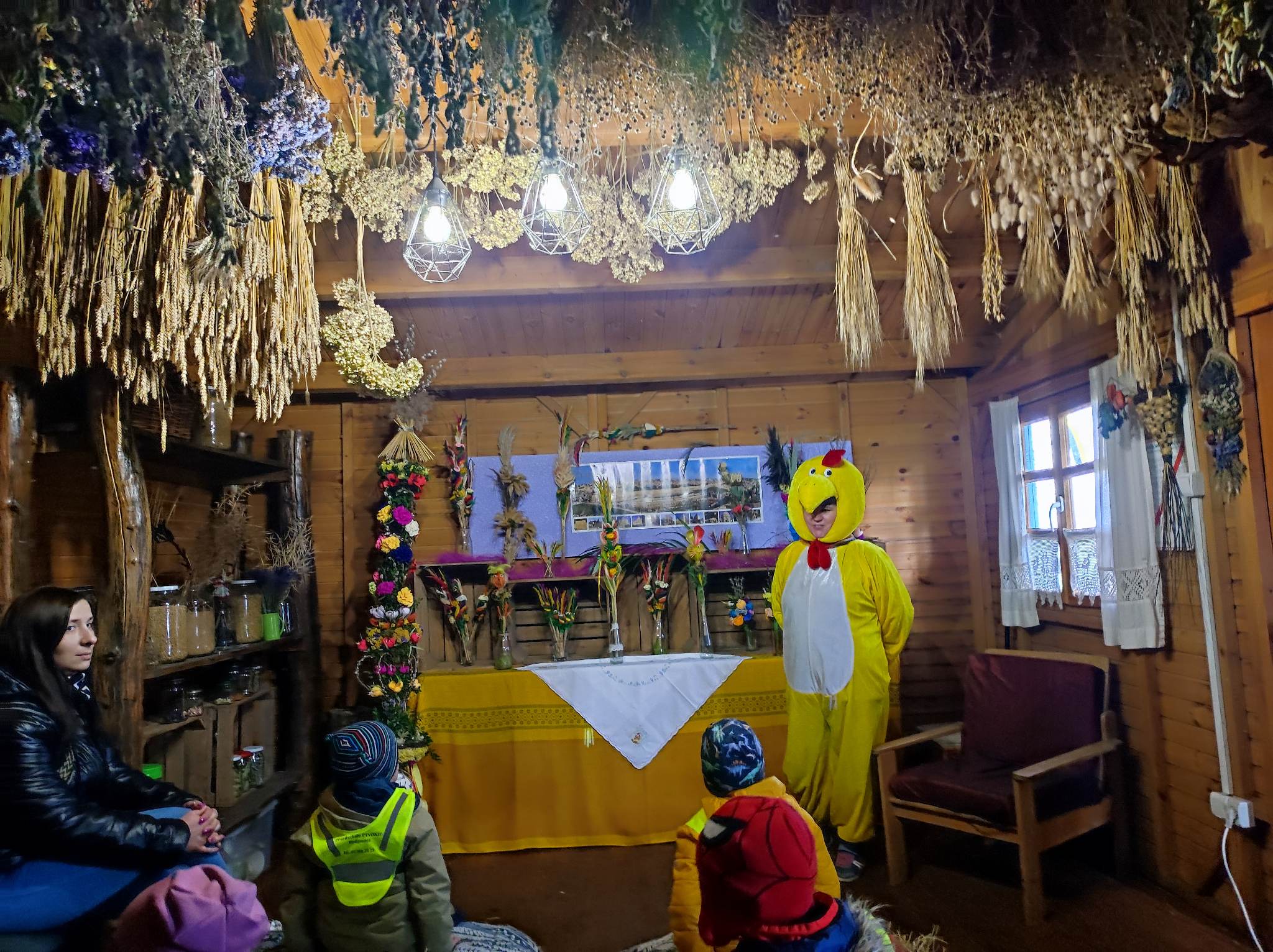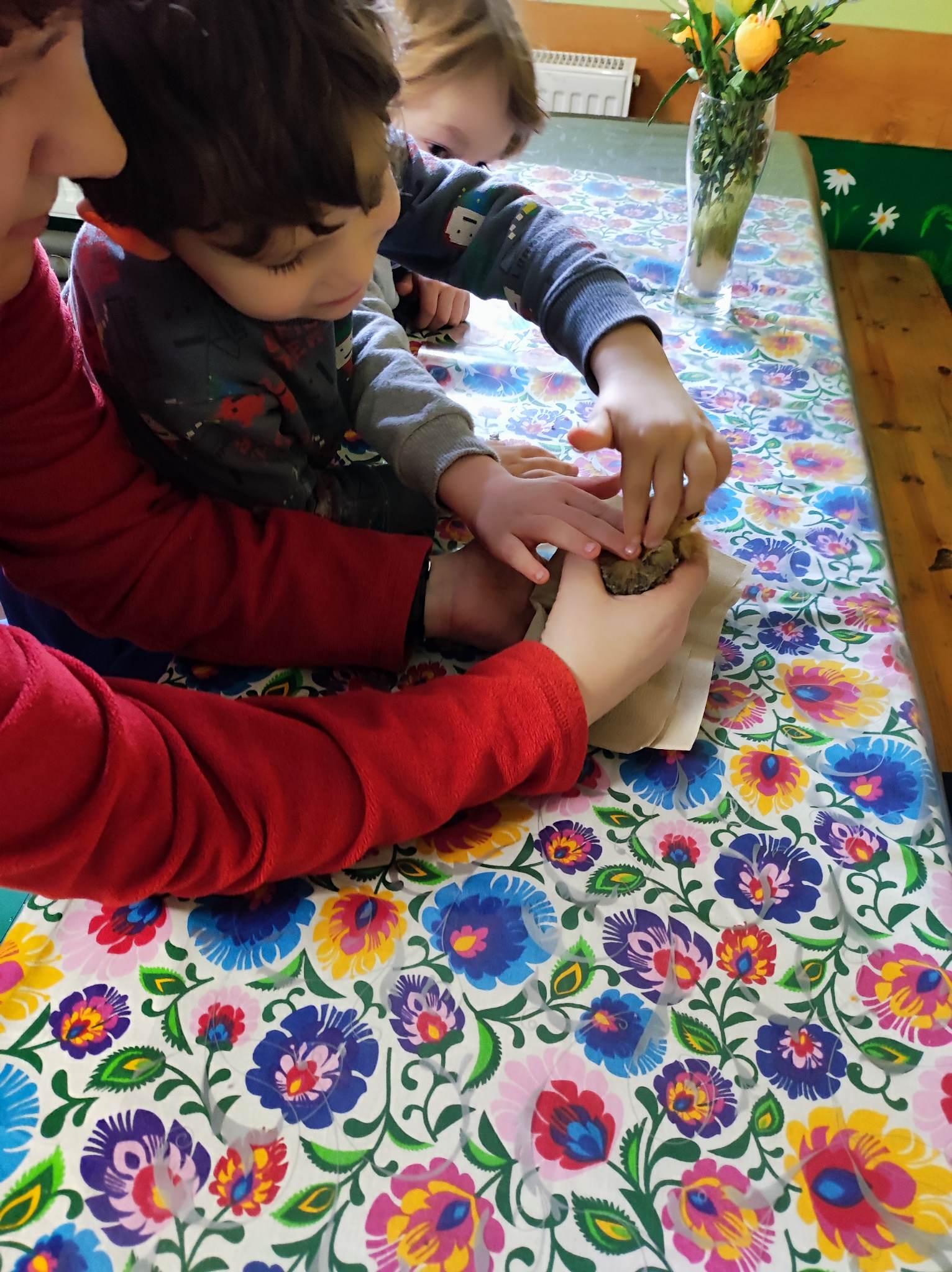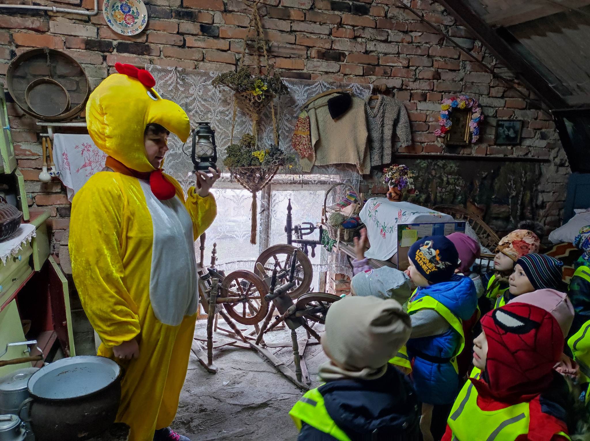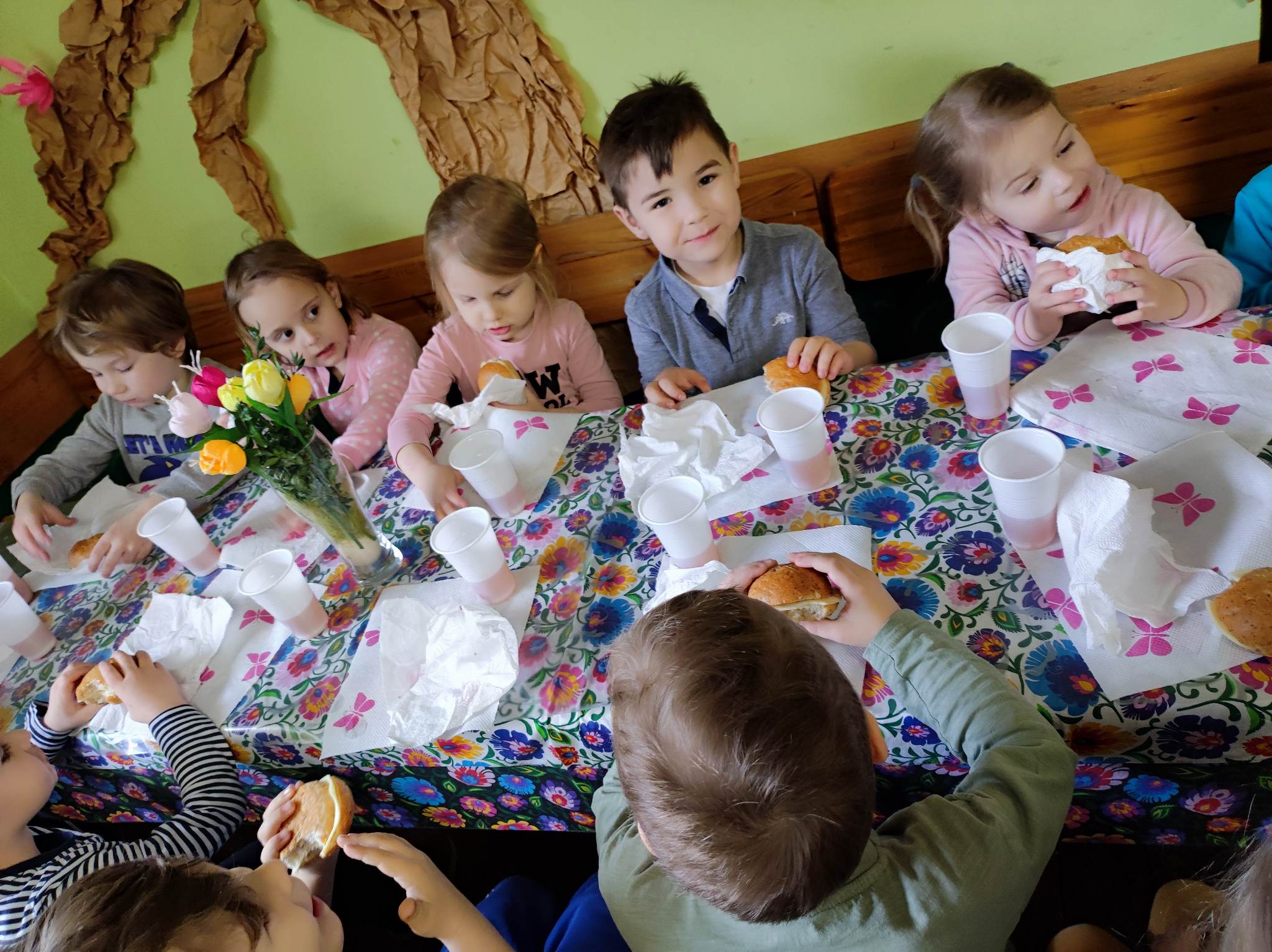 23 marca dzieci z grupy Misiów i Pszczółek wybrały się do Edukacyjnej Zagrody Wiejskiej w Kozielcu. Zostały przywitane przez Wesołego Kurczaka wspólnym tańcem. Na gości czekało zadanie – szukanie ukrytych w zagrodzie jajek, wszyscy świetnie sobie z tym poradzili. Dzieci miały okazję dotknąć i nakarmić wiejskie zwierzęta. Udały się również na strych, gdzie mogły zobaczyć stare przybory codziennego użytku. Pszczółki i Misie poznały cykl rozwojowy kurcząt, a także zaobserwowały różnicę jaj poszczególnych ptaków w zagrodzie. Na koniec dzieci wykonały wielkanocne palmy, co sprawiło im wiele radości.