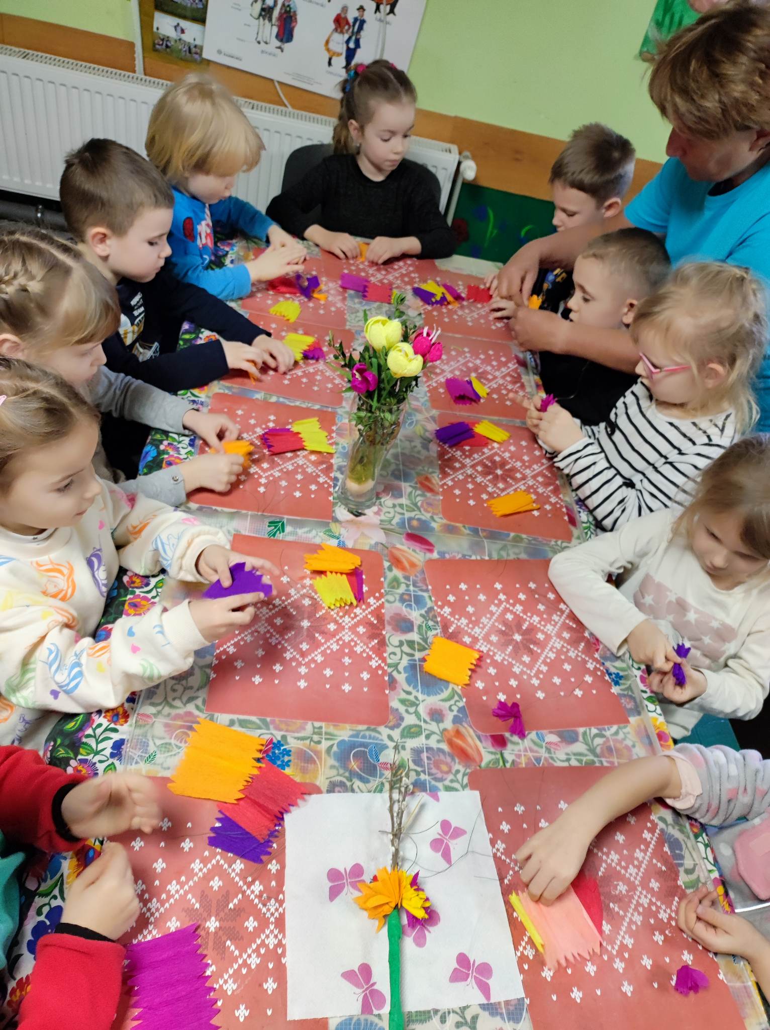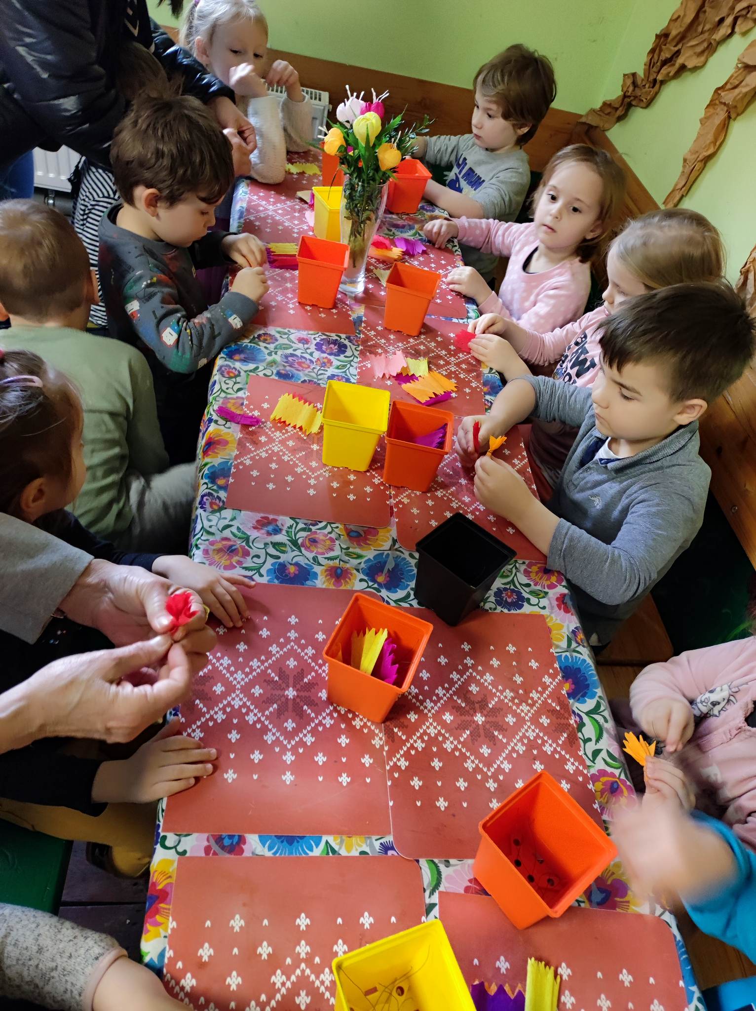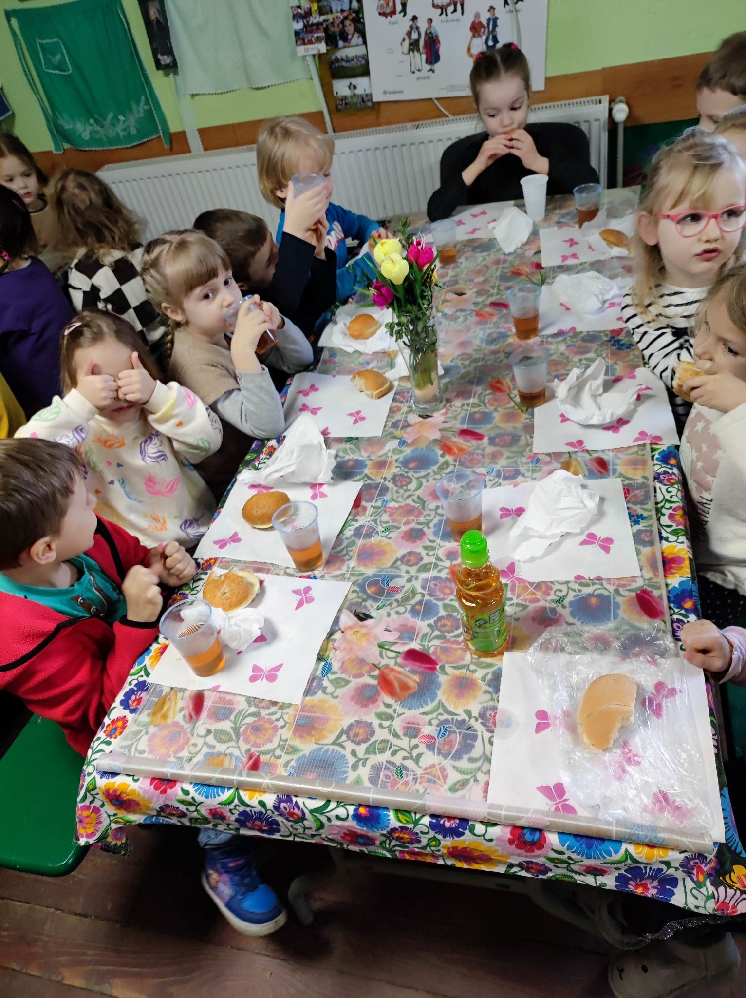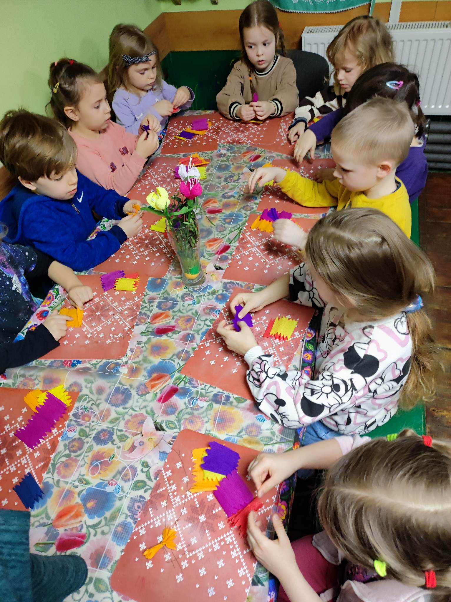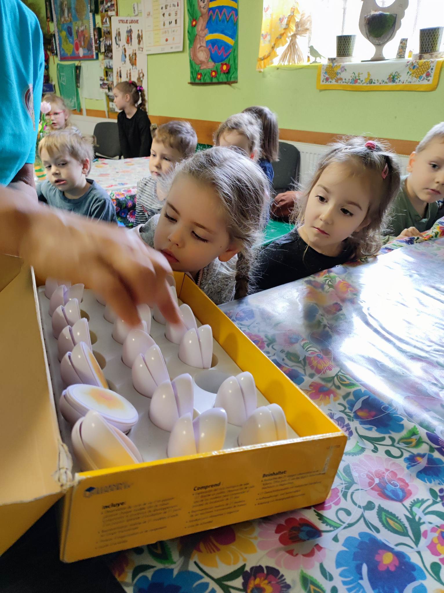 23 marca dzieci z grupy Misiów i Pszczółek wybrały się do Edukacyjnej Zagrody Wiejskiej w Kozielcu. Zostały przywitane przez Wesołego Kurczaka wspólnym tańcem. Na gości czekało zadanie – szukanie ukrytych w zagrodzie jajek, wszyscy świetnie sobie z tym poradzili. Dzieci miały okazję dotknąć i nakarmić wiejskie zwierzęta. Udały się również na strych, gdzie mogły zobaczyć stare przybory codziennego użytku. Pszczółki i Misie poznały cykl rozwojowy kurcząt, a także zaobserwowały różnicę jaj poszczególnych ptaków w zagrodzie. Na koniec dzieci wykonały wielkanocne palmy, co sprawiło im wiele radości.