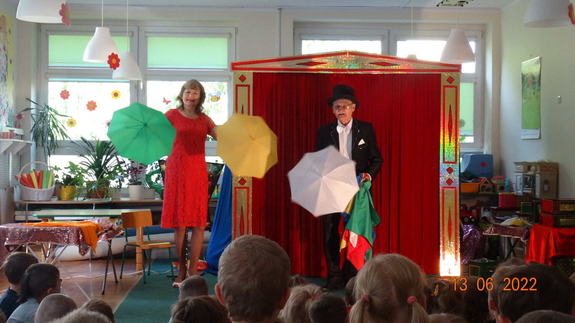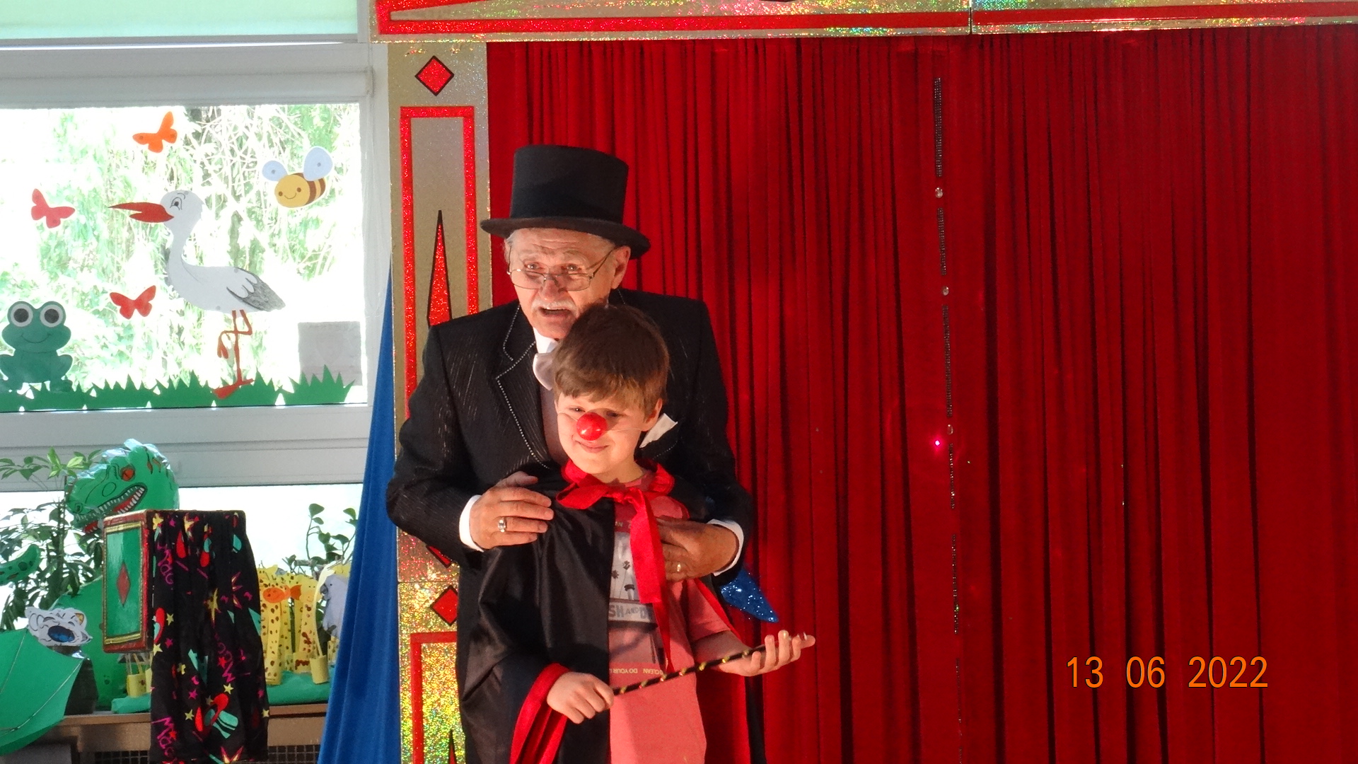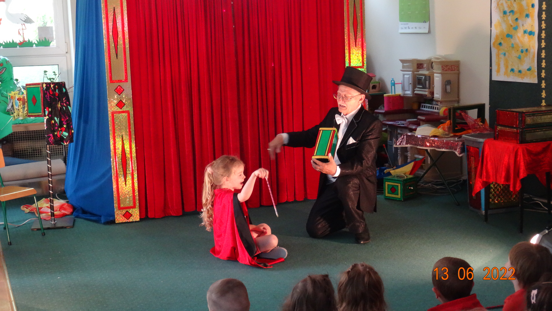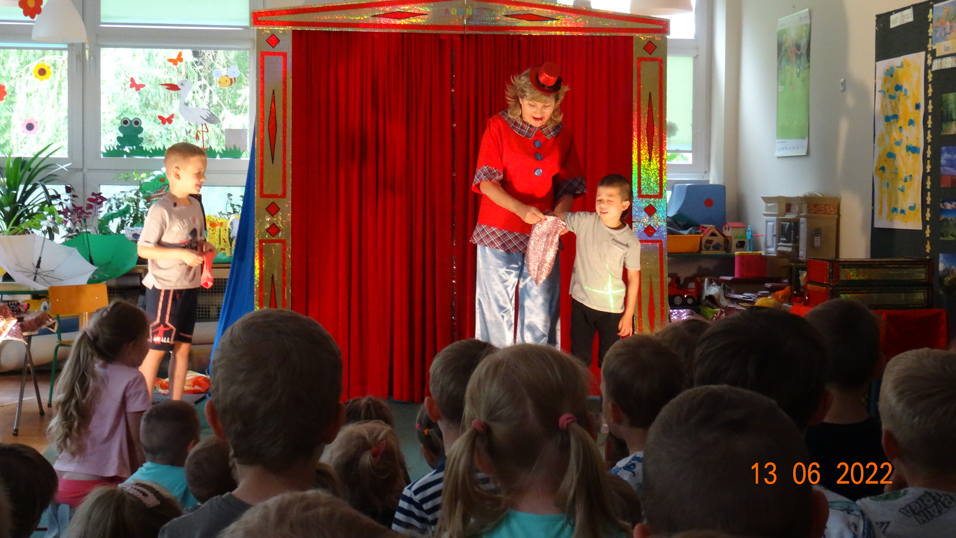 6 czerwca, jak co roku o tej porze, gościliśmy w naszym przedszkolu polsko-czeski duet artystów cyrkowych grupy Adonis. Po raz kolejny swymi występami wywołali uśmiechy na twarzach przedszkolaków, a magicznym sztuczkom towarzyszyły zadziwione buziaki maluchów. Na scenie nie zabrakło pomocników, w których to mieliśmy okazję się zamienić.