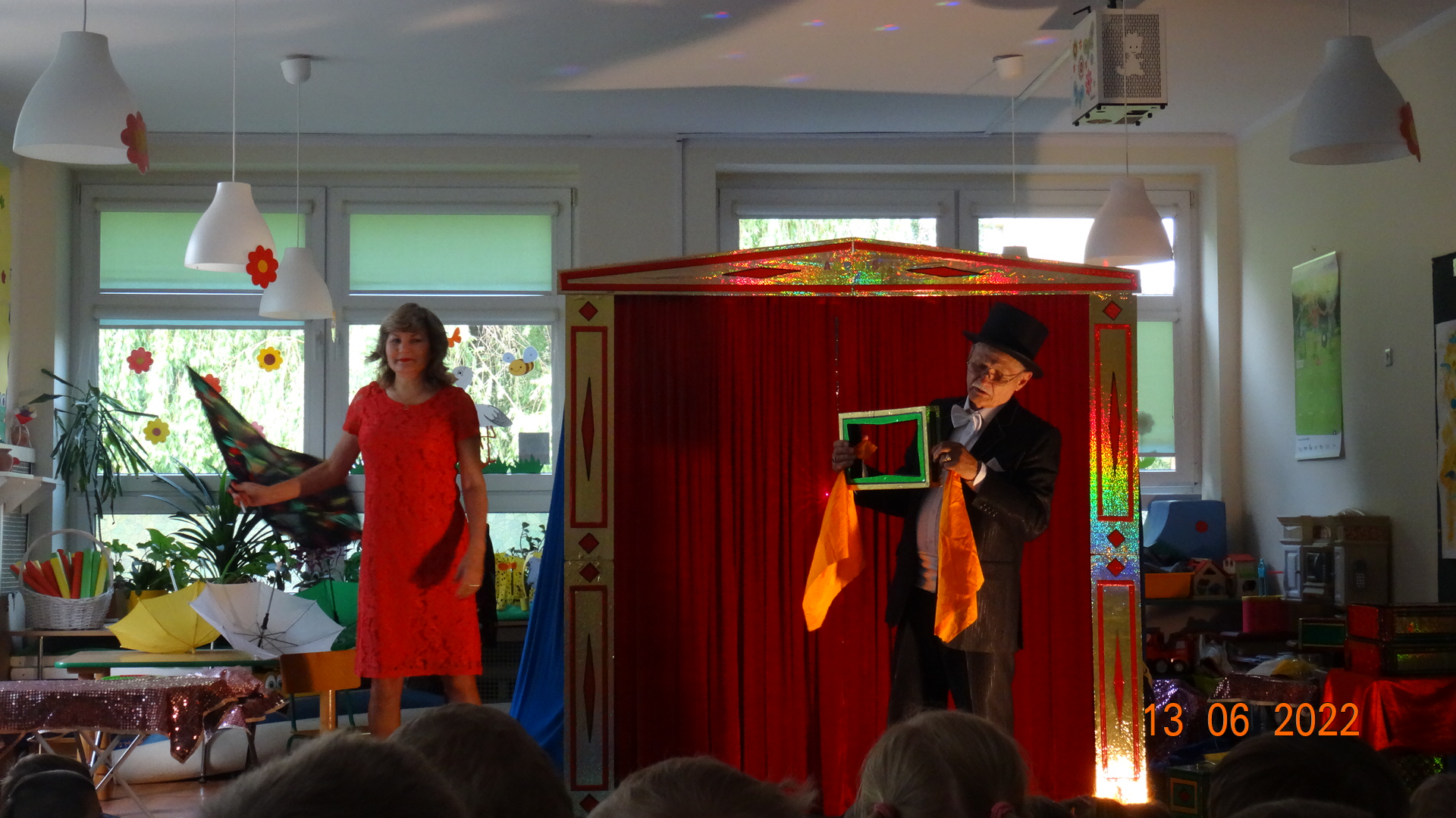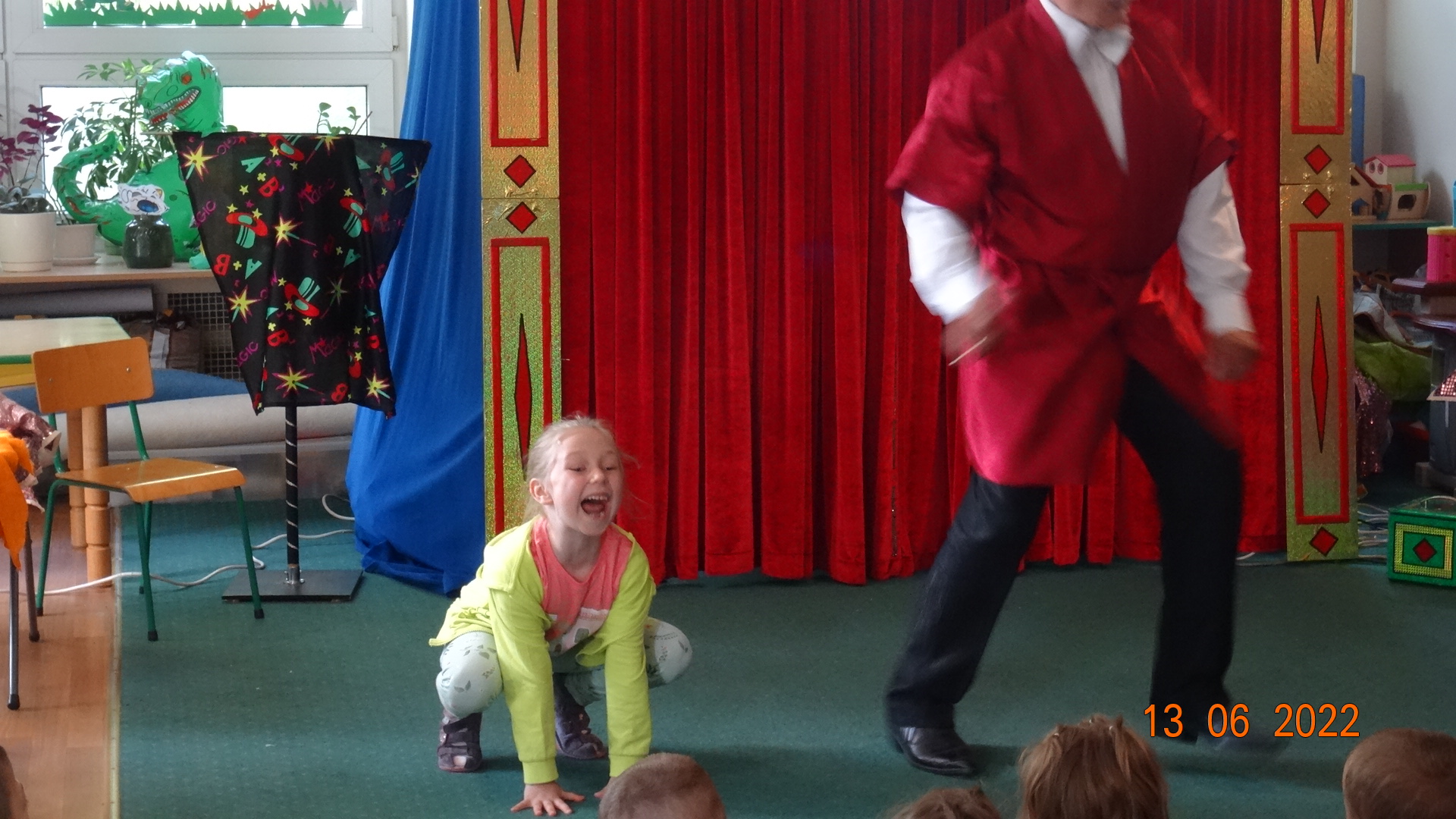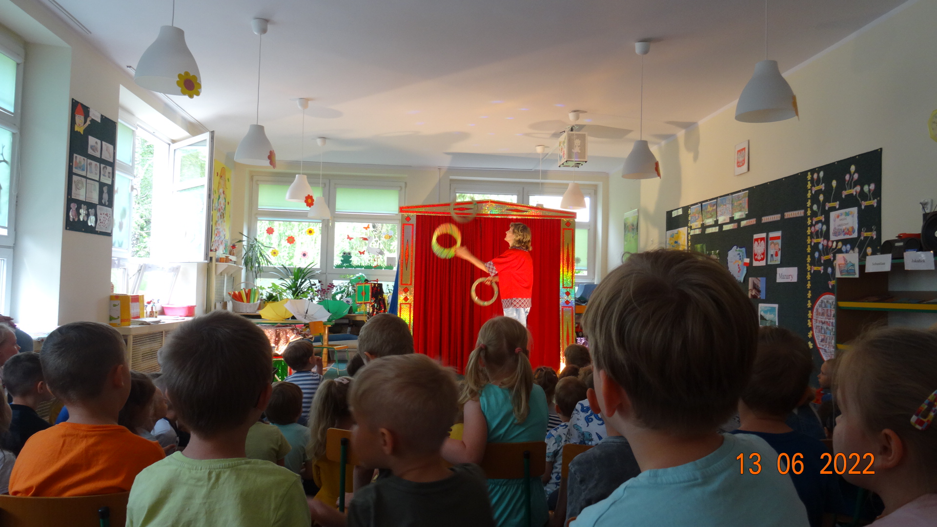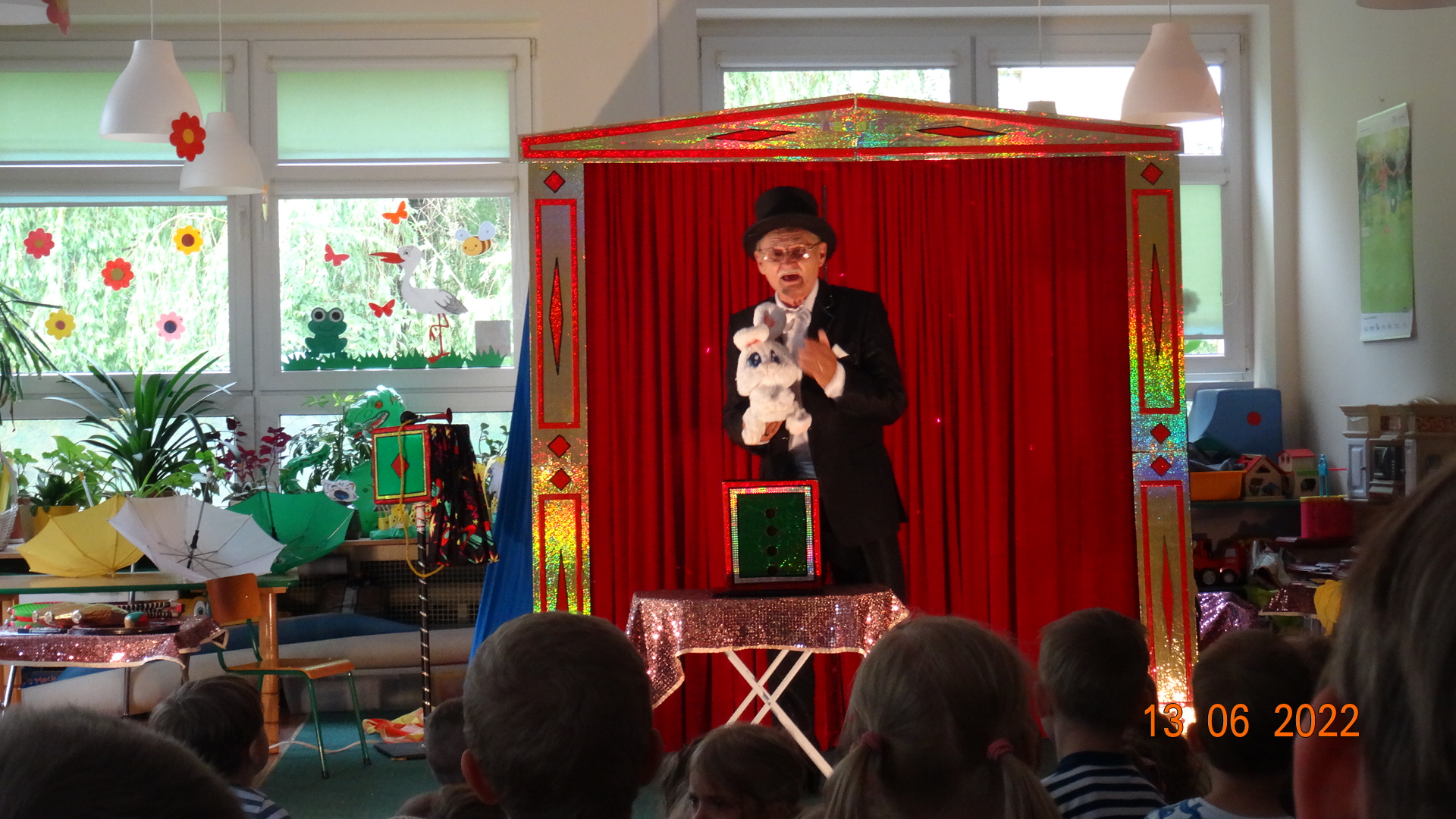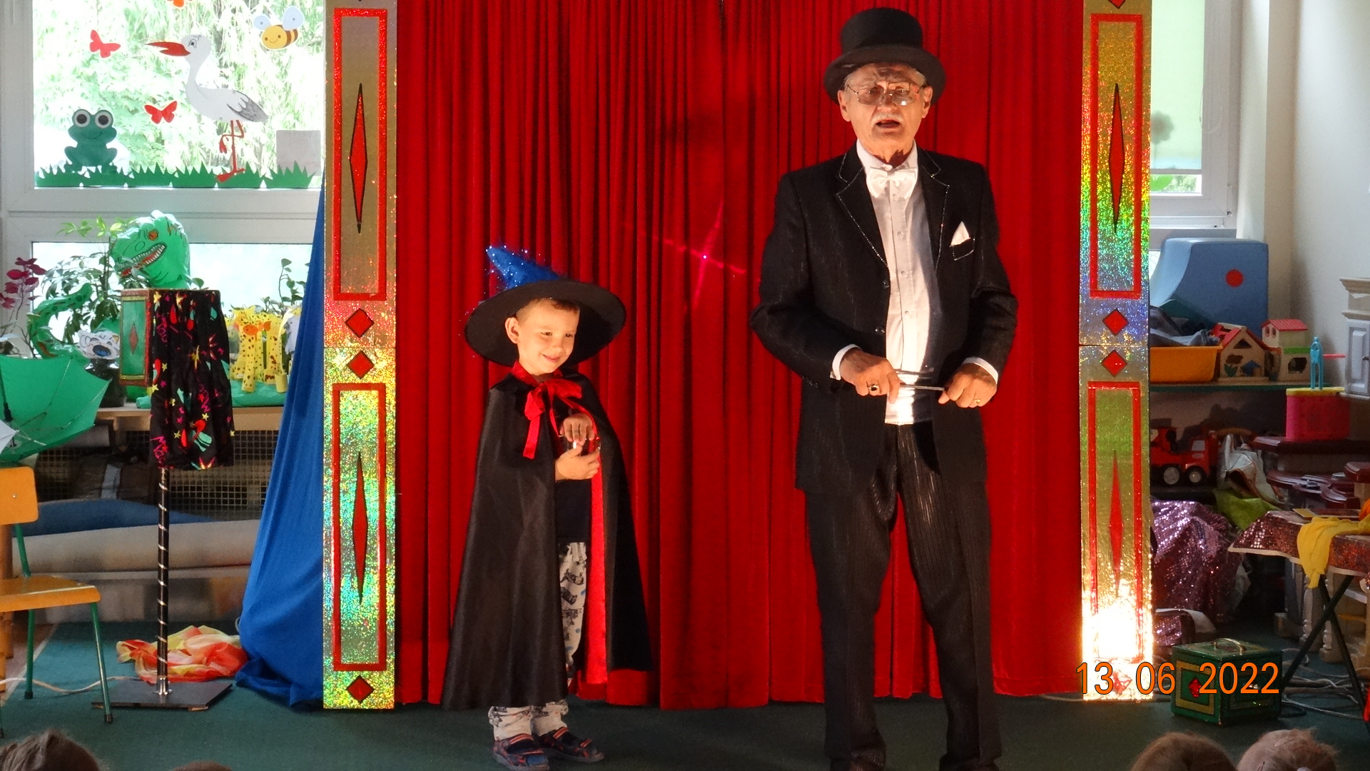 6 czerwca, jak co roku o tej porze, gościliśmy w naszym przedszkolu polsko-czeski duet artystów cyrkowych grupy Adonis. Po raz kolejny swymi występami wywołali uśmiechy na twarzach przedszkolaków, a magicznym sztuczkom towarzyszyły zadziwione buziaki maluchów. Na scenie nie zabrakło pomocników, w których to mieliśmy okazję się zamienić.