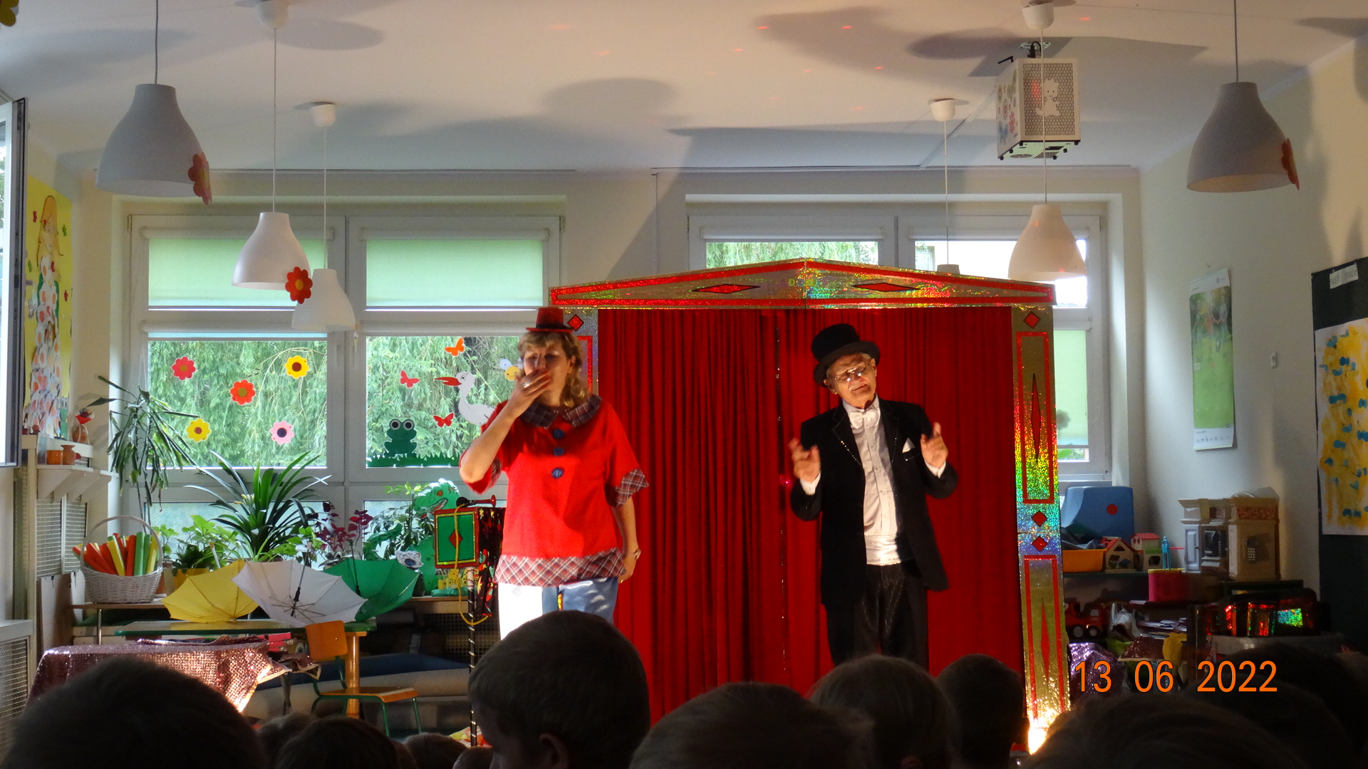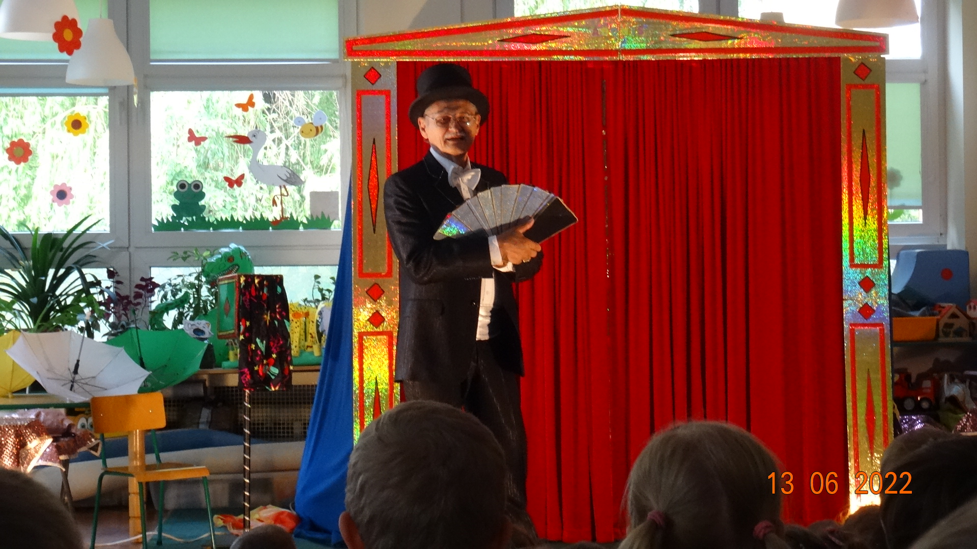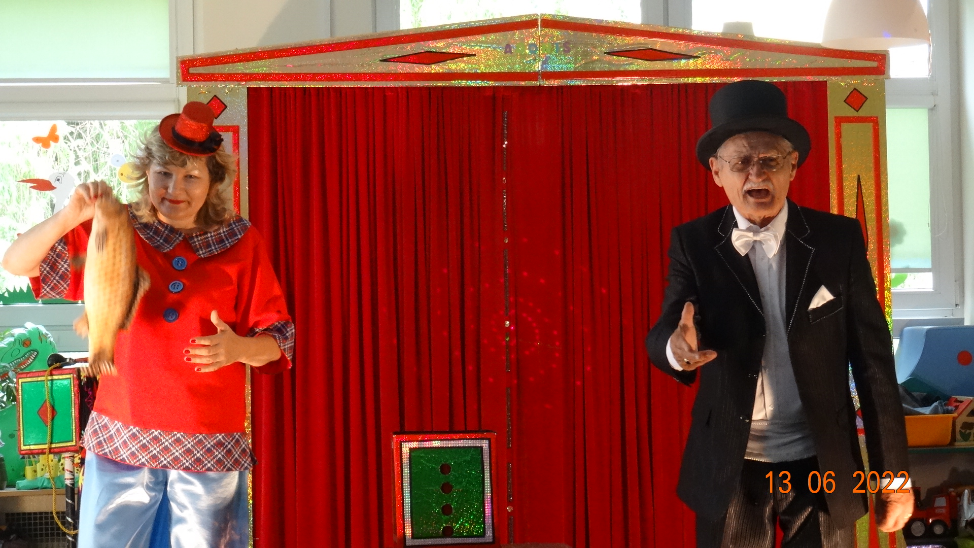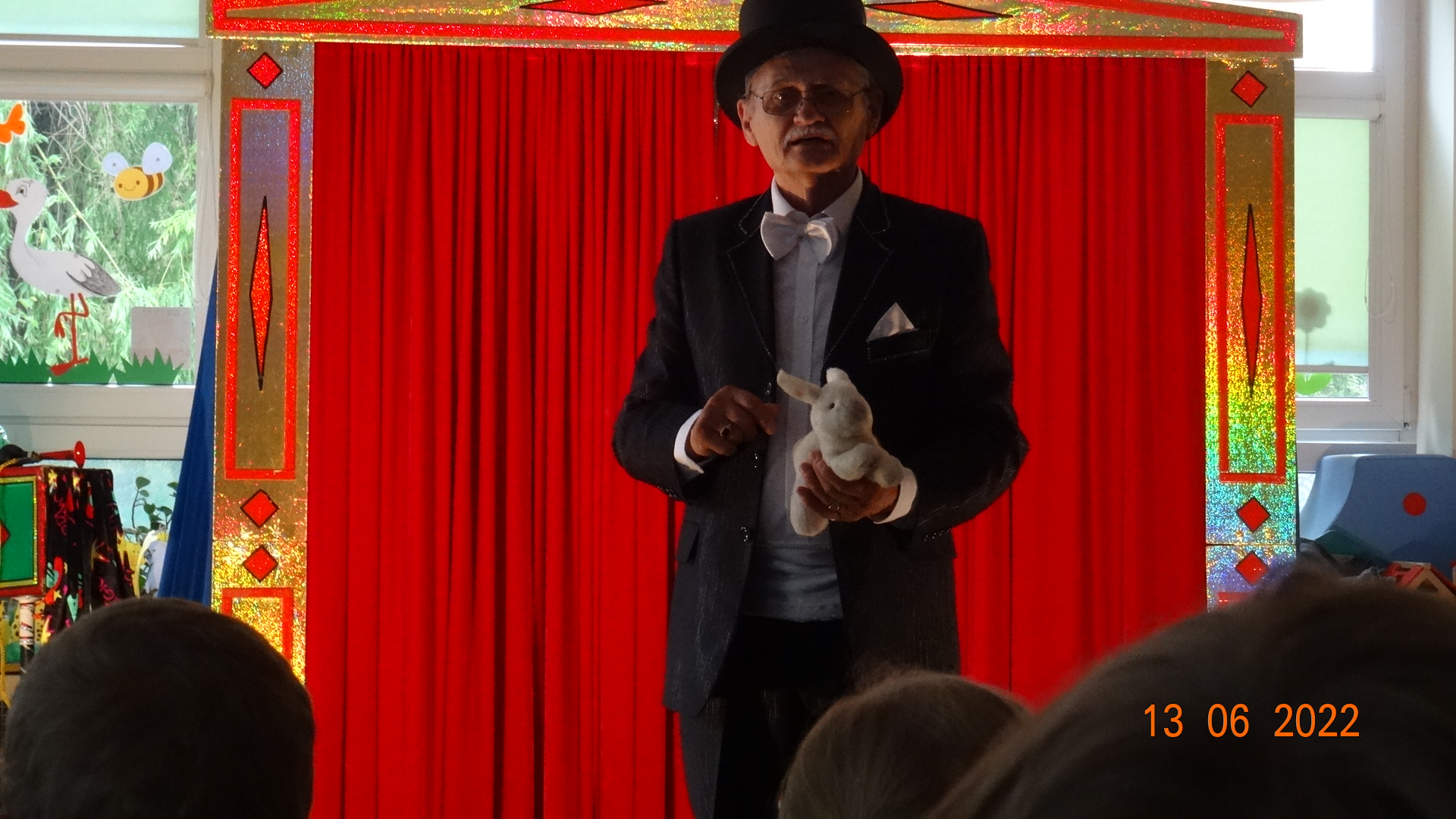 6 czerwca, jak co roku o tej porze, gościliśmy w naszym przedszkolu polsko-czeski duet artystów cyrkowych grupy Adonis. Po raz kolejny swymi występami wywołali uśmiechy na twarzach przedszkolaków, a magicznym sztuczkom towarzyszyły zadziwione buziaki maluchów. Na scenie nie zabrakło pomocników, w których to mieliśmy okazję się zamienić.