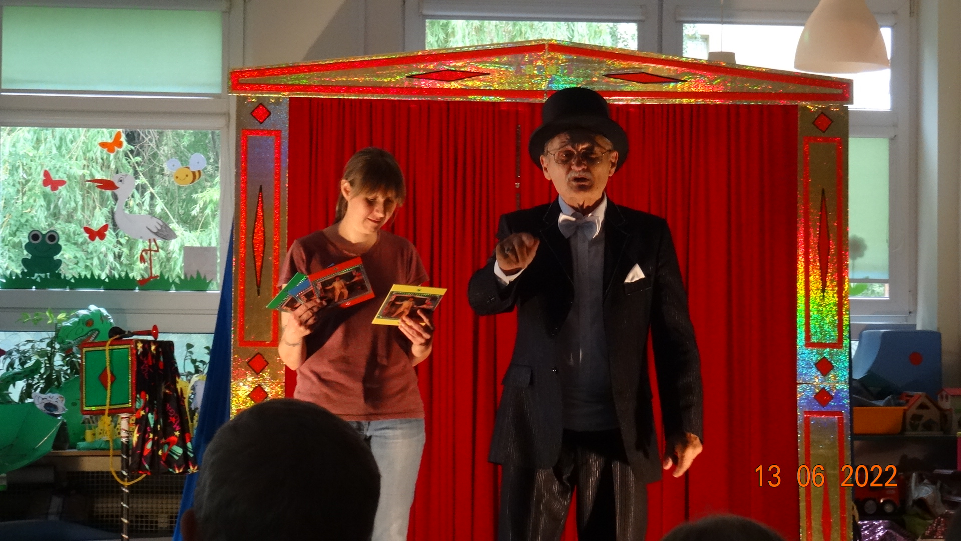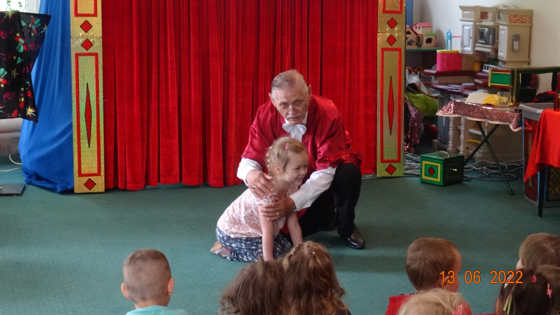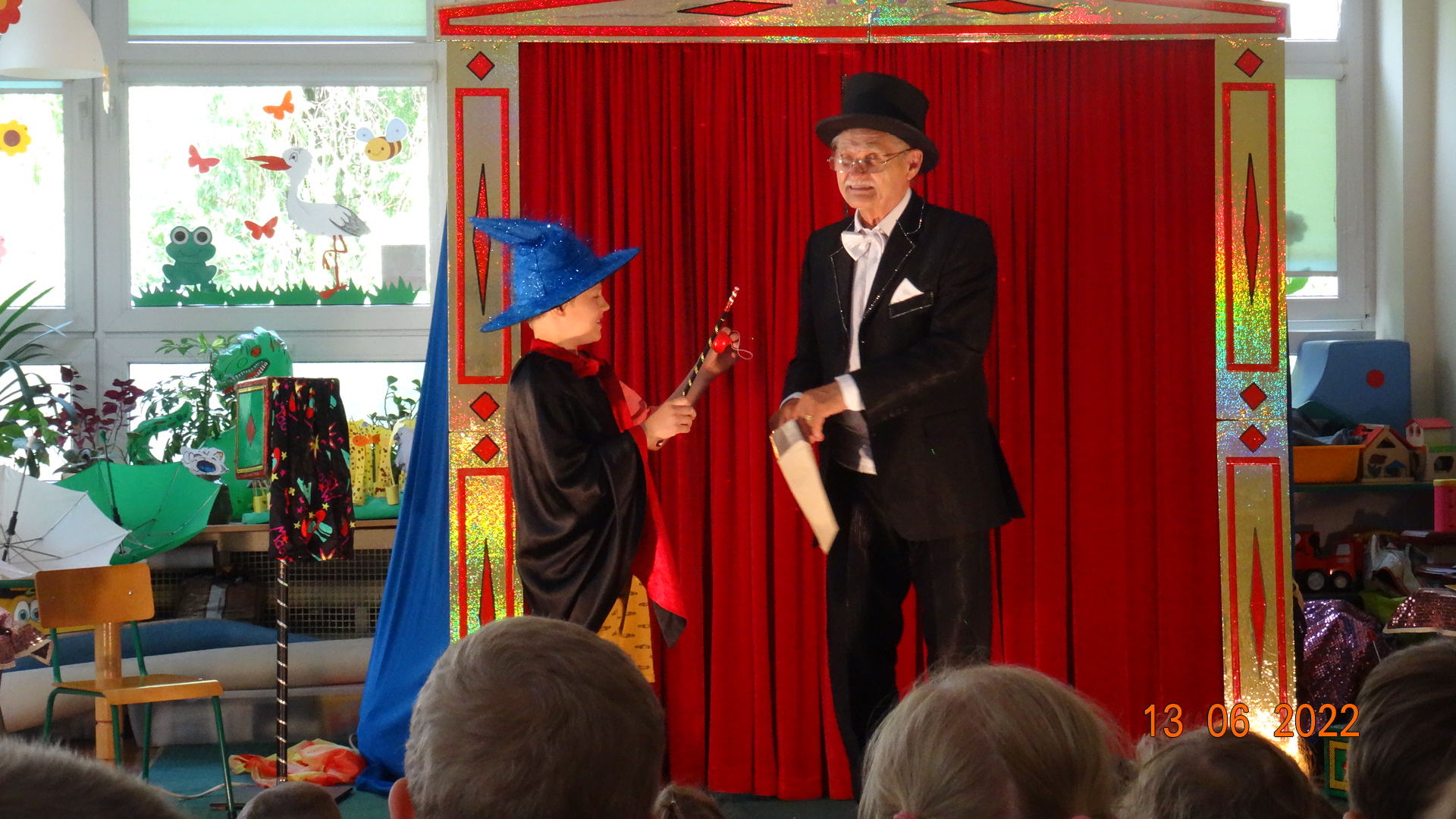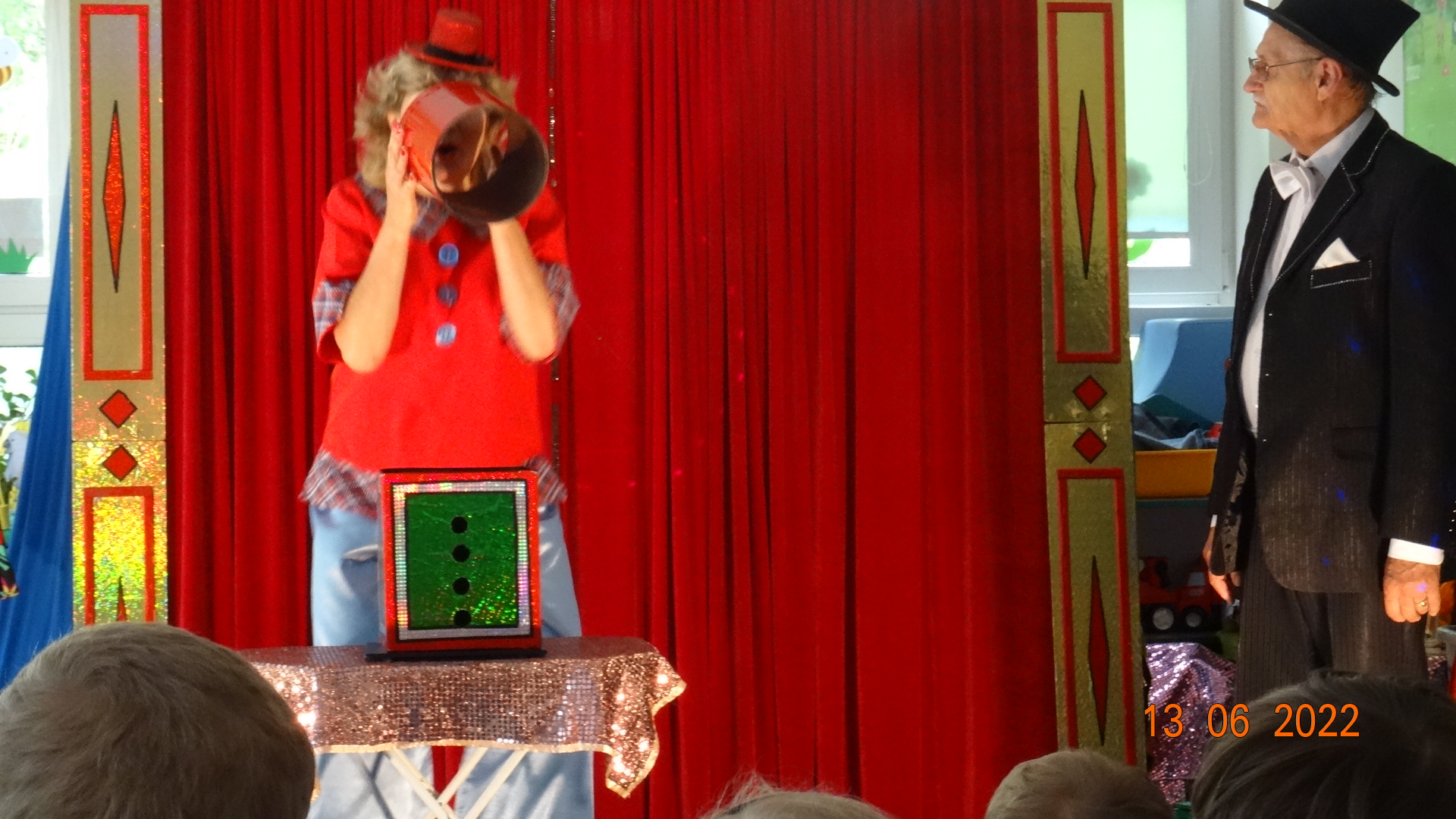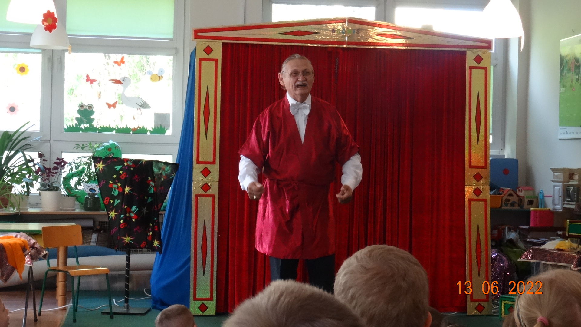 6 czerwca, jak co roku o tej porze, gościliśmy w naszym przedszkolu polsko-czeski duet artystów cyrkowych grupy Adonis. Po raz kolejny swymi występami wywołali uśmiechy na twarzach przedszkolaków, a magicznym sztuczkom towarzyszyły zadziwione buziaki maluchów. Na scenie nie zabrakło pomocników, w których to mieliśmy okazję się zamienić.