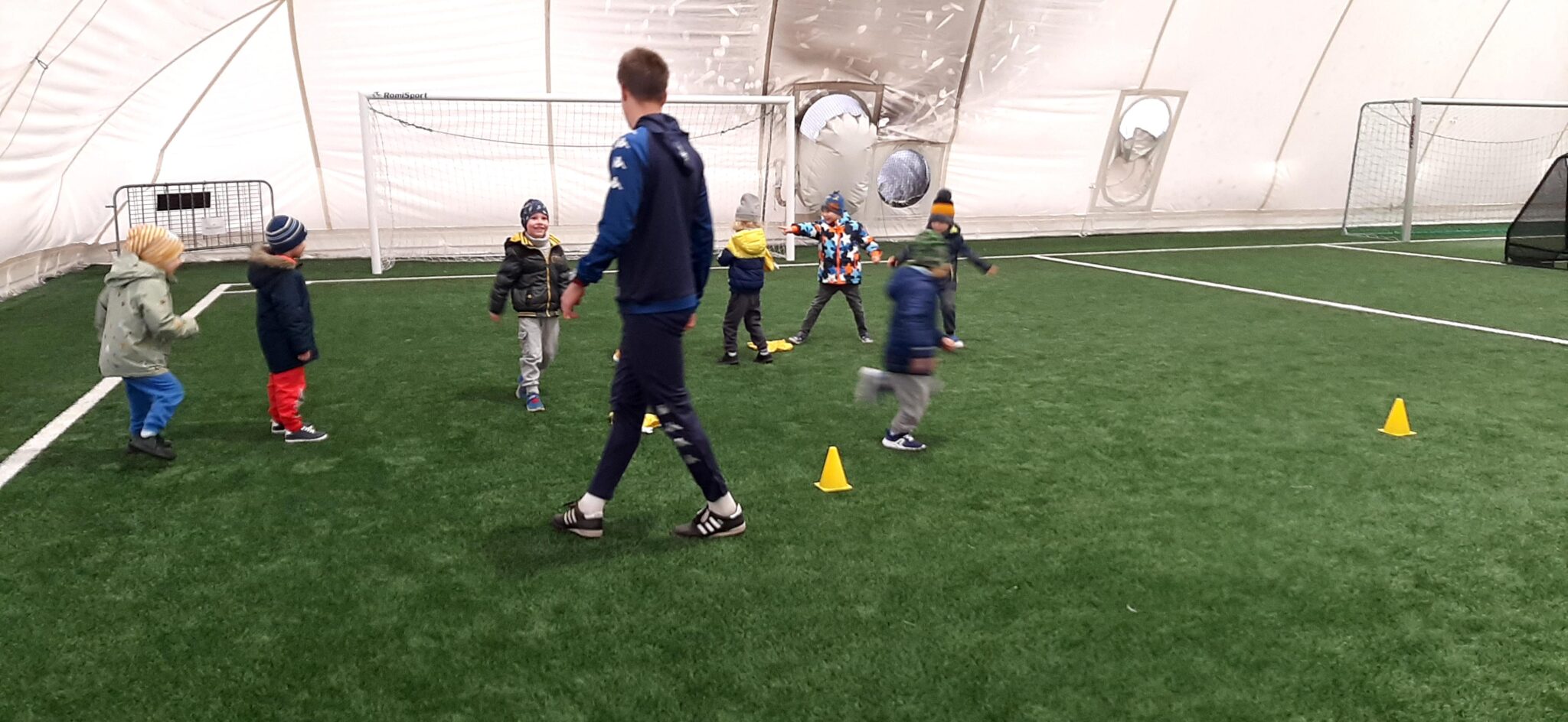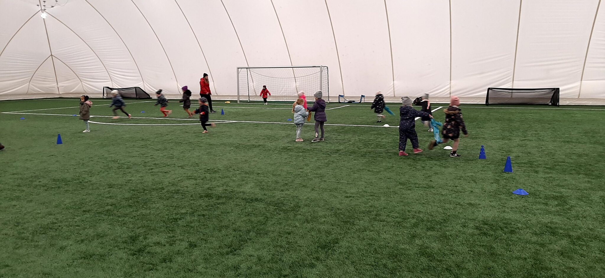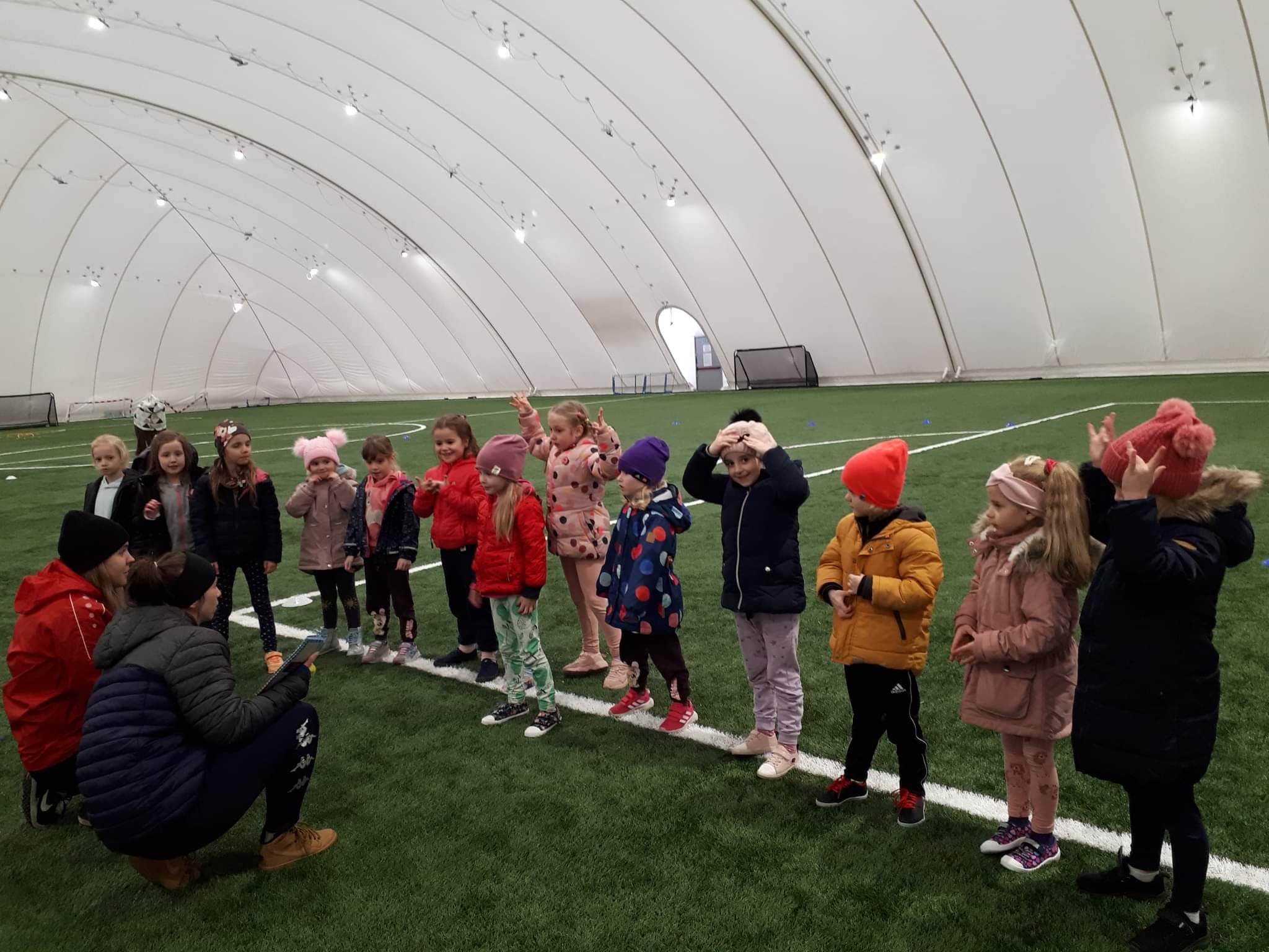 W tym tygodniu dzieci z grup Pszczółek, Żabek i Sówek rozpoczęły swoją sportową przygodę na bydgoskim „Chemiku”. Dużym przeżyciem i zaskoczeniem dla niektórych okazał się słynny „balon”, który był zagadką. Teraz już wszyscy wiemy, że jest to fachowo ujmując hala pneumatyczna, w której znajduje się boisko piłki nożnej. Tak więc piłki poszły szybko w ruch. Jak się okazało nasze przedszkolaki zachwyciły się tym rodzajem aktywności.